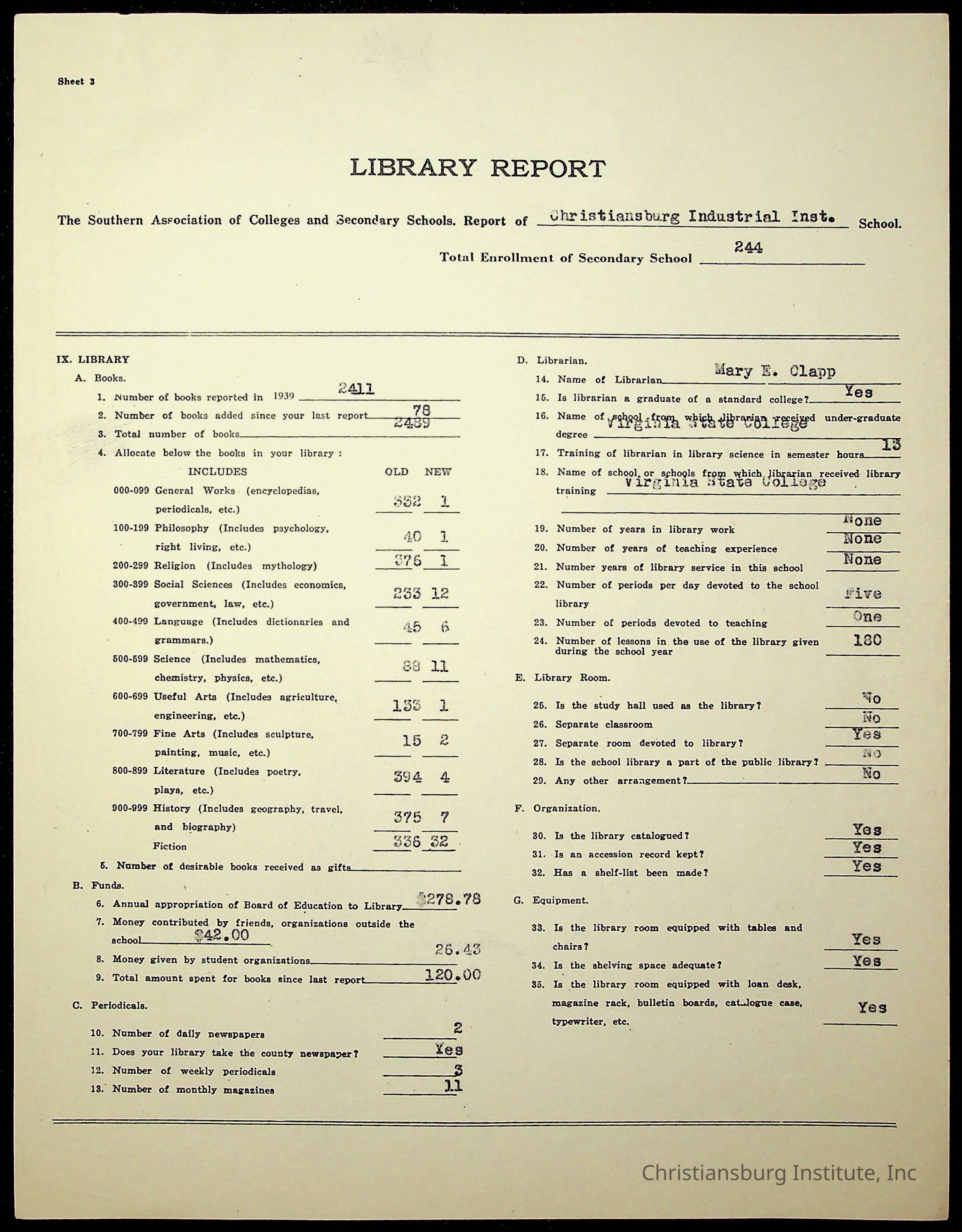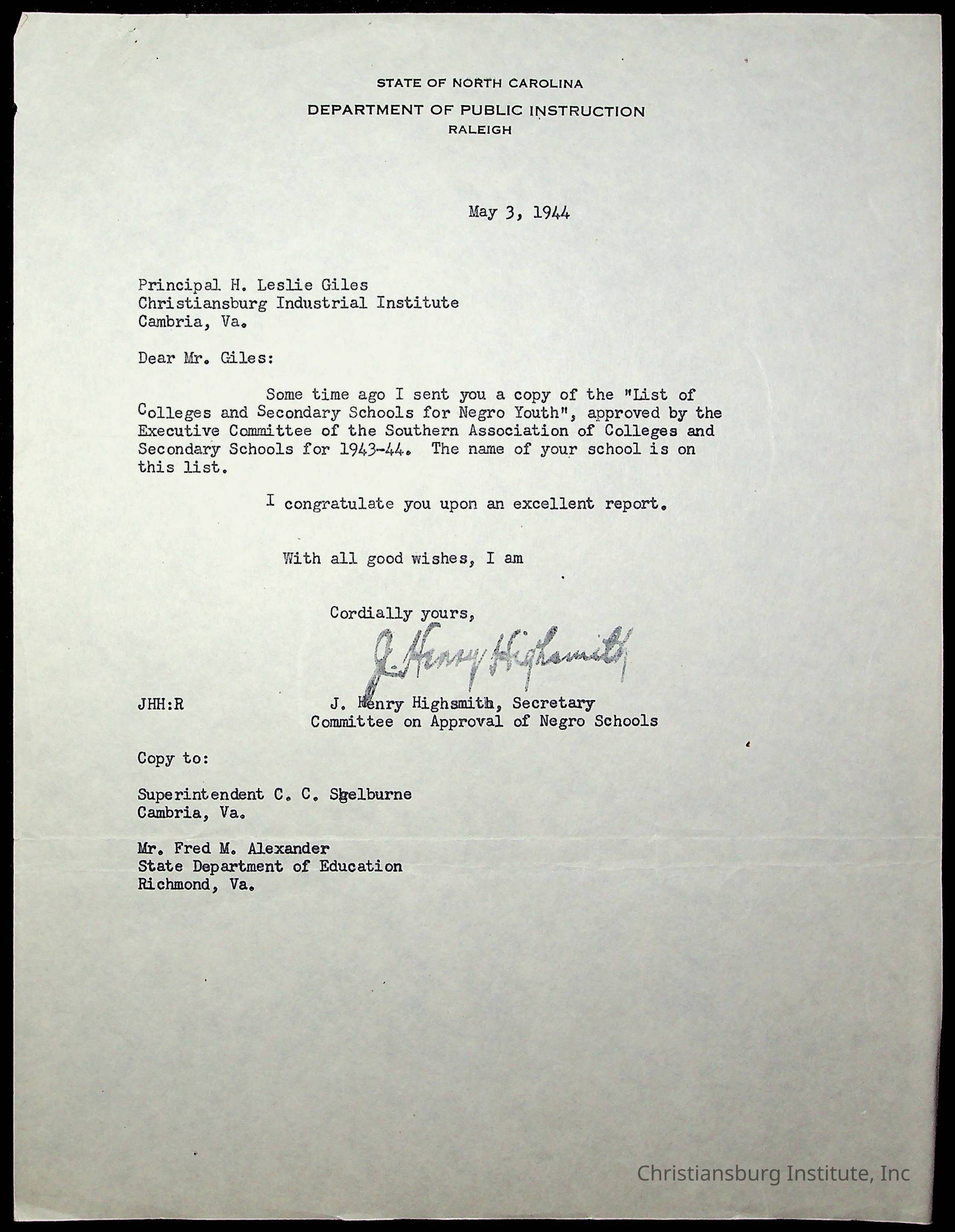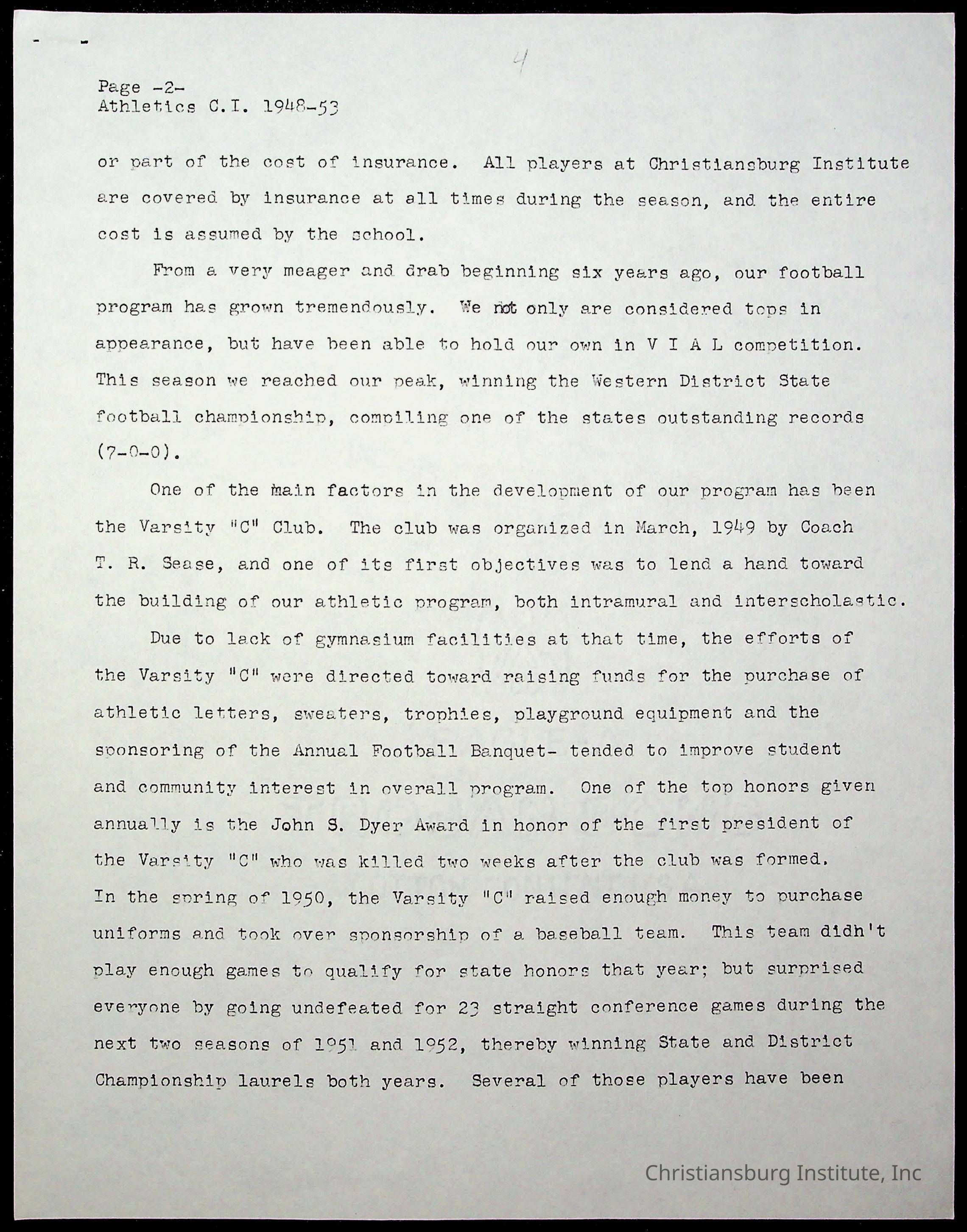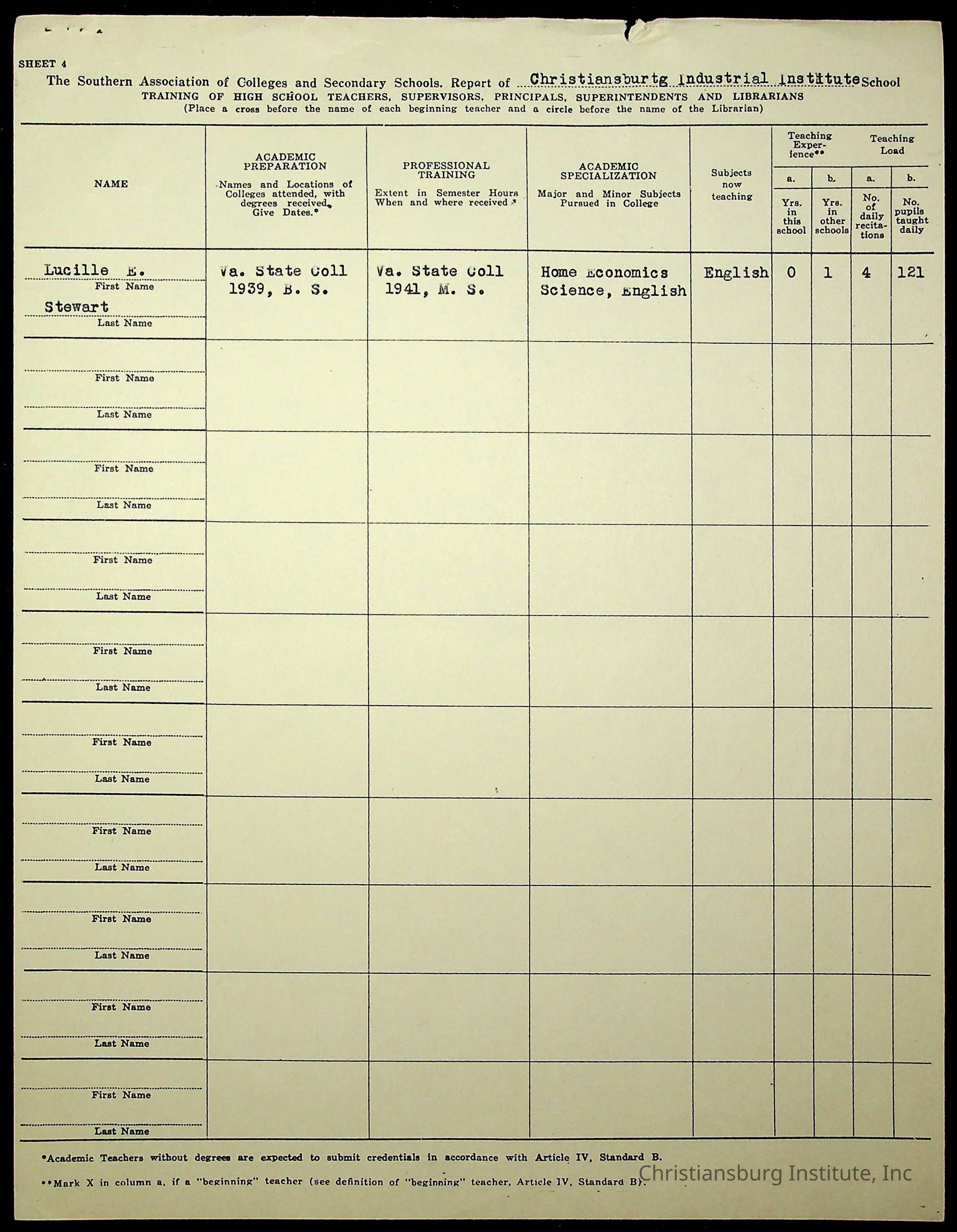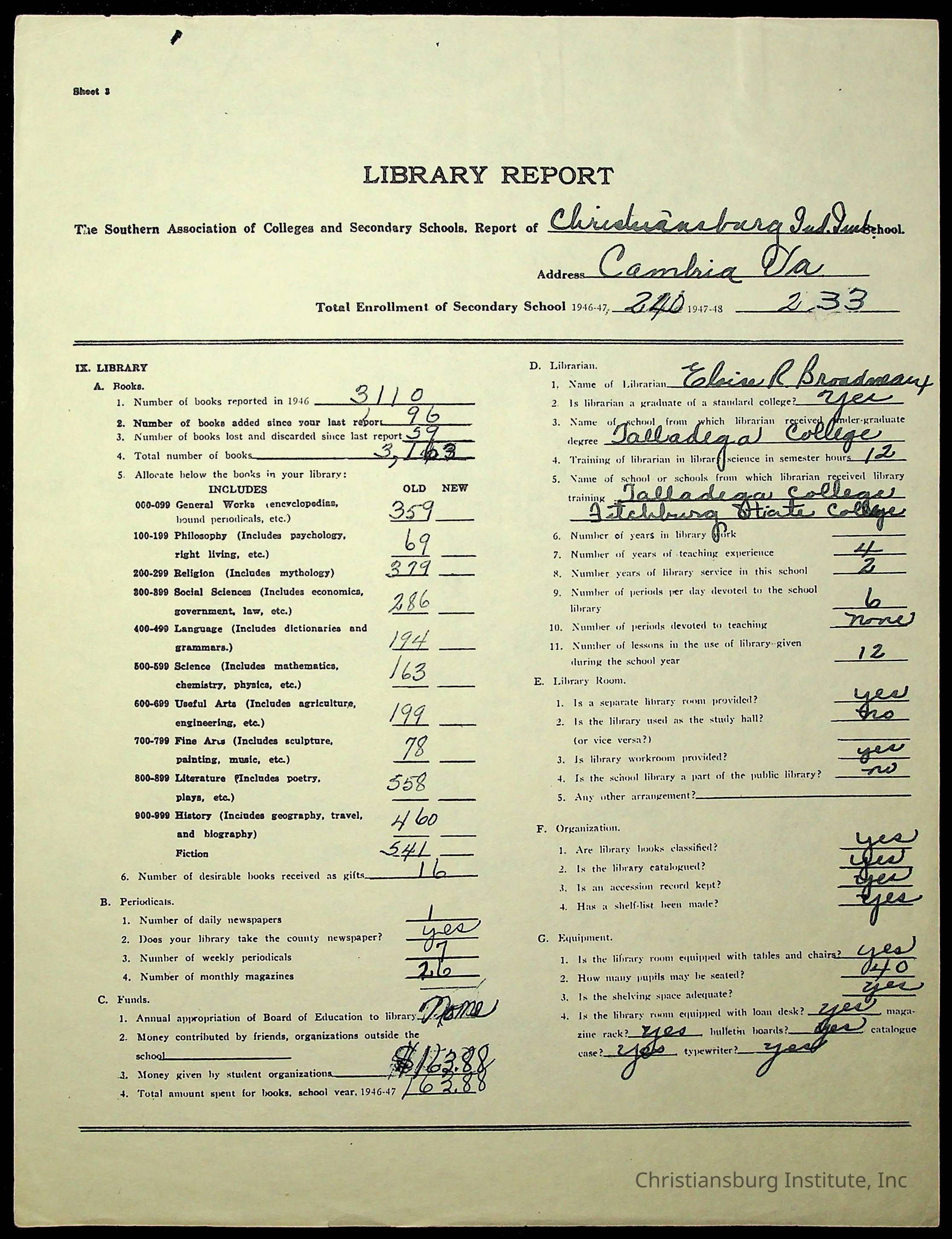 Copyright has been assigned to Christiansburg Institute Museum & Archives by Montgomery County Public Schools. For permission to publish materials created by the donor, contact CIMA@christiansburginstitute.com. Materials not created by Christiansburg Industrial Institute may still be under copyright.