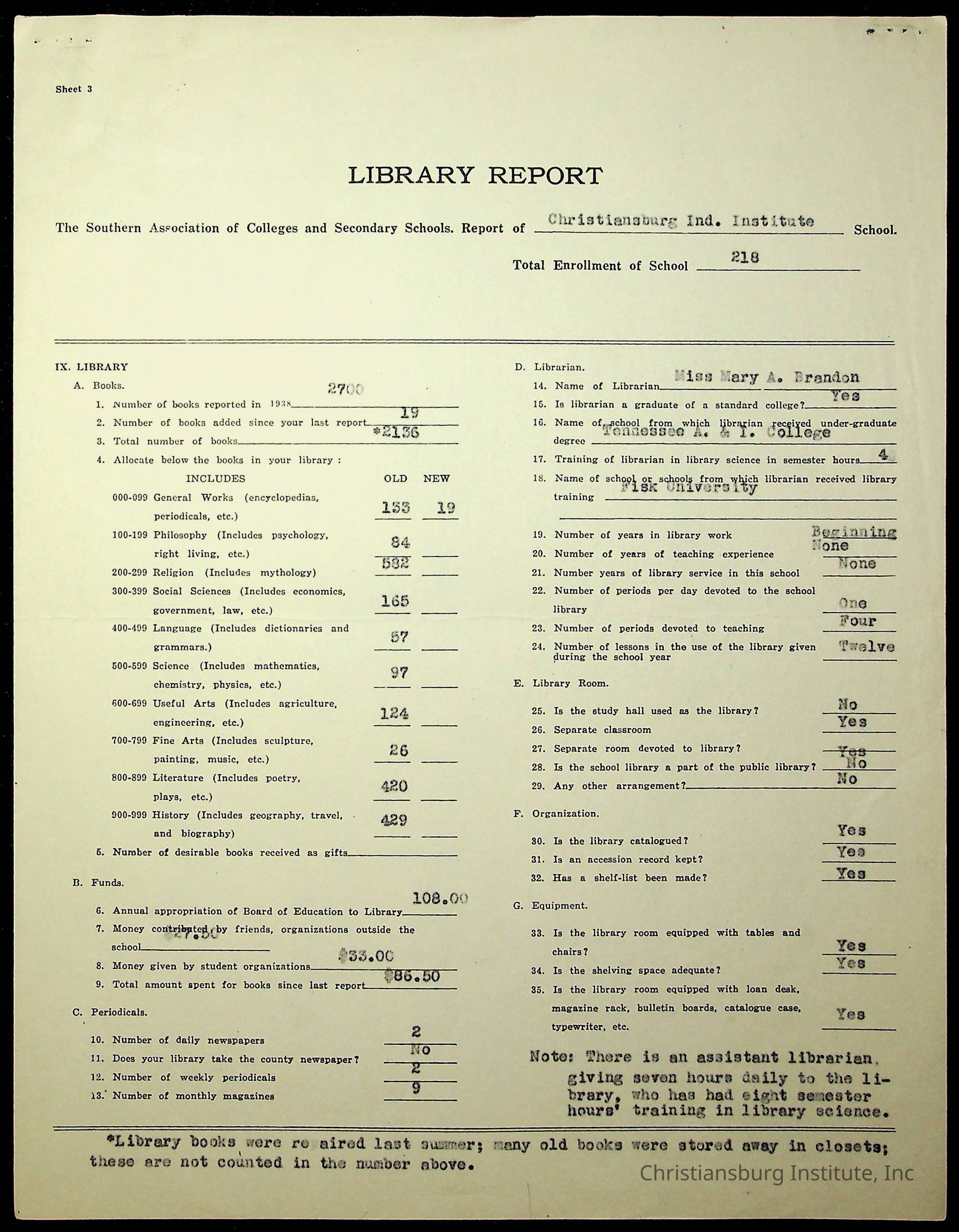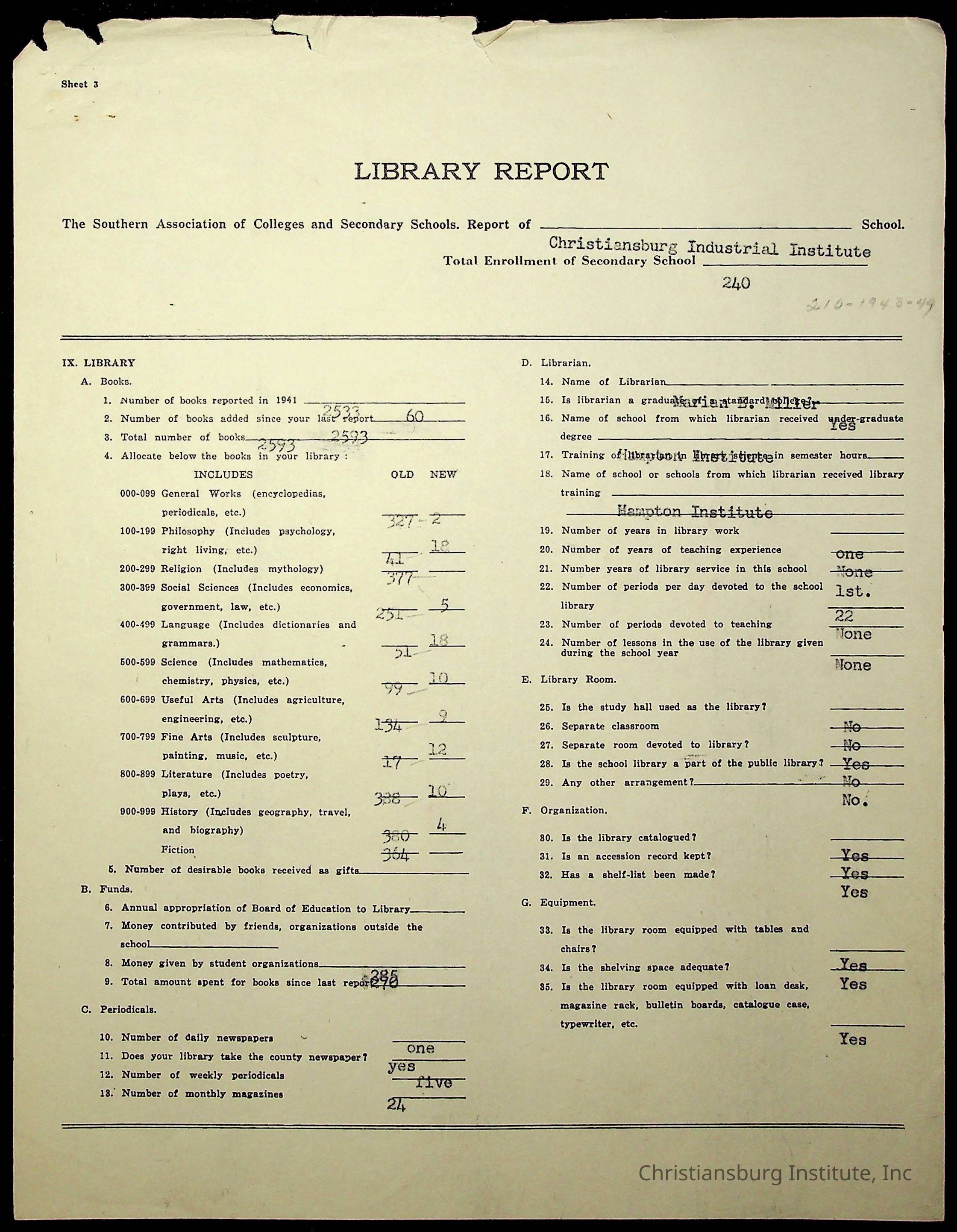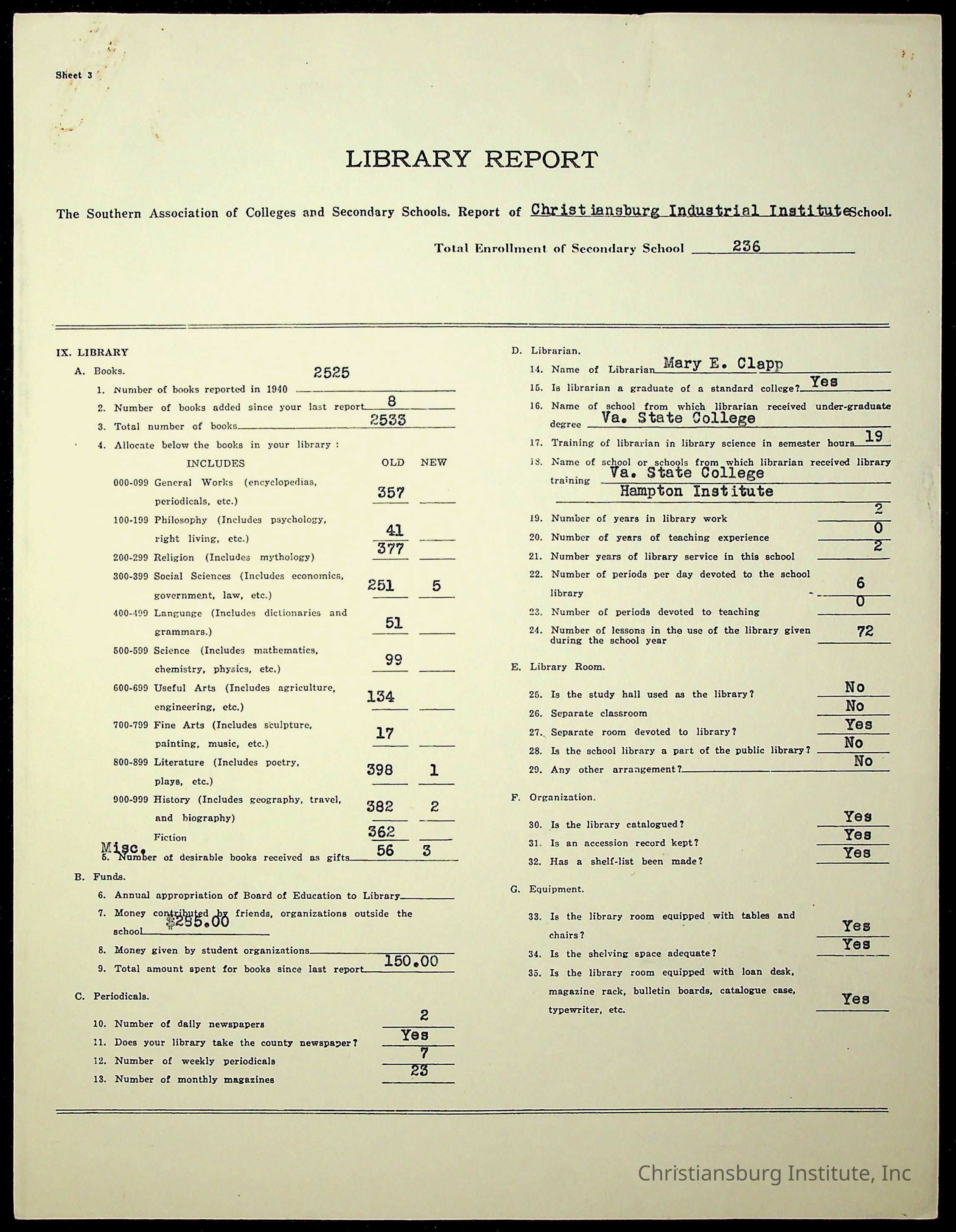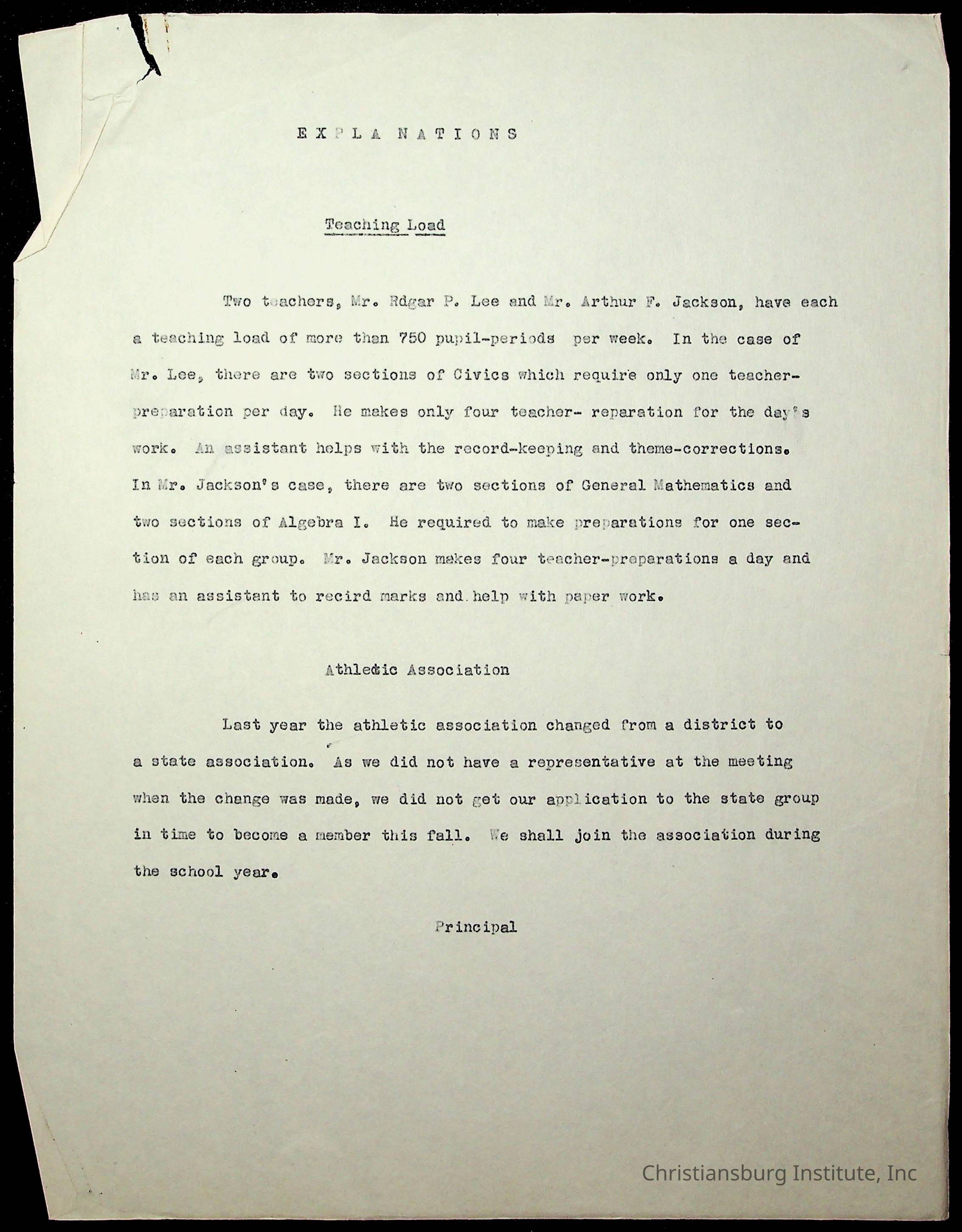 Copyright has been assigned to Christiansburg Institute Museum & Archives by Montgomery County Public Schools. For permission to publish materials created by the donor, contact CIMA@christiansburginstitute.com. Materials not created by Christiansburg Industrial Institute may still be under copyright.
