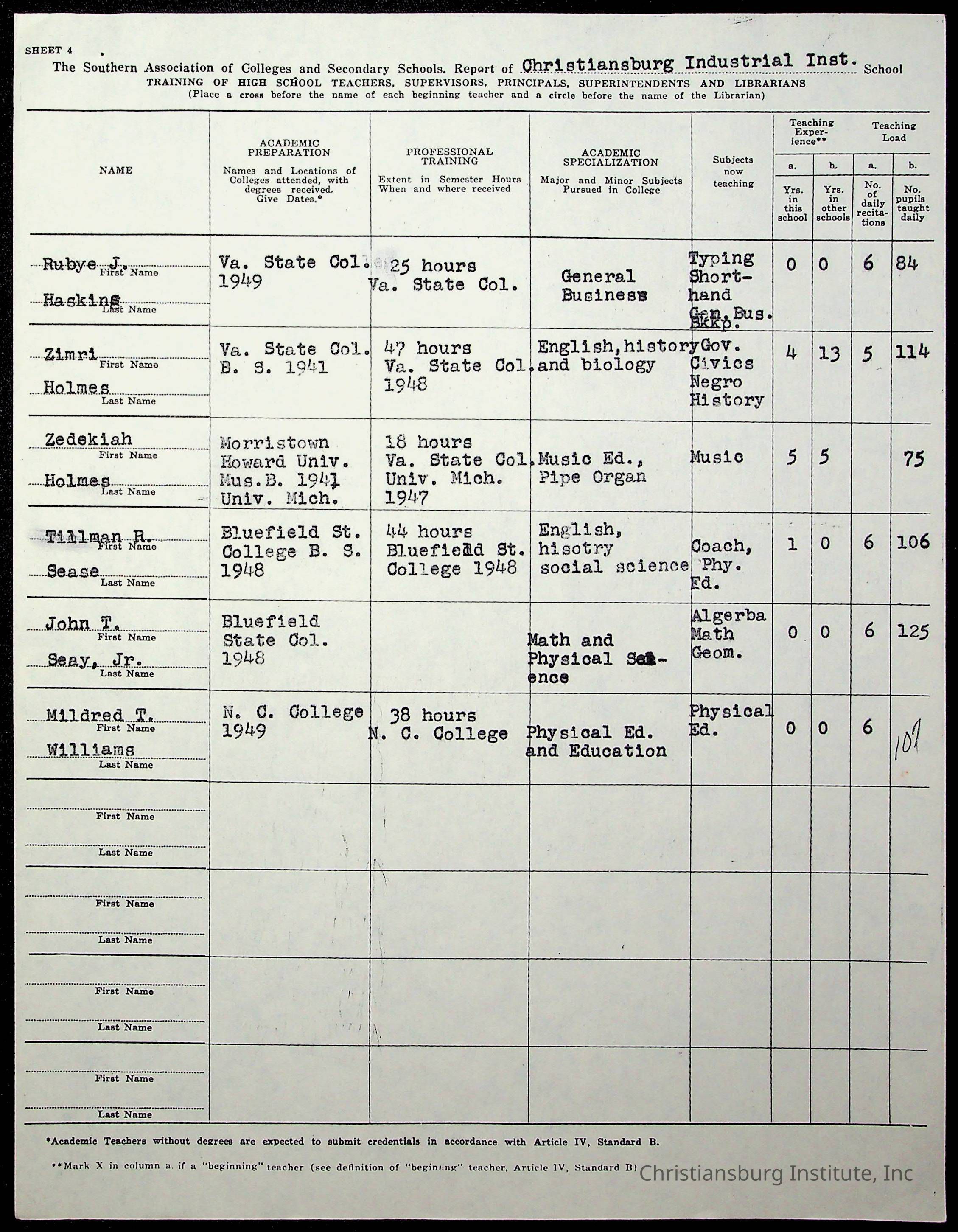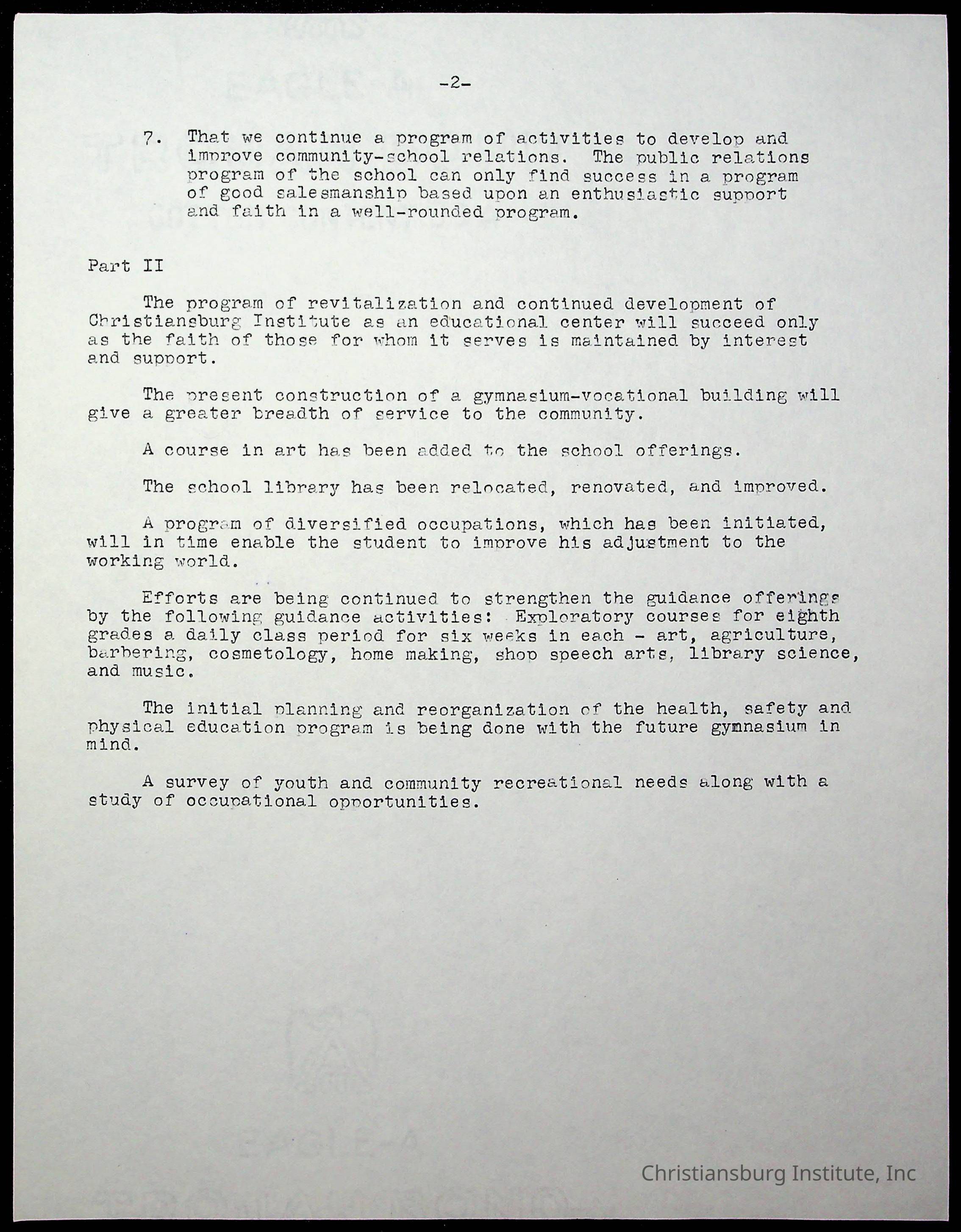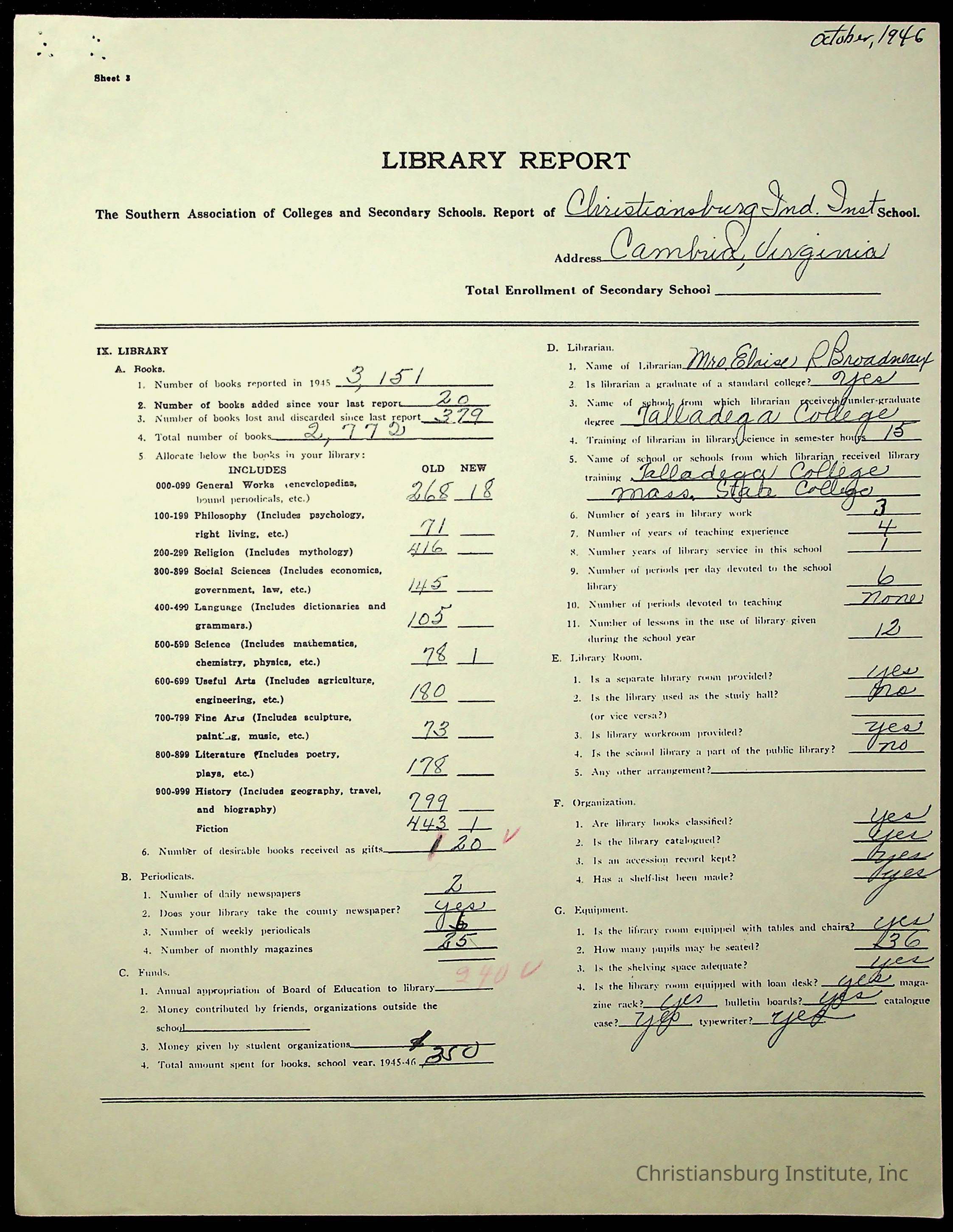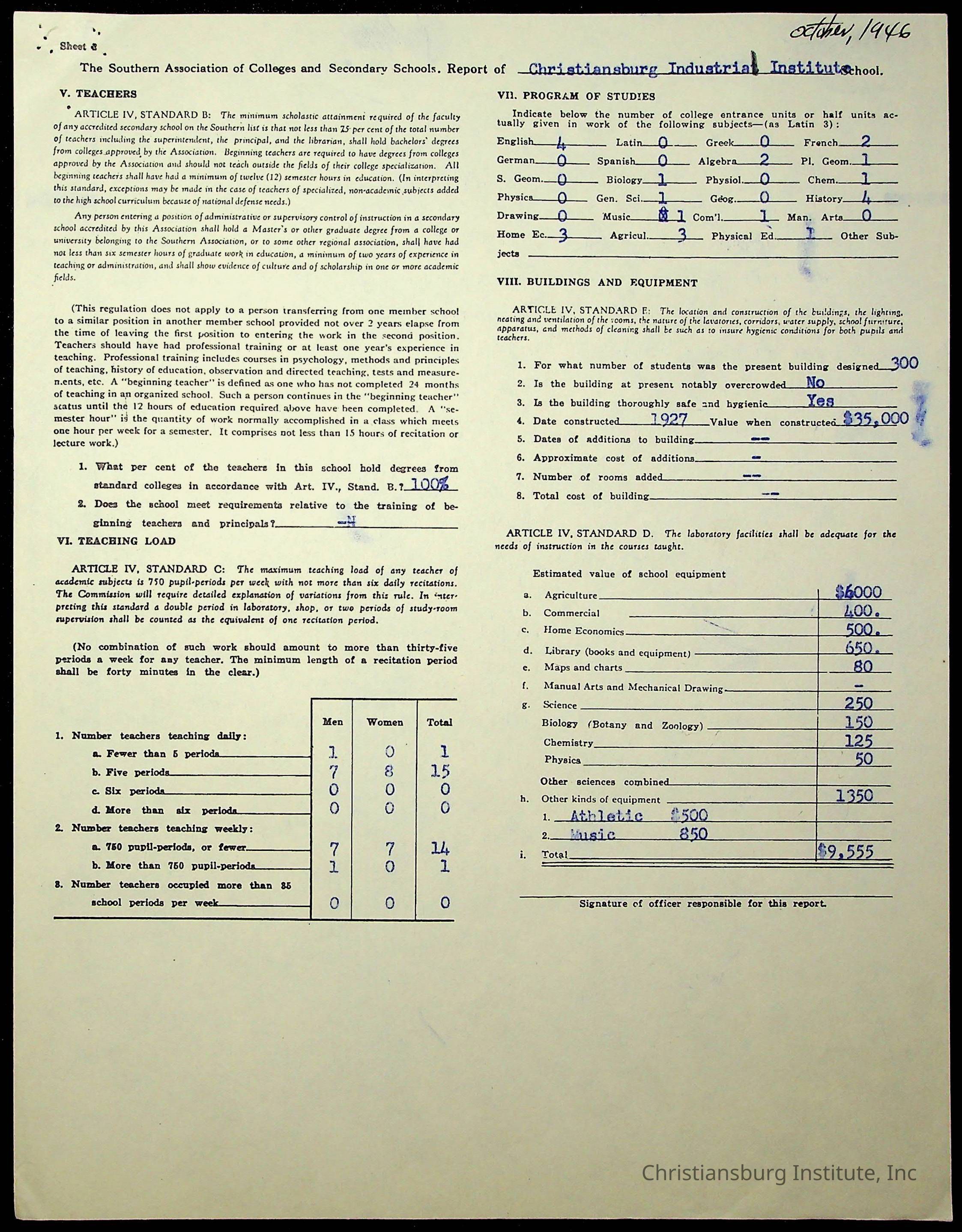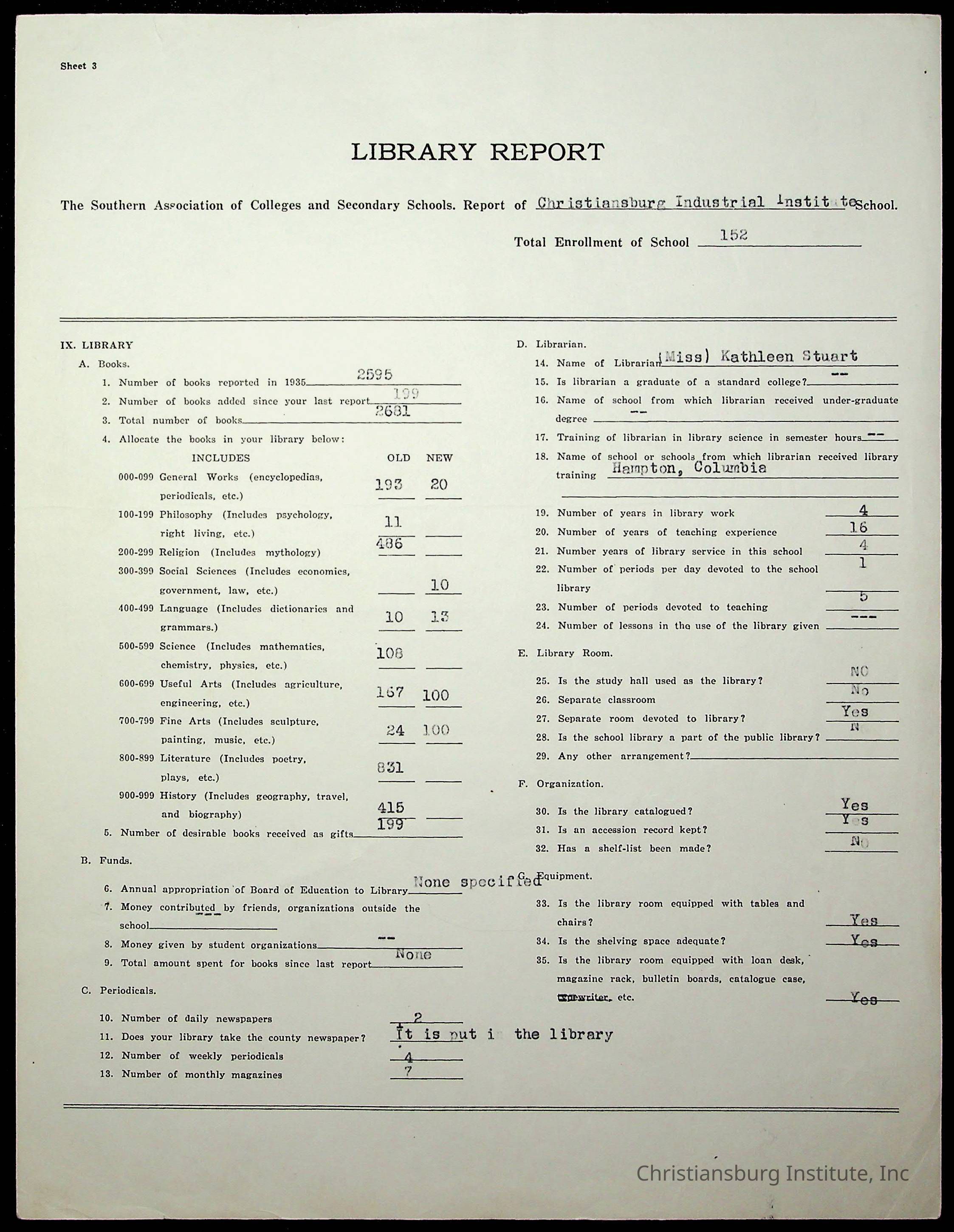 Copyright has been assigned to Christiansburg Institute Museum & Archives by Montgomery County Public Schools. For permission to publish materials created by the donor, contact CIMA@christiansburginstitute.com. Materials not created by Christiansburg Industrial Institute may still be under copyright.