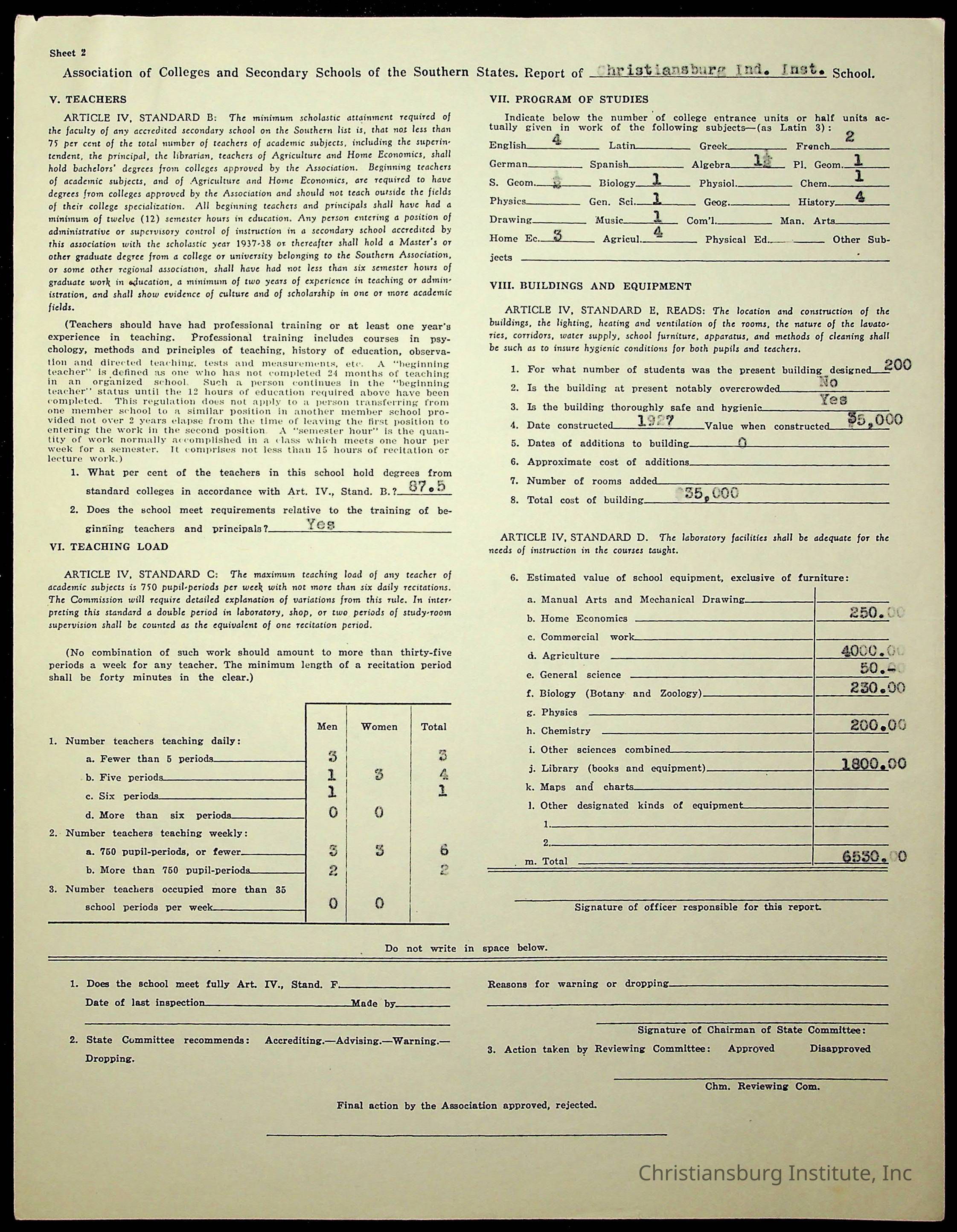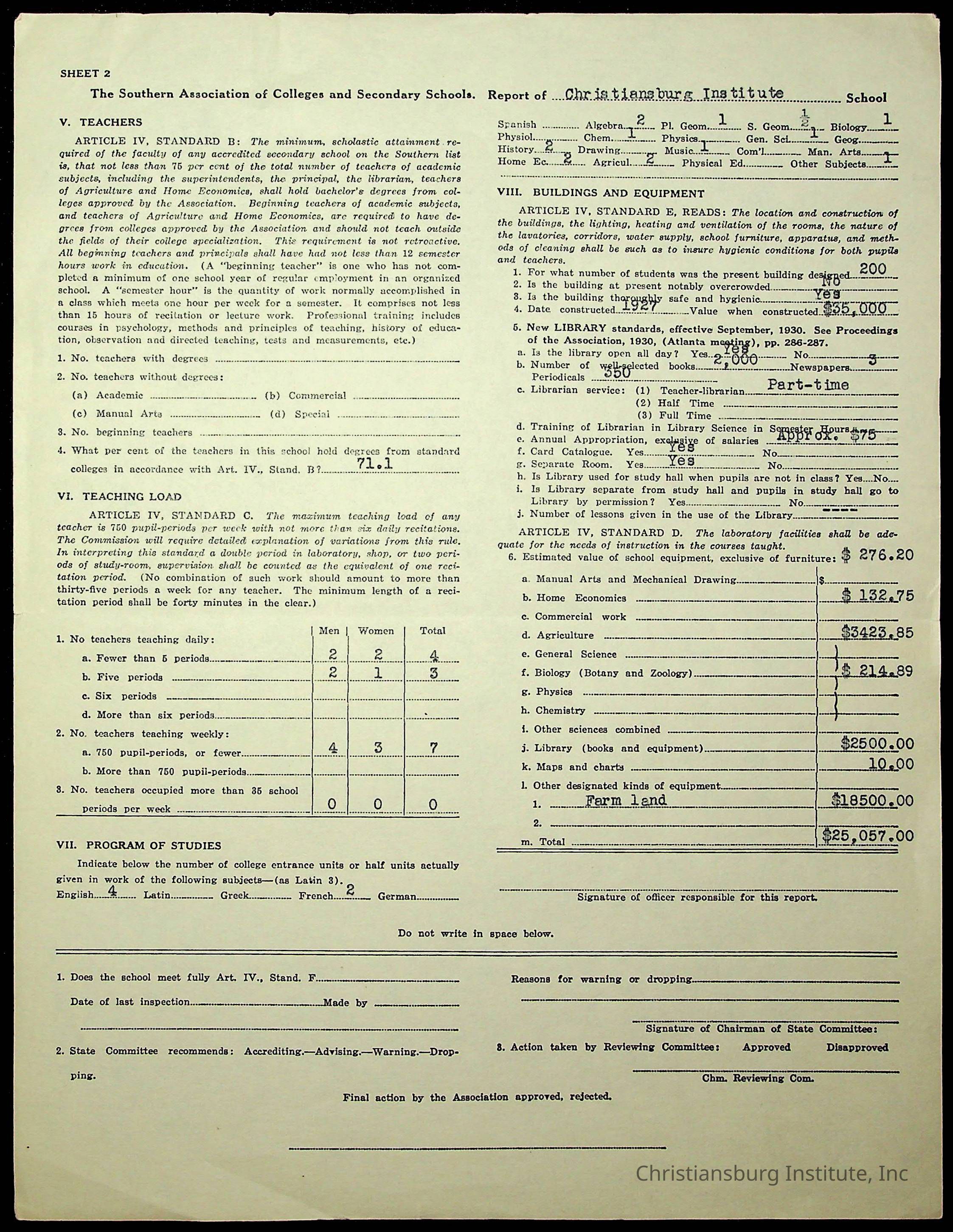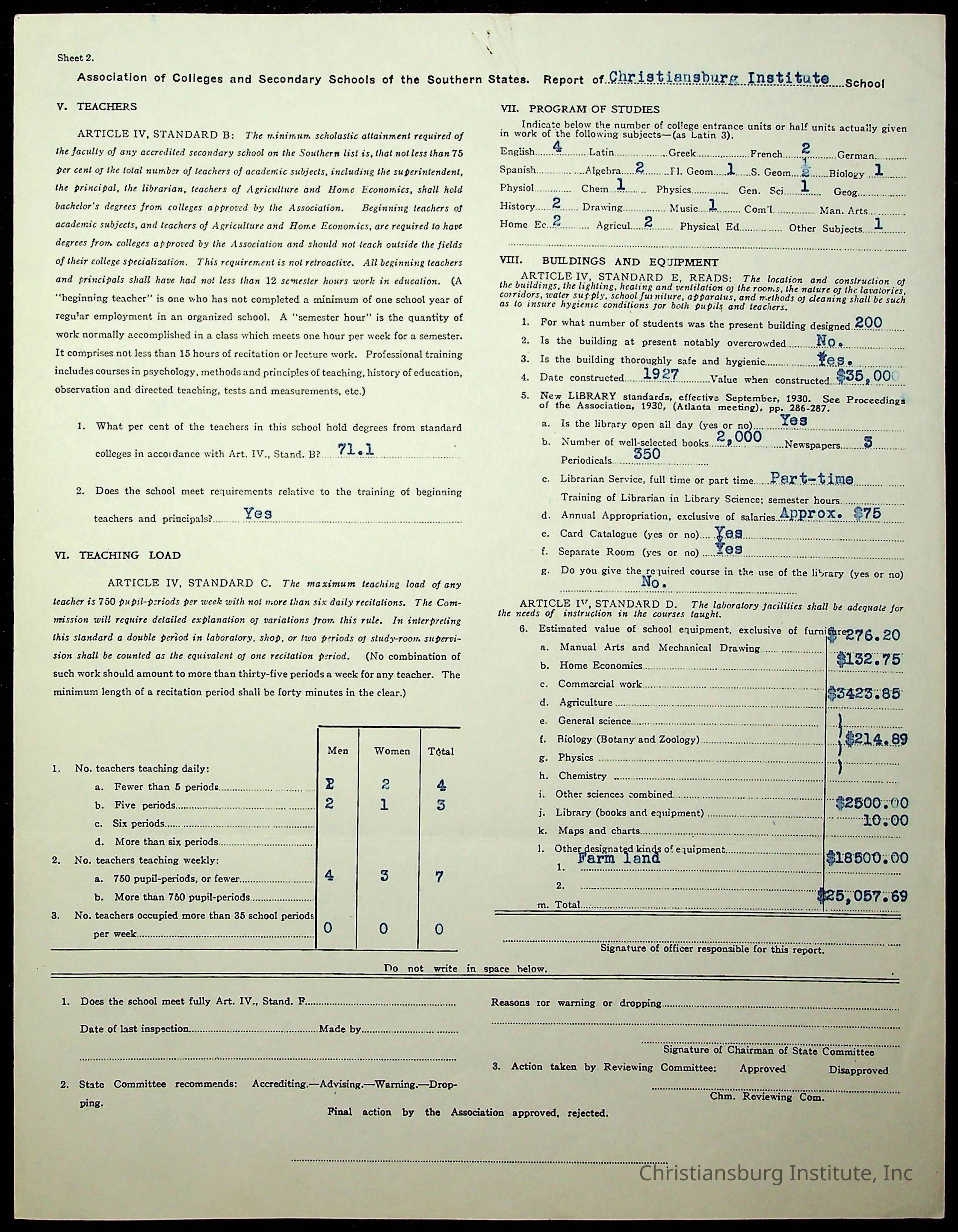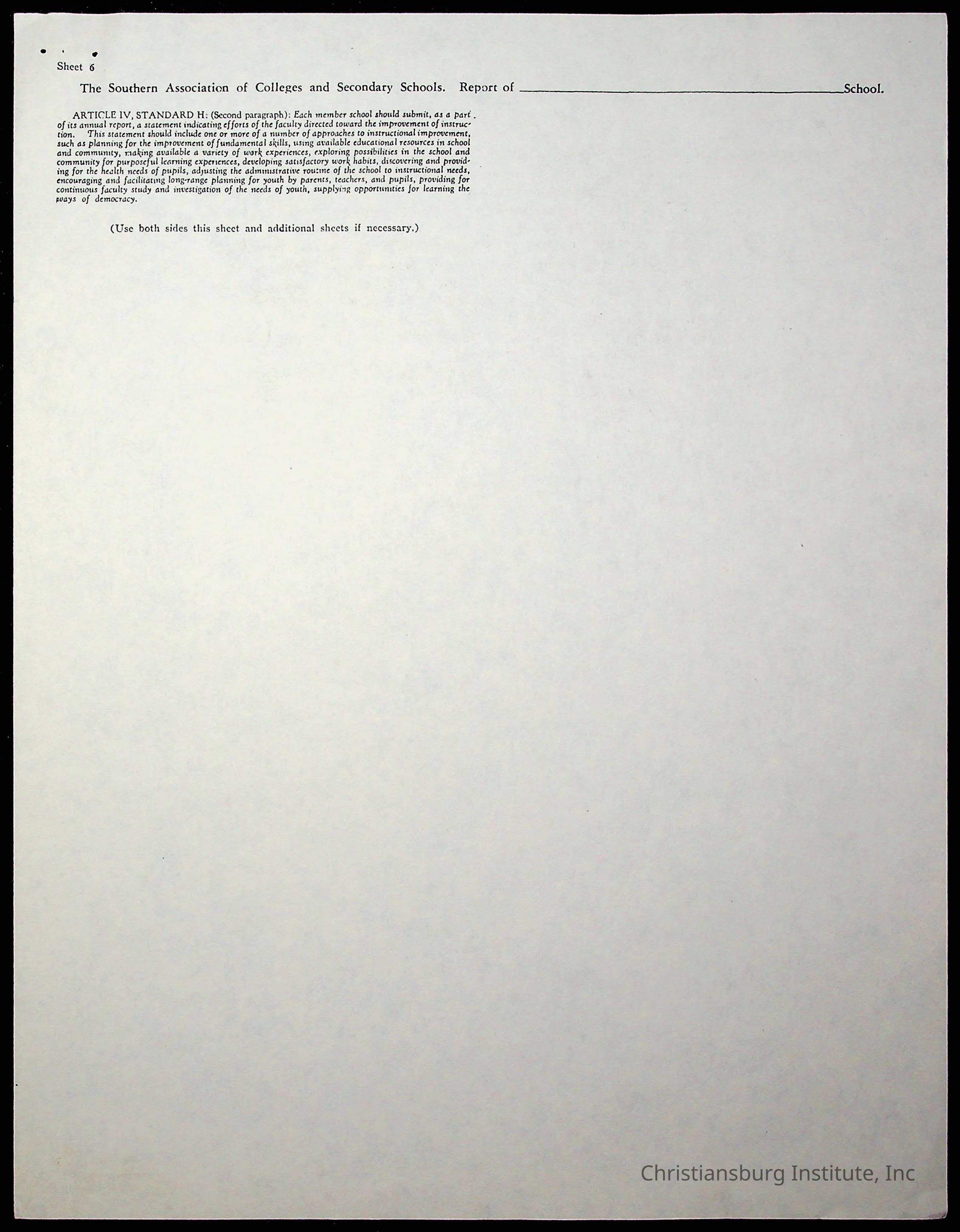 The second folder of an archive of material relating to the reports to the Southern Association of Colleges and Secondary Schools in Richmond, Virginia. Materials include correspondence, reports, and forms dated 1934-1964.Collection