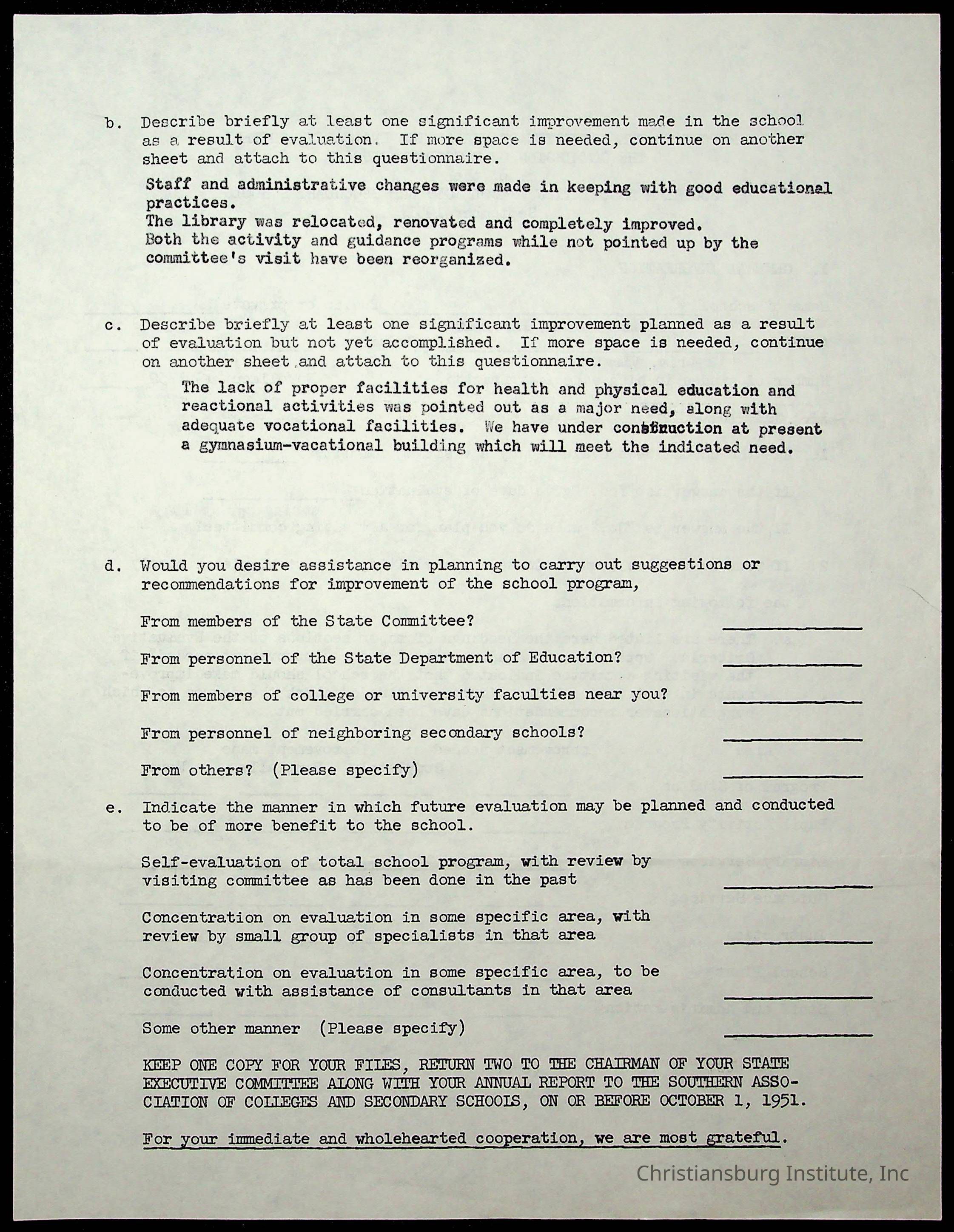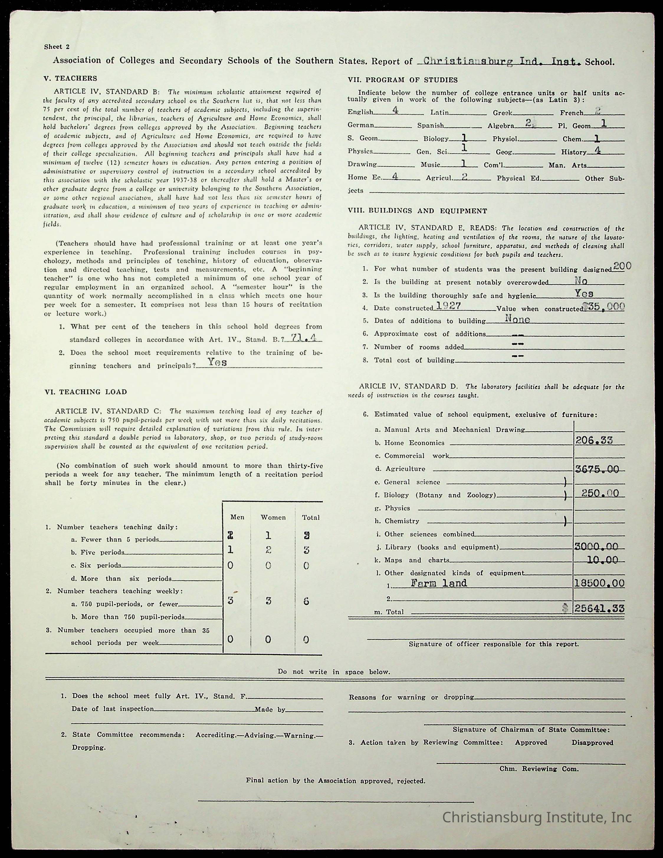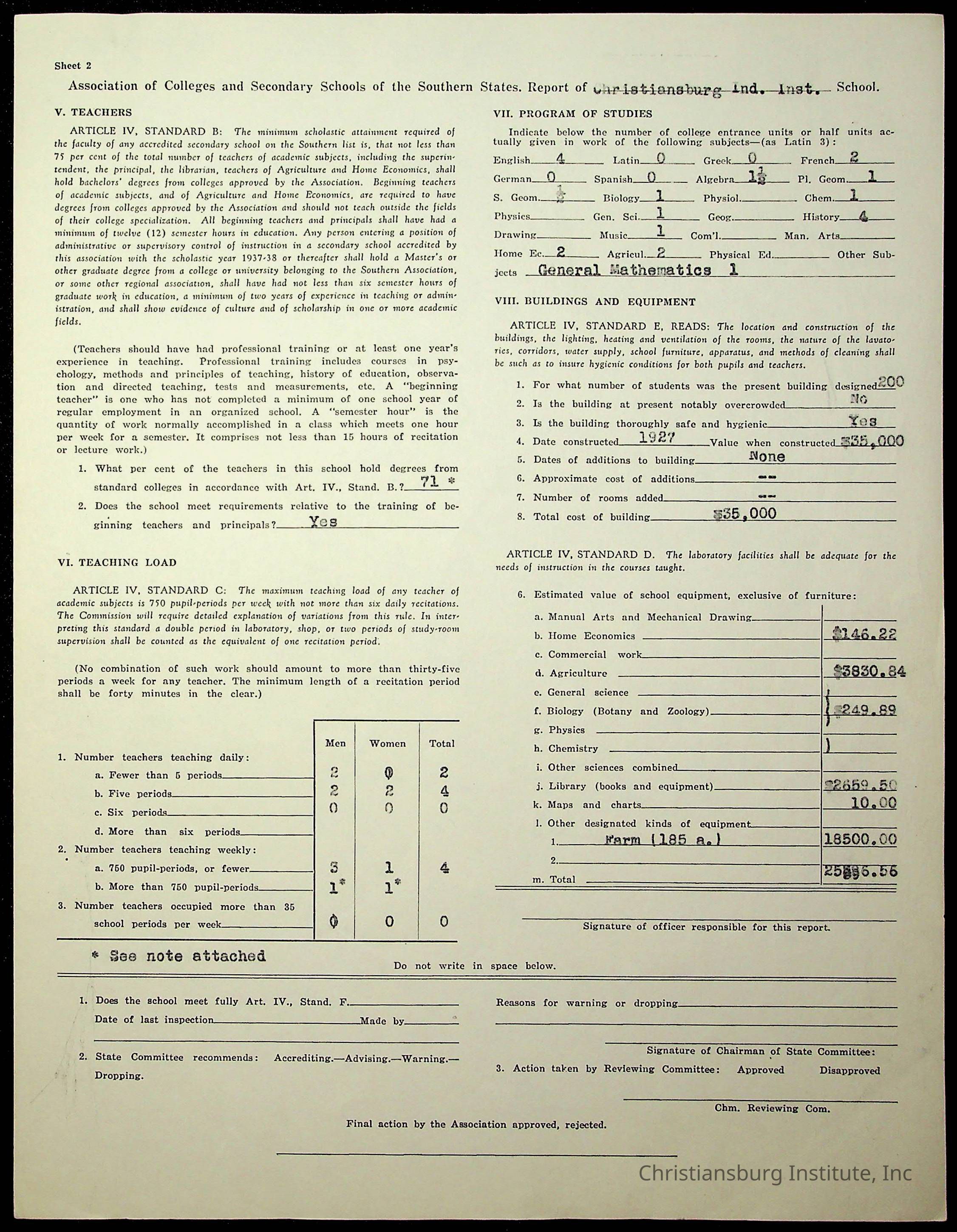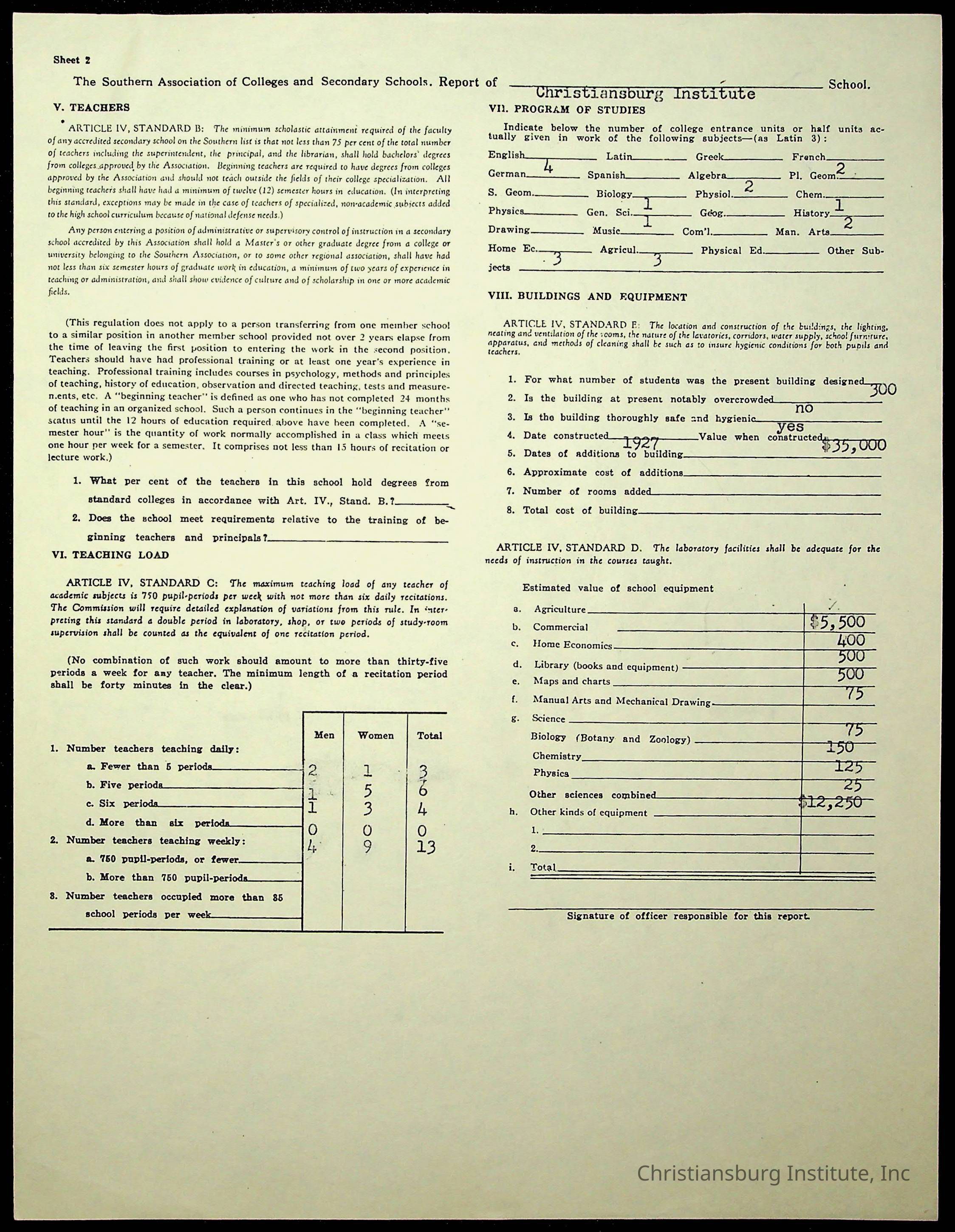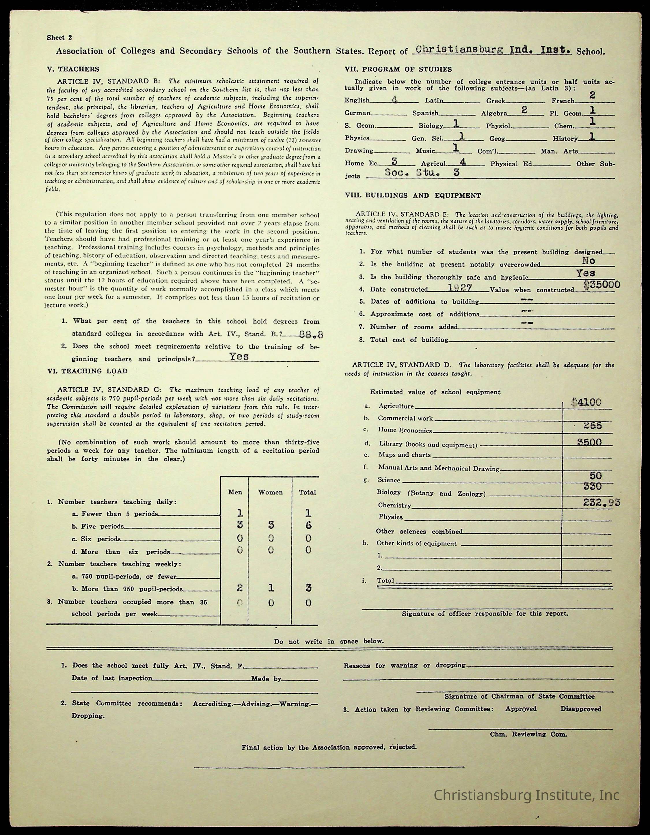 The second folder of an archive of material relating to the reports to the Southern Association of Colleges and Secondary Schools in Richmond, Virginia. Materials include correspondence, reports, and forms dated 1934-1964.Collection