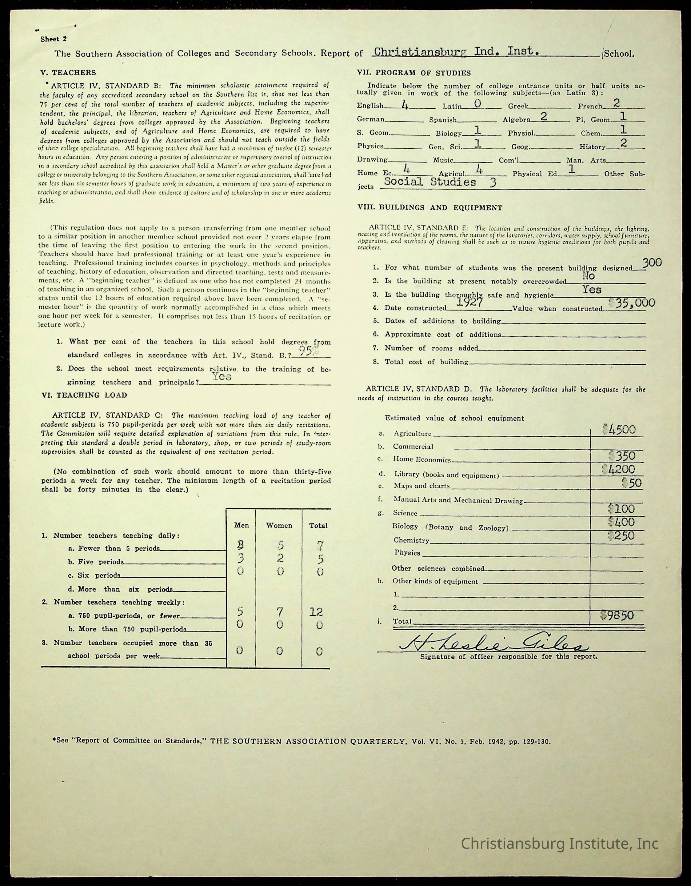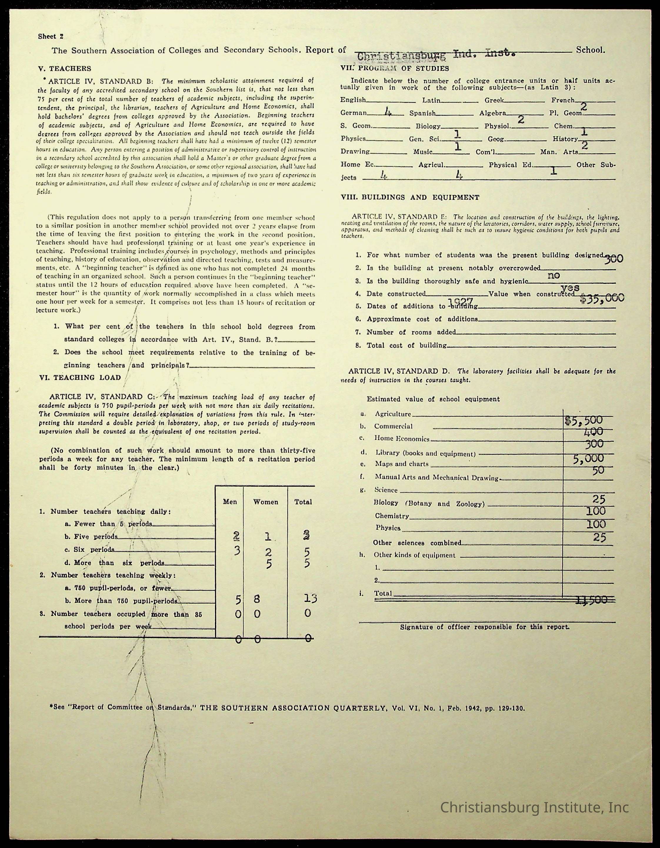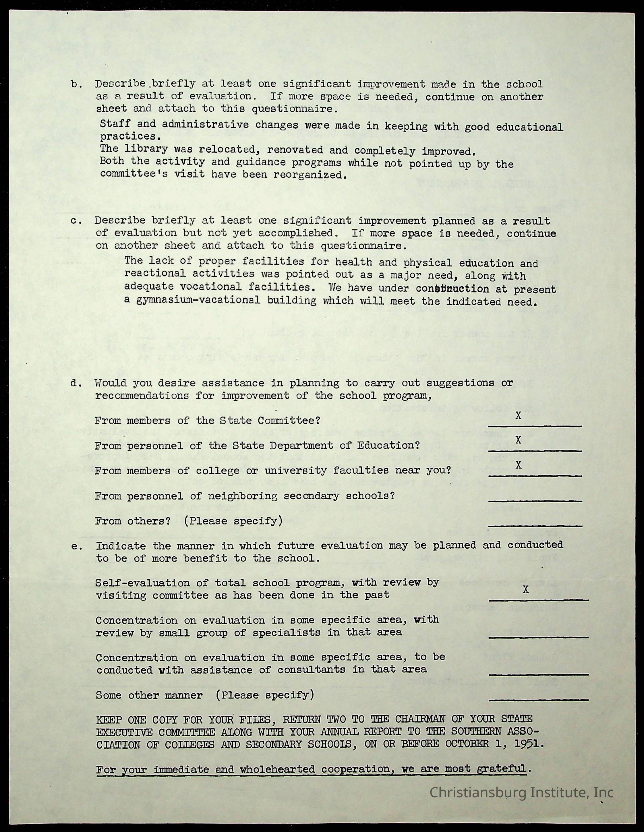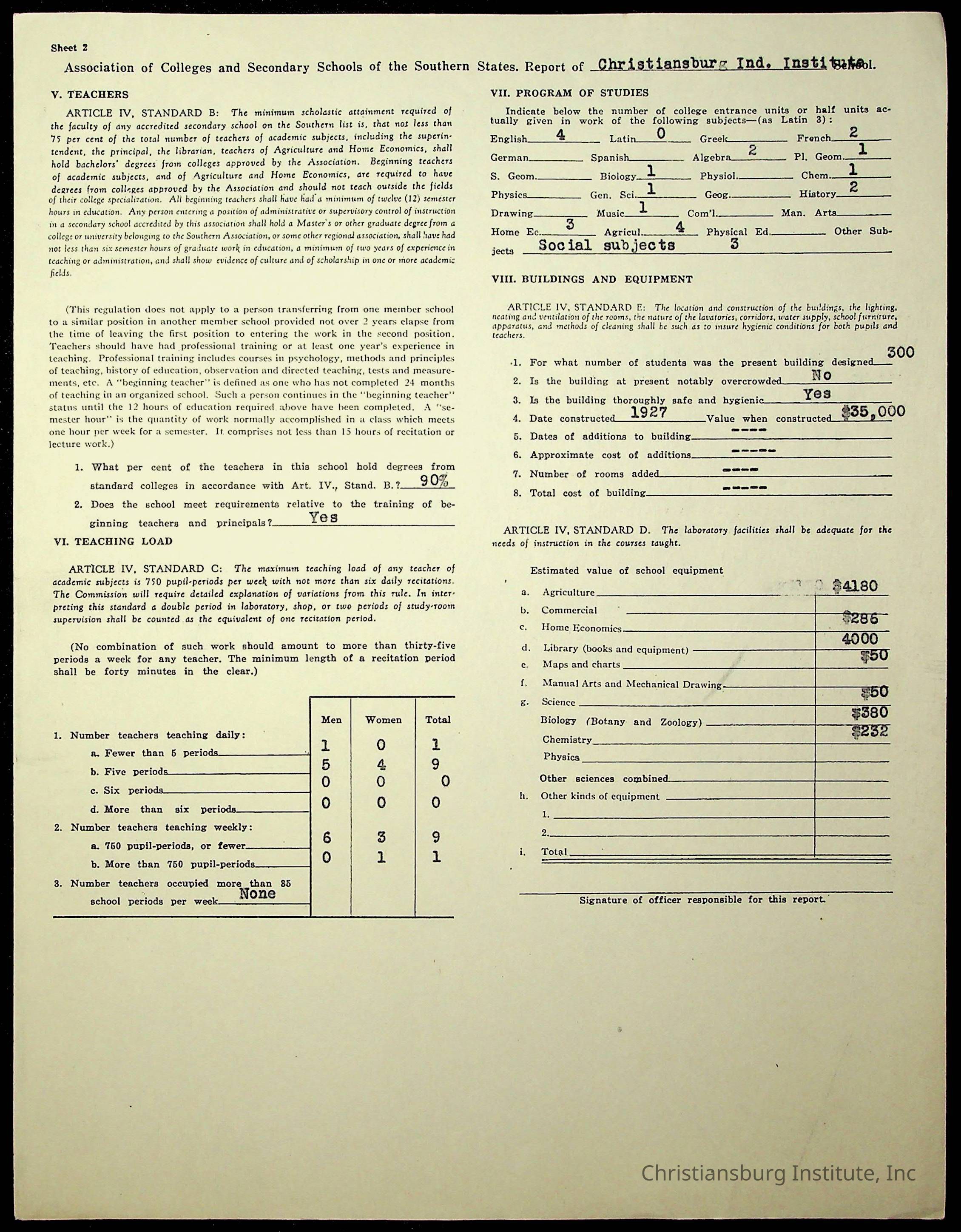 The second folder of an archive of material relating to the reports to the Southern Association of Colleges and Secondary Schools in Richmond, Virginia. Materials include correspondence, reports, and forms dated 1934-1964.Collection