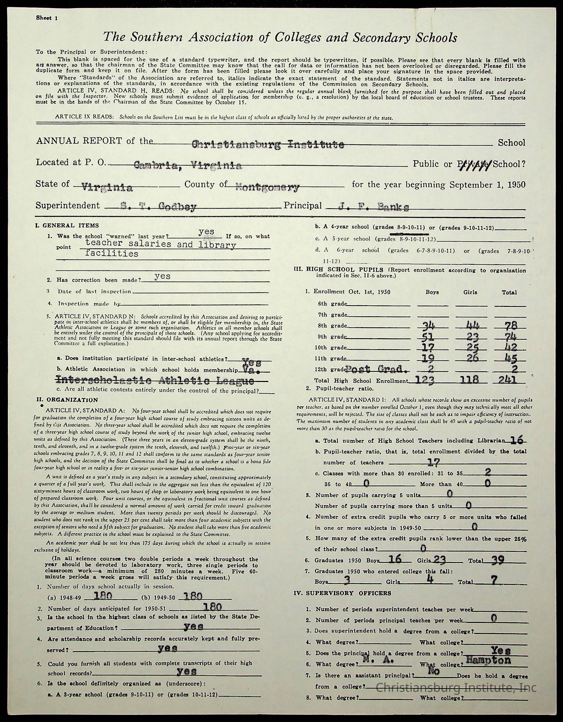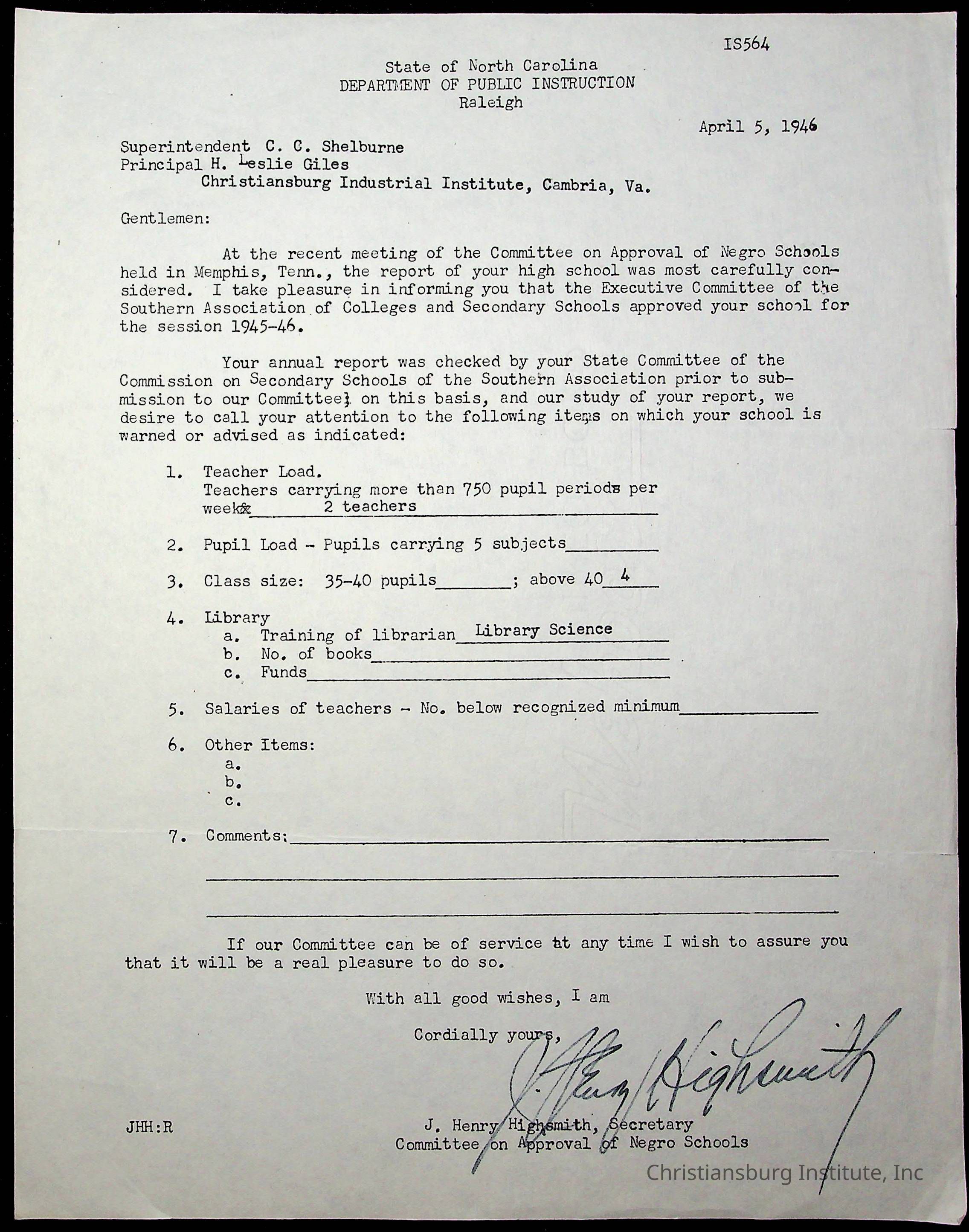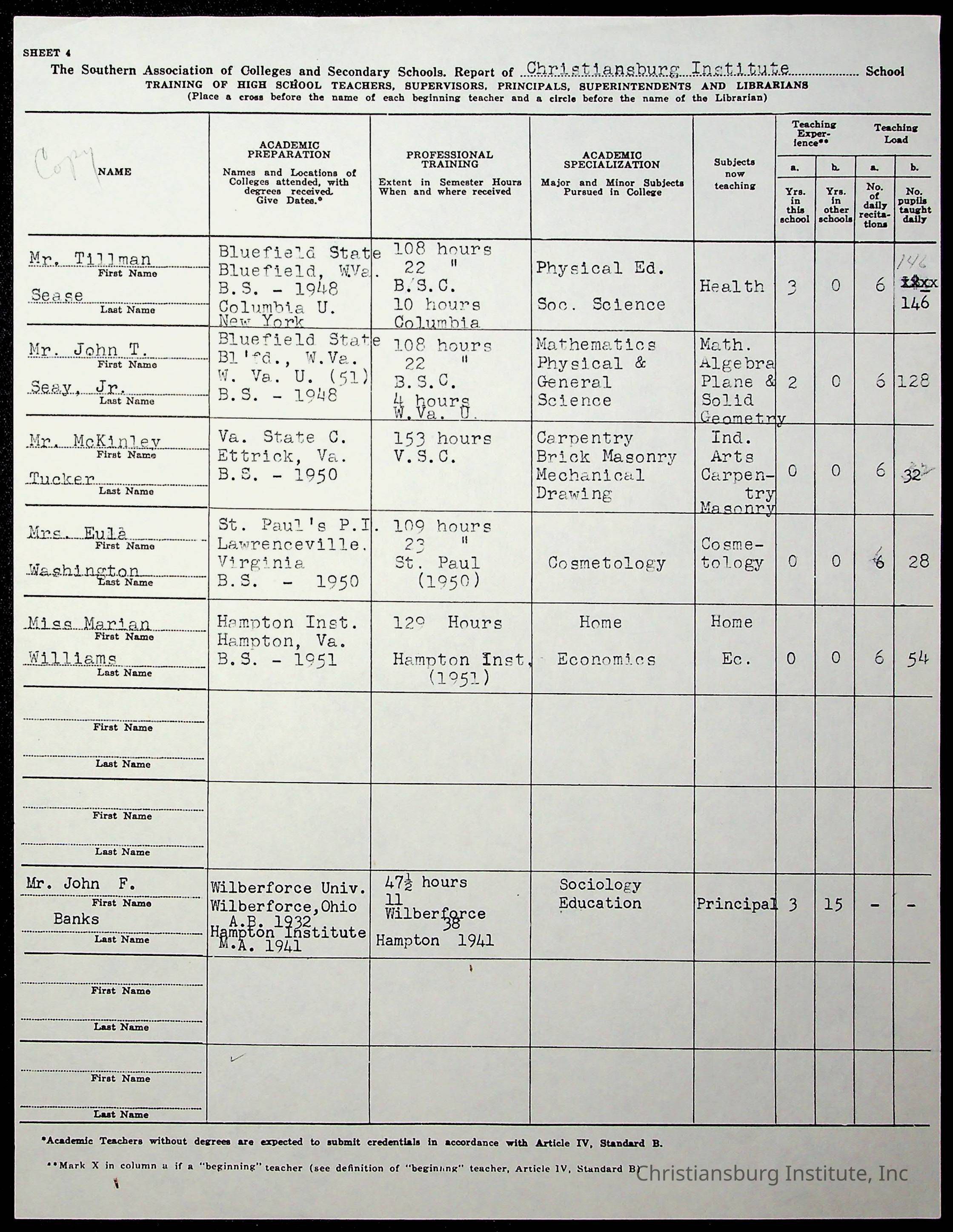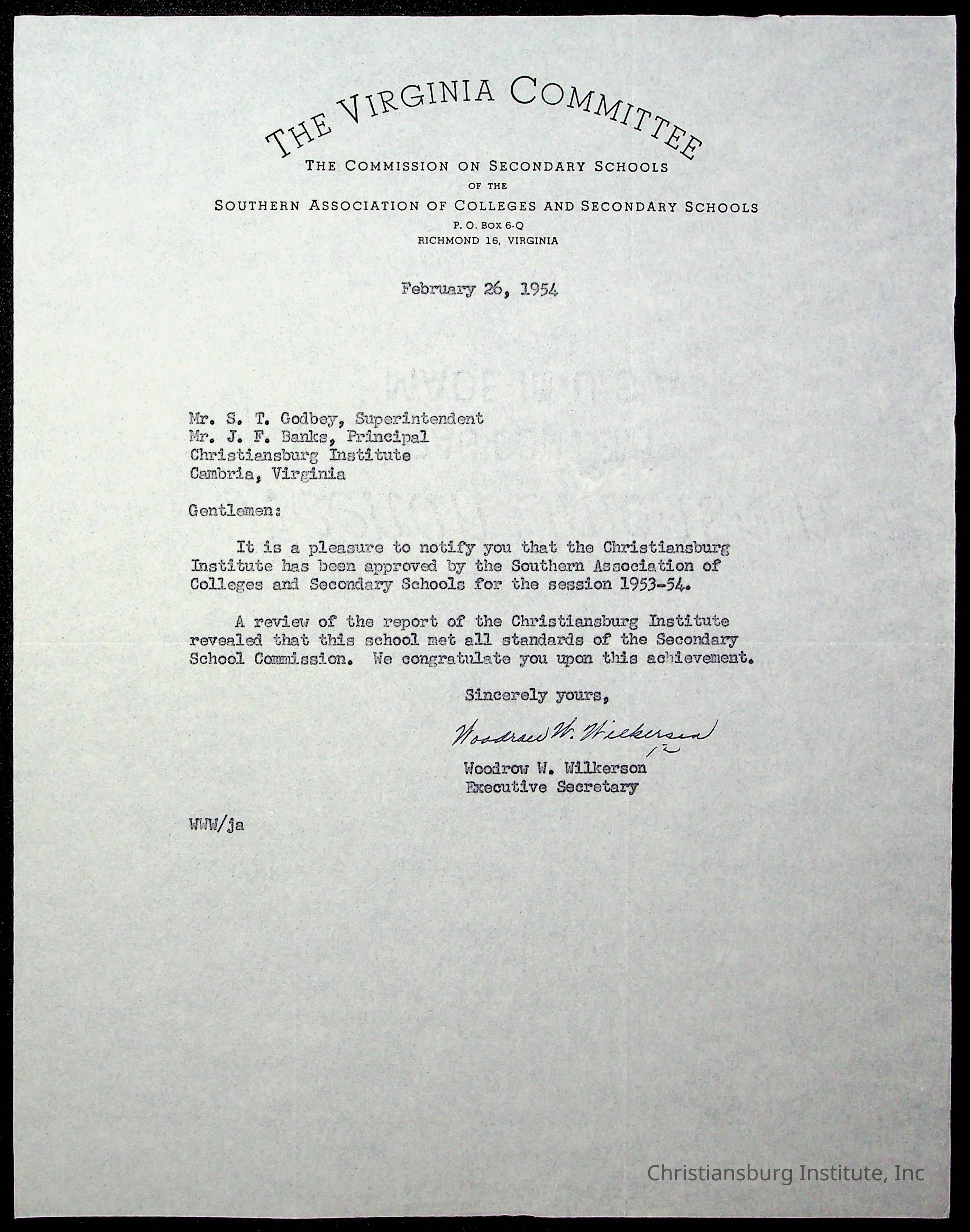 Christiansburg Institute, Southern Association of Colleges and Schools, Wilkerson, Woodrow, Banks, John F.Related Places