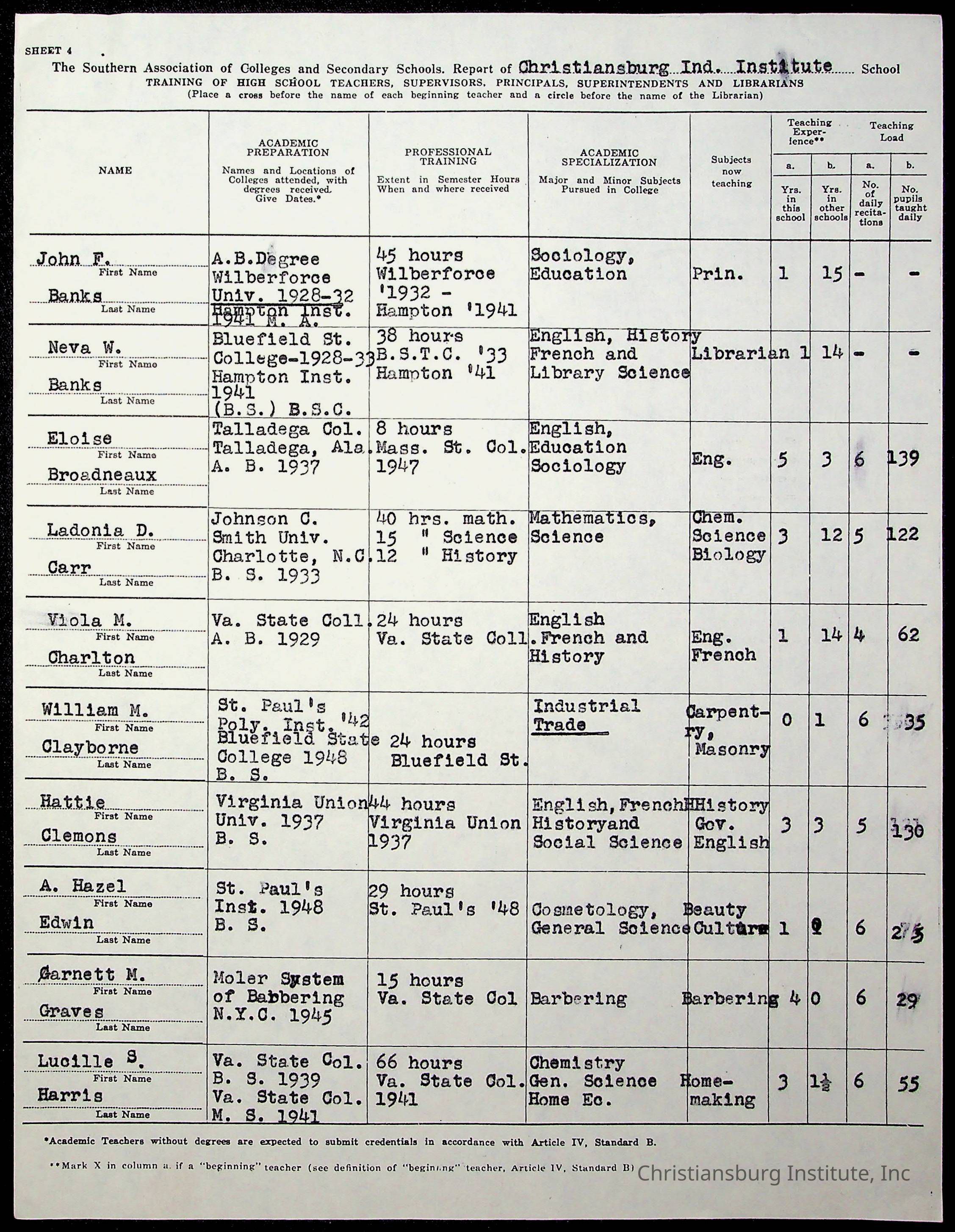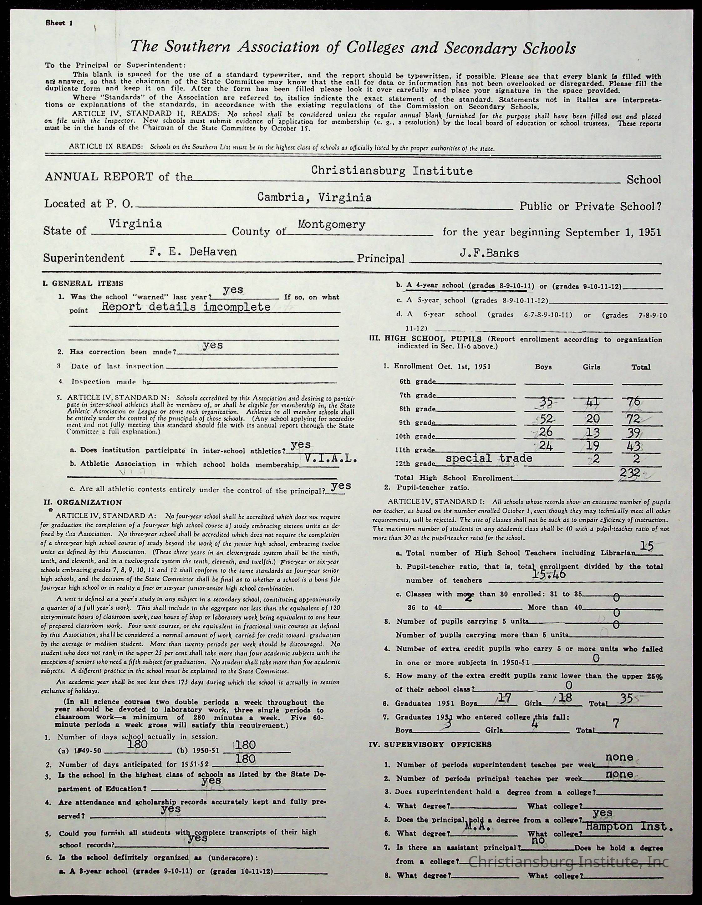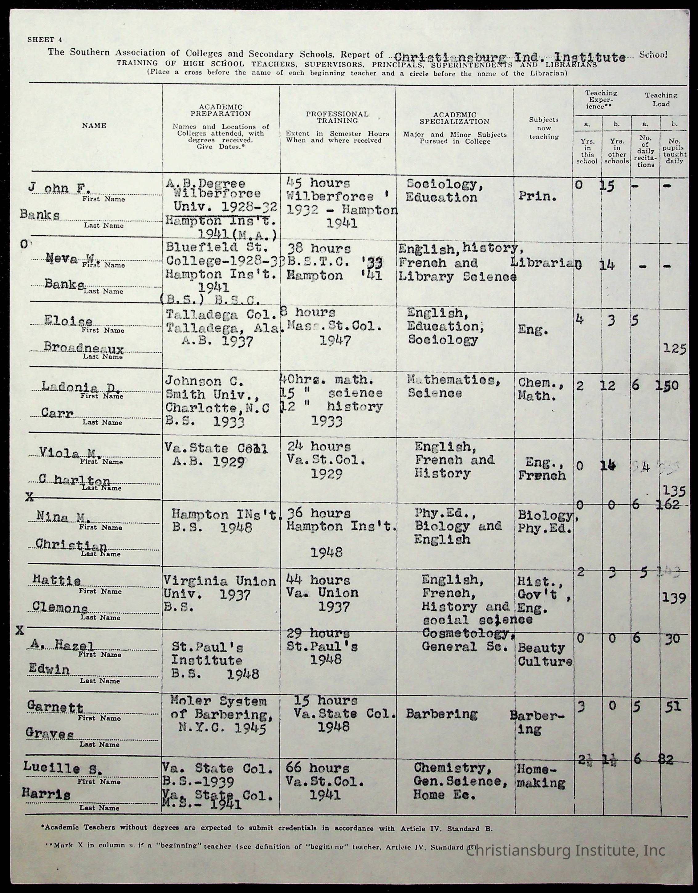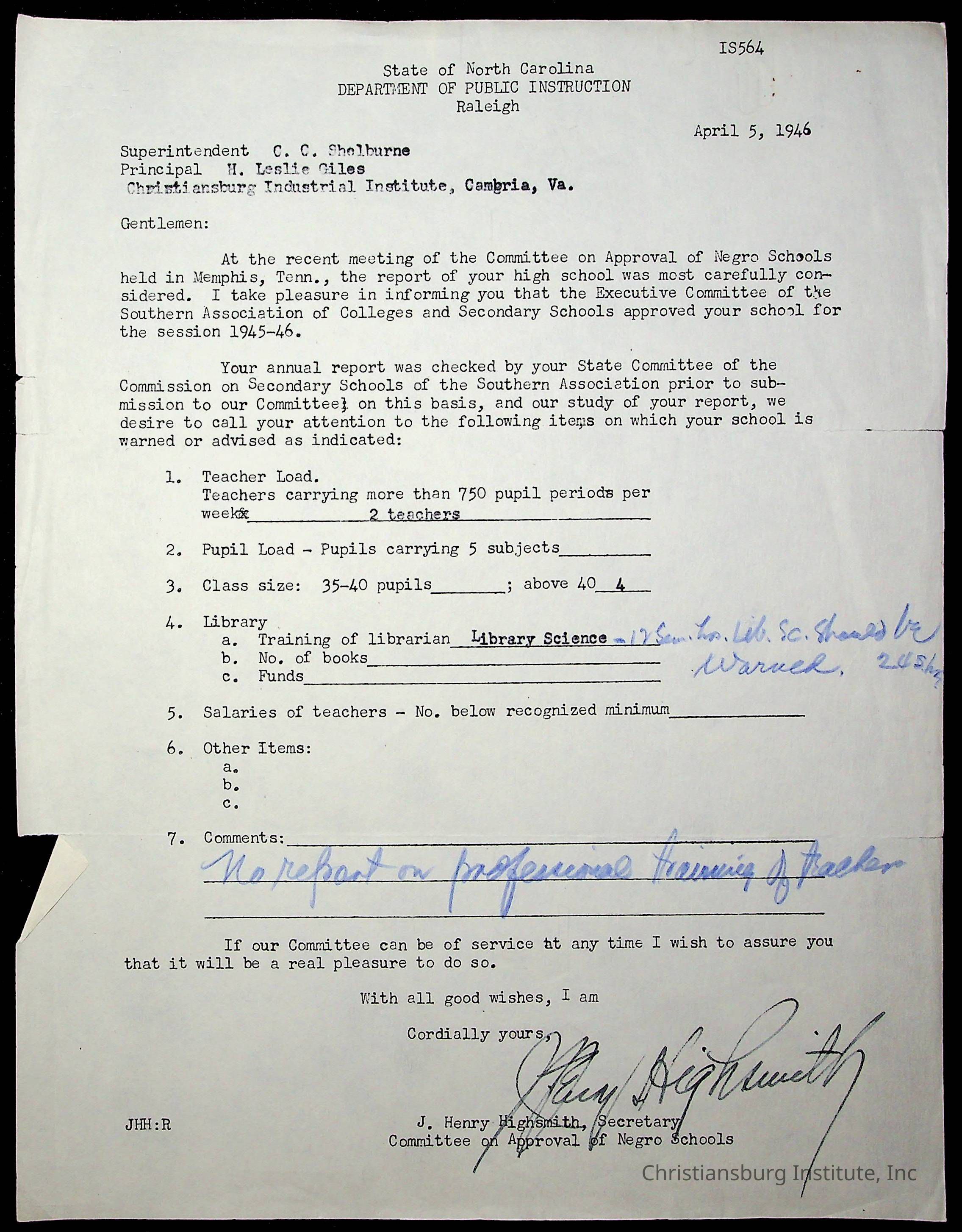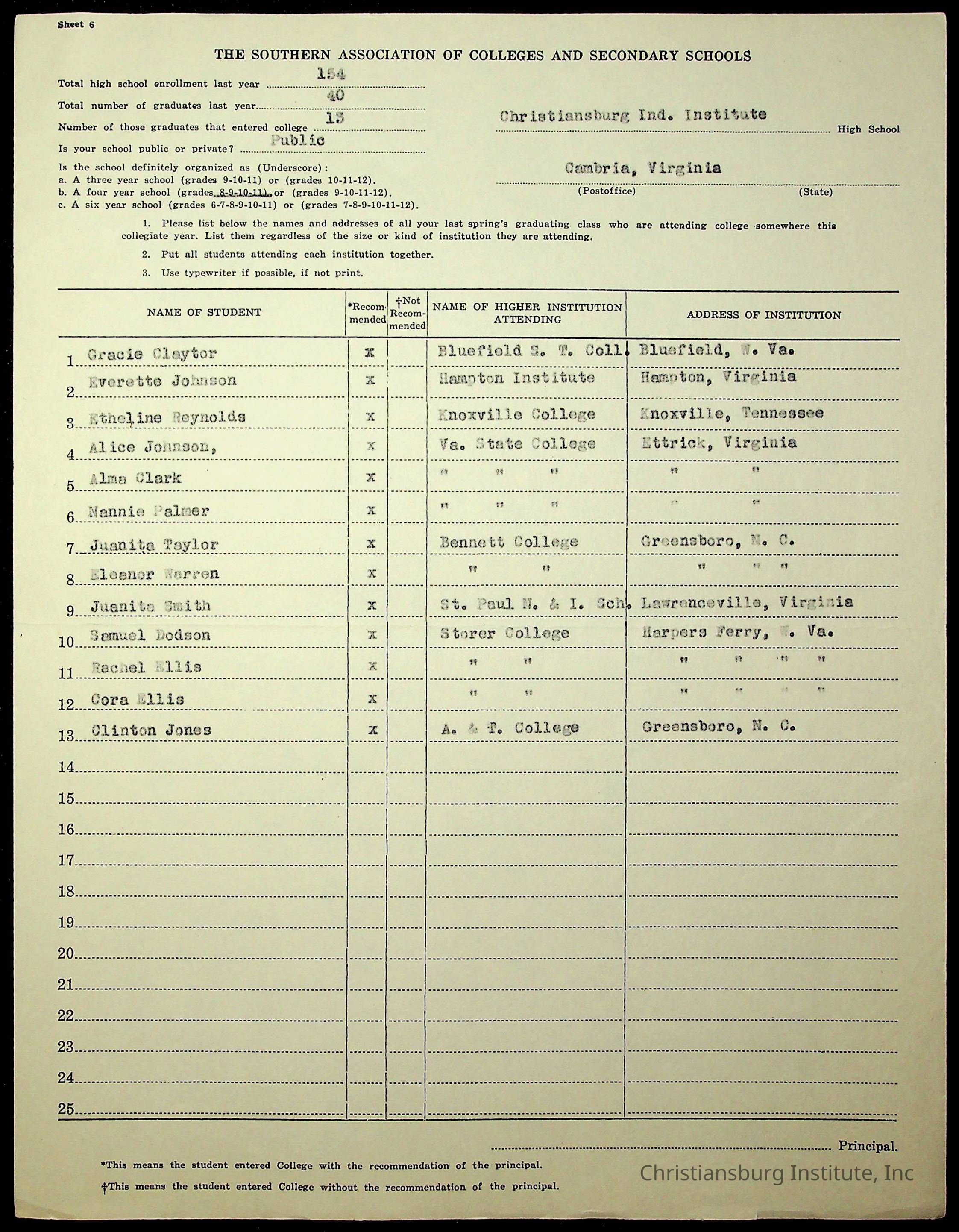 Christiansburg Institute, Southern Association of Colleges and Schools, Wilkerson, Woodrow, Banks, John F.Related Places