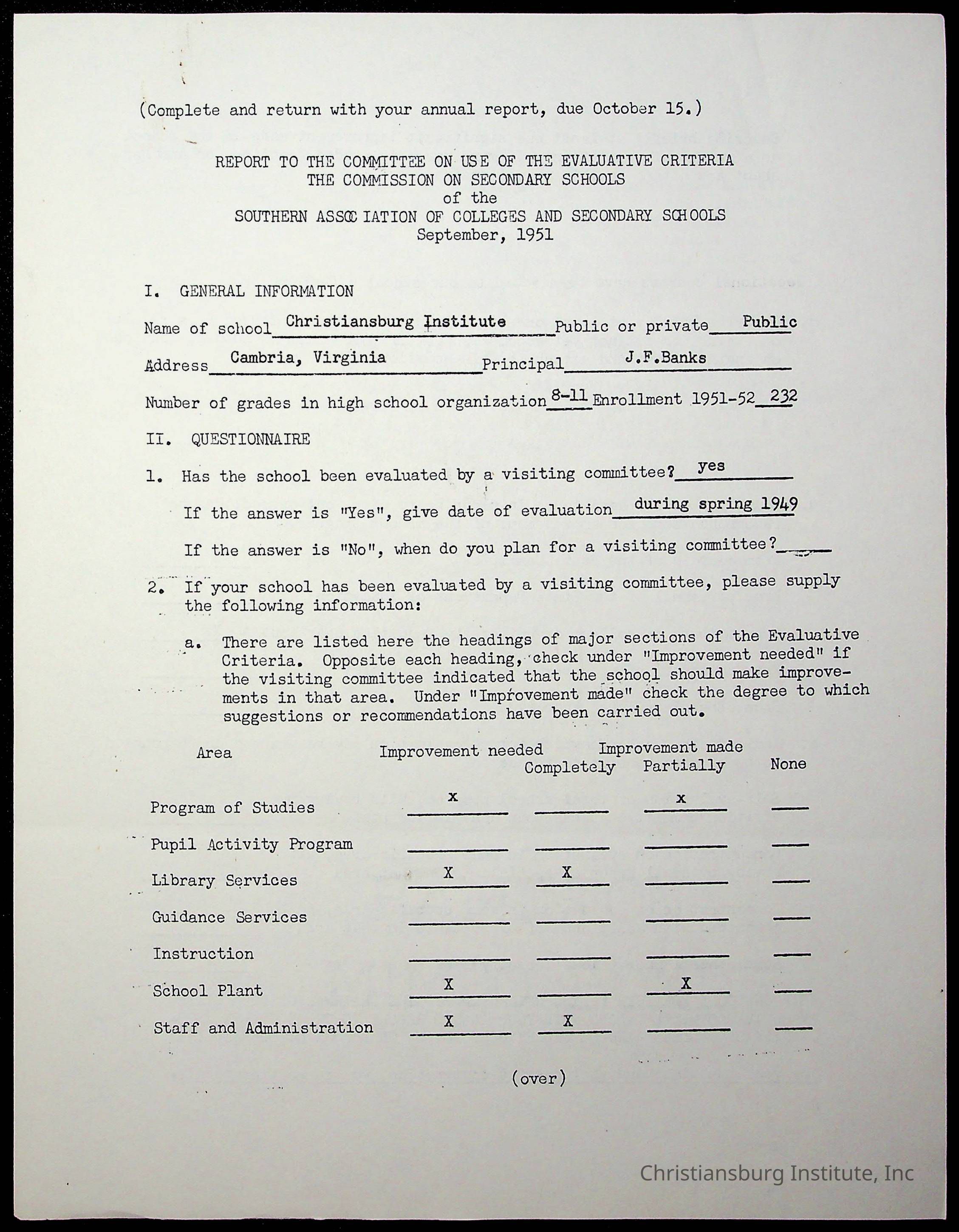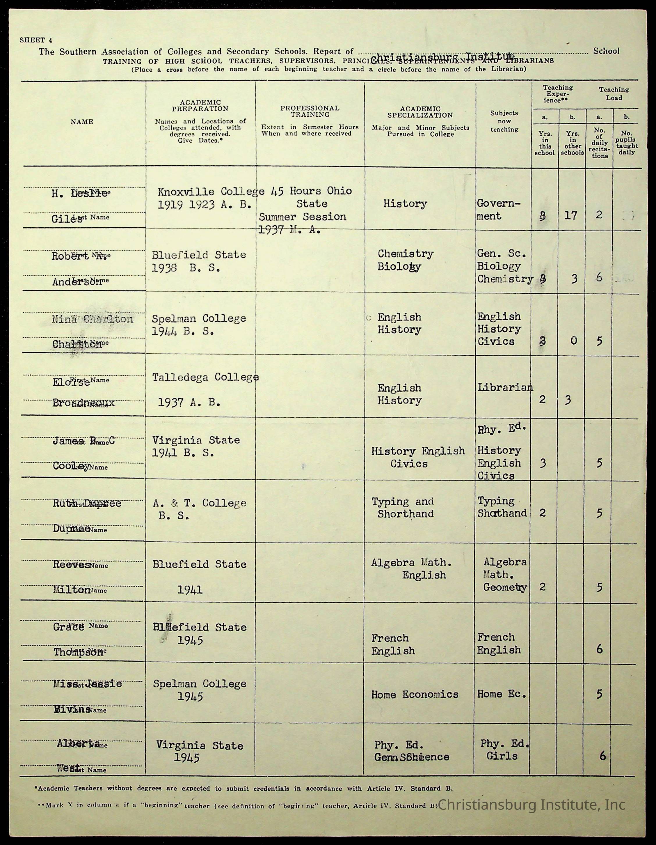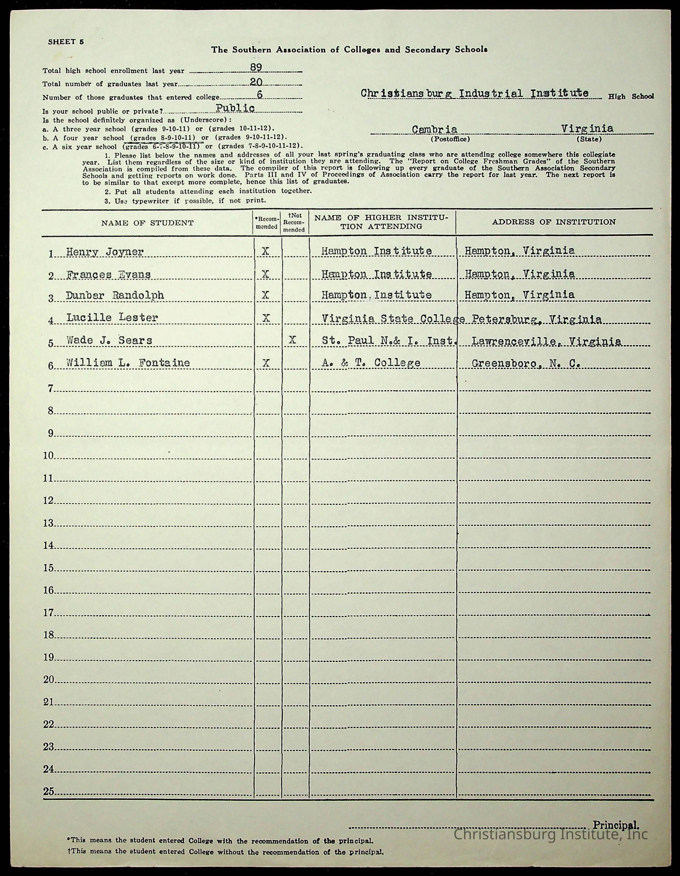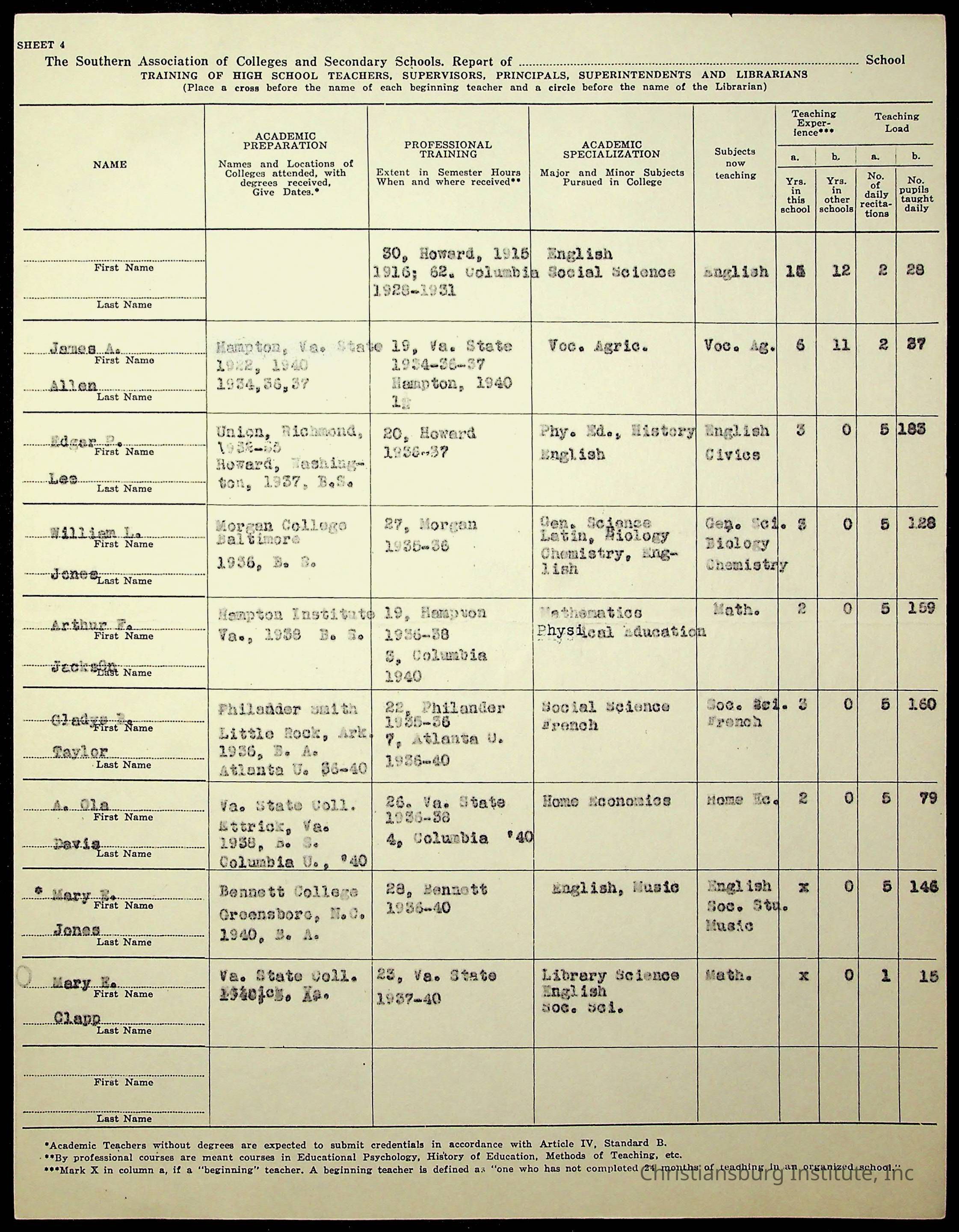 Christiansburg Institute, Southern Association of Colleges and Schools, Wilkerson, Woodrow, Banks, John F.Related Places