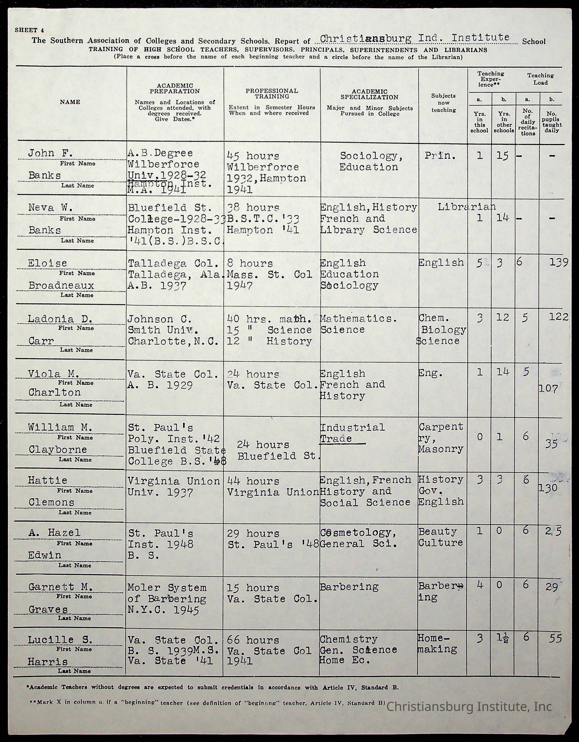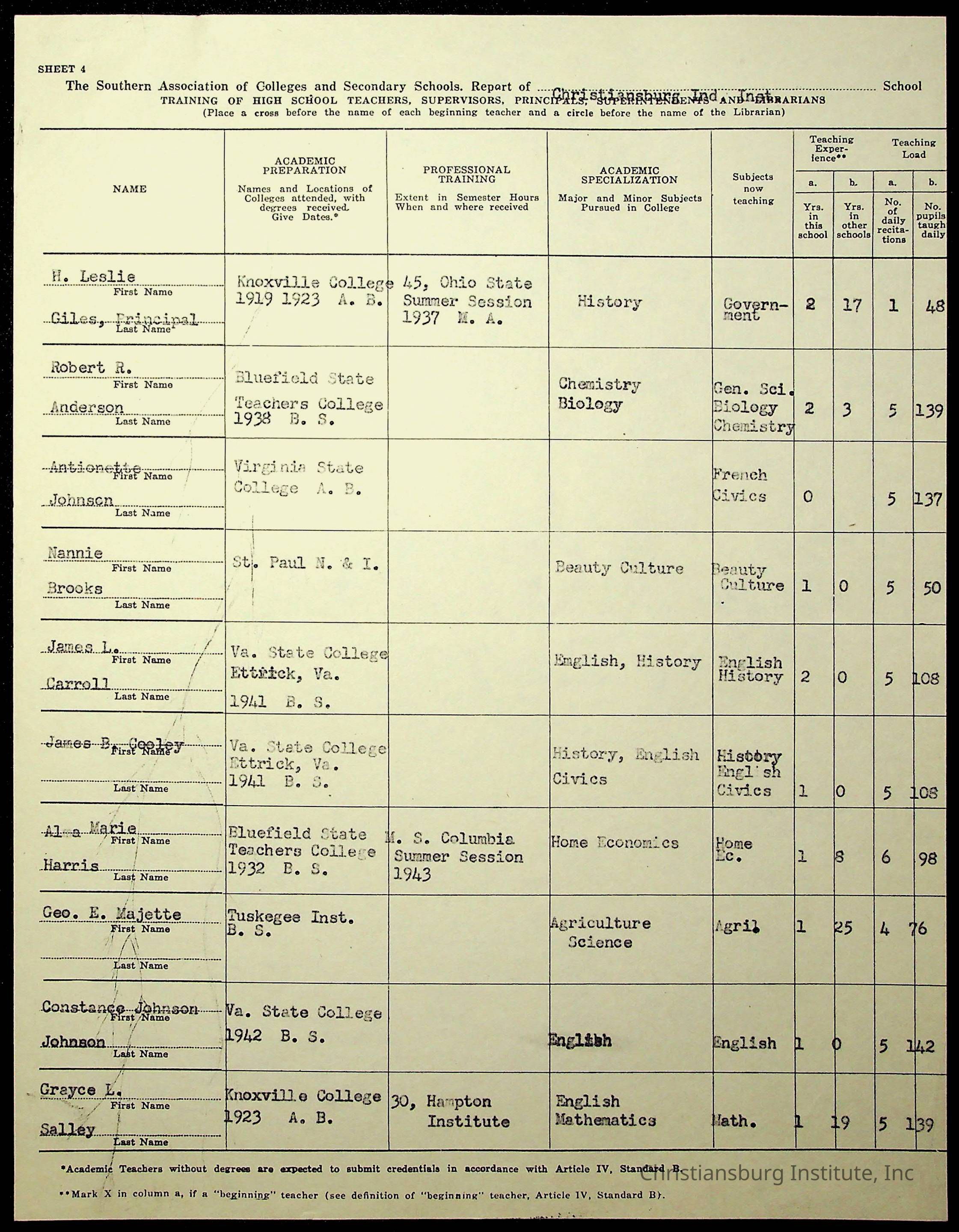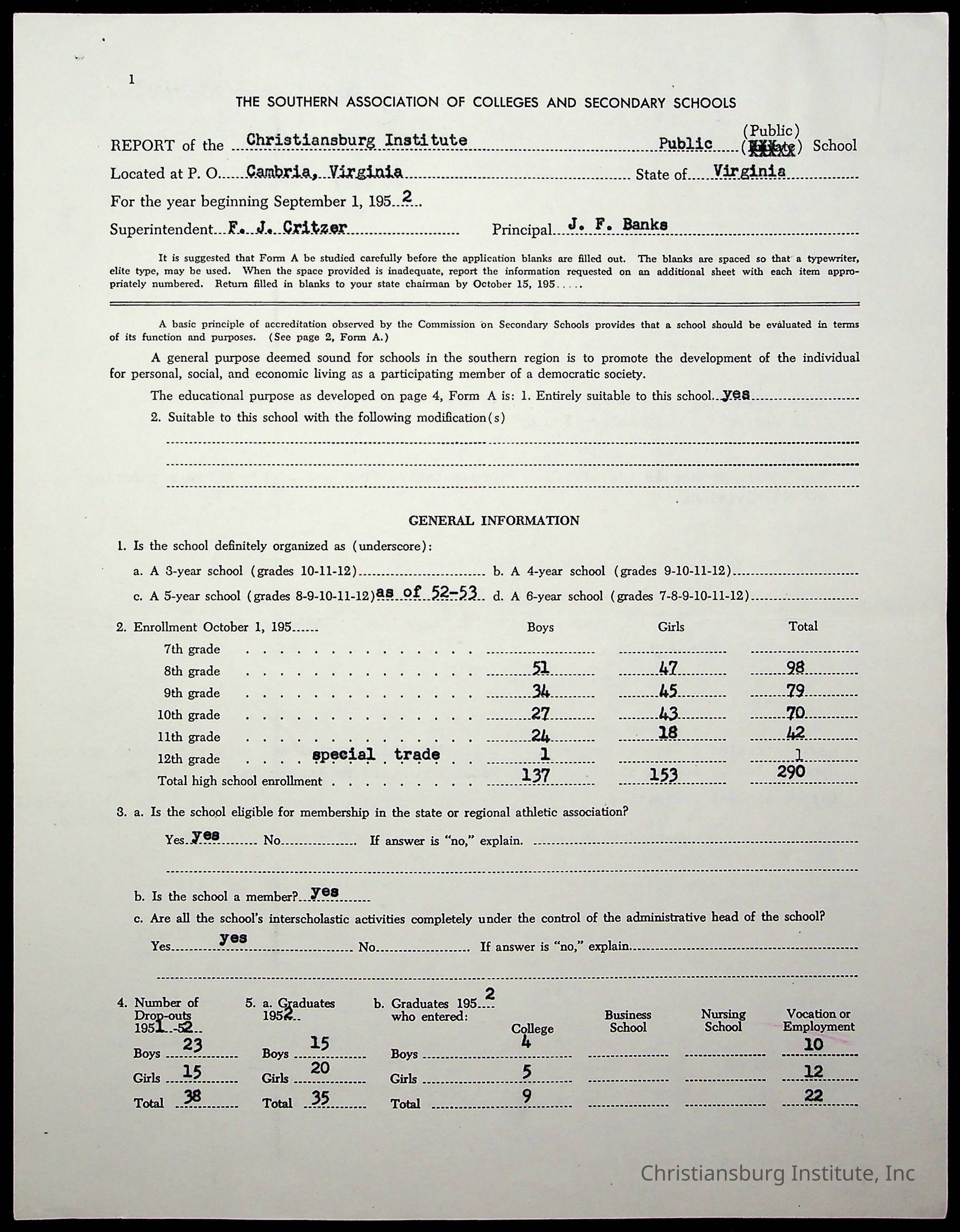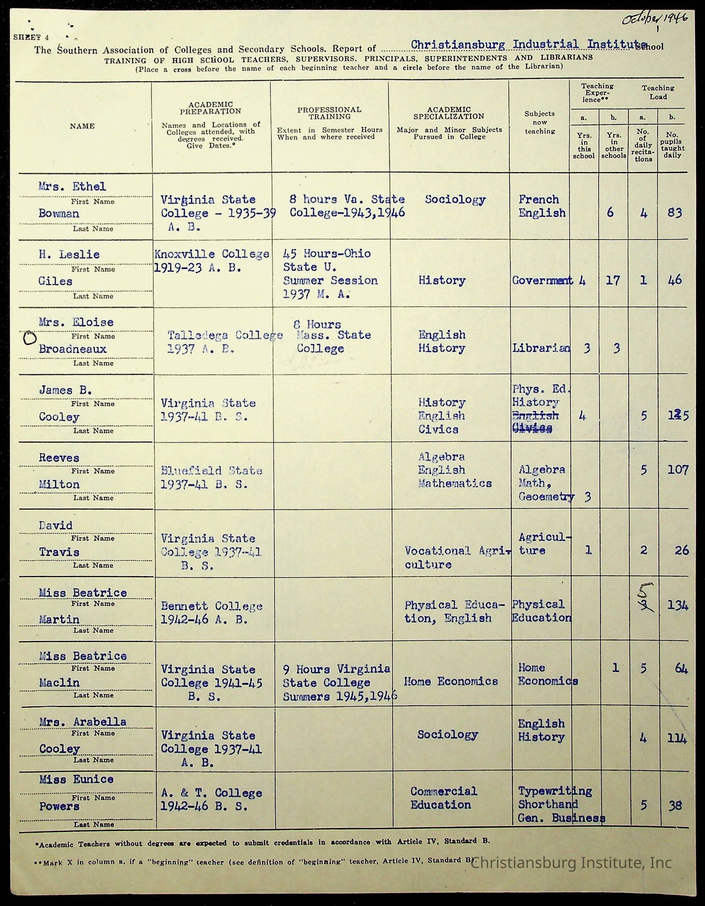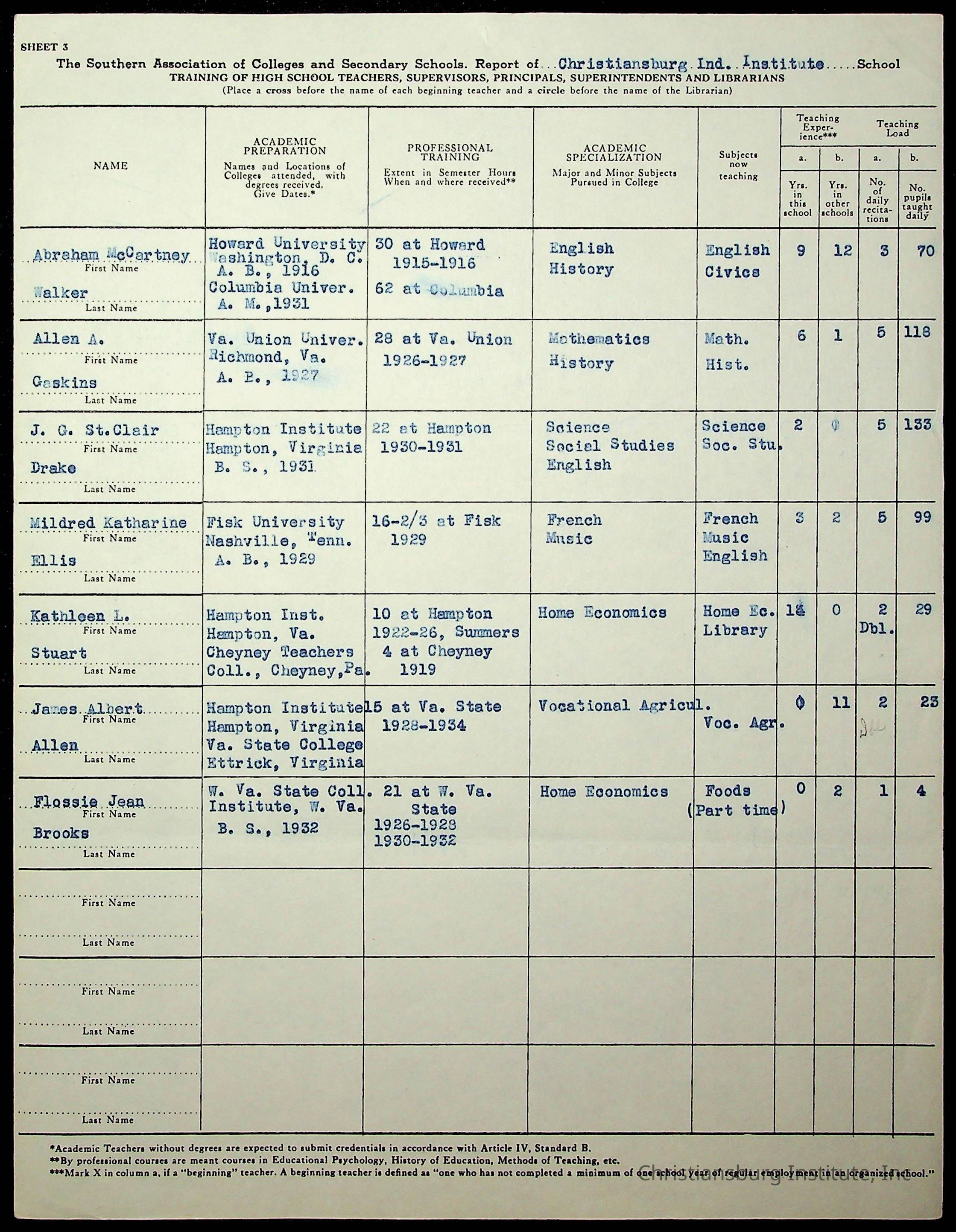 Christiansburg Institute, Southern Association of Colleges and Schools, Wilkerson, Woodrow, Banks, John F.Related Places