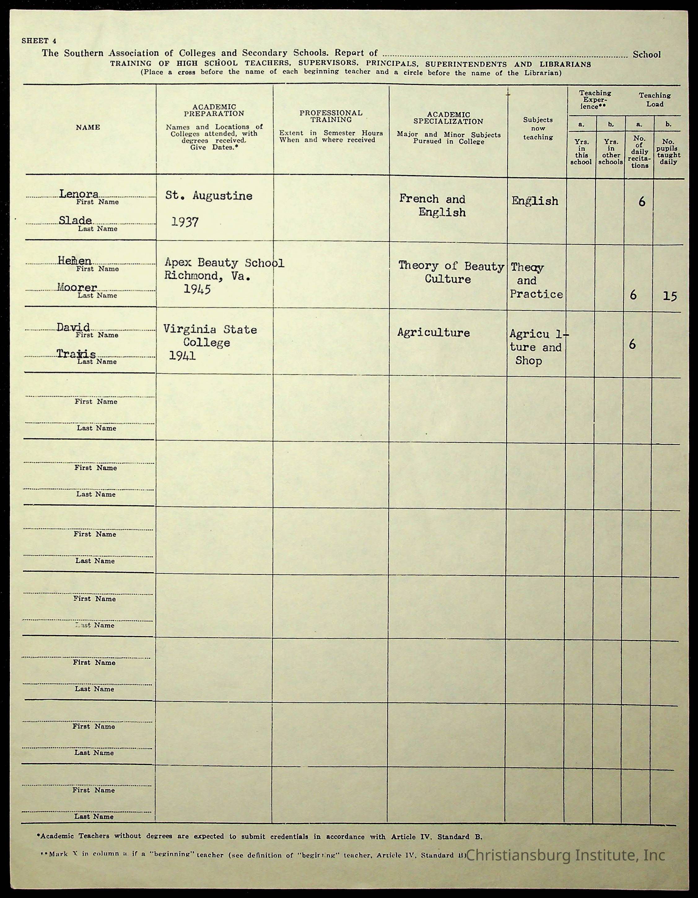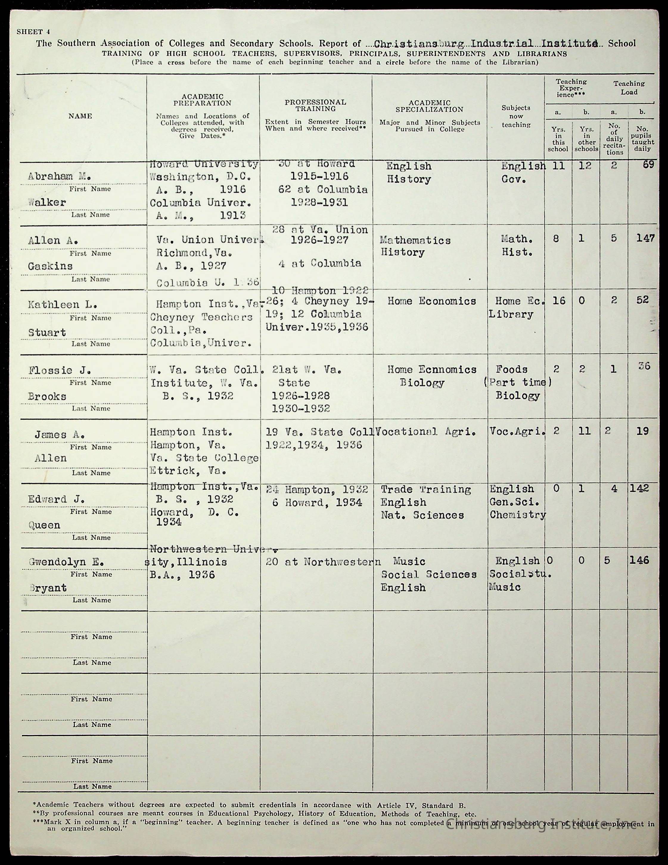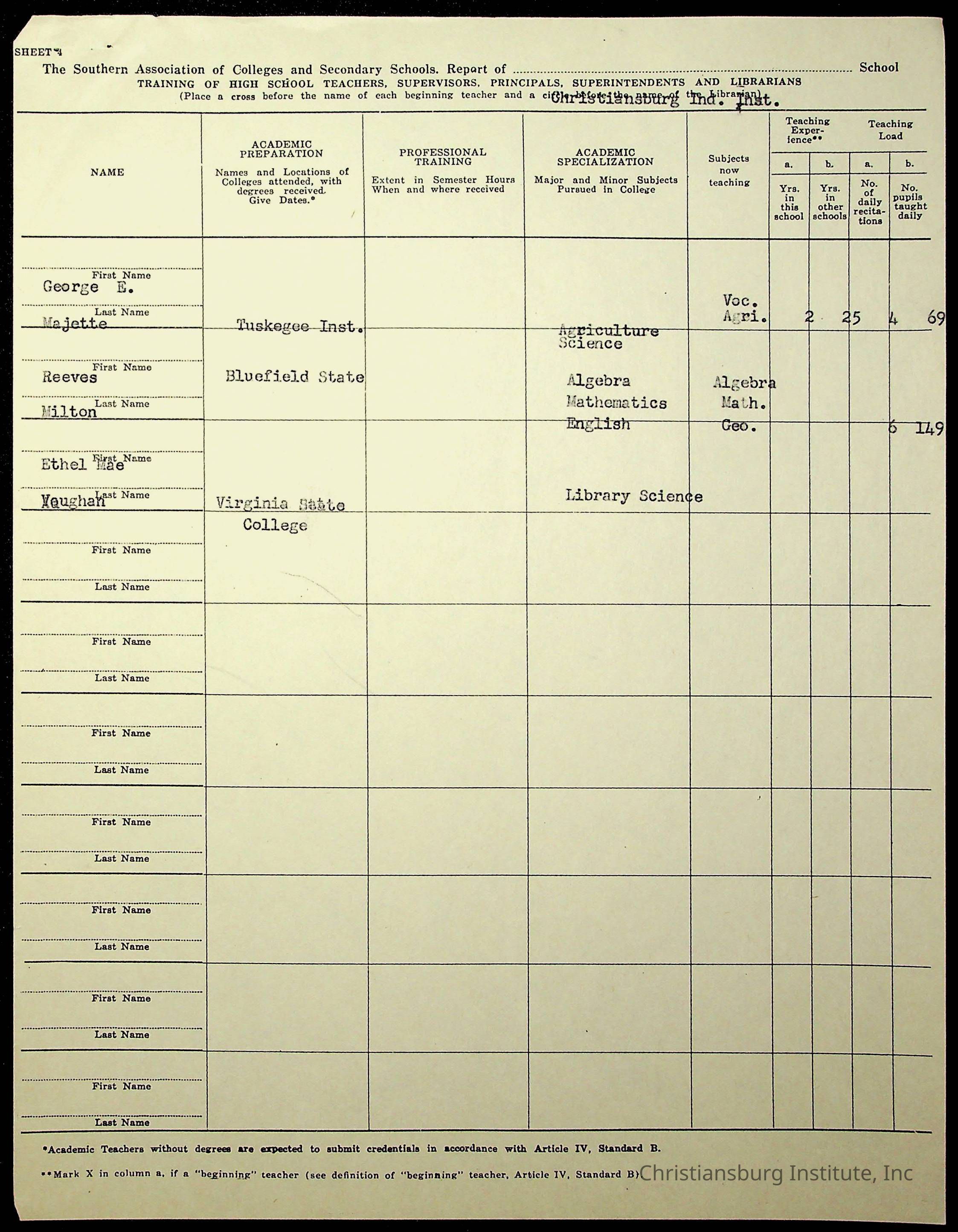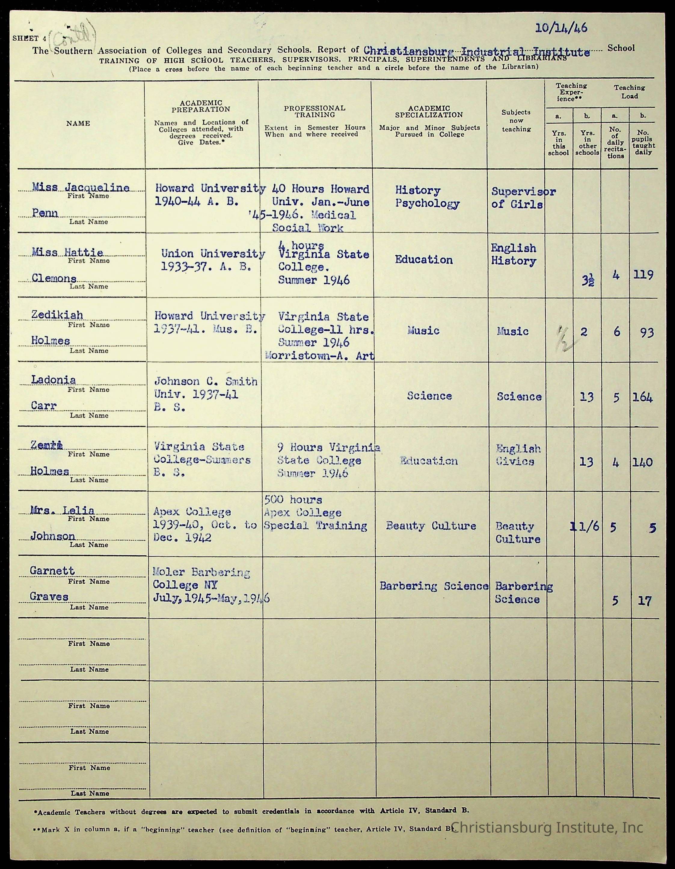 Christiansburg Institute, Southern Association of Colleges and Schools, Wilkerson, Woodrow, Banks, John F.Related Places