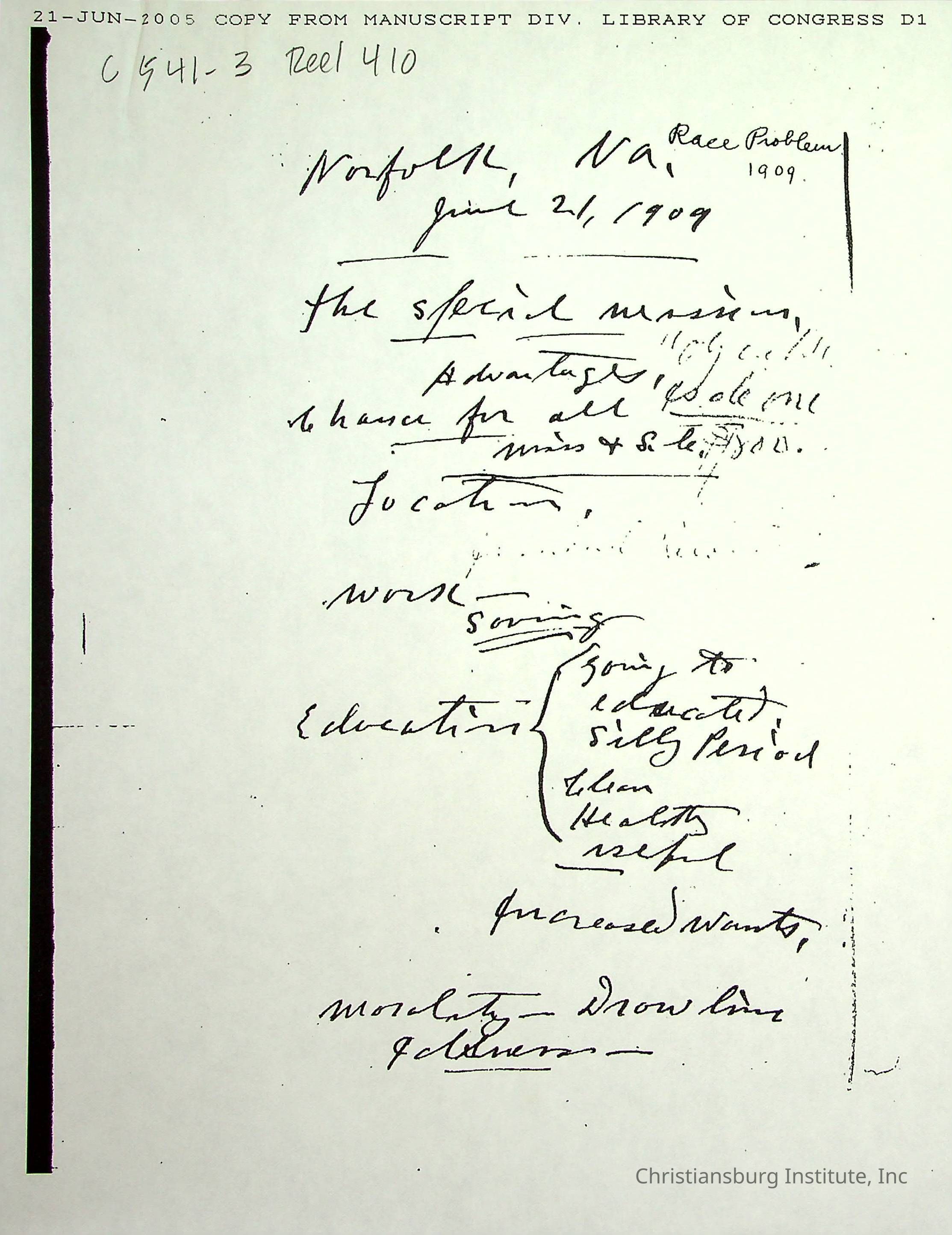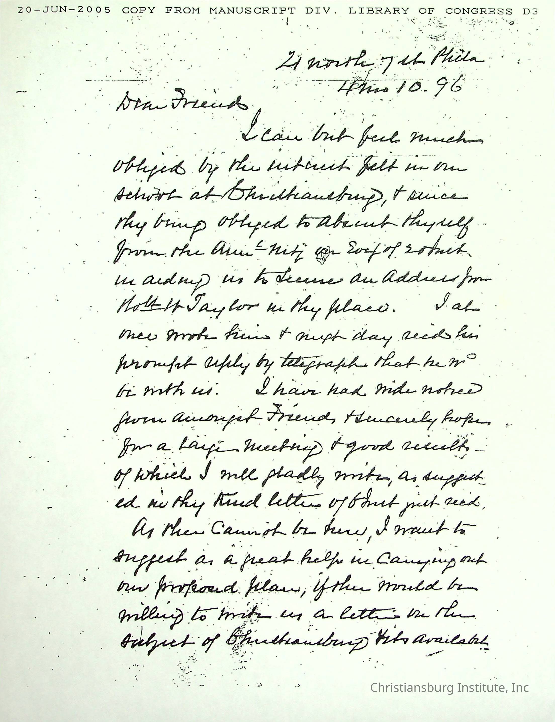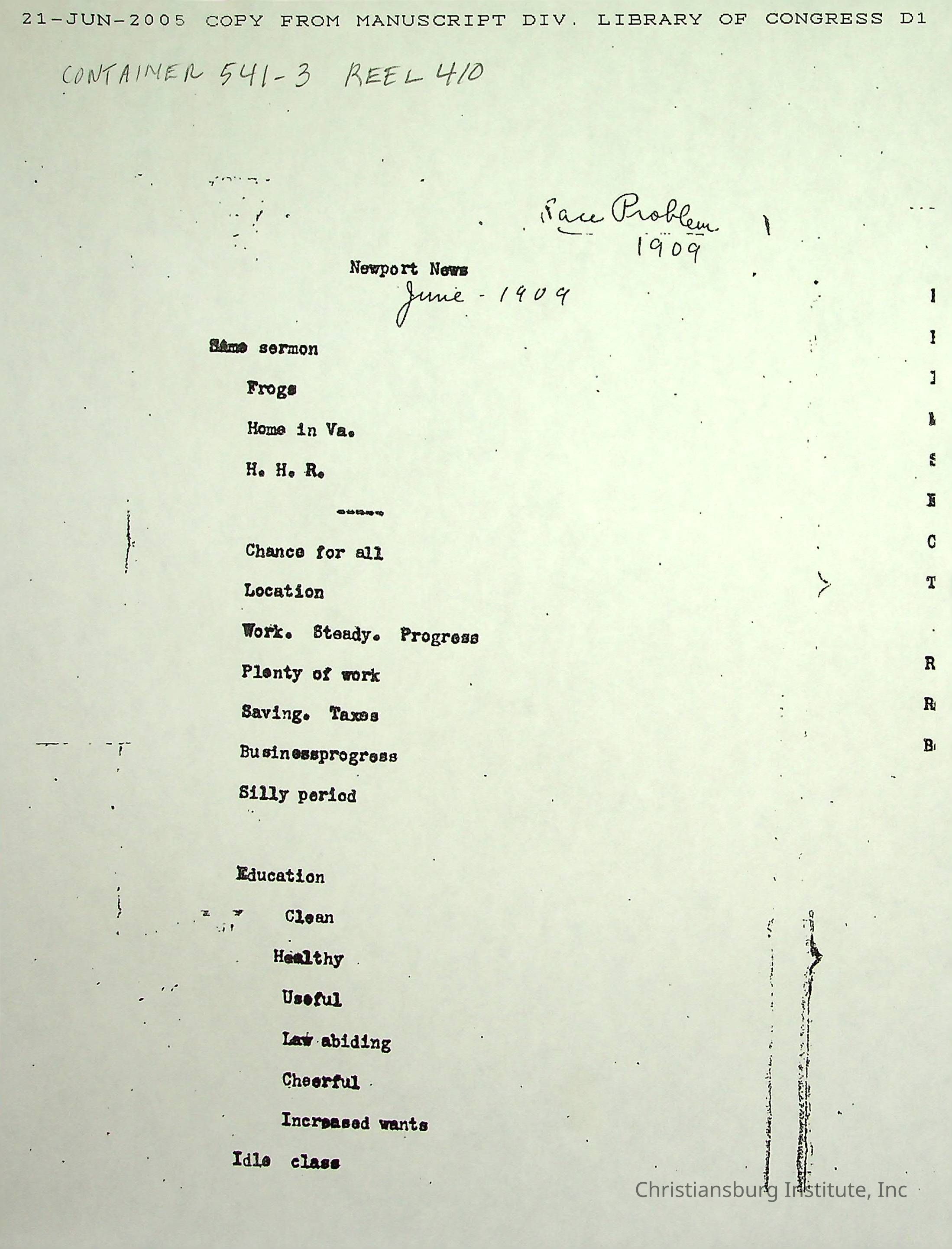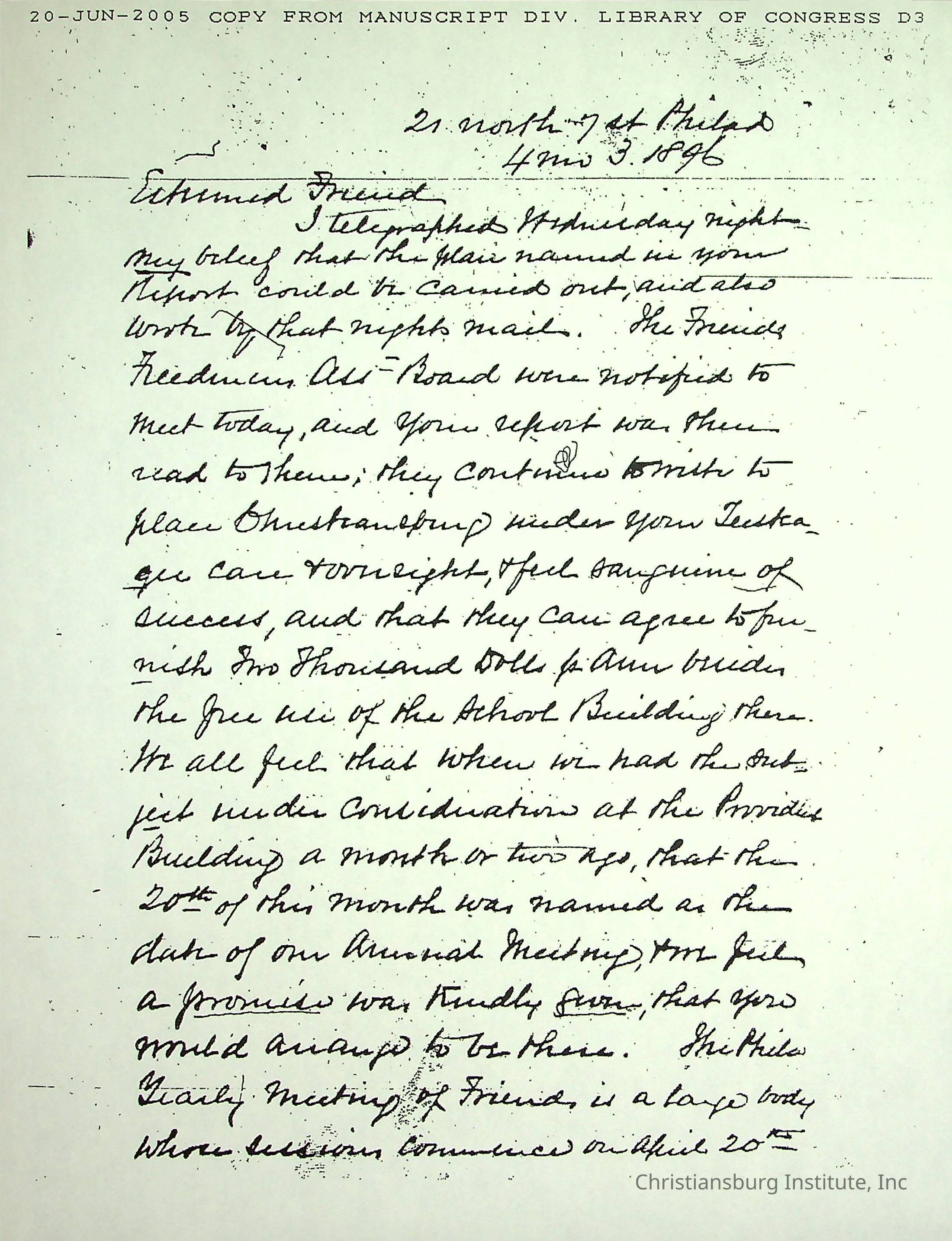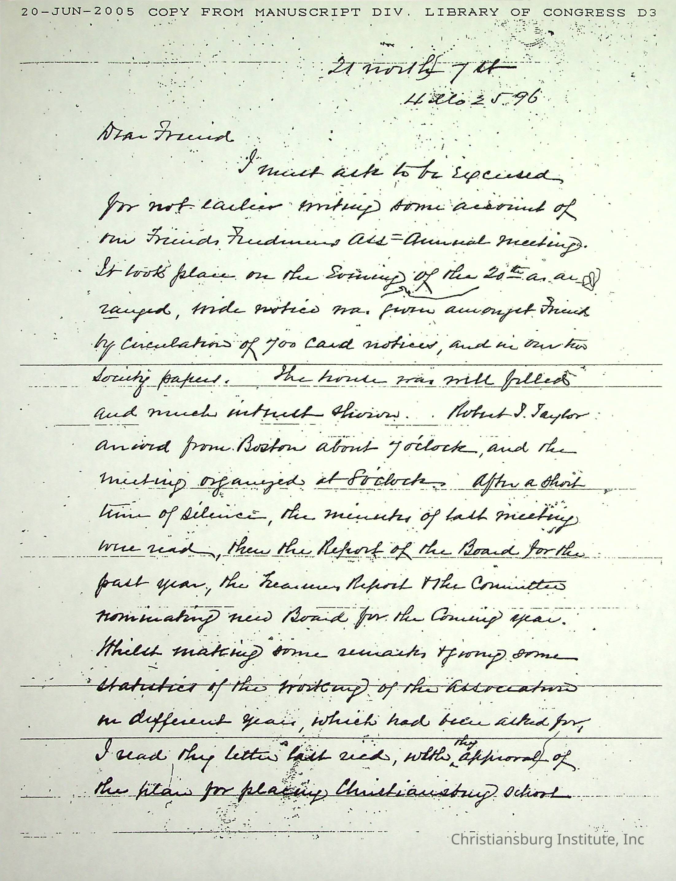 A collection of research materials from the Library of Congress dated June 21st, 2005. The materials are associated with the Friends Freedman's Association.Creator