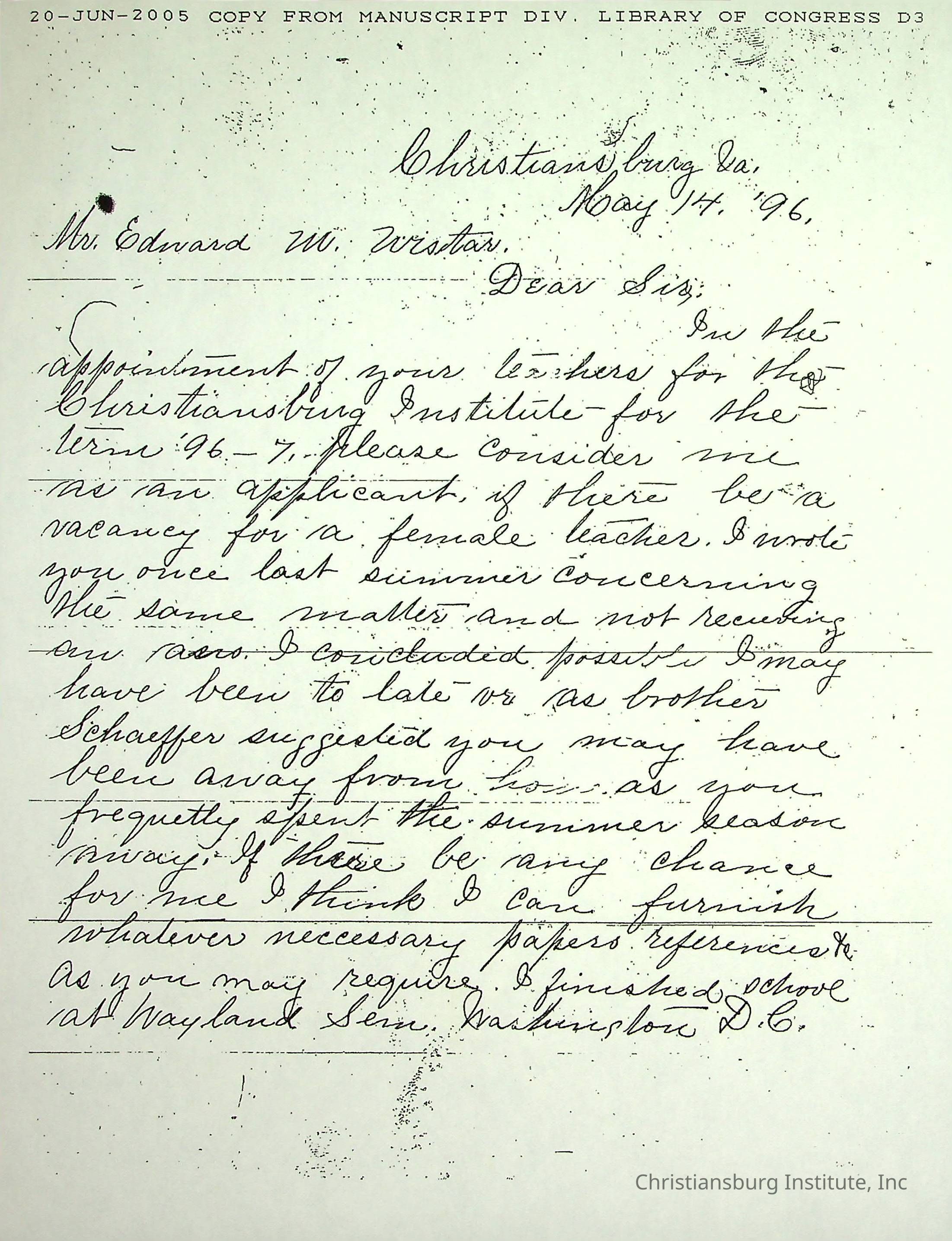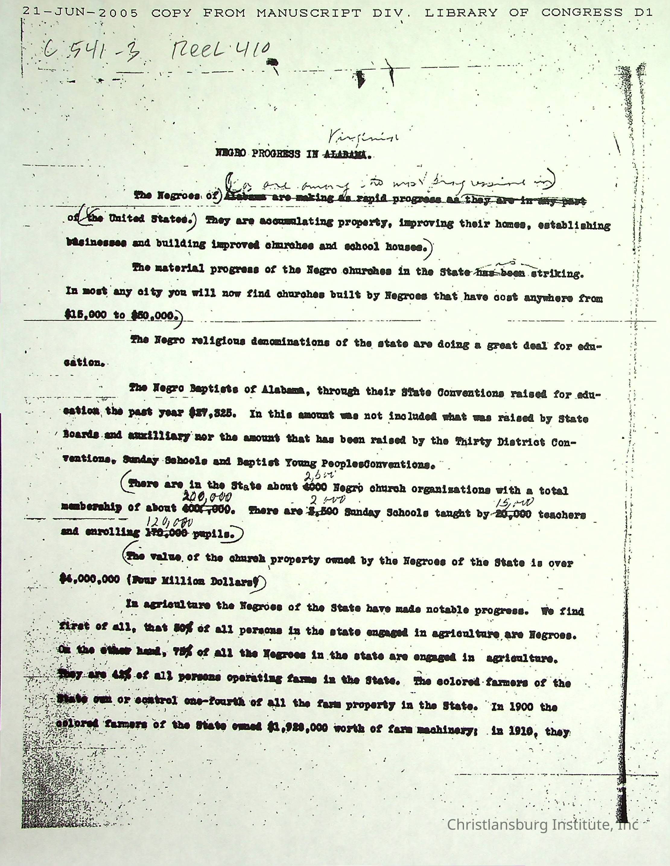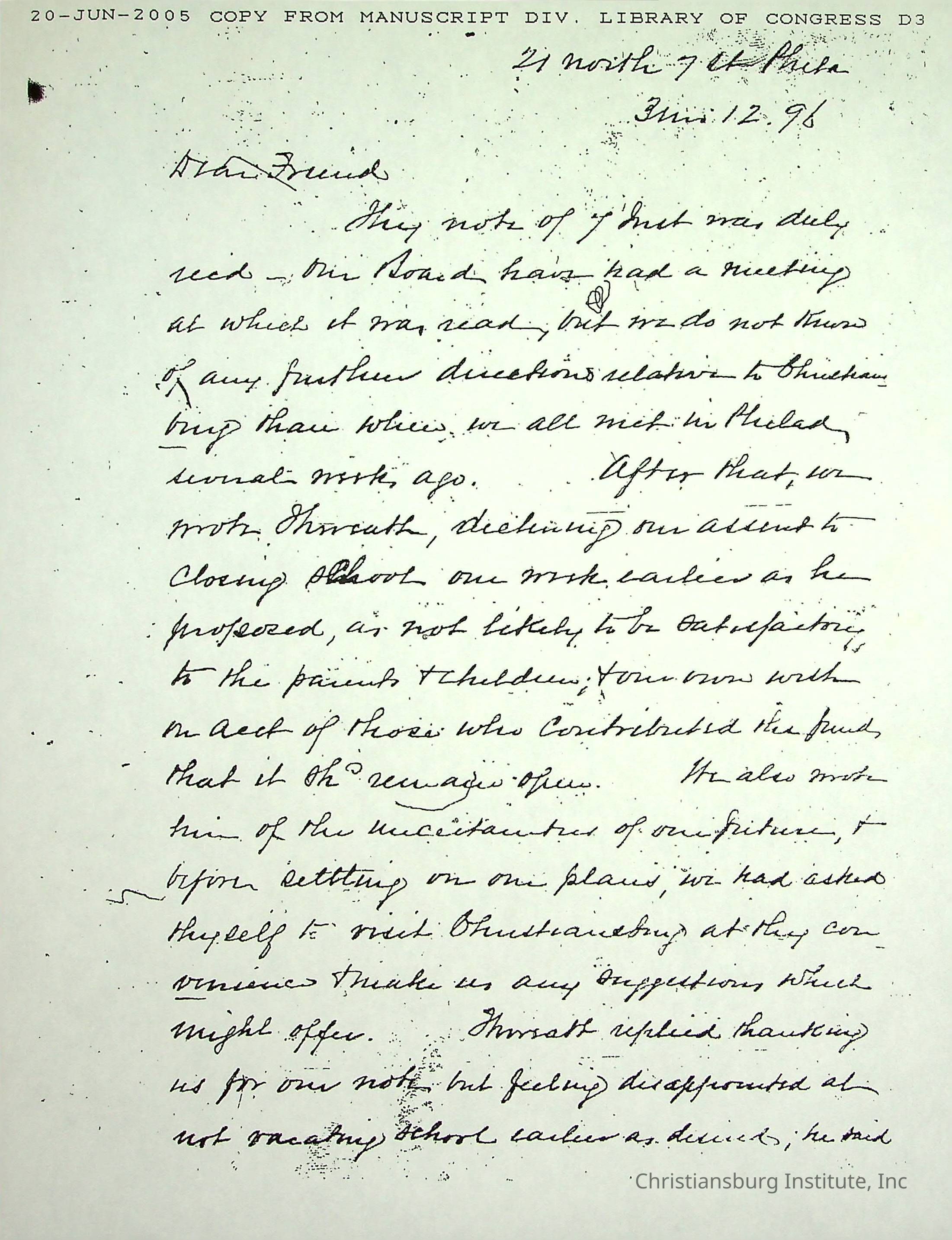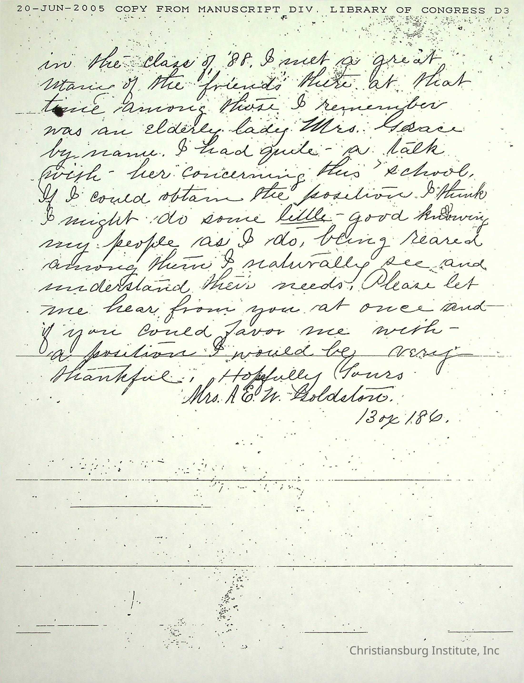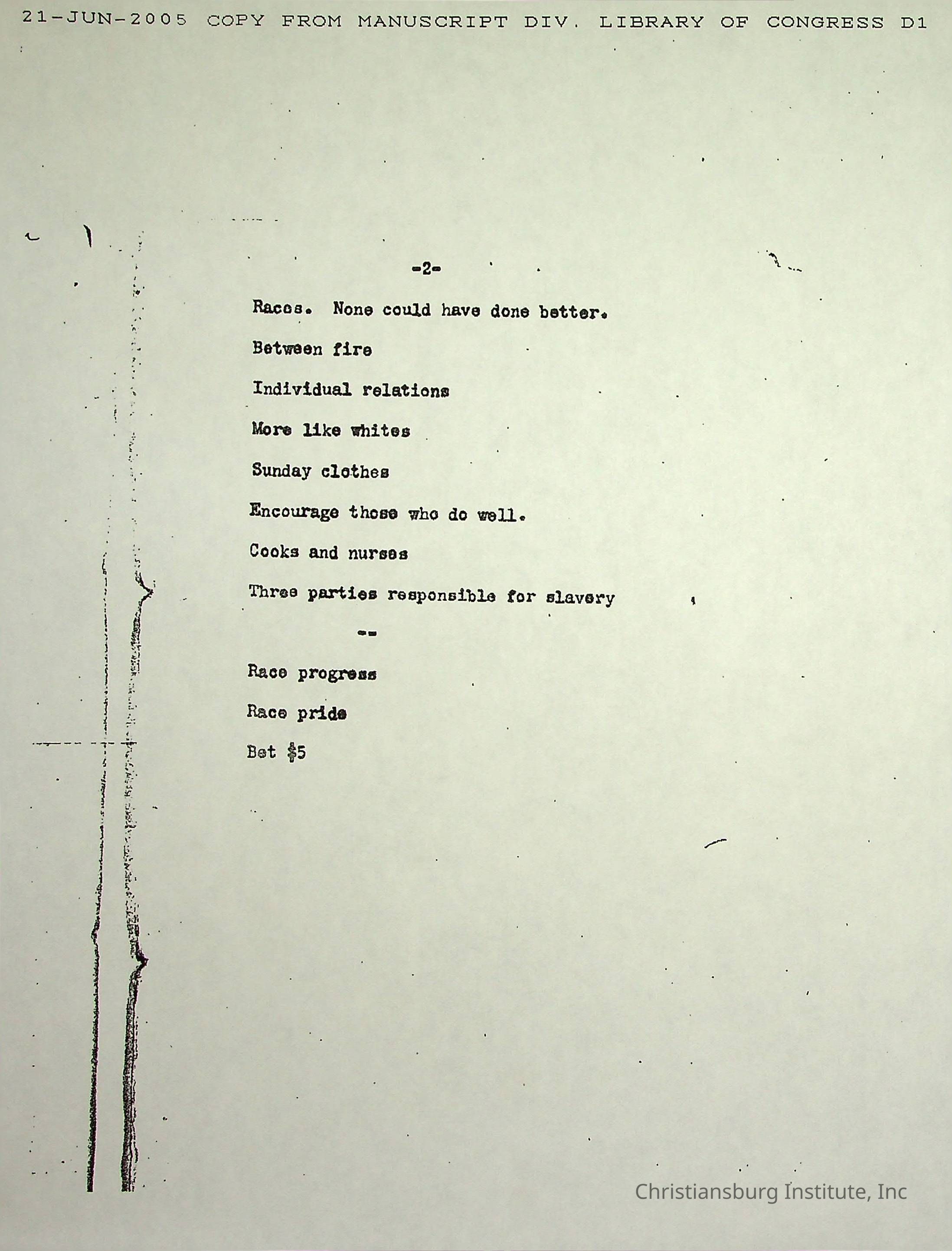 A collection of research materials from the Library of Congress dated June 21st, 2005. The materials are associated with the Friends Freedman's Association.Creator