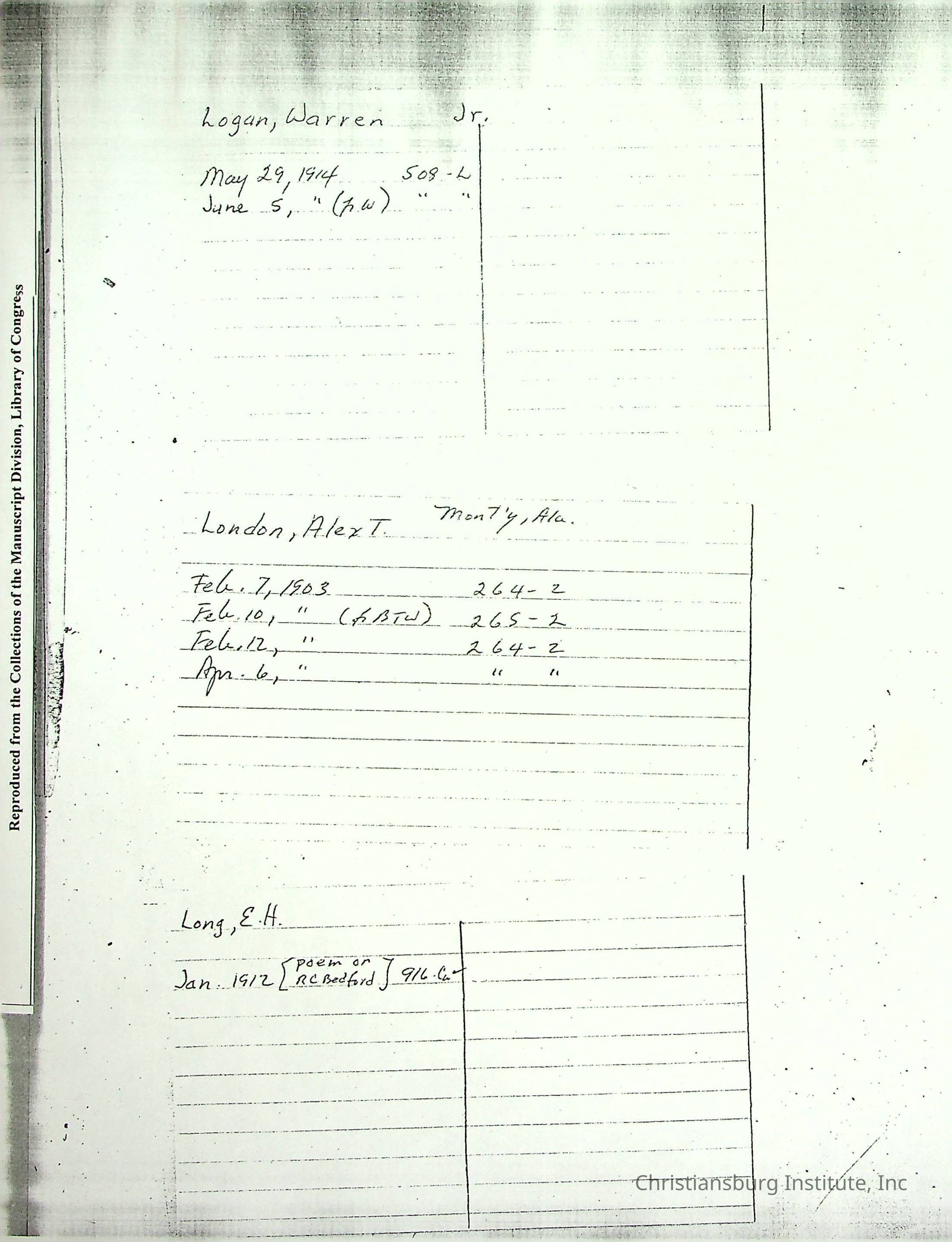 Library of CongressDate(s) of Creation