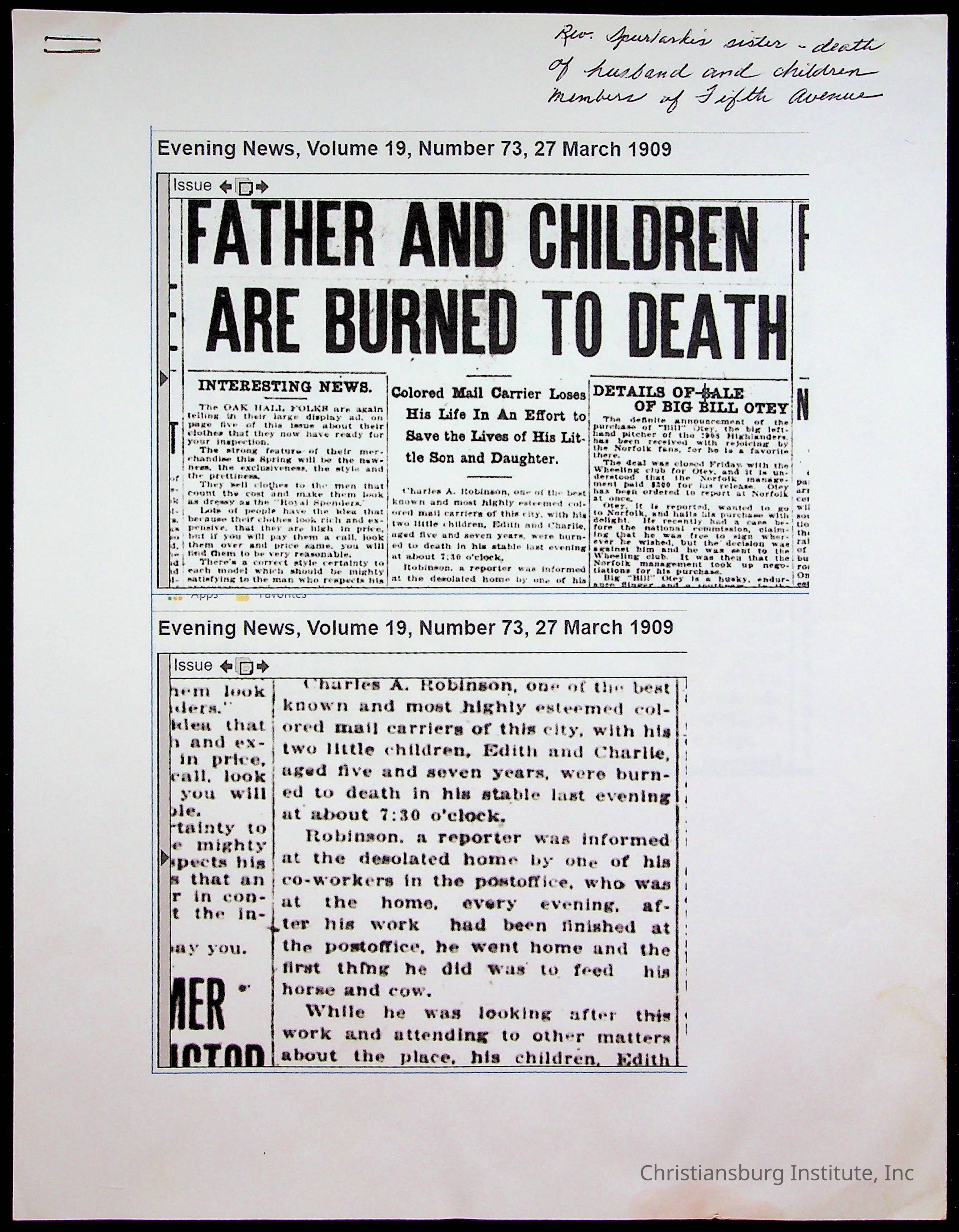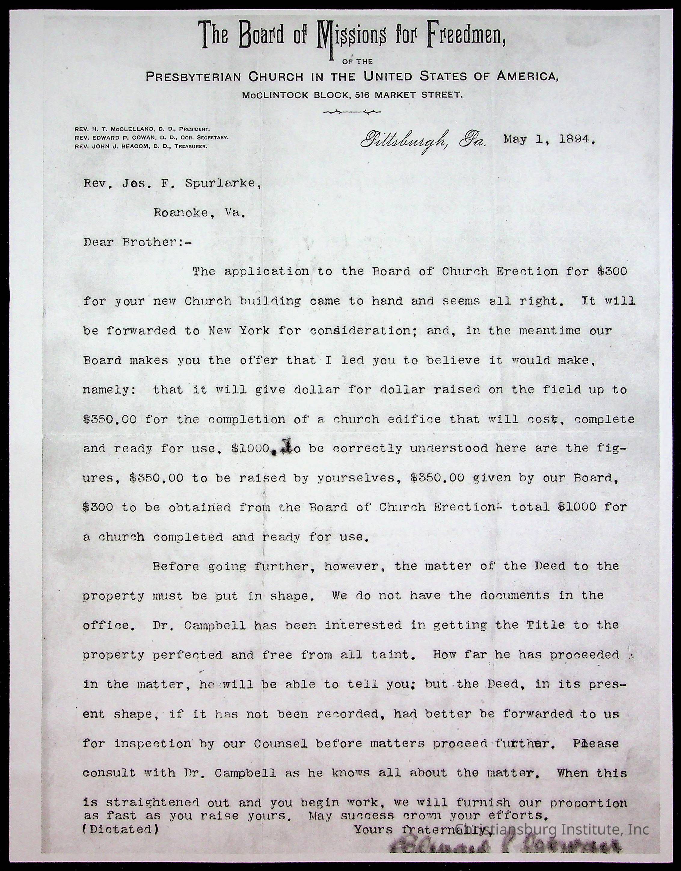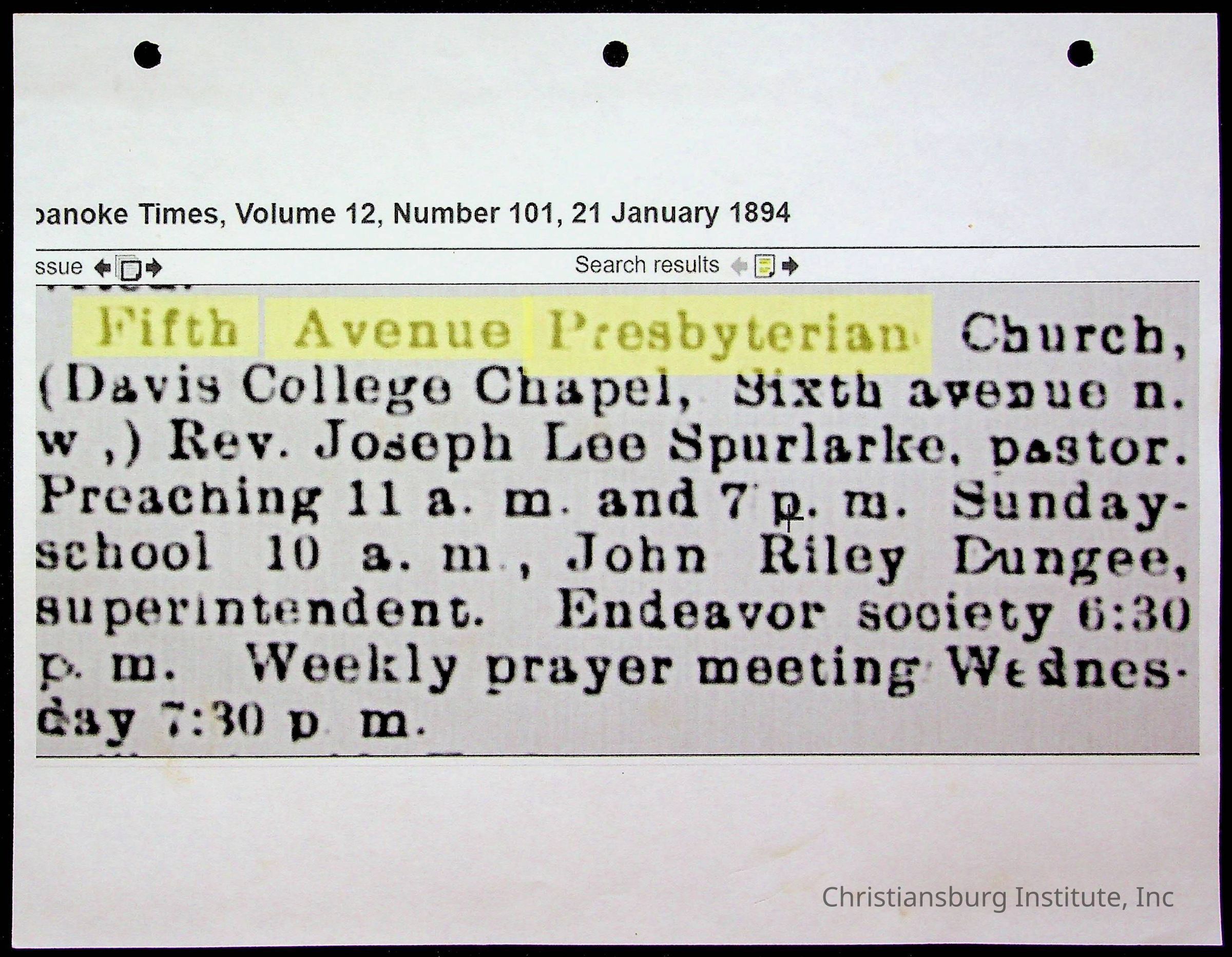 Copyright has been assigned to Christiansburg Institute Museum & Archives by Fifth Avenue Presbyterian Church. For permission to publish materials created by the donor, contact CIMA@christiansburginstitute.com. Materials not created by Fifth Avenue Presbyterian Church may still be under copyright.