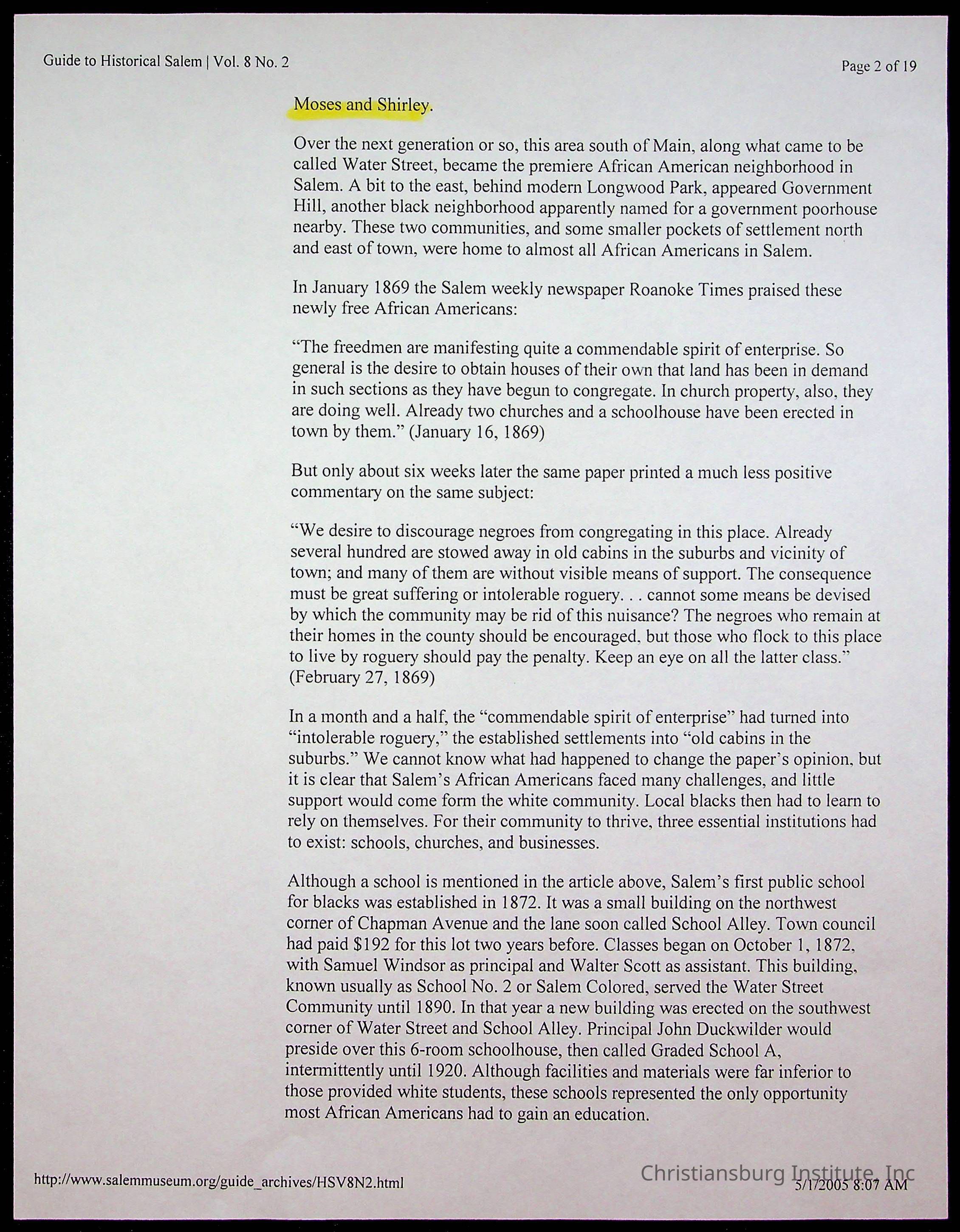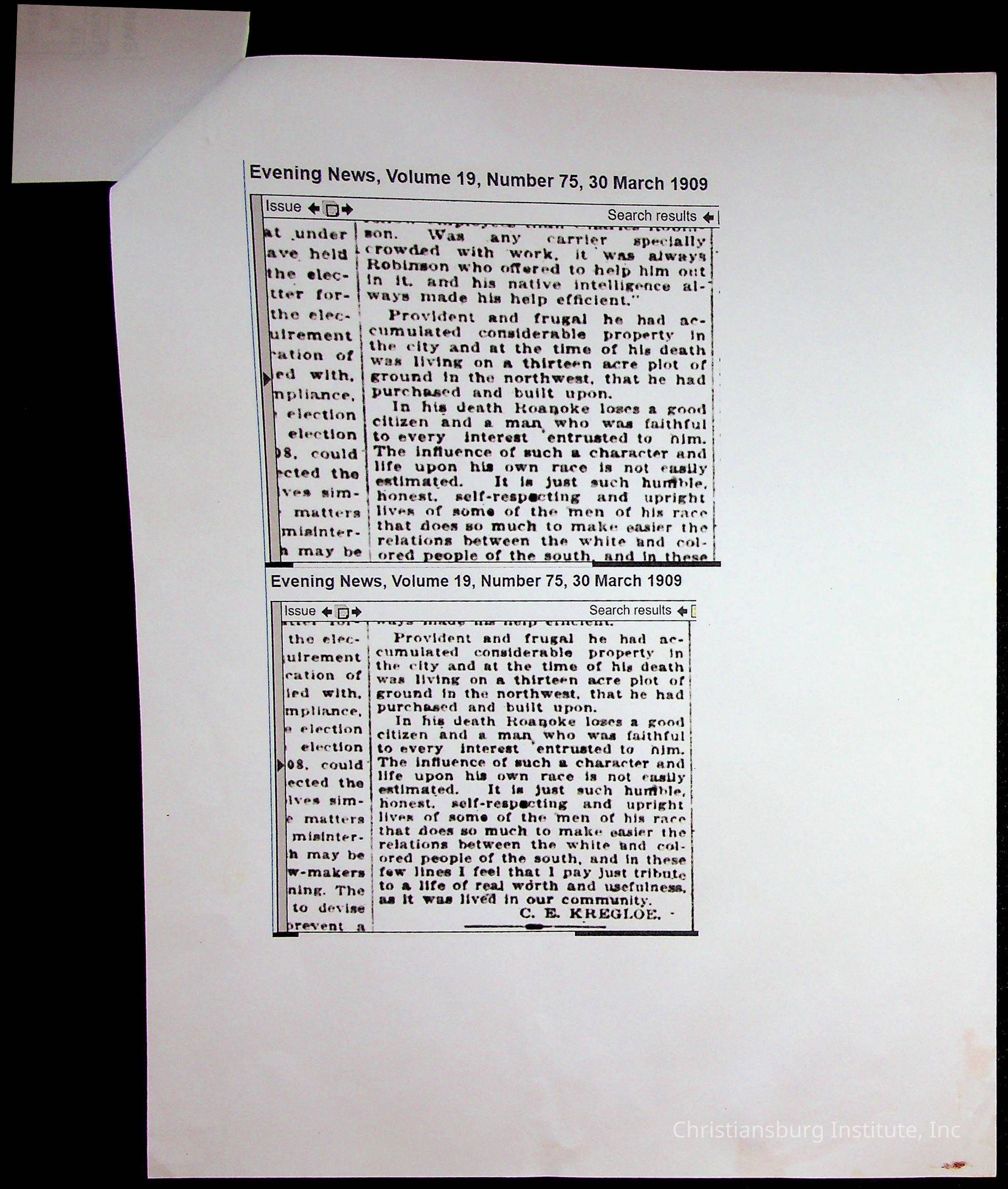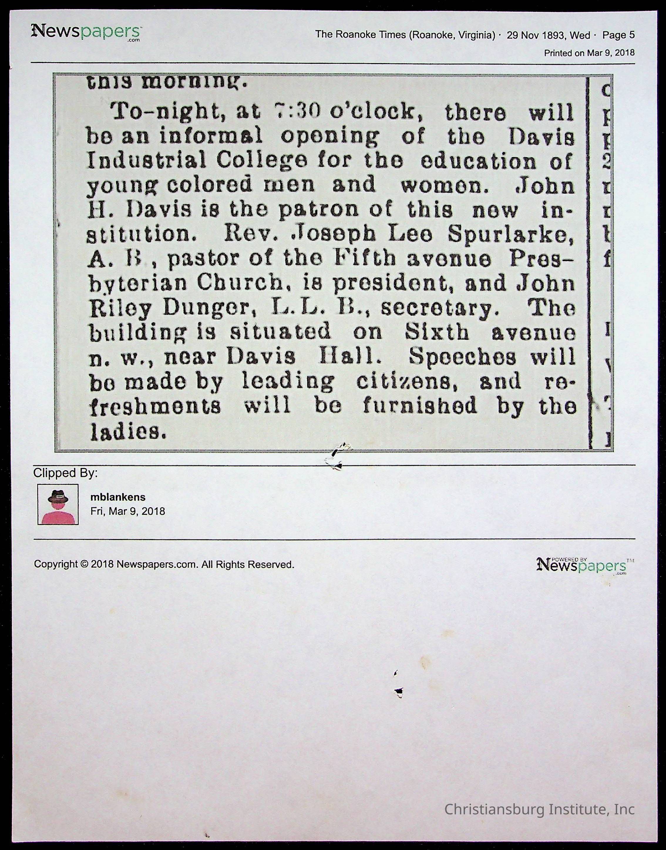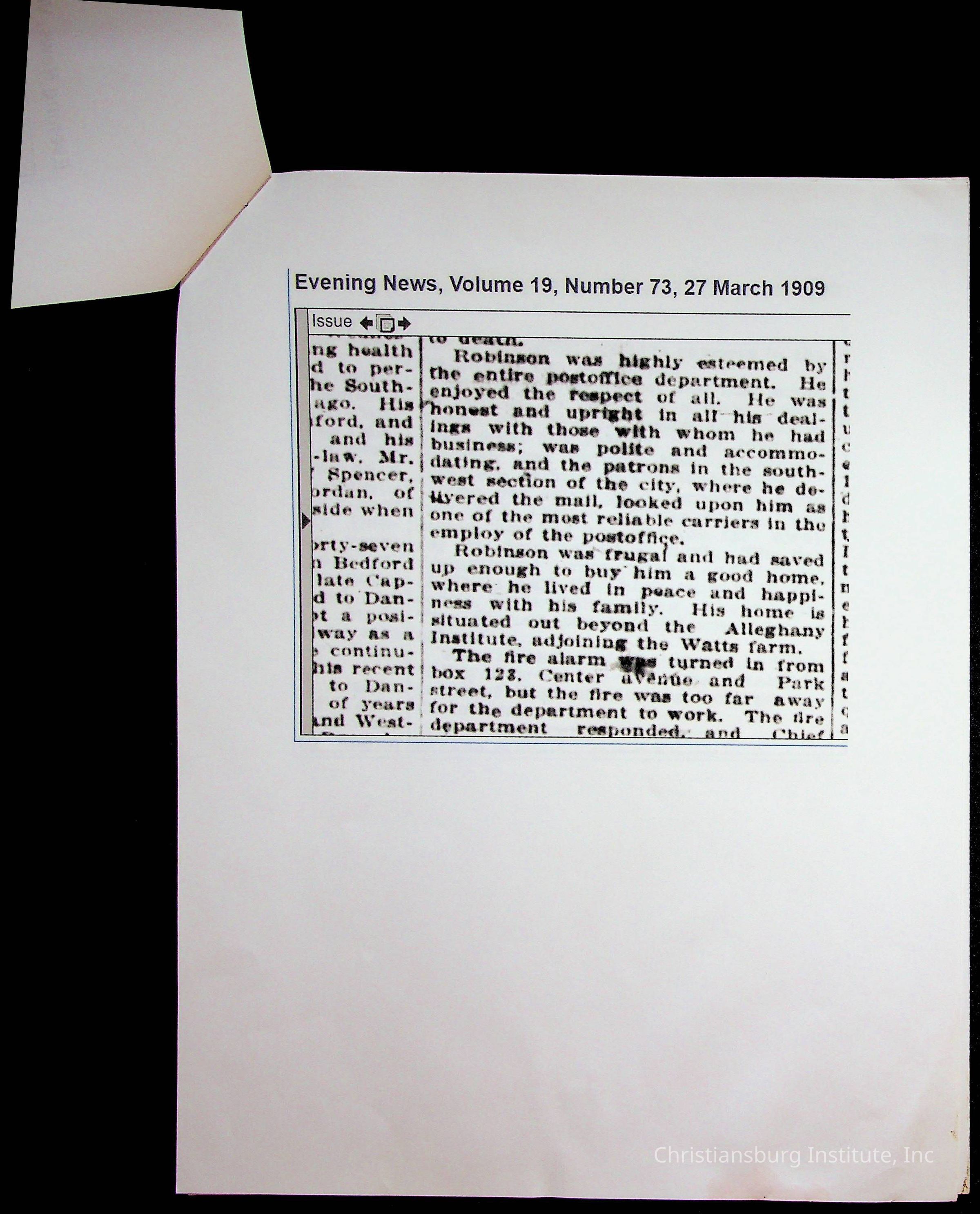 Copyright has been assigned to Christiansburg Institute Museum & Archives by Fifth Avenue Presbyterian Church. For permission to publish materials created by the donor, contact CIMA@christiansburginstitute.com. Materials not created by Fifth Avenue Presbyterian Church may still be under copyright.