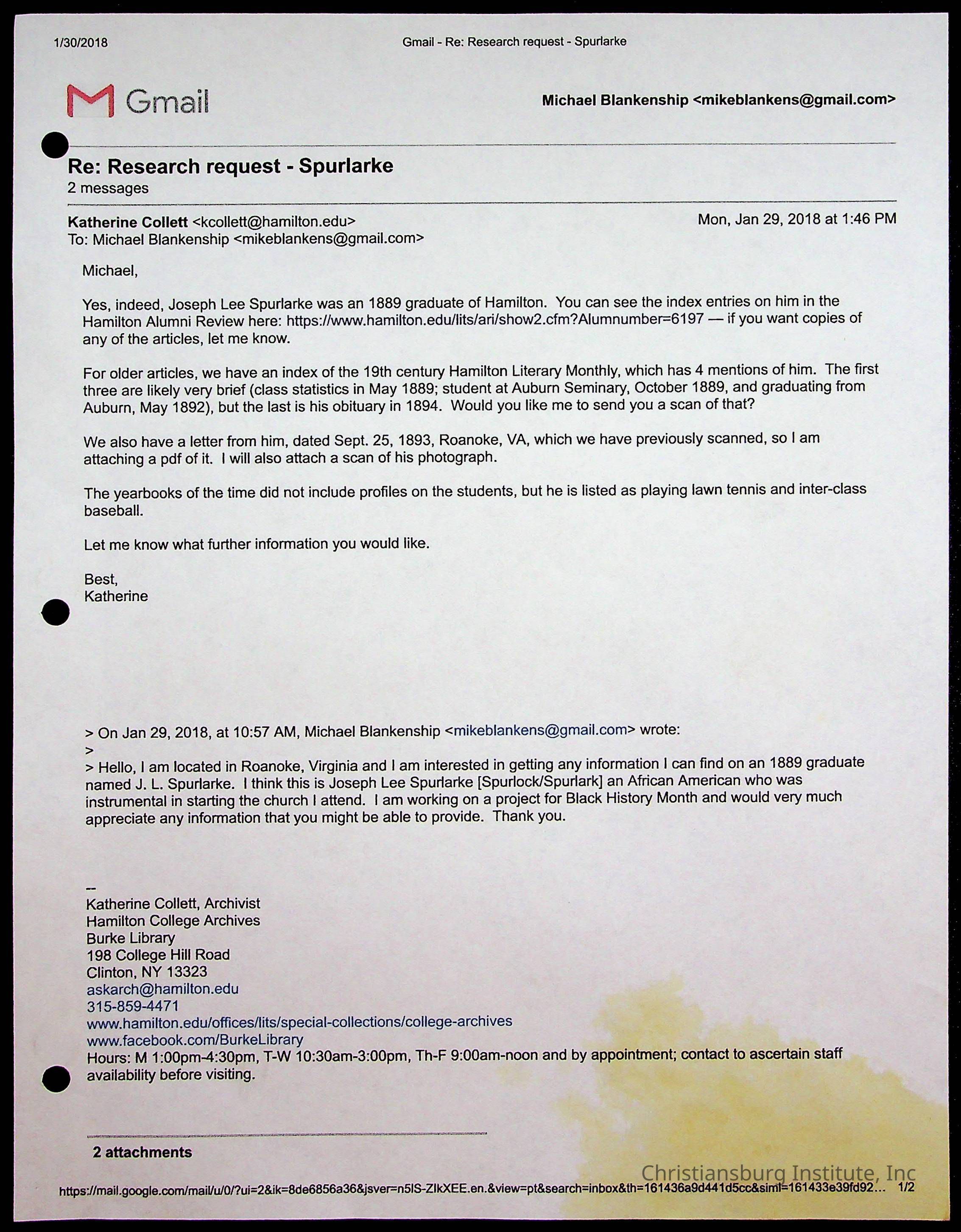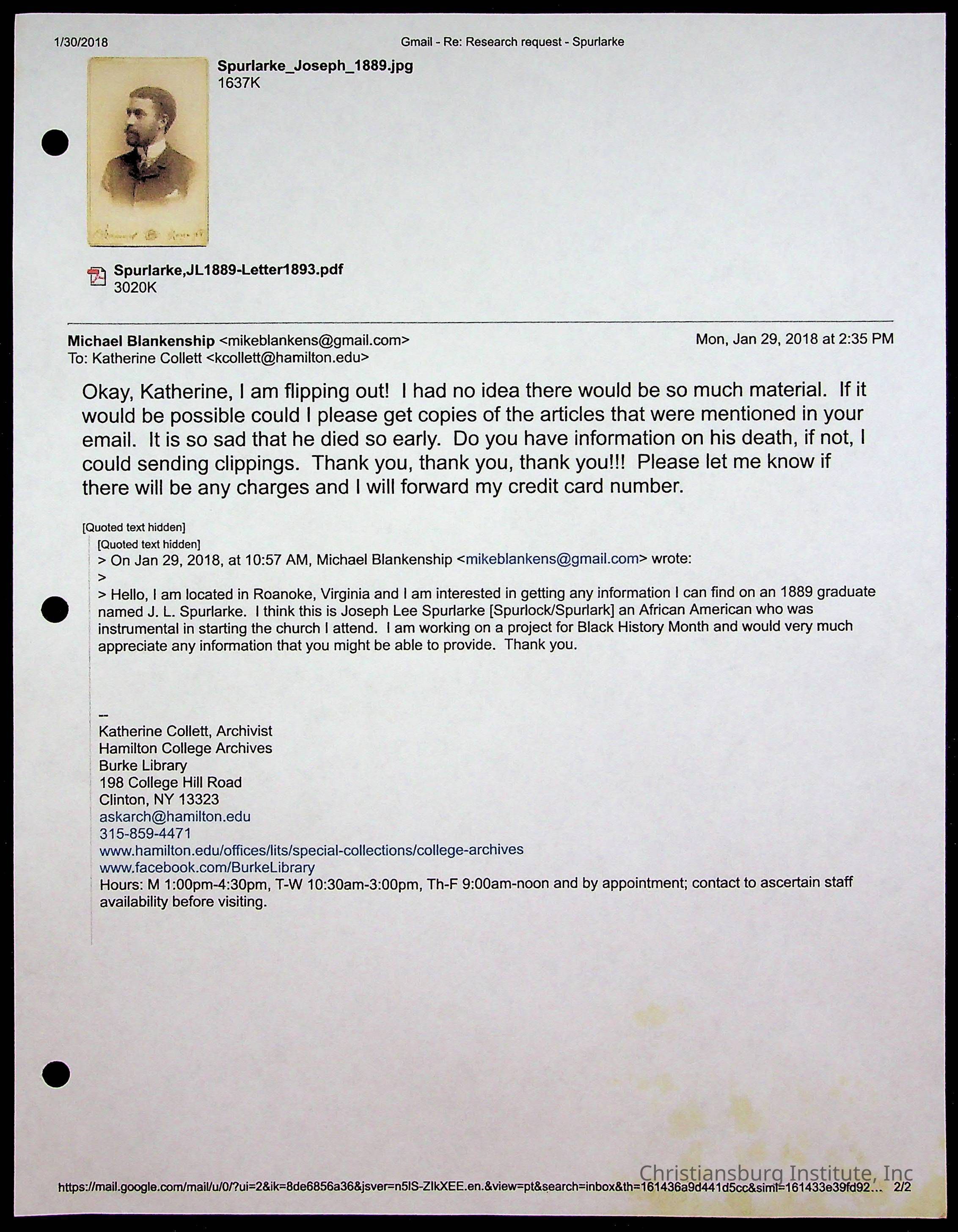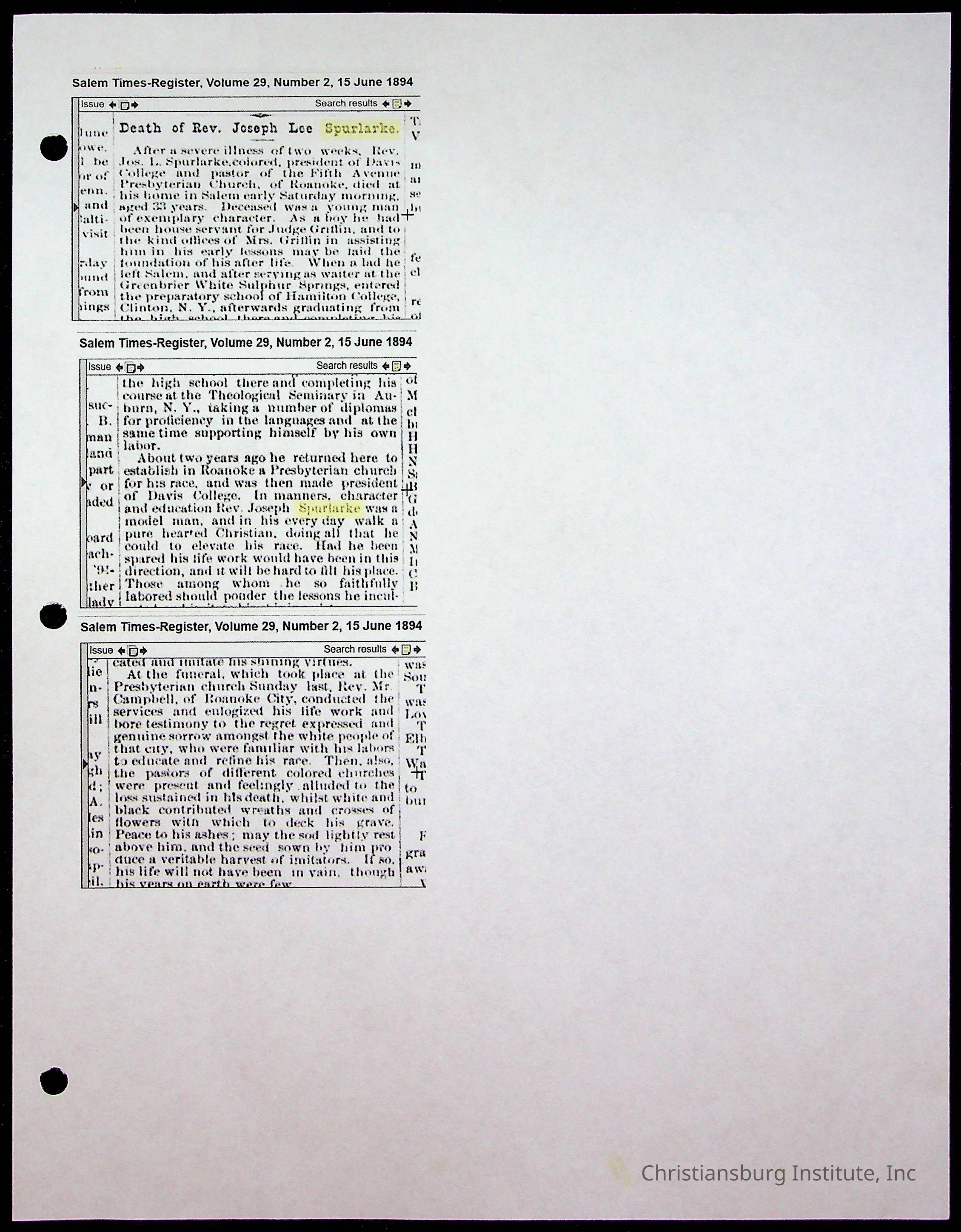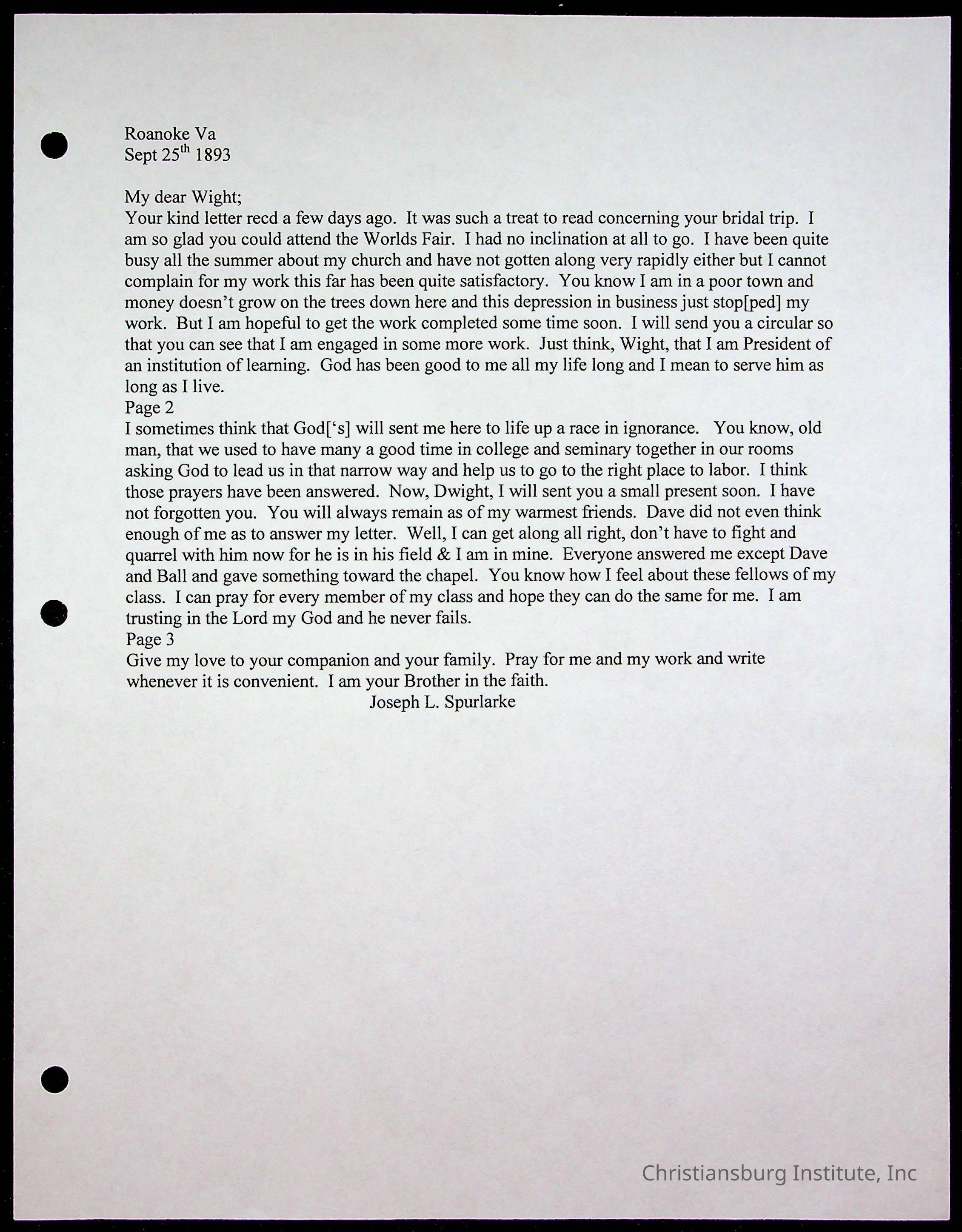A collection of materials that pertain to Reverend Joseph Lee Spurlarke and to events that happened during the time he served at the church. He served as a reverend at Fifth Avenue Presbyterian Church.Collection
