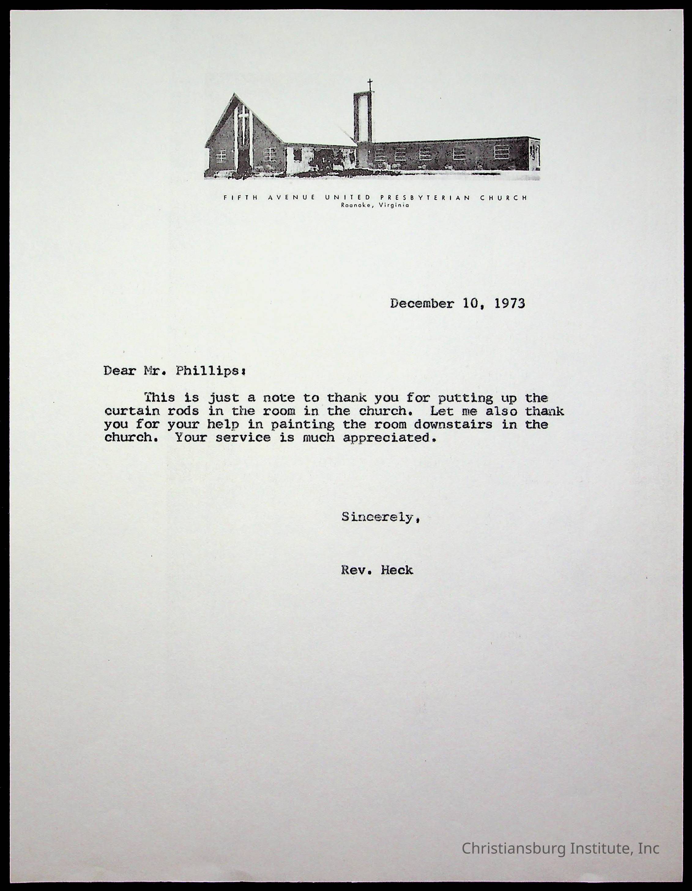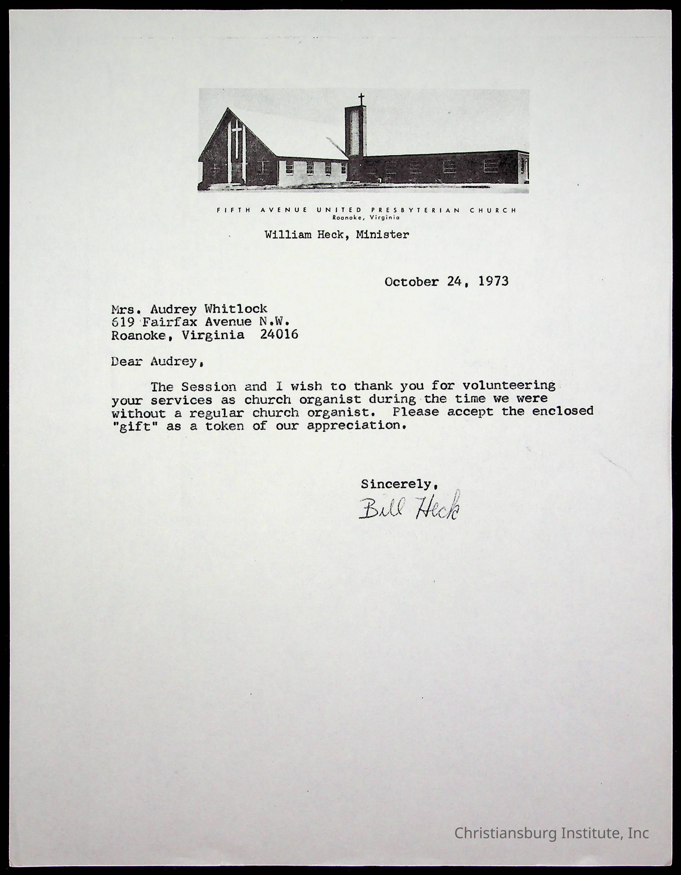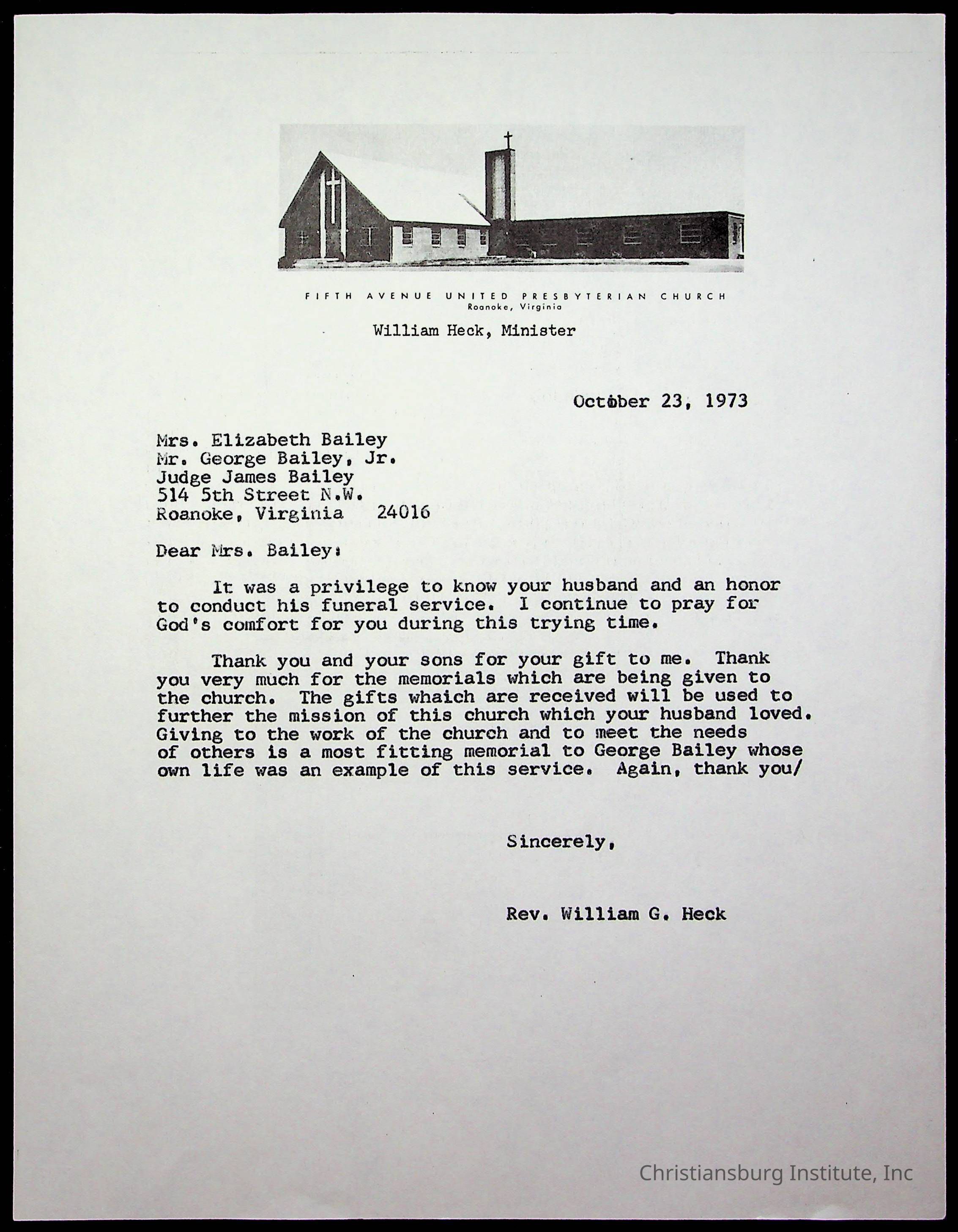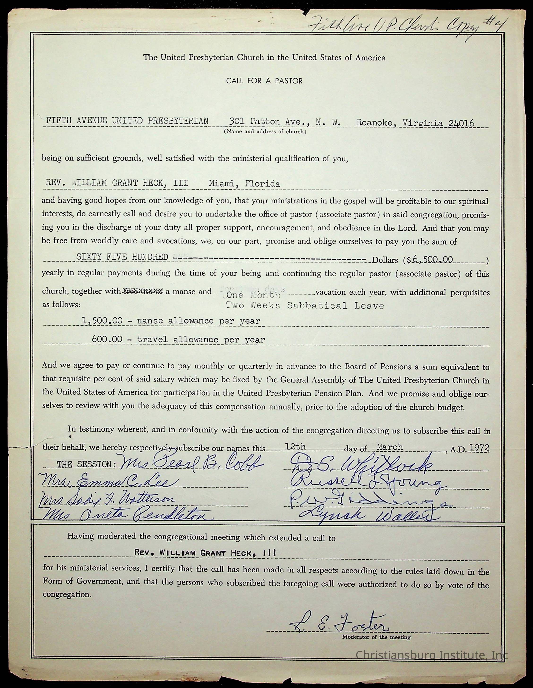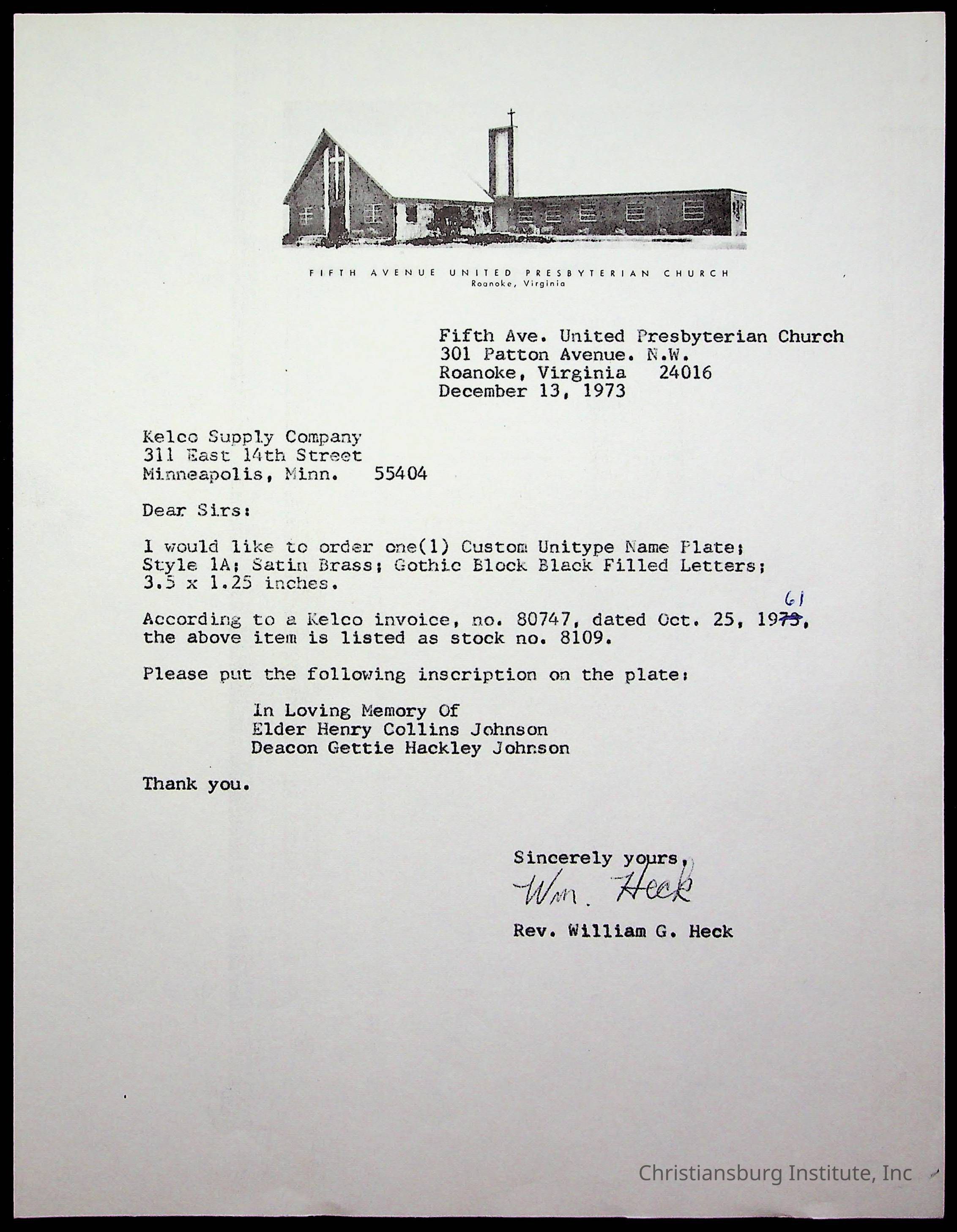 A collection of materials that pertain to Reverend William G. Heck III and to events that happened during the time he served at the church. He served as a reverend at Fifth Avenue Presbyterian Church.Collection