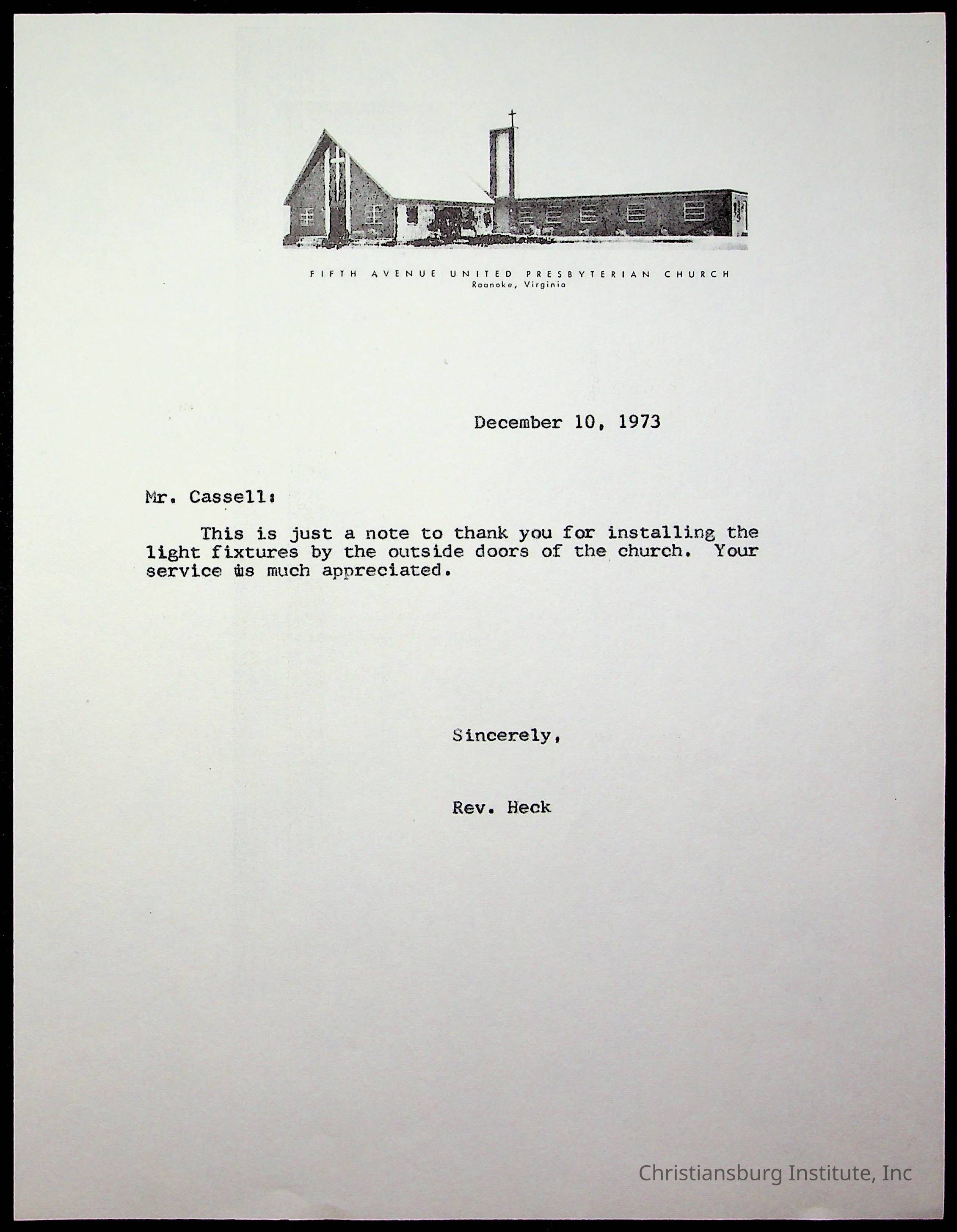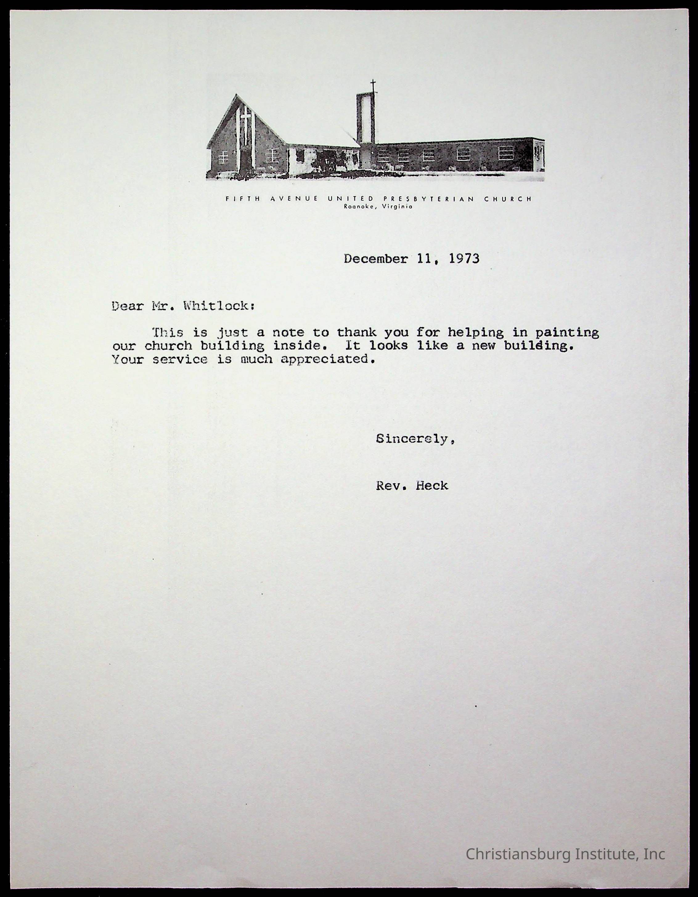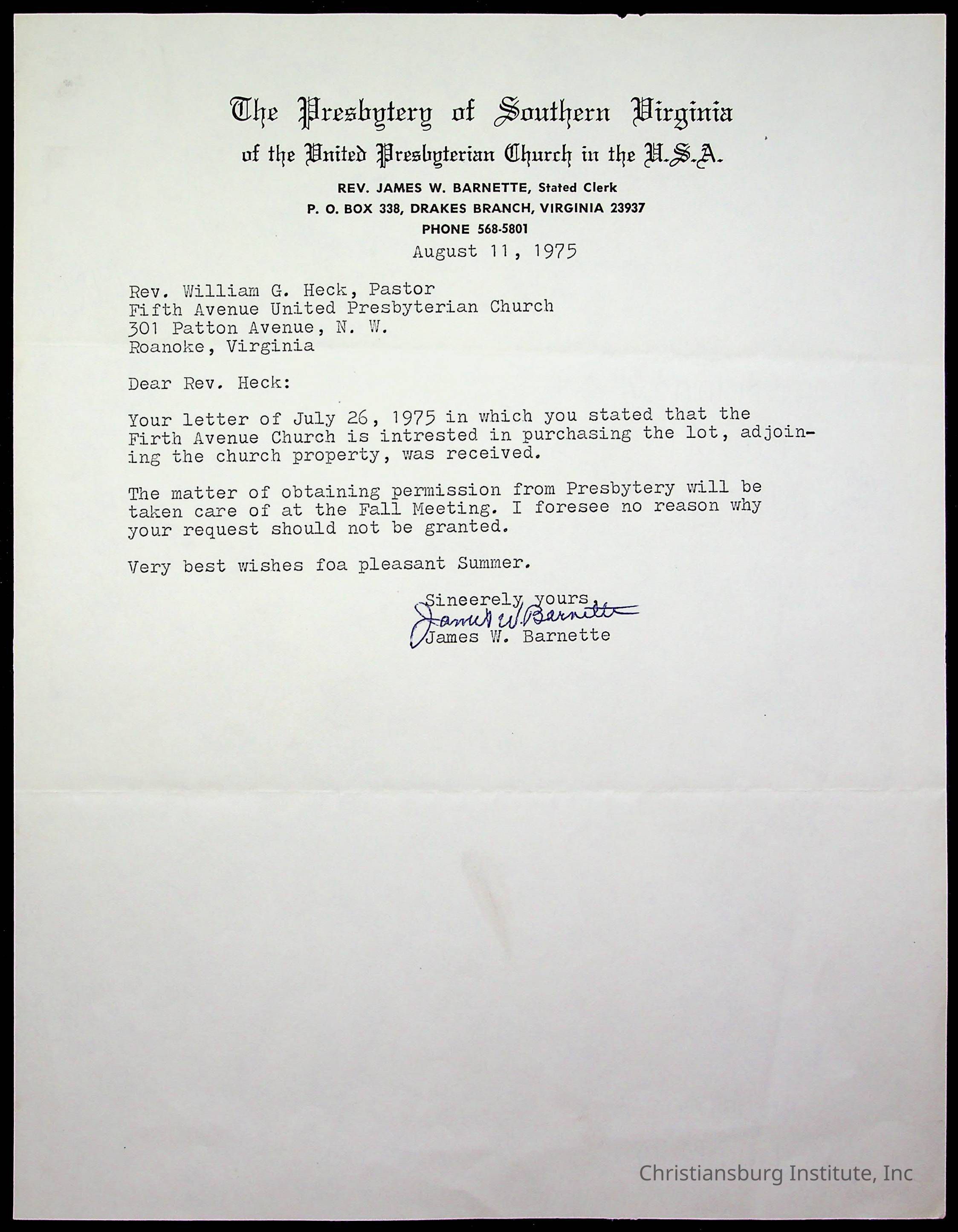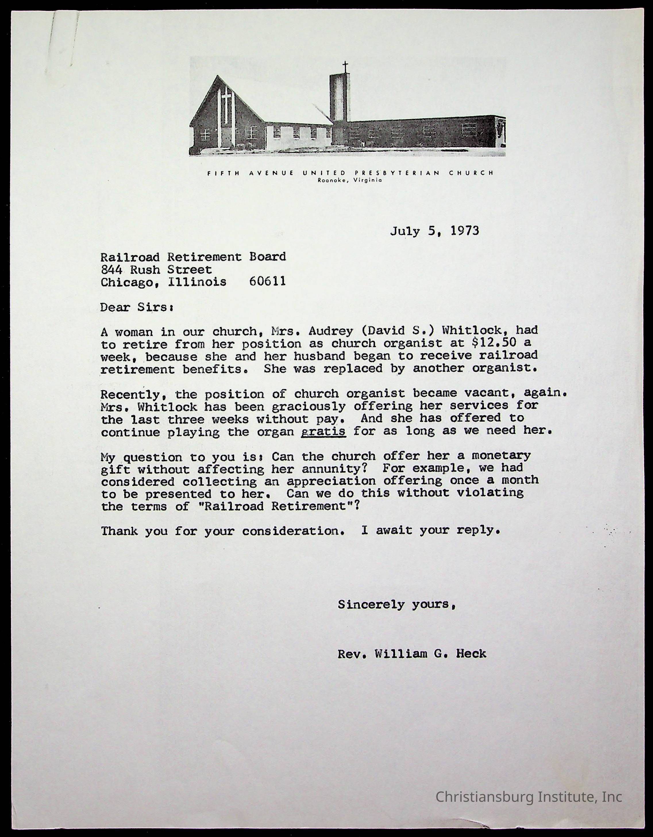A collection of materials that pertain to Reverend William G. Heck III and to events that happened during the time he served at the church. He served as a reverend at Fifth Avenue Presbyterian Church.Collection