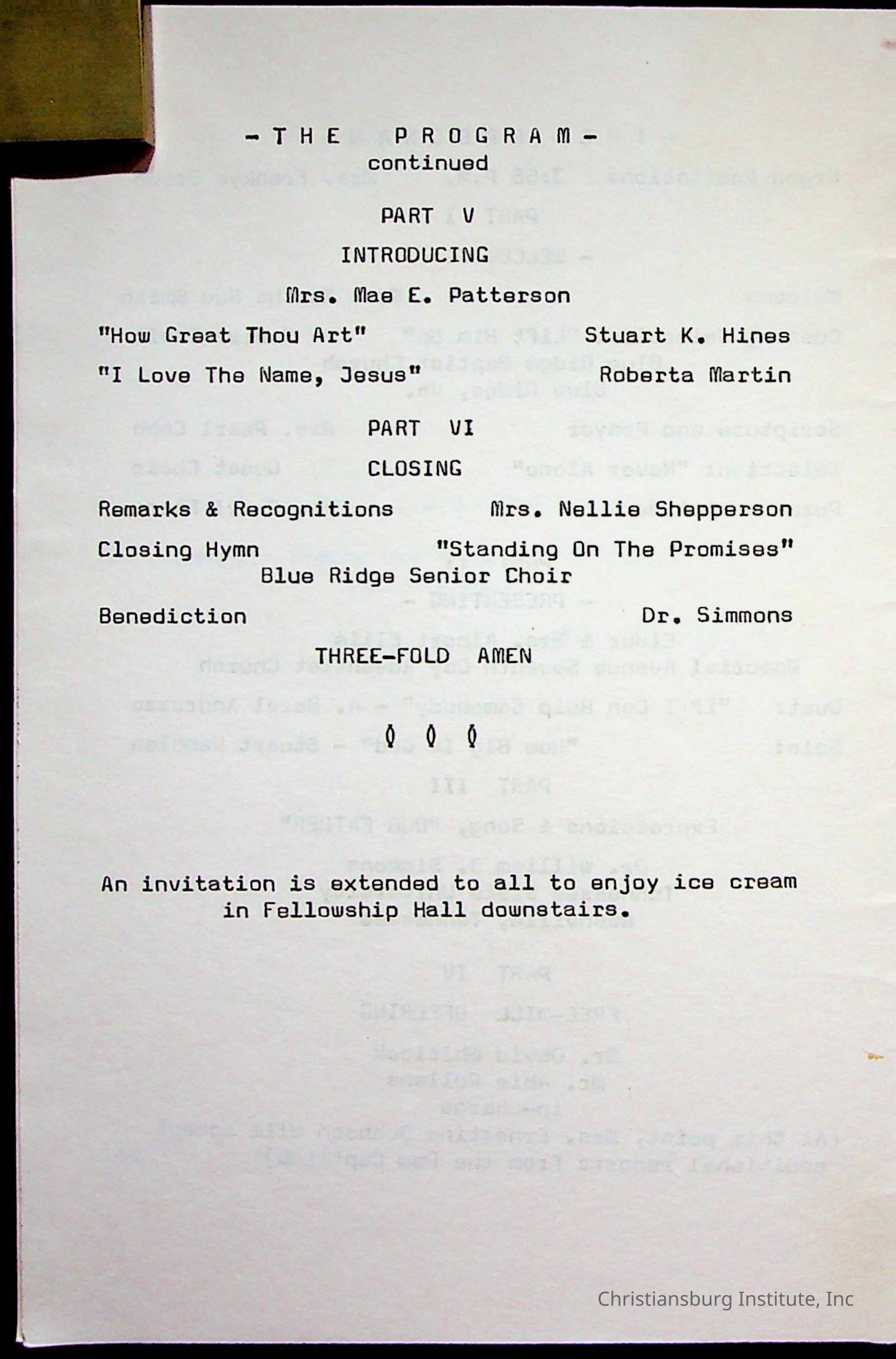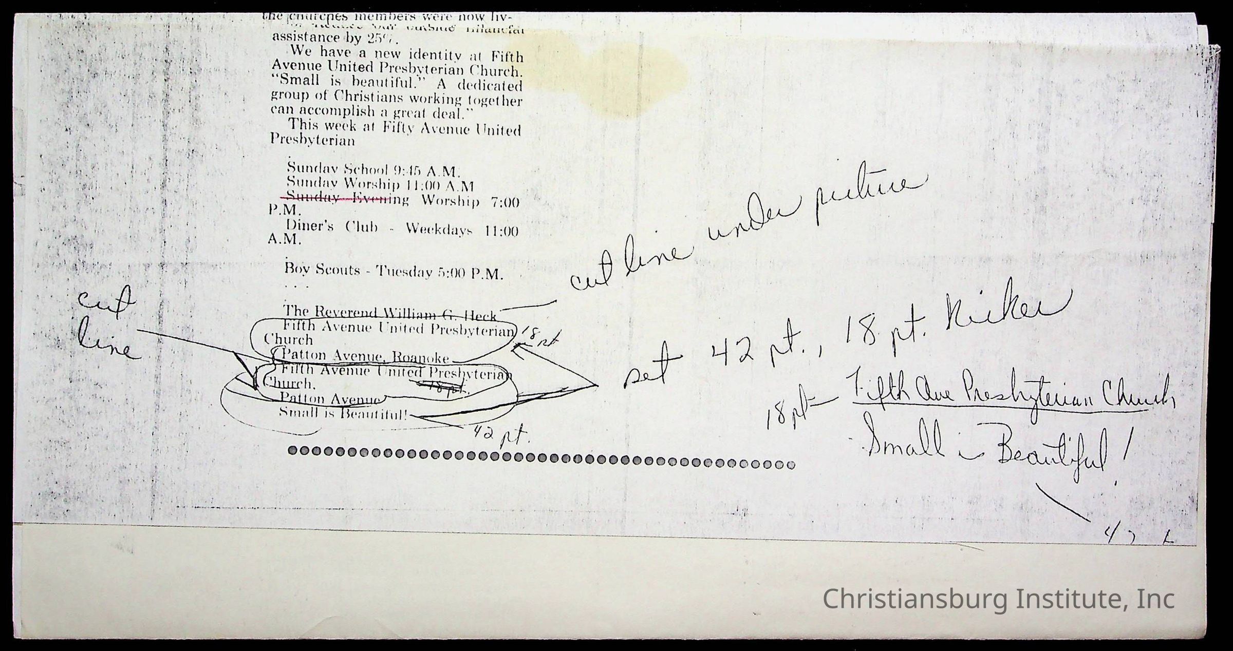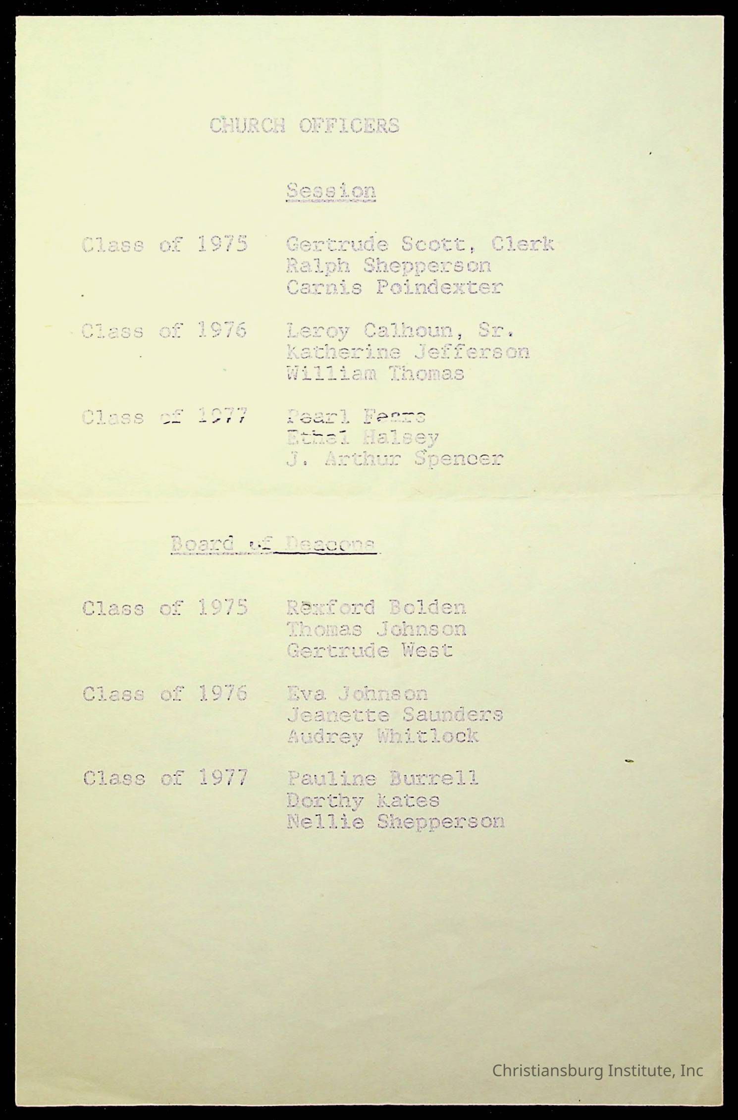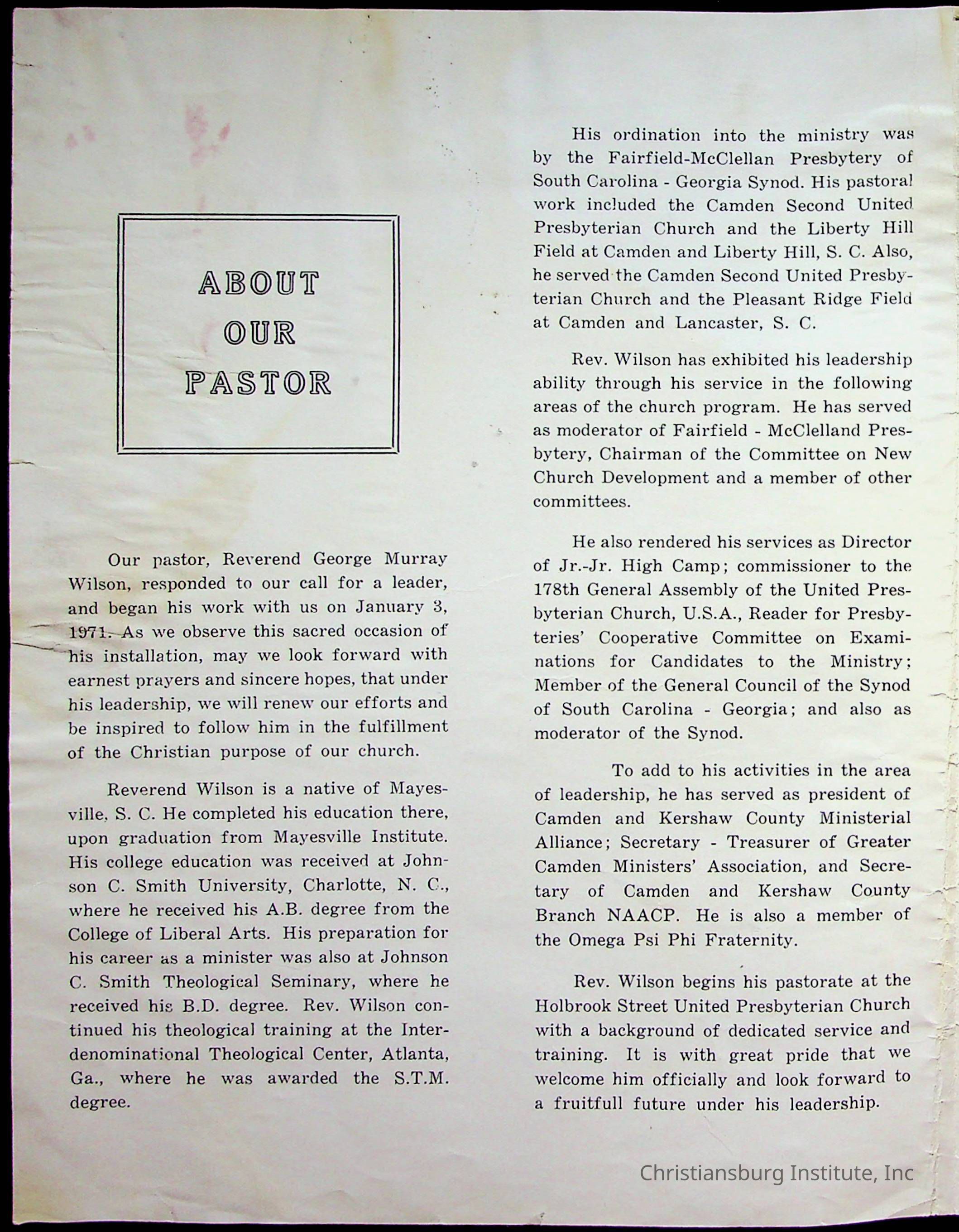 Copyright has been assigned to Christiansburg Institute Museum & Archives by Fifth Avenue Presbyterian Church. For permission to publish materials created by the donor, contact CIMA@christiansburginstitute.com. Materials not created by Fifth Avenue Presbyterian Church may still be under copyright.