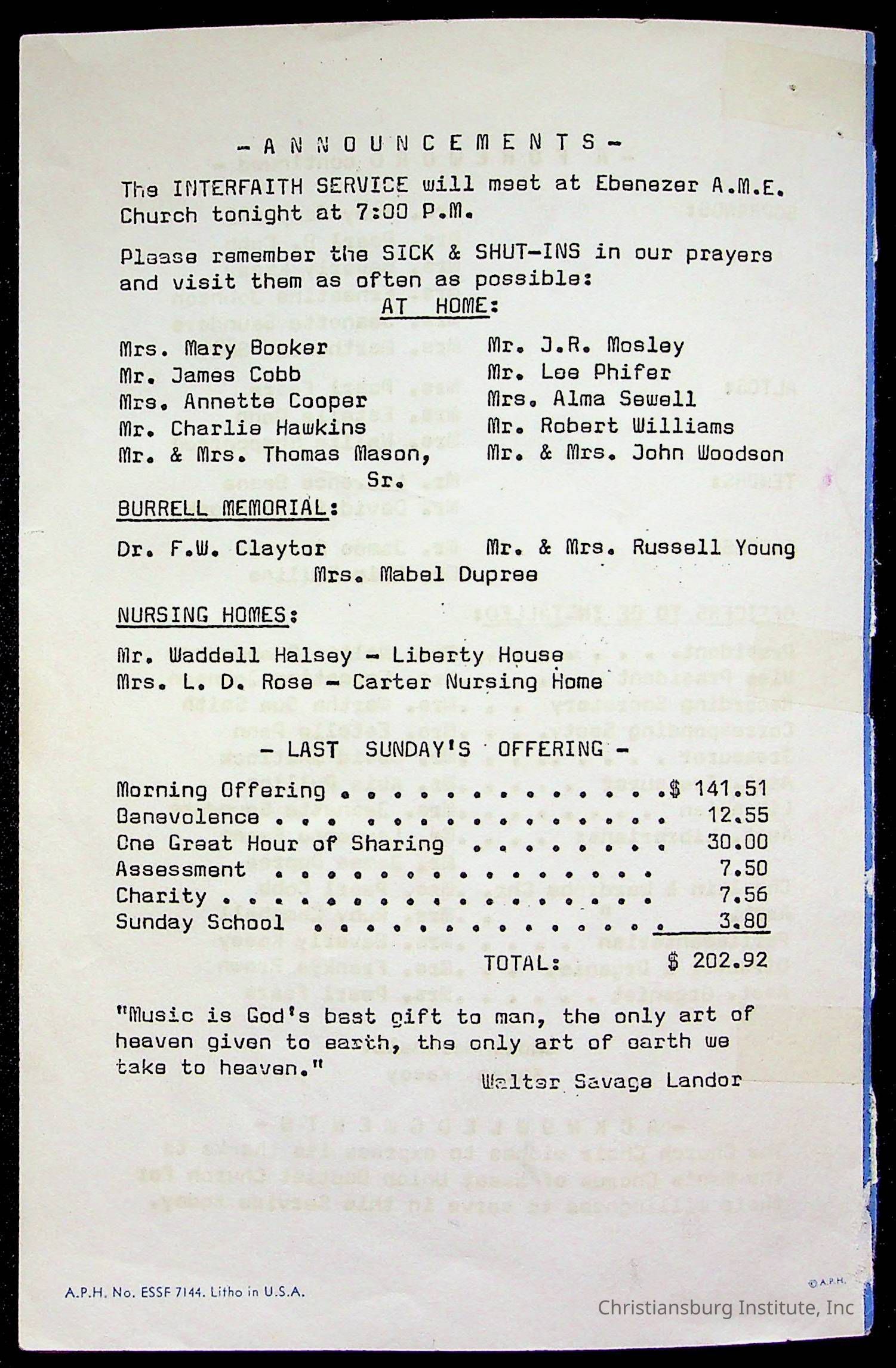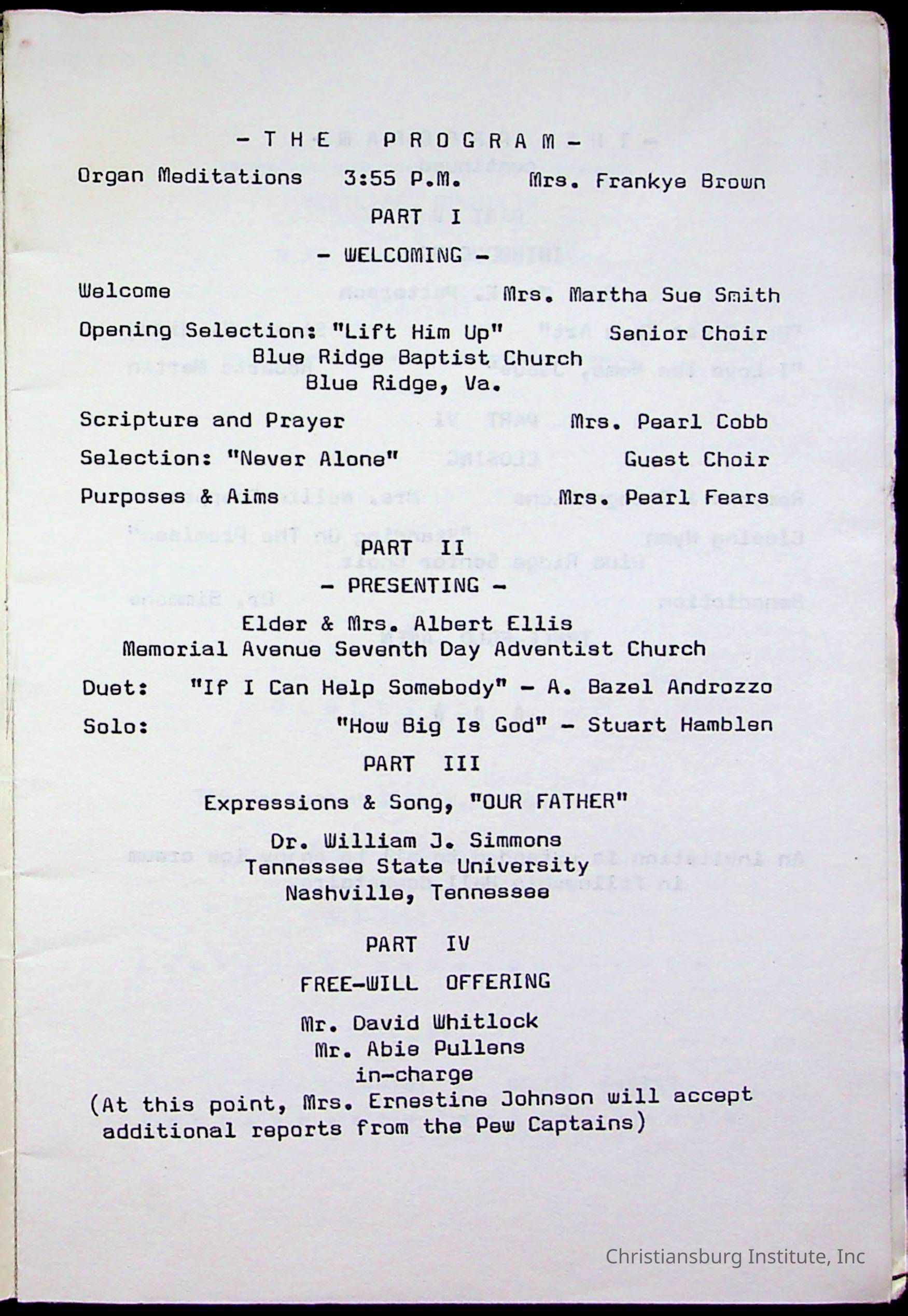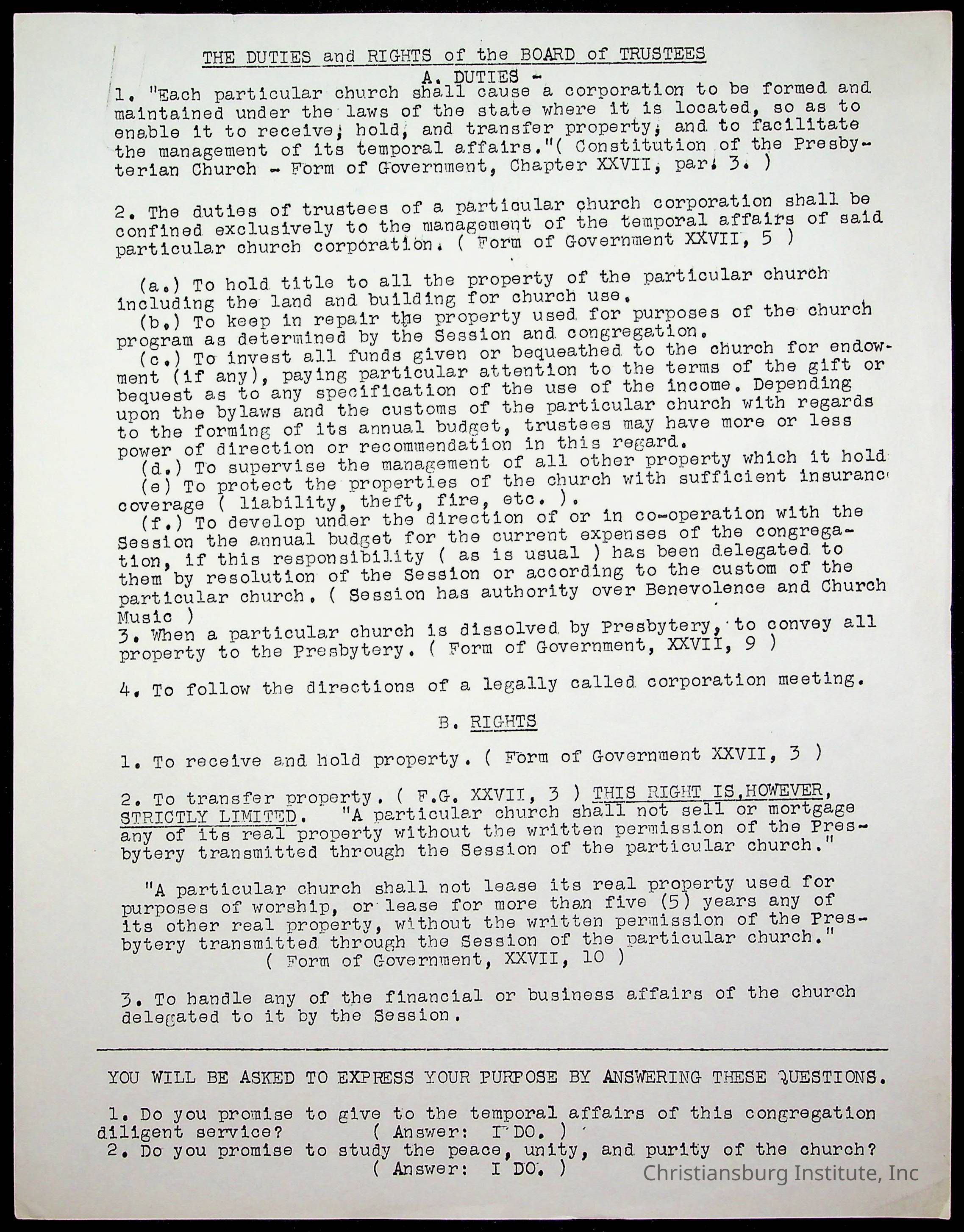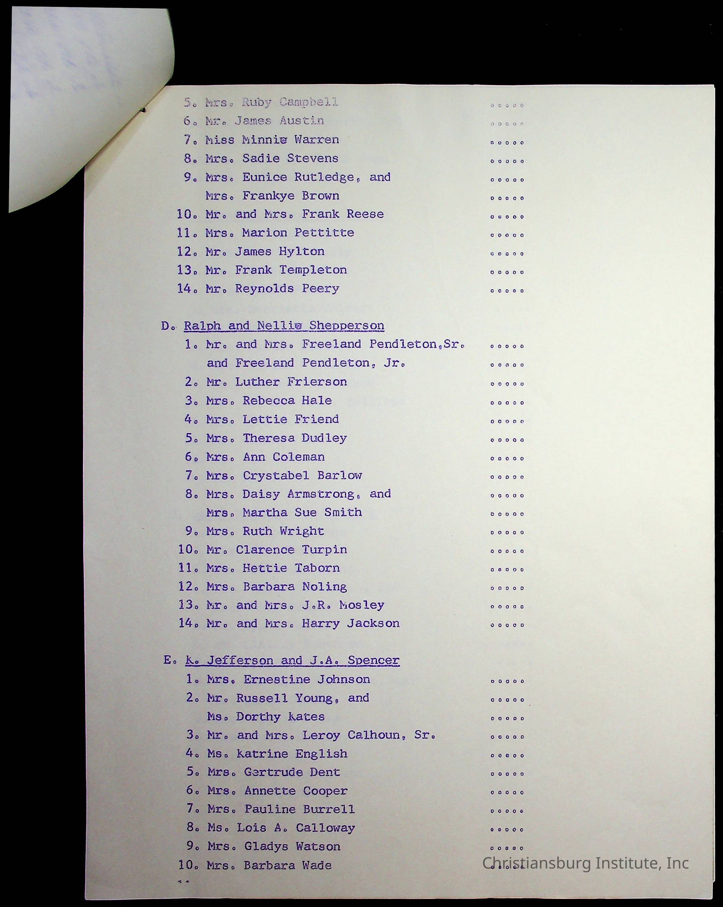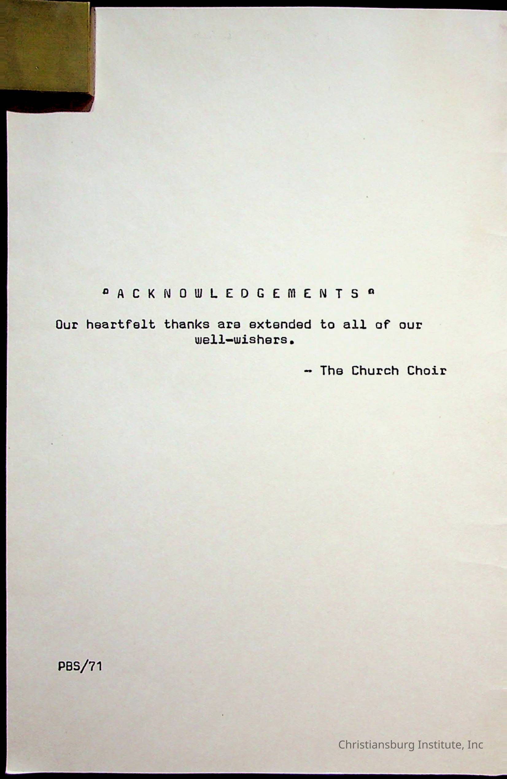 Copyright has been assigned to Christiansburg Institute Museum & Archives by Fifth Avenue Presbyterian Church. For permission to publish materials created by the donor, contact CIMA@christiansburginstitute.com. Materials not created by Fifth Avenue Presbyterian Church may still be under copyright.