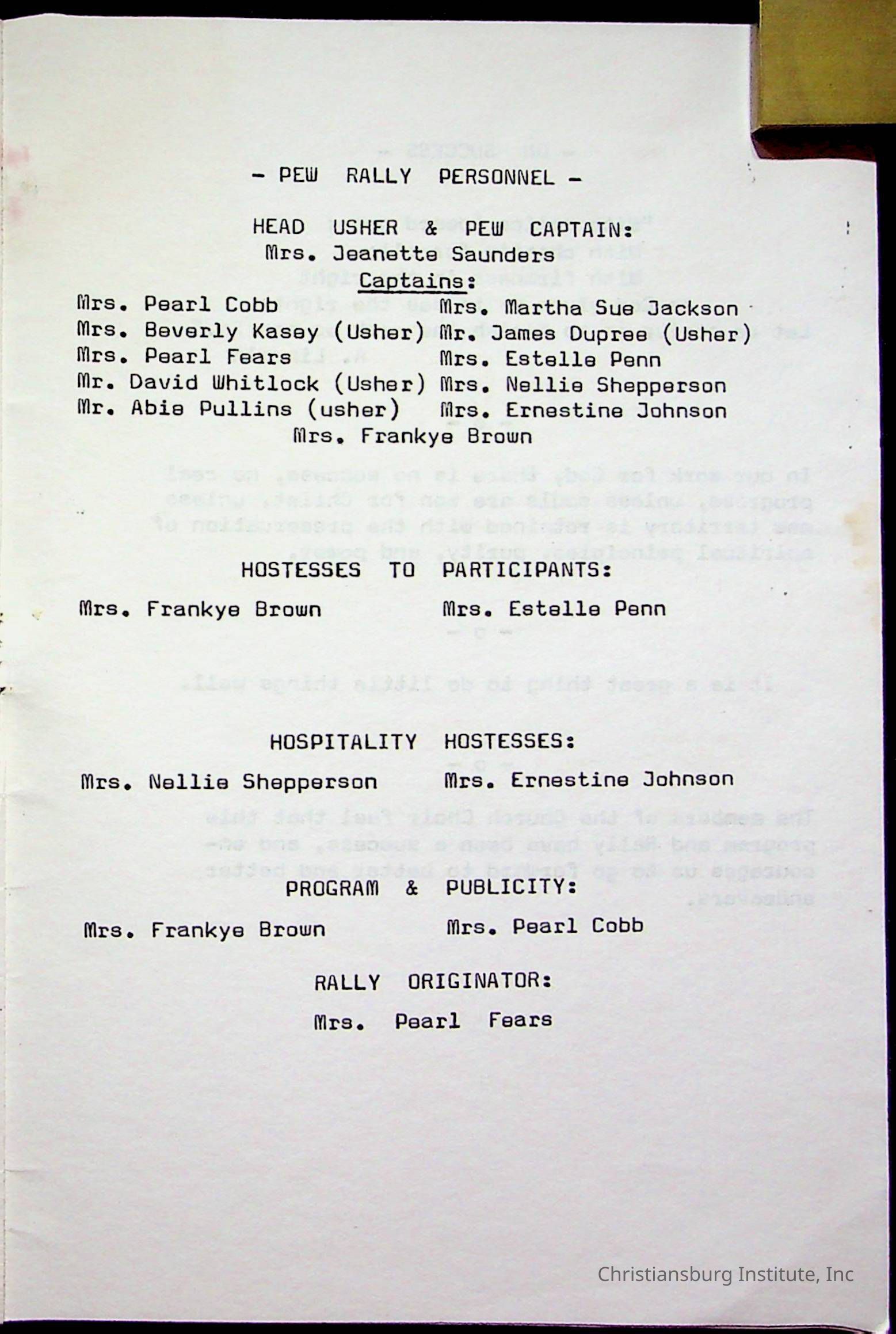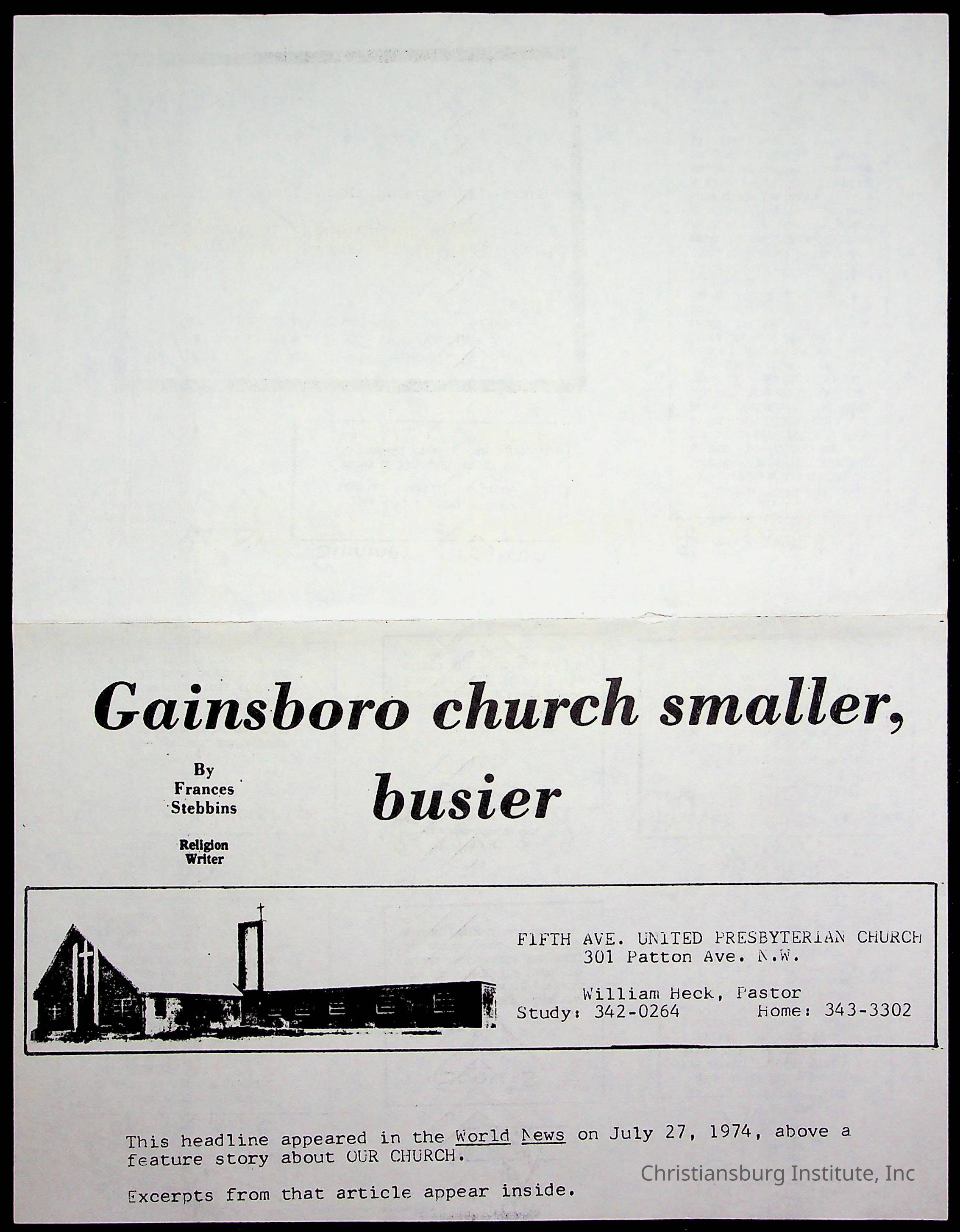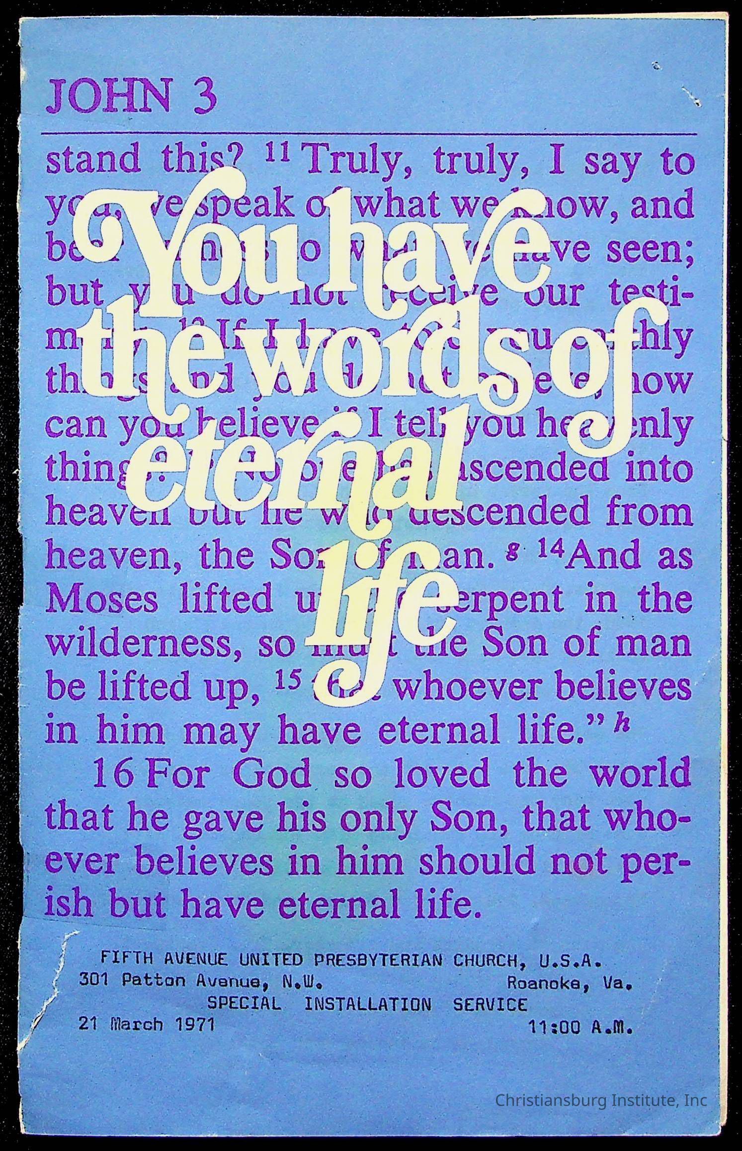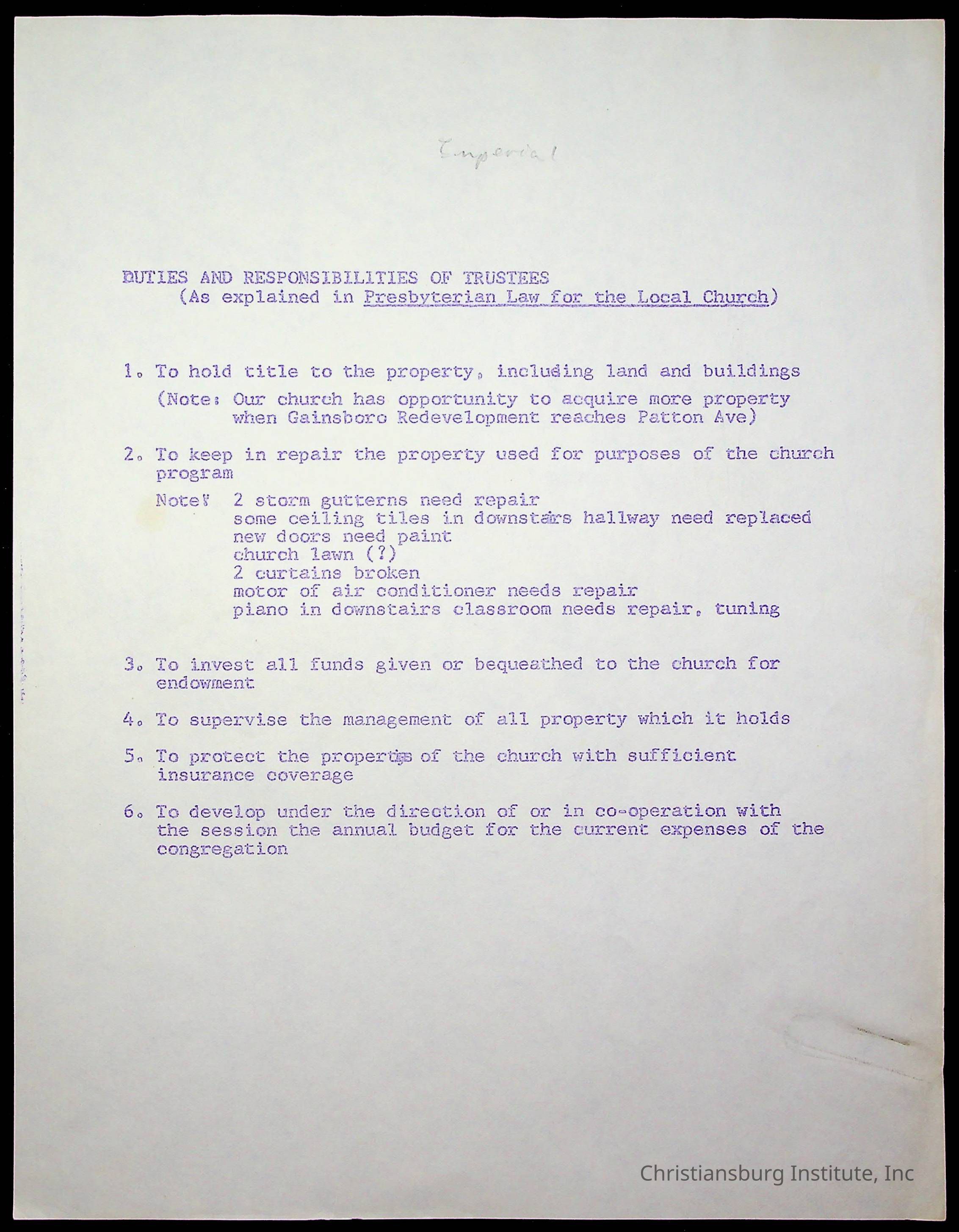 Copyright has been assigned to Christiansburg Institute Museum & Archives by Fifth Avenue Presbyterian Church. For permission to publish materials created by the donor, contact CIMA@christiansburginstitute.com. Materials not created by Fifth Avenue Presbyterian Church may still be under copyright.