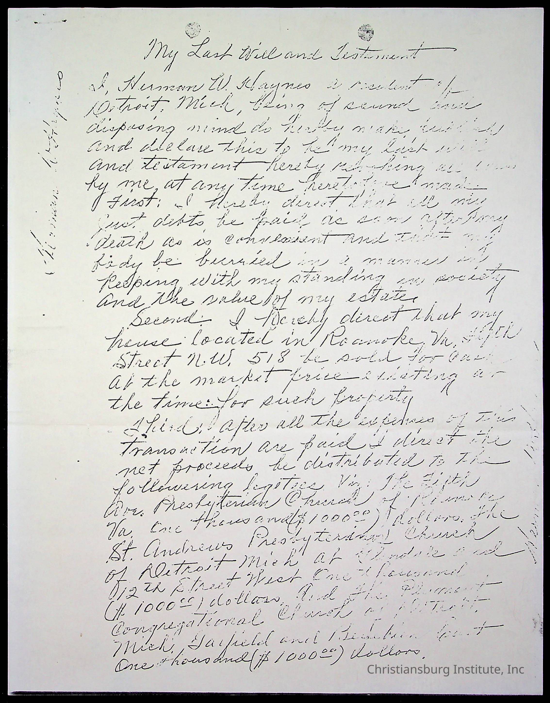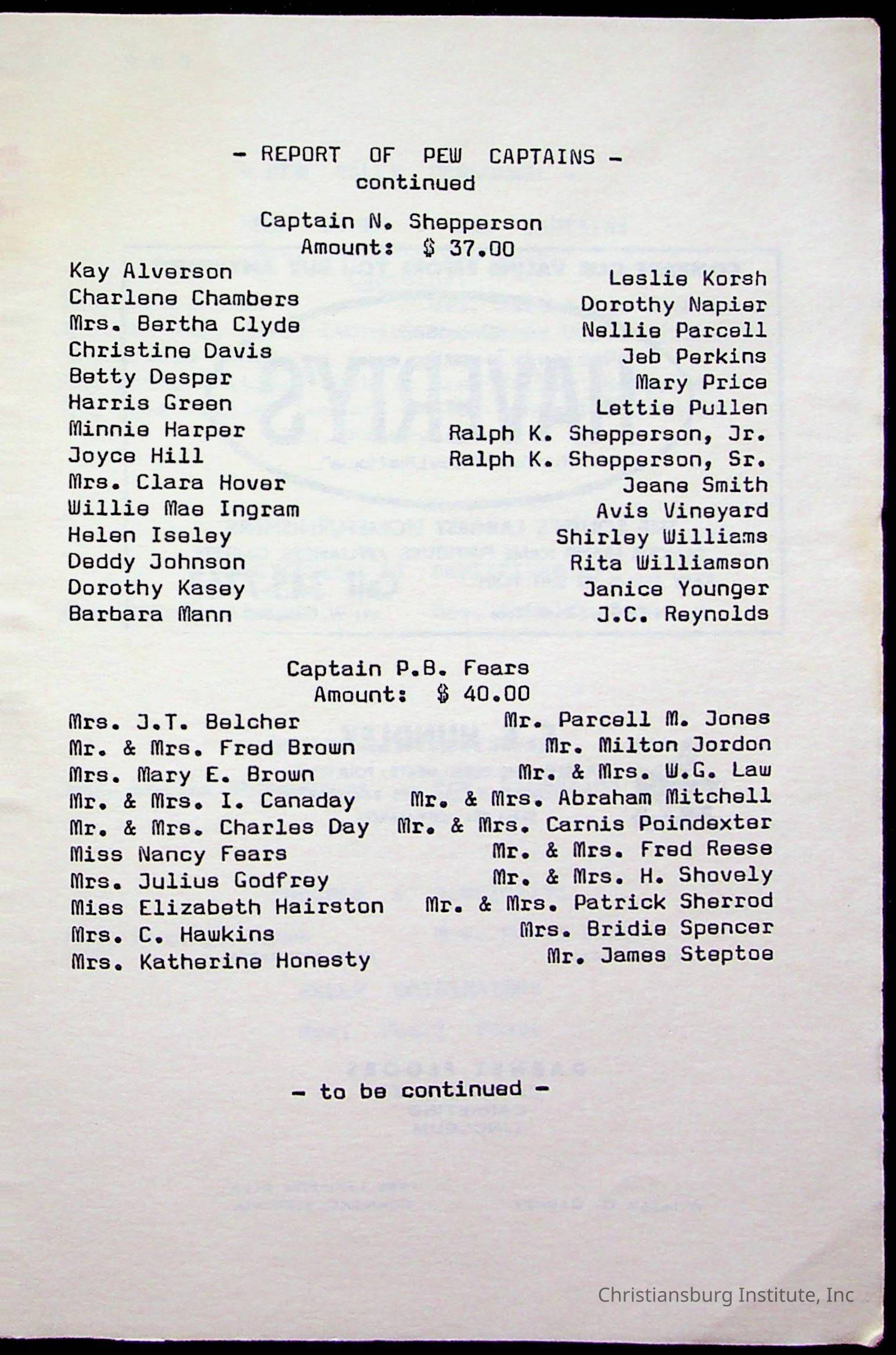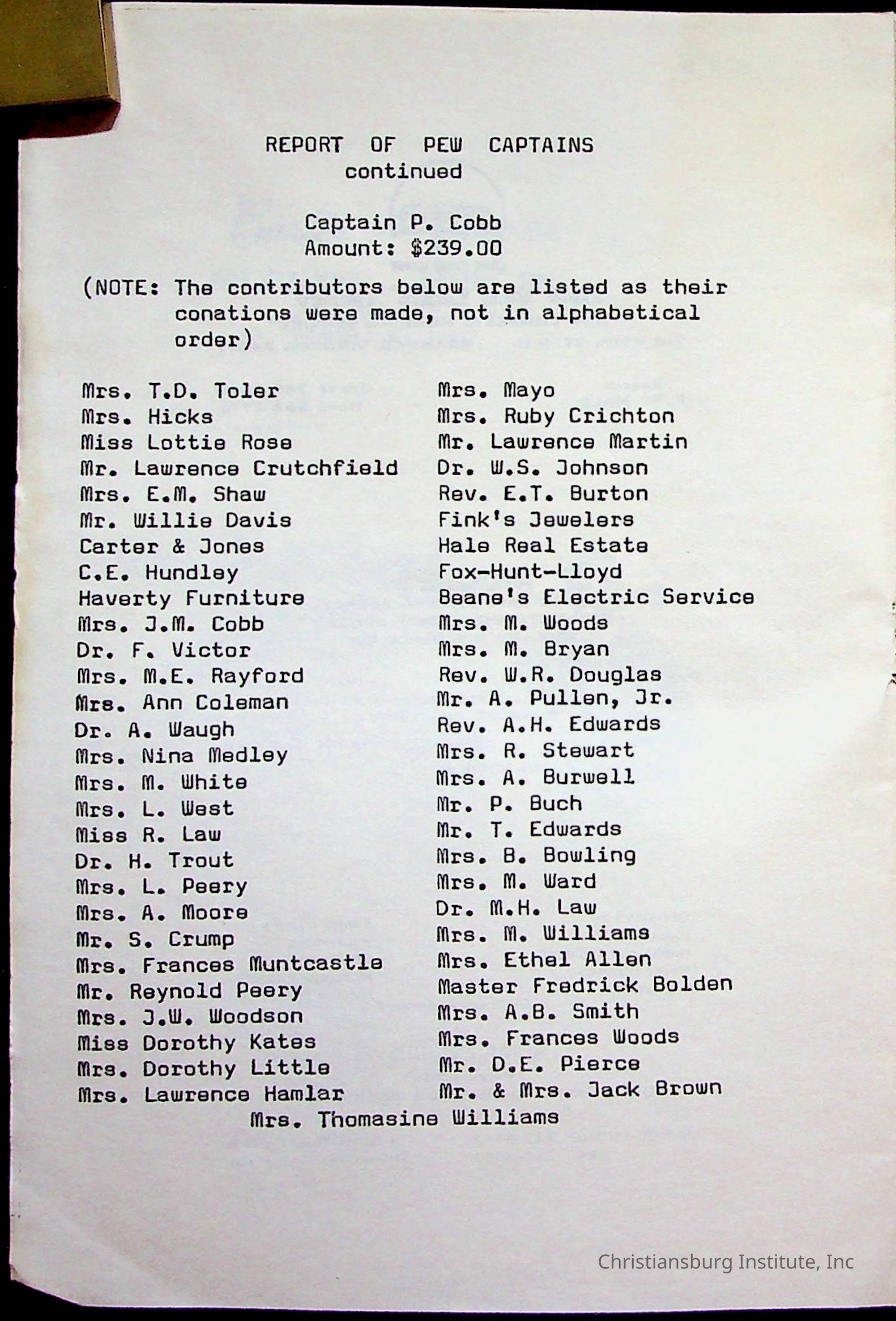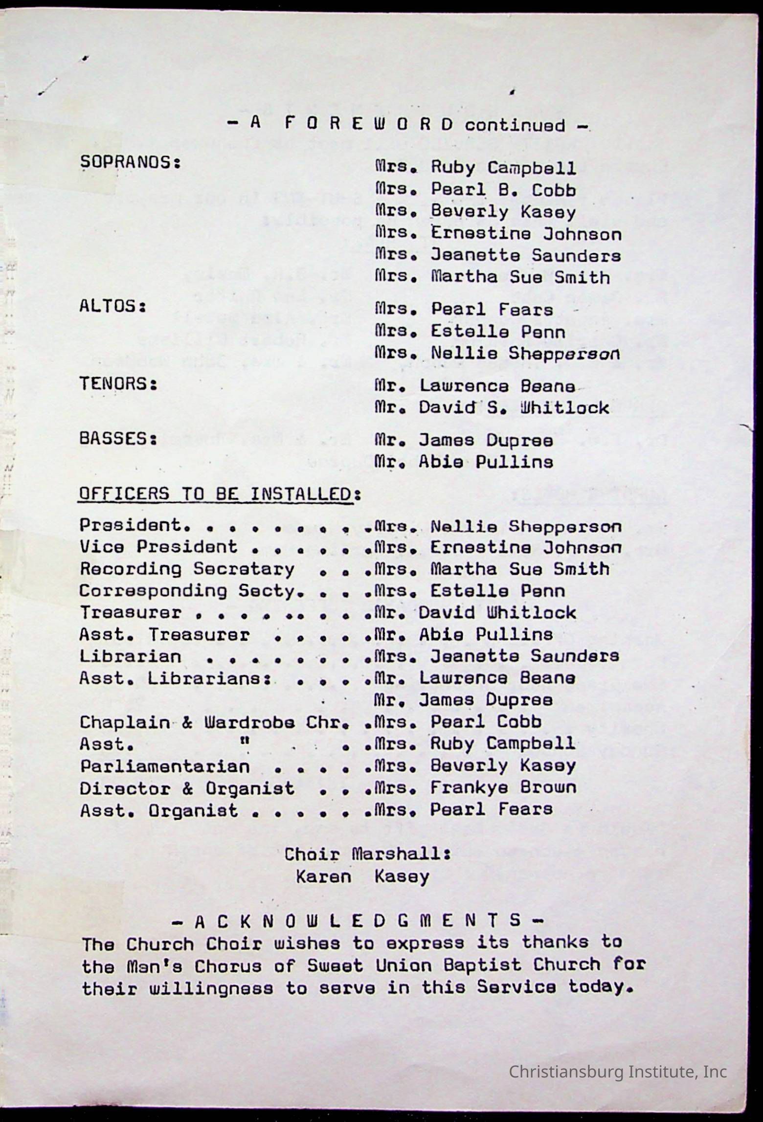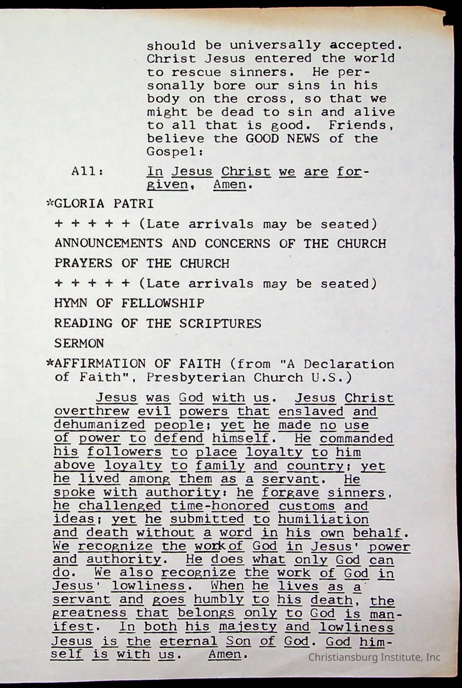 Copyright has been assigned to Christiansburg Institute Museum & Archives by Fifth Avenue Presbyterian Church. For permission to publish materials created by the donor, contact CIMA@christiansburginstitute.com. Materials not created by Fifth Avenue Presbyterian Church may still be under copyright.