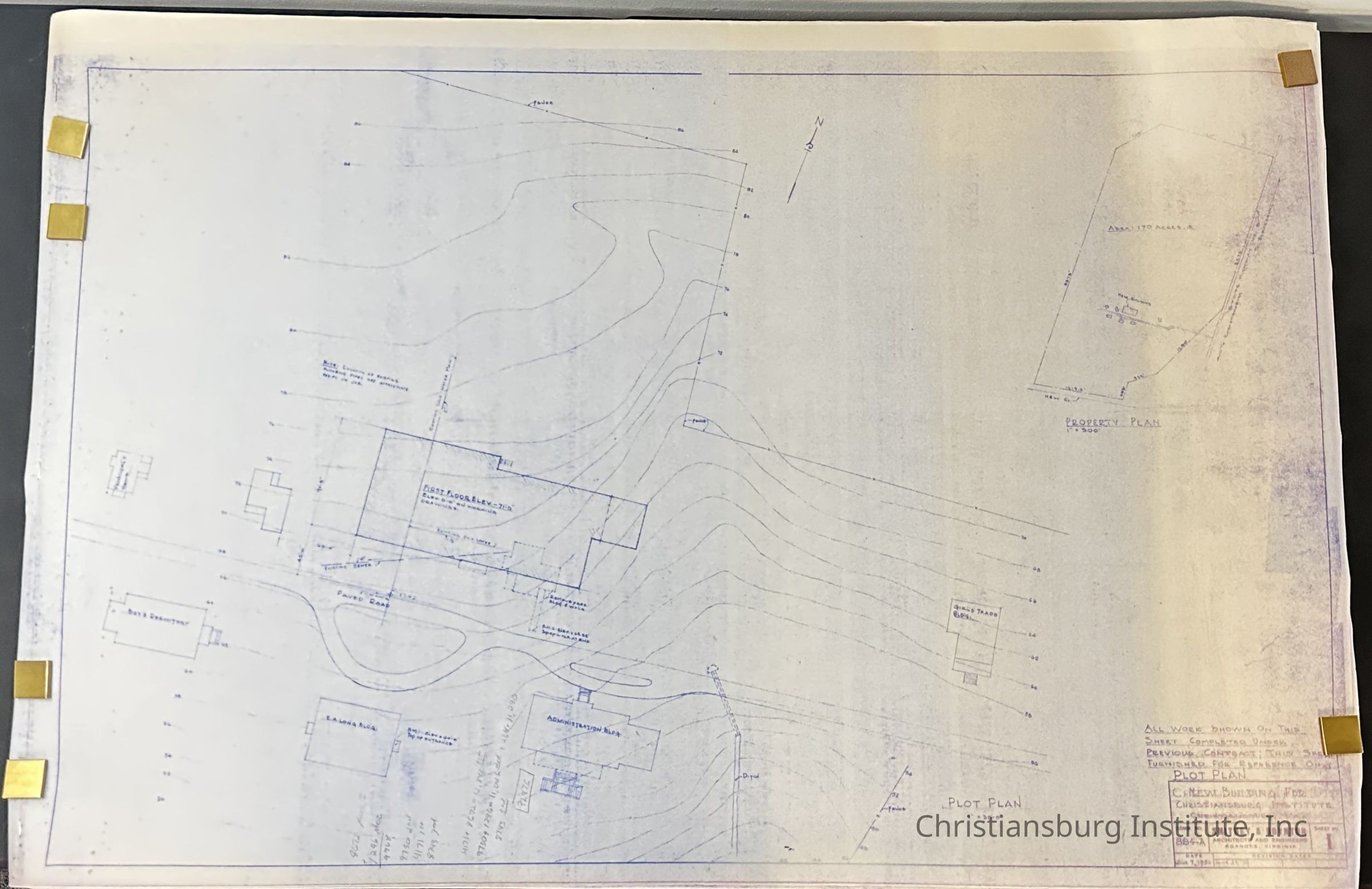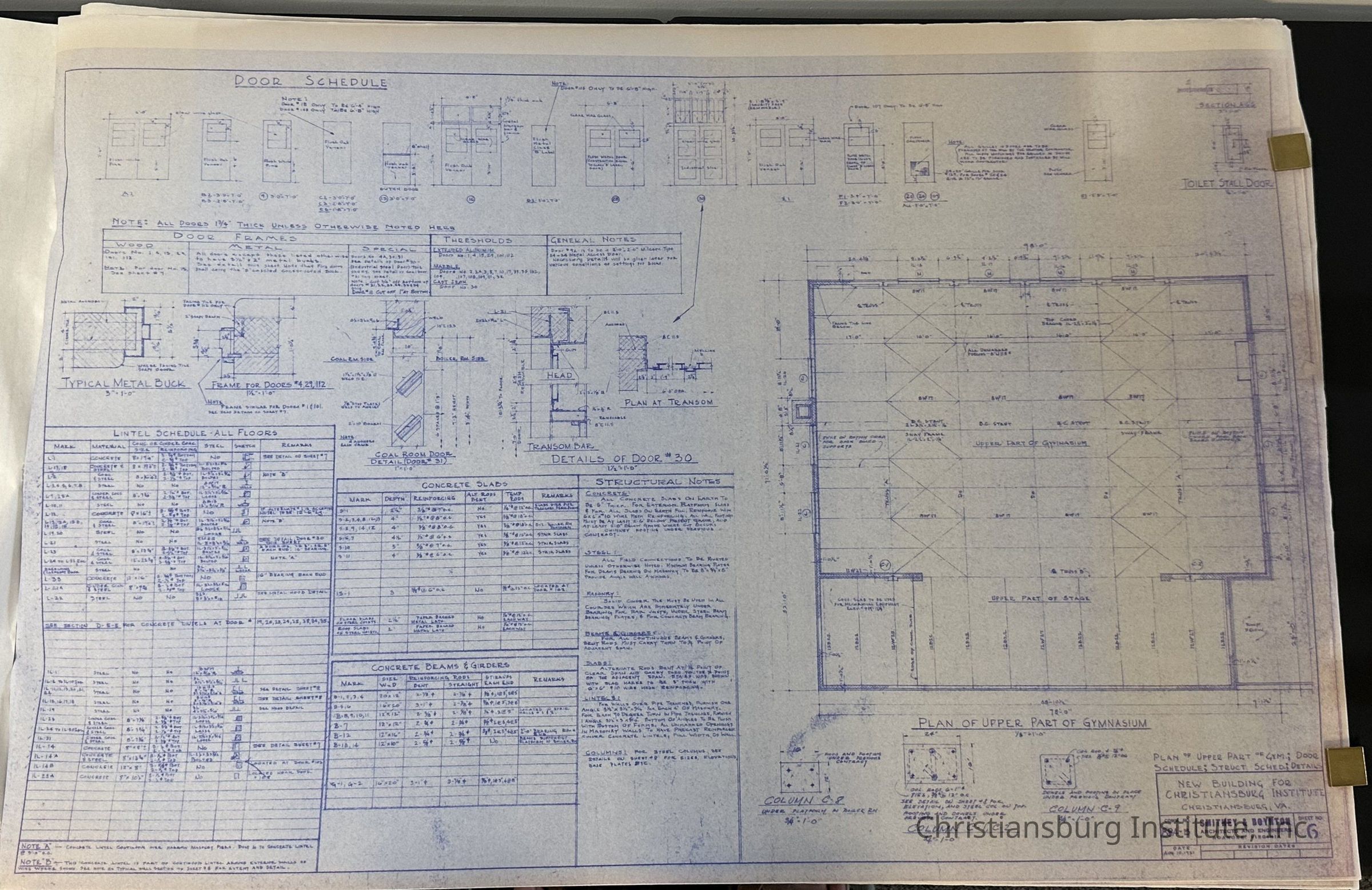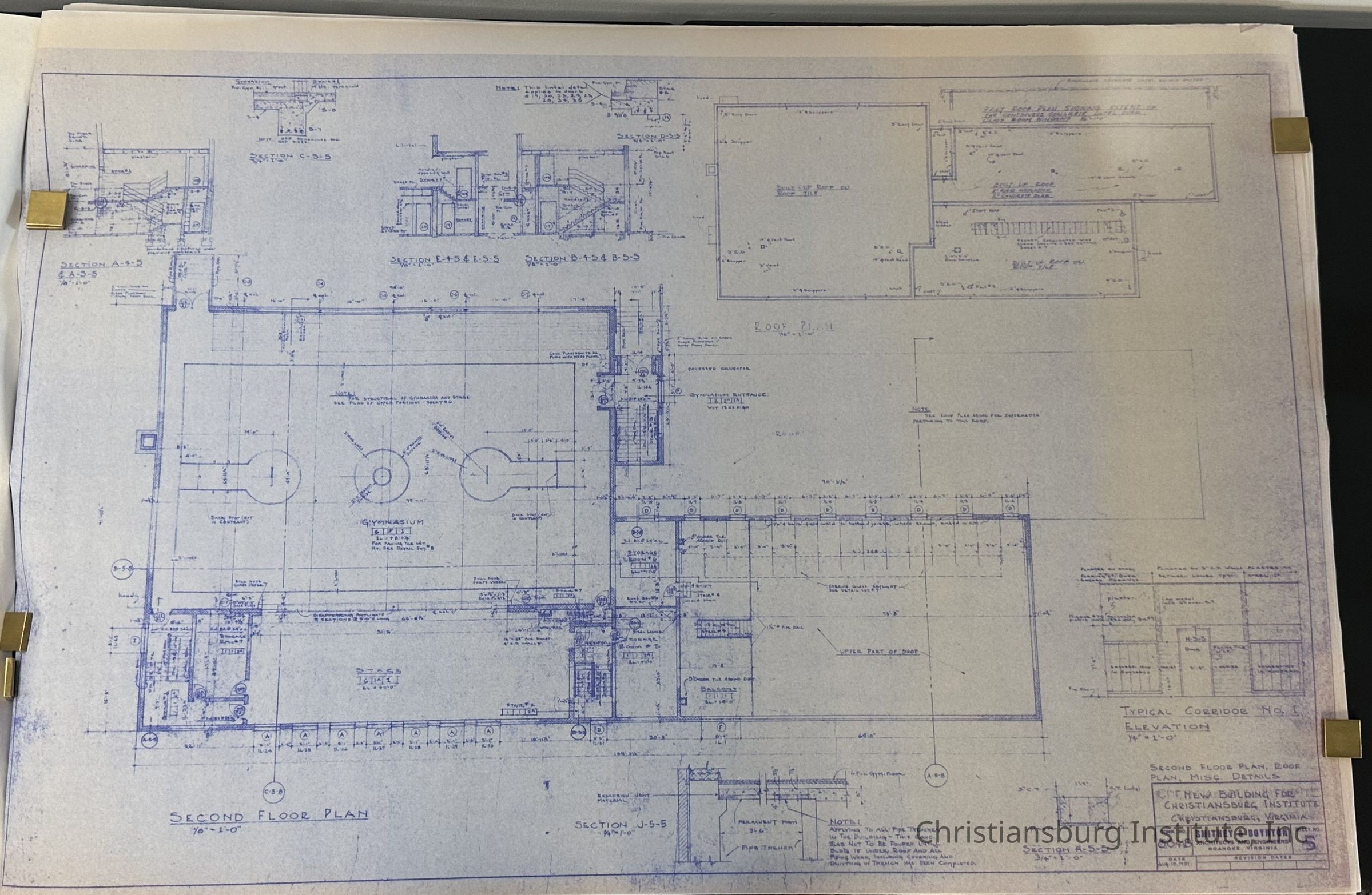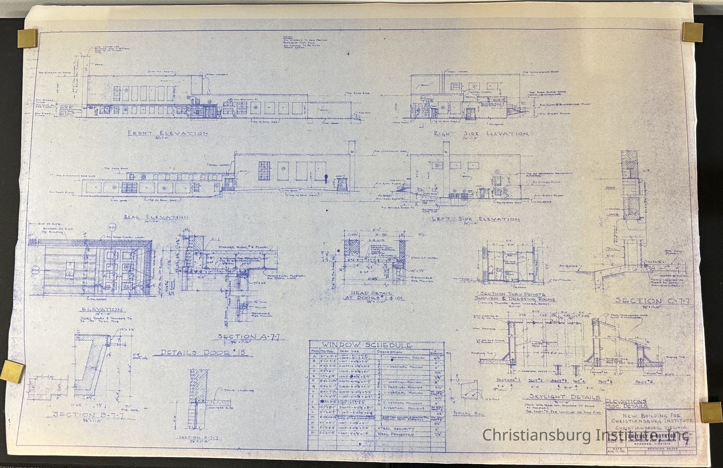 The blueprints for Scattergood Hall on the Christiansburg Institute campus made by Smithey & Boynton, dated 1951.Creator