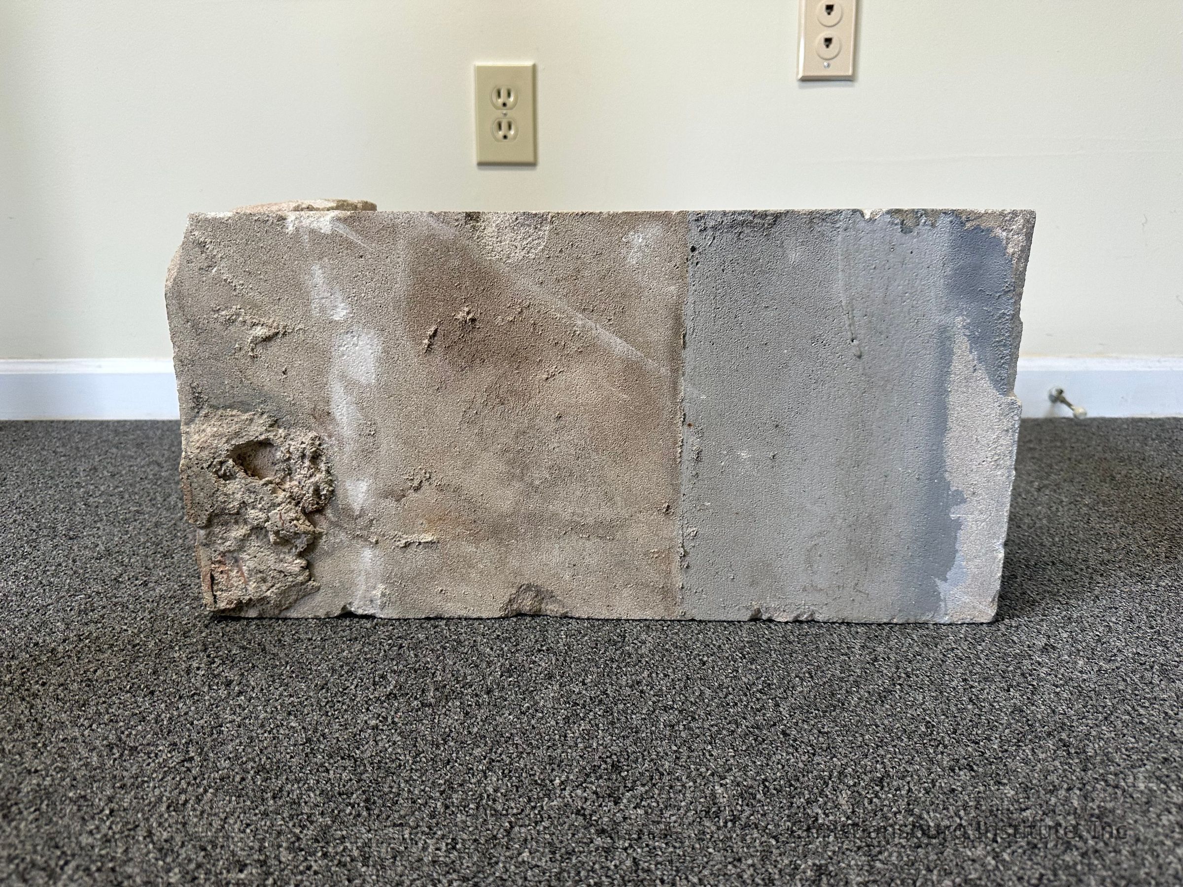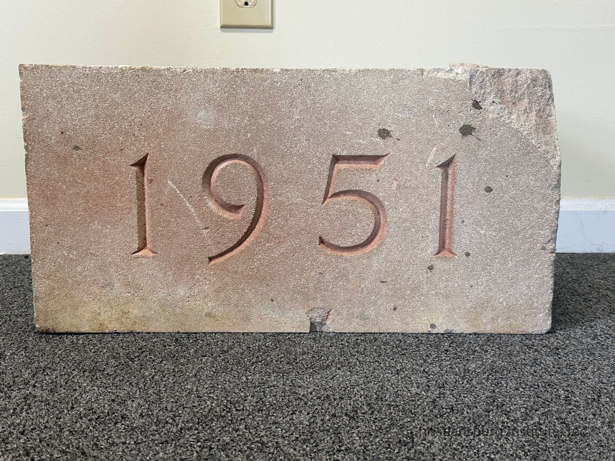 The cornerstone for the dedication of Scattergood Hall that held a Christiansburg Institute time capsule dated 1954.Collection