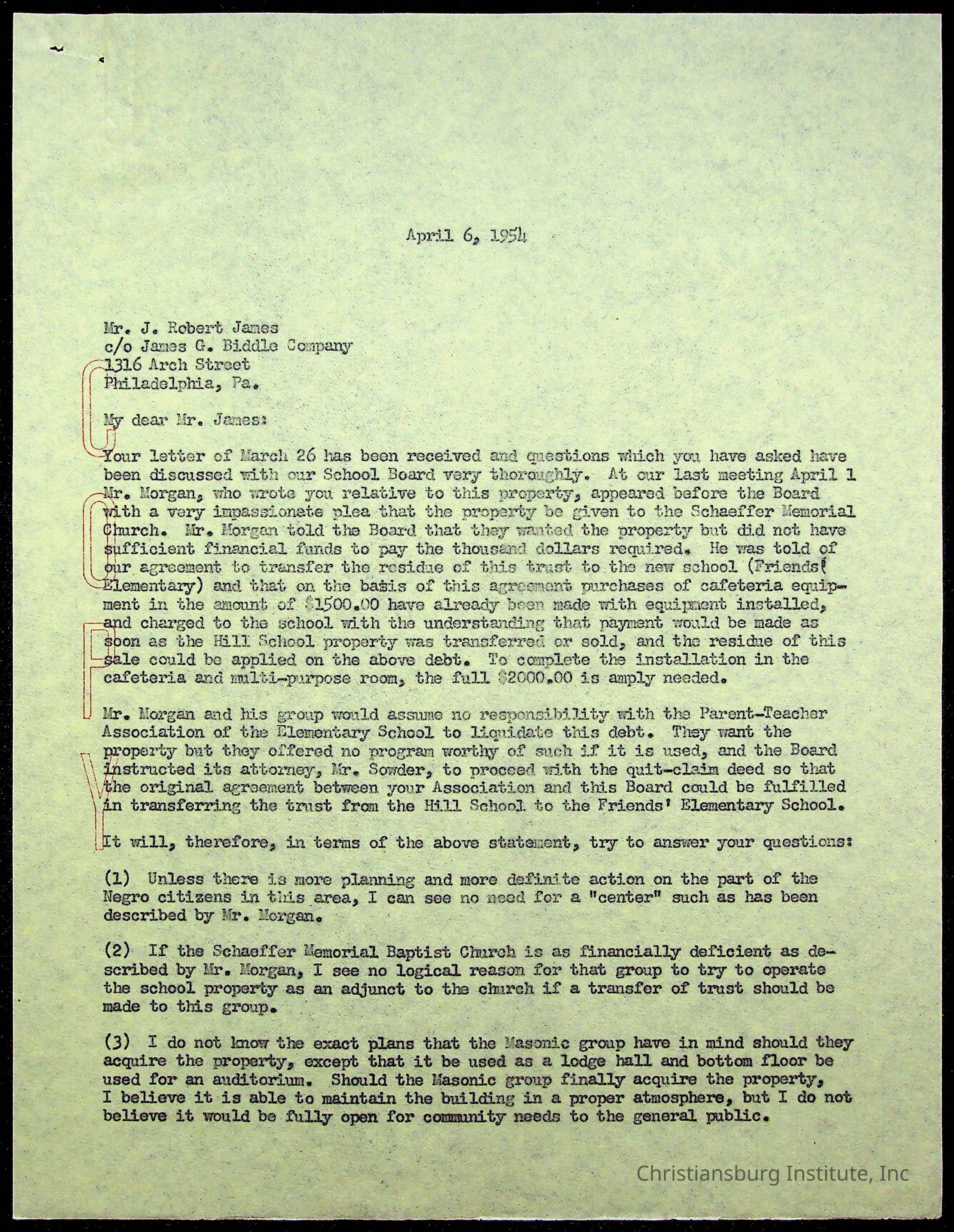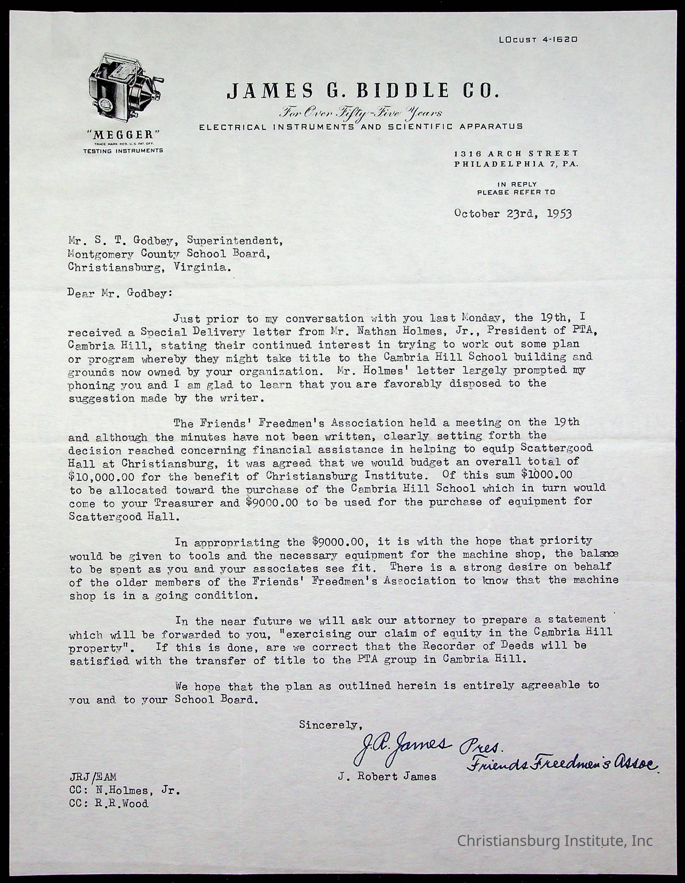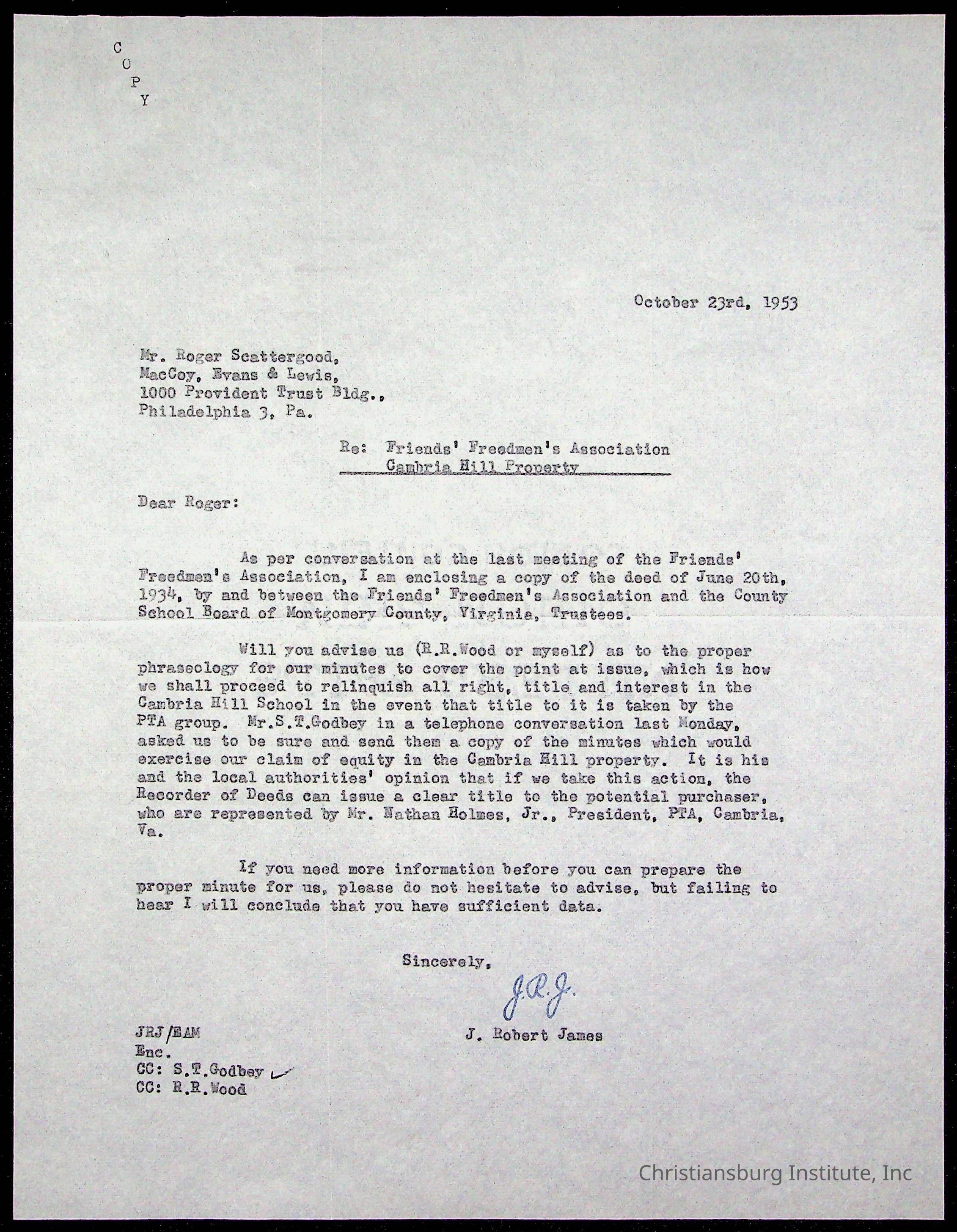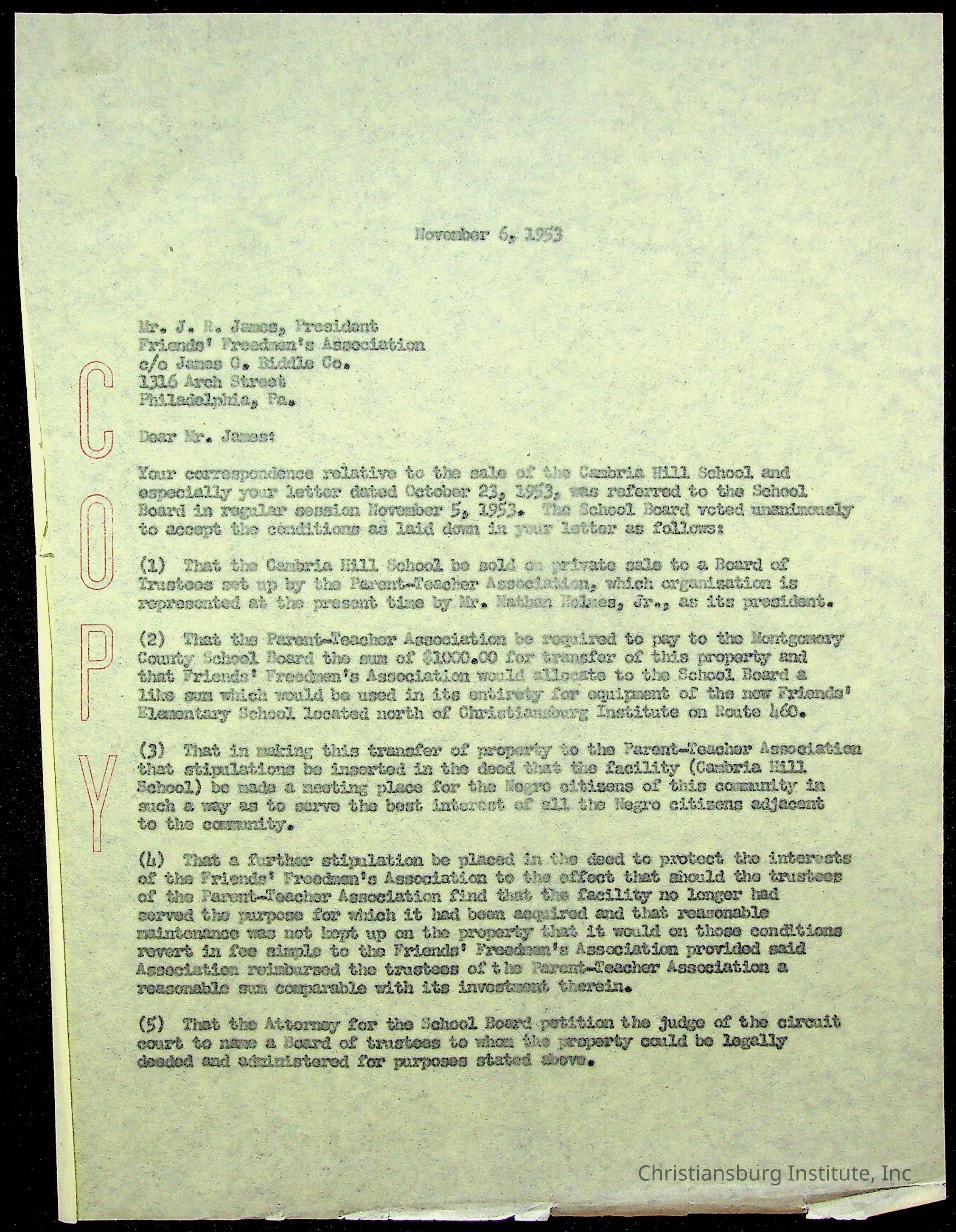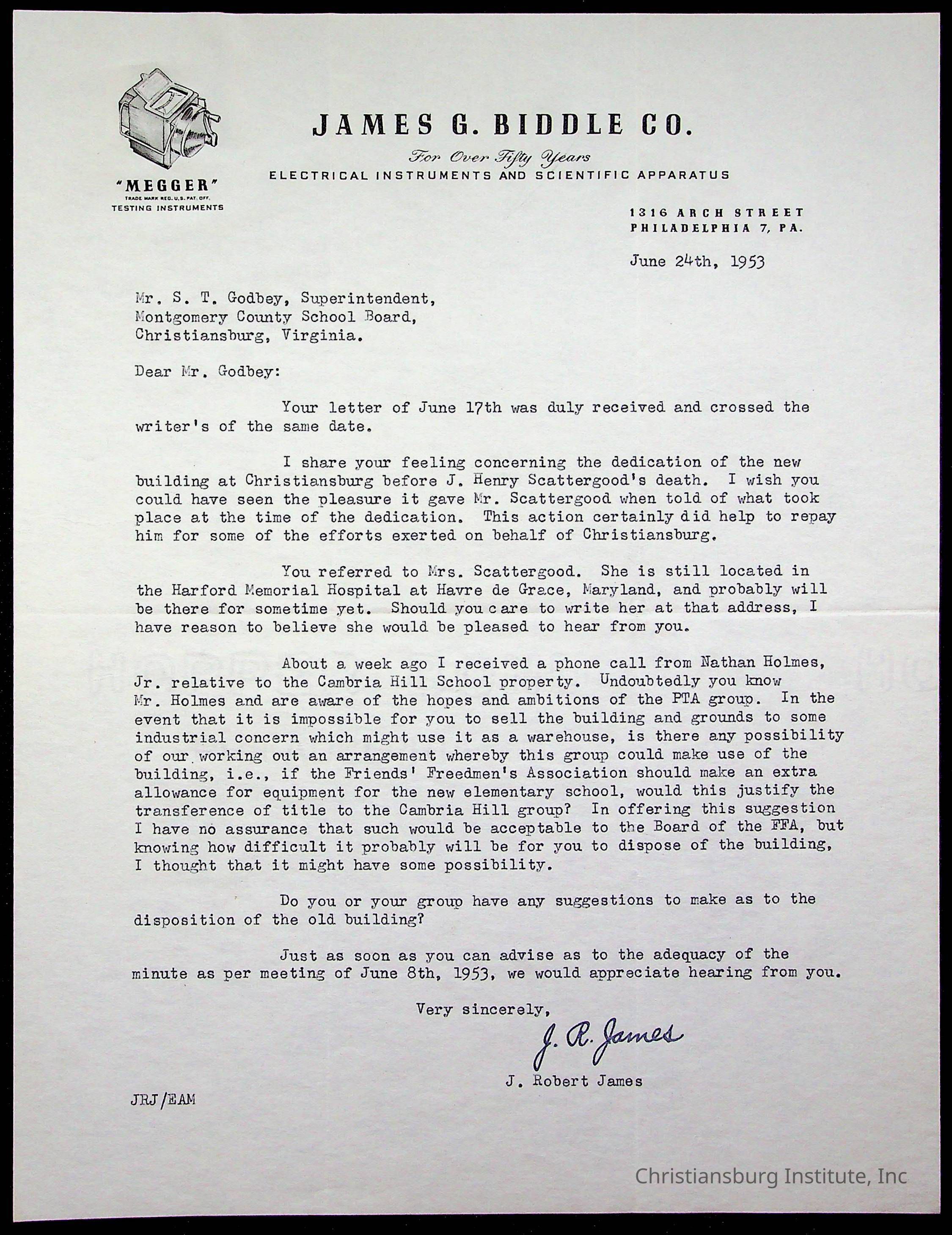 An archive of correspondence relating to Scattergood Hall at Christiansburg Institute, circa 1950s.