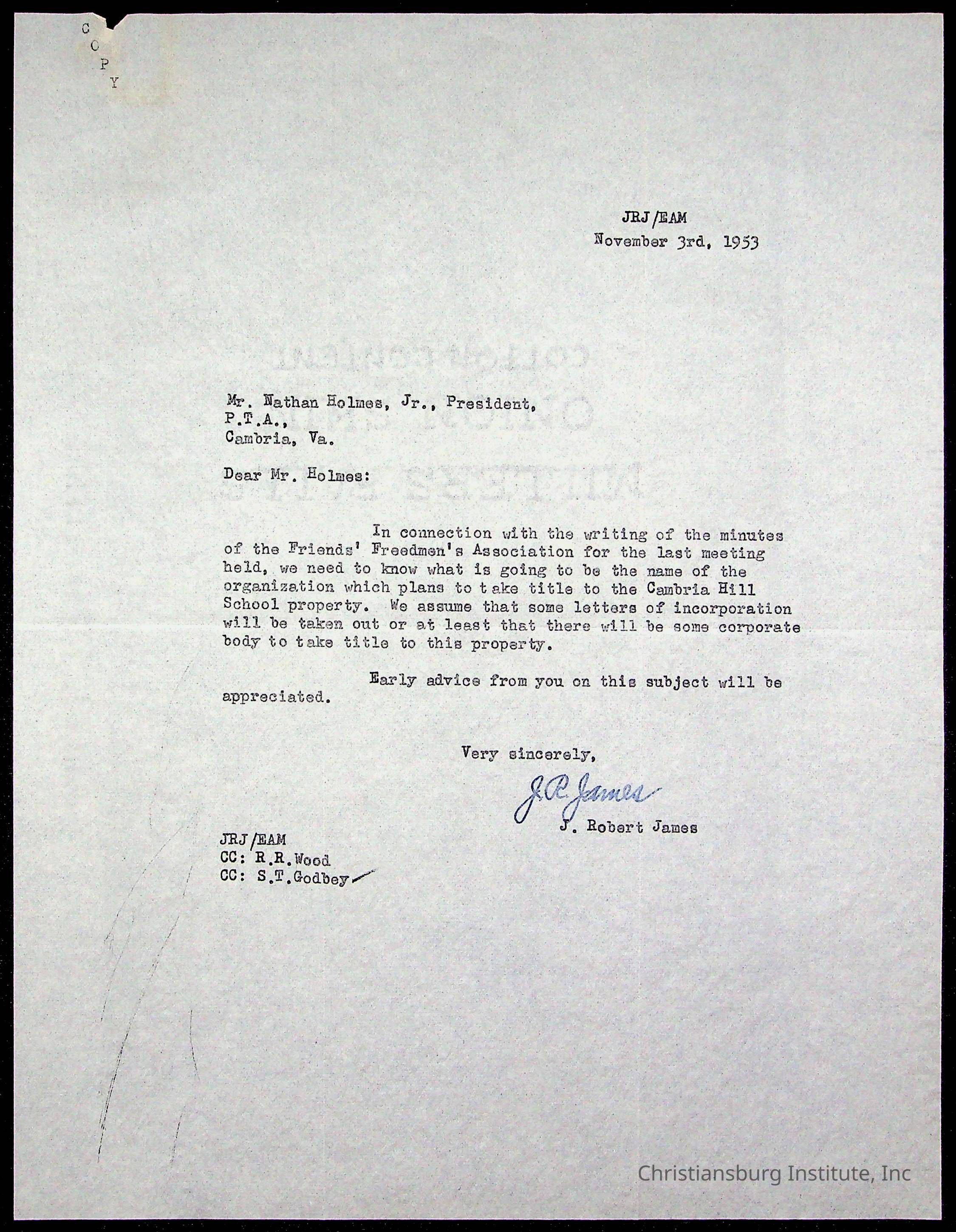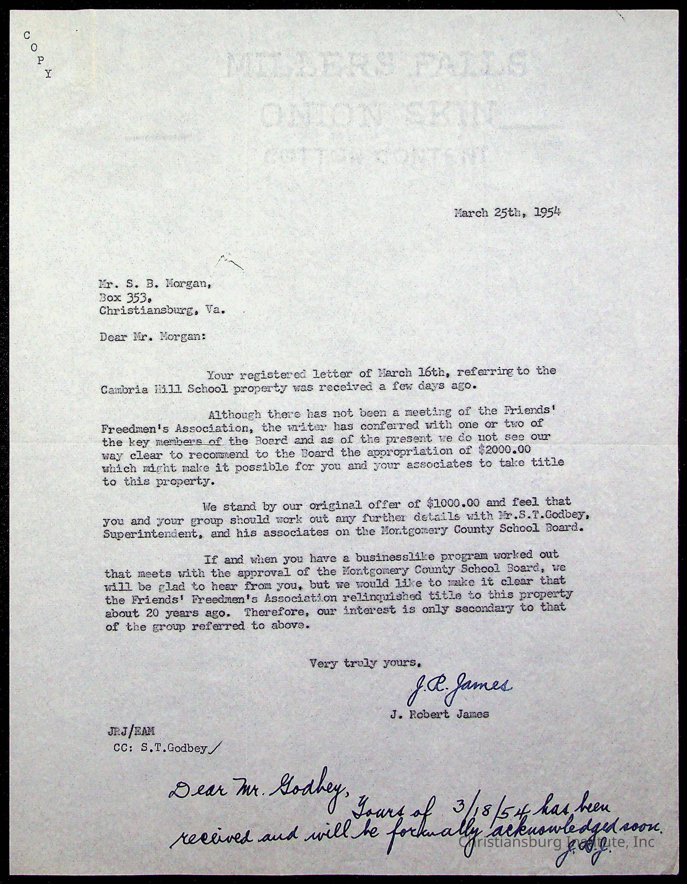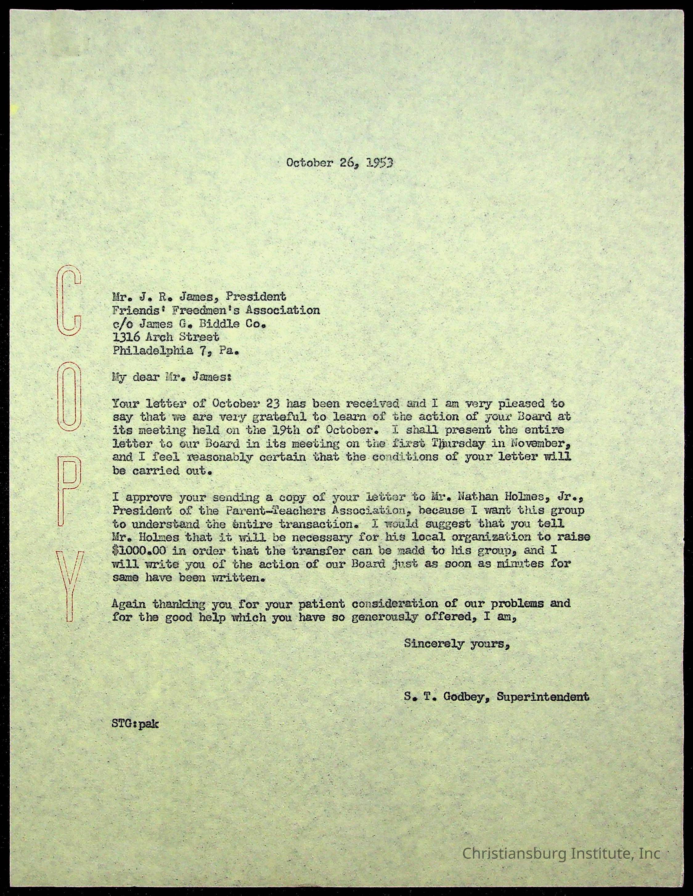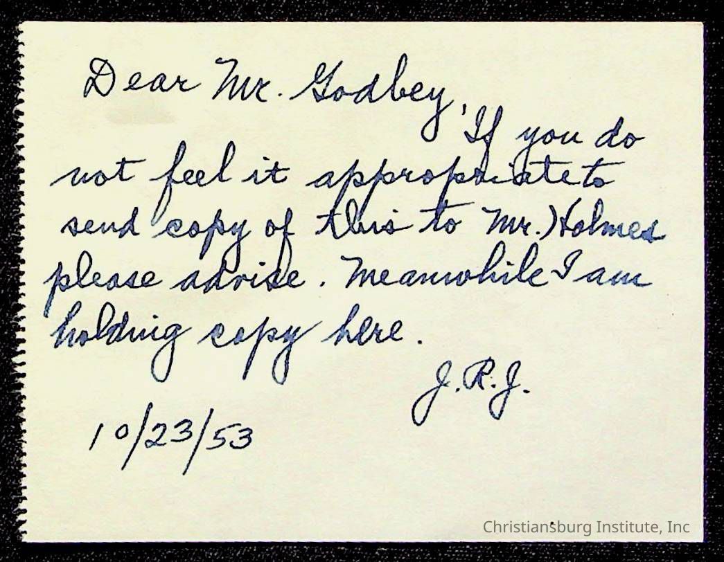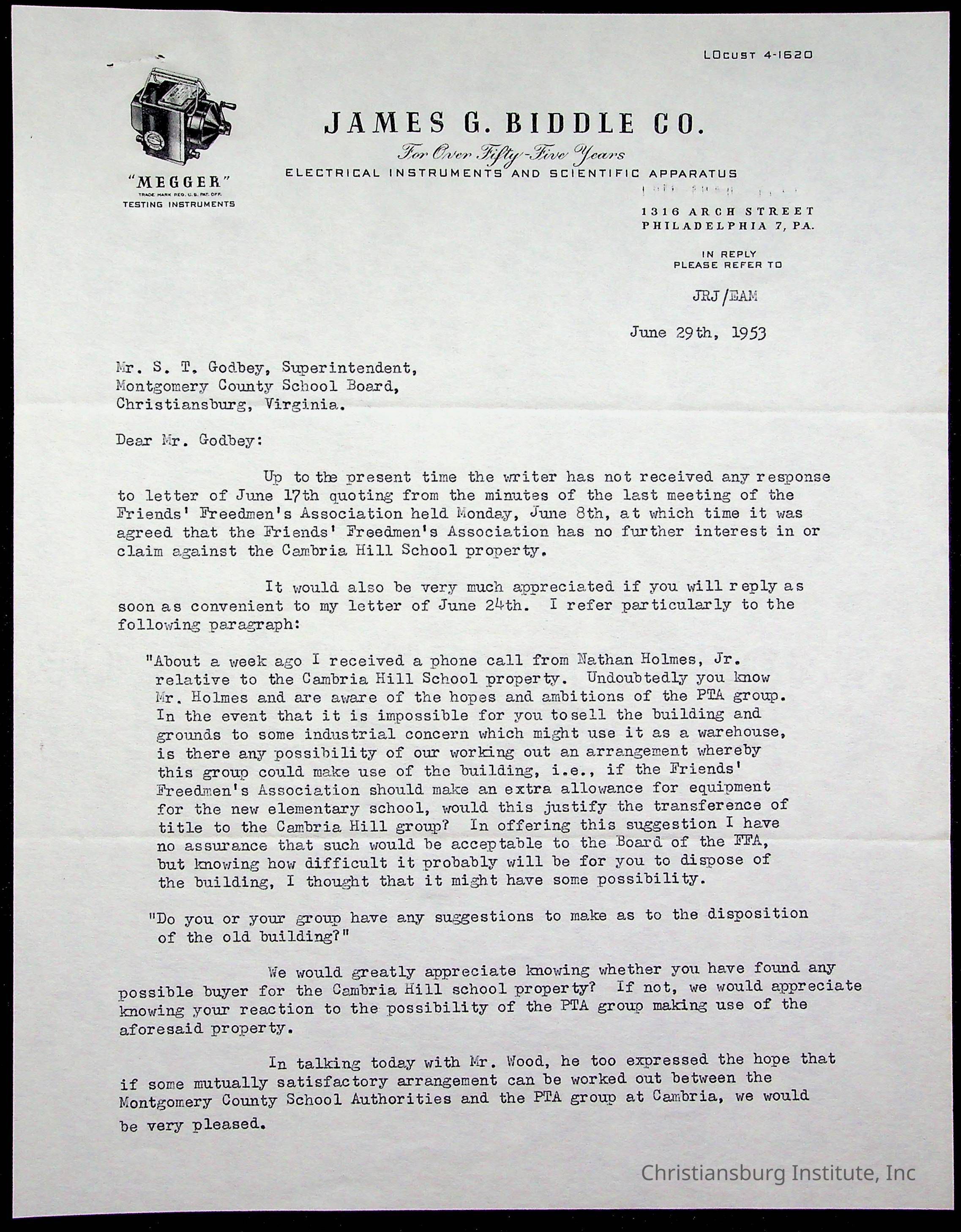 An archive of correspondence relating to Scattergood Hall at Christiansburg Institute, circa 1950s.