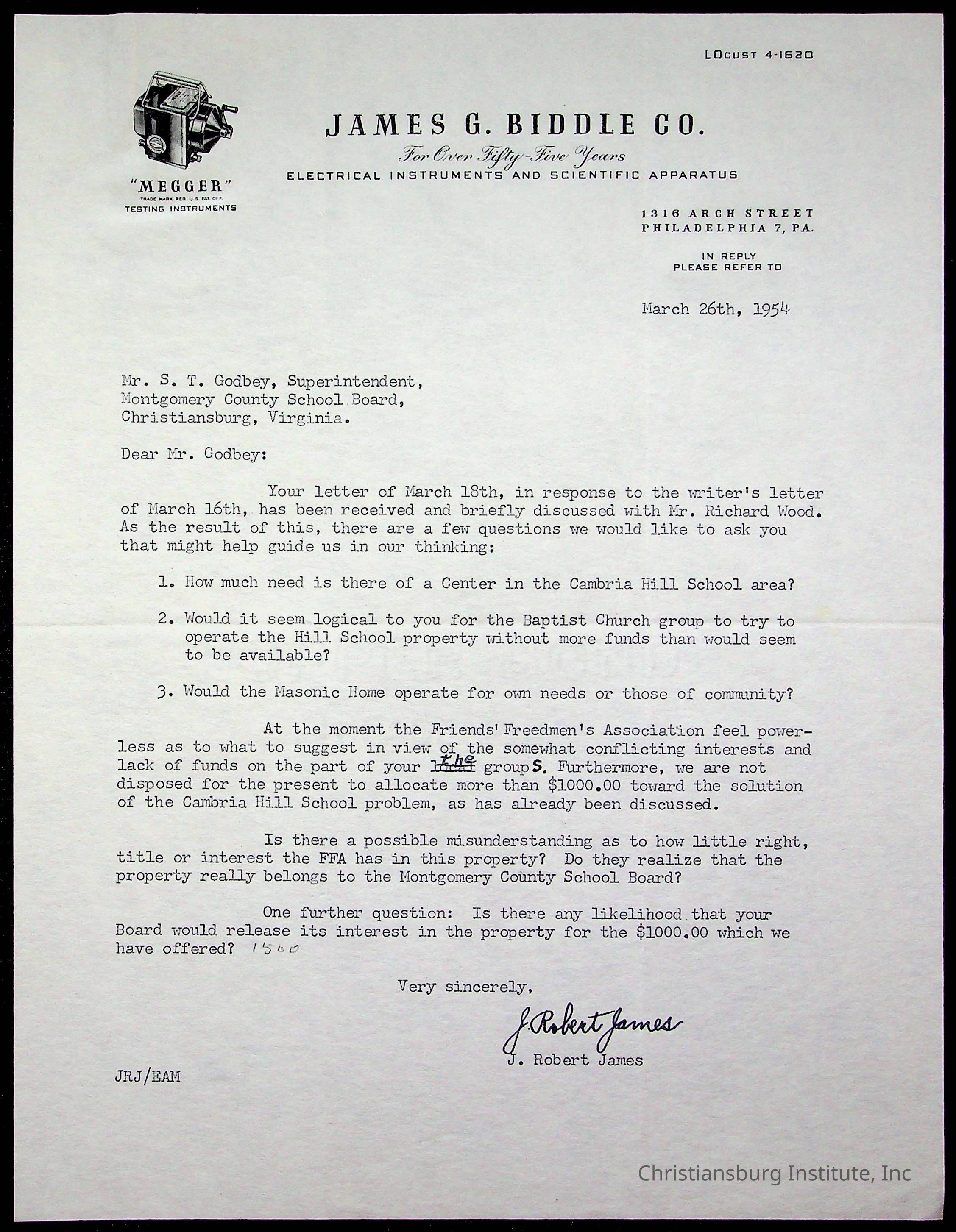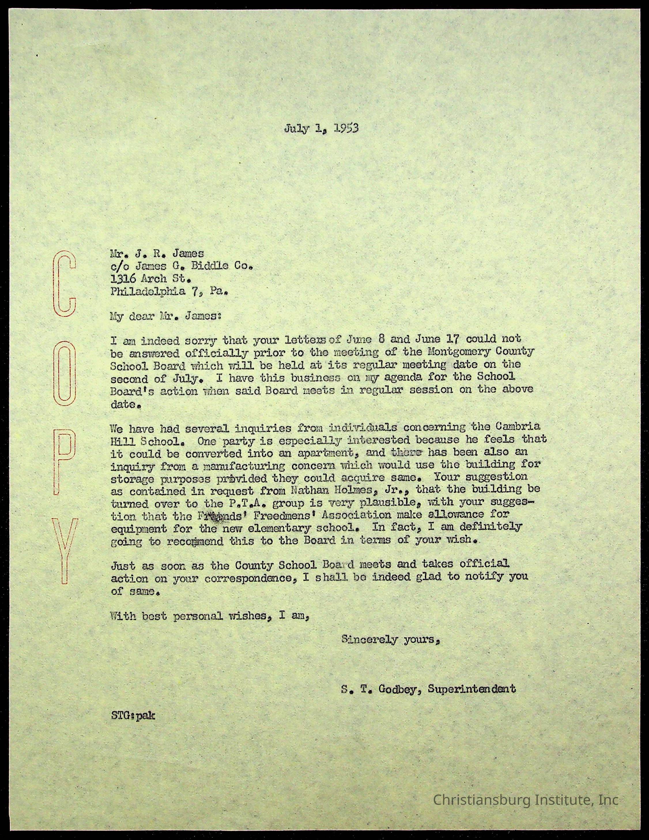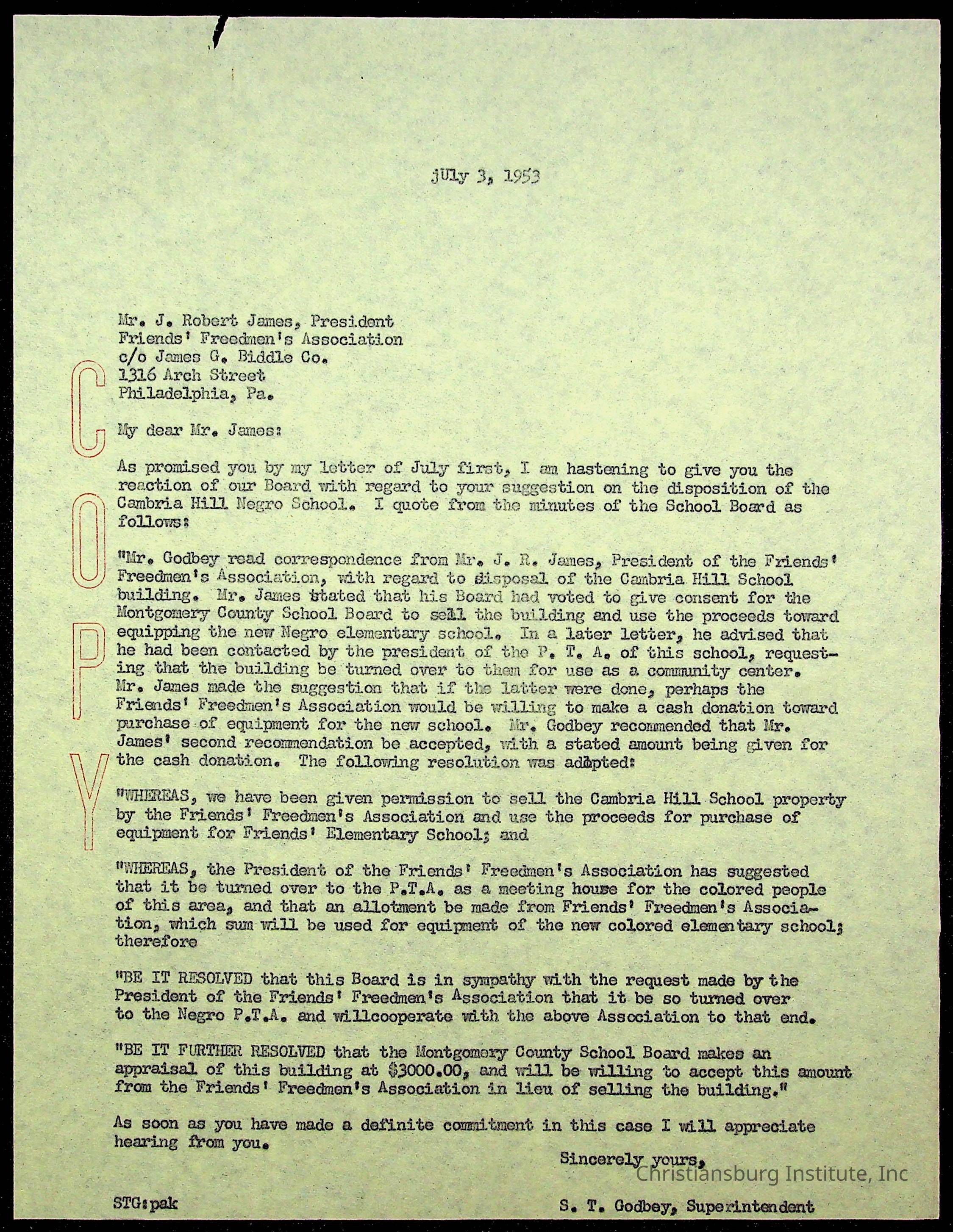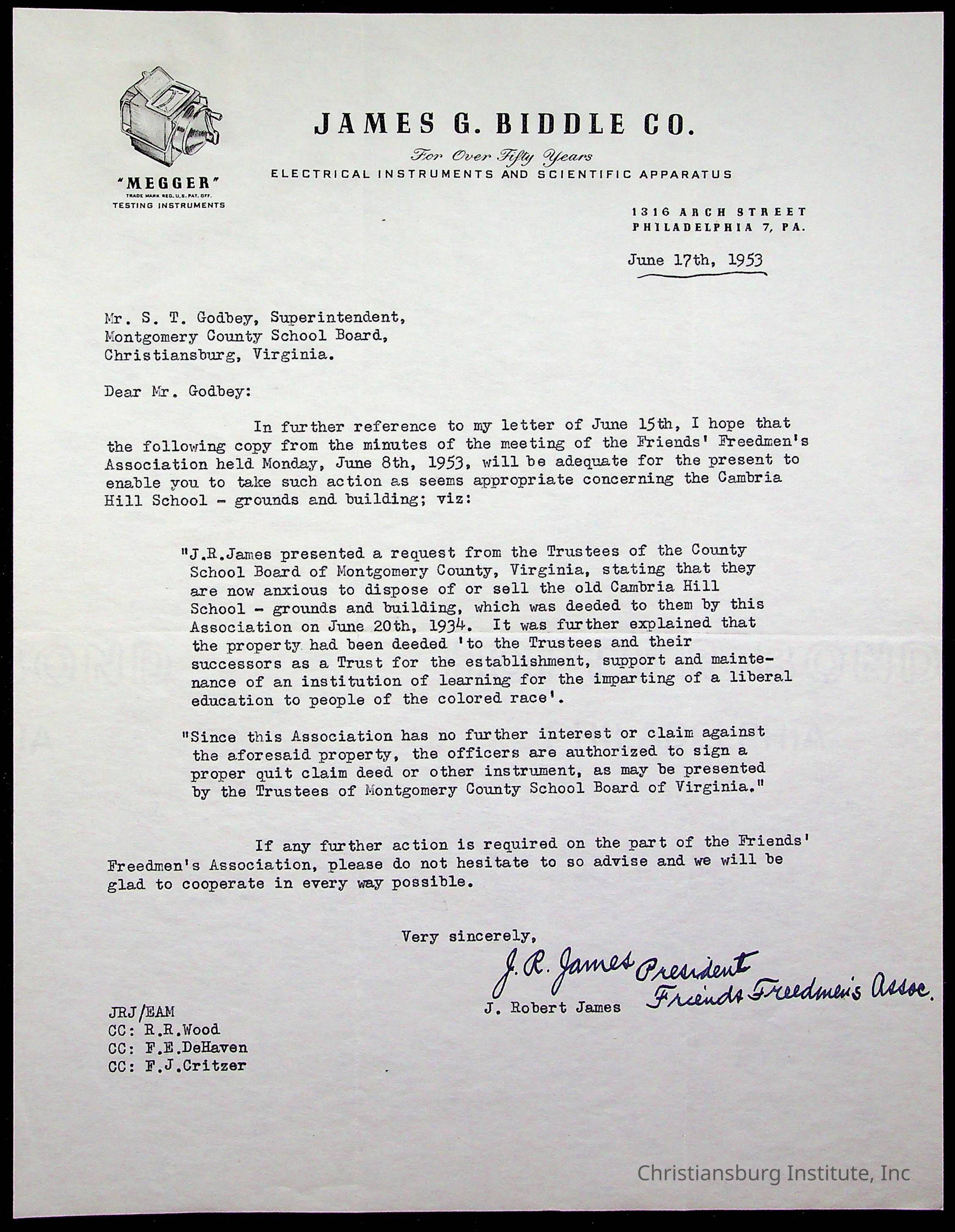 An archive of correspondence relating to Scattergood Hall at Christiansburg Institute, circa 1950s.