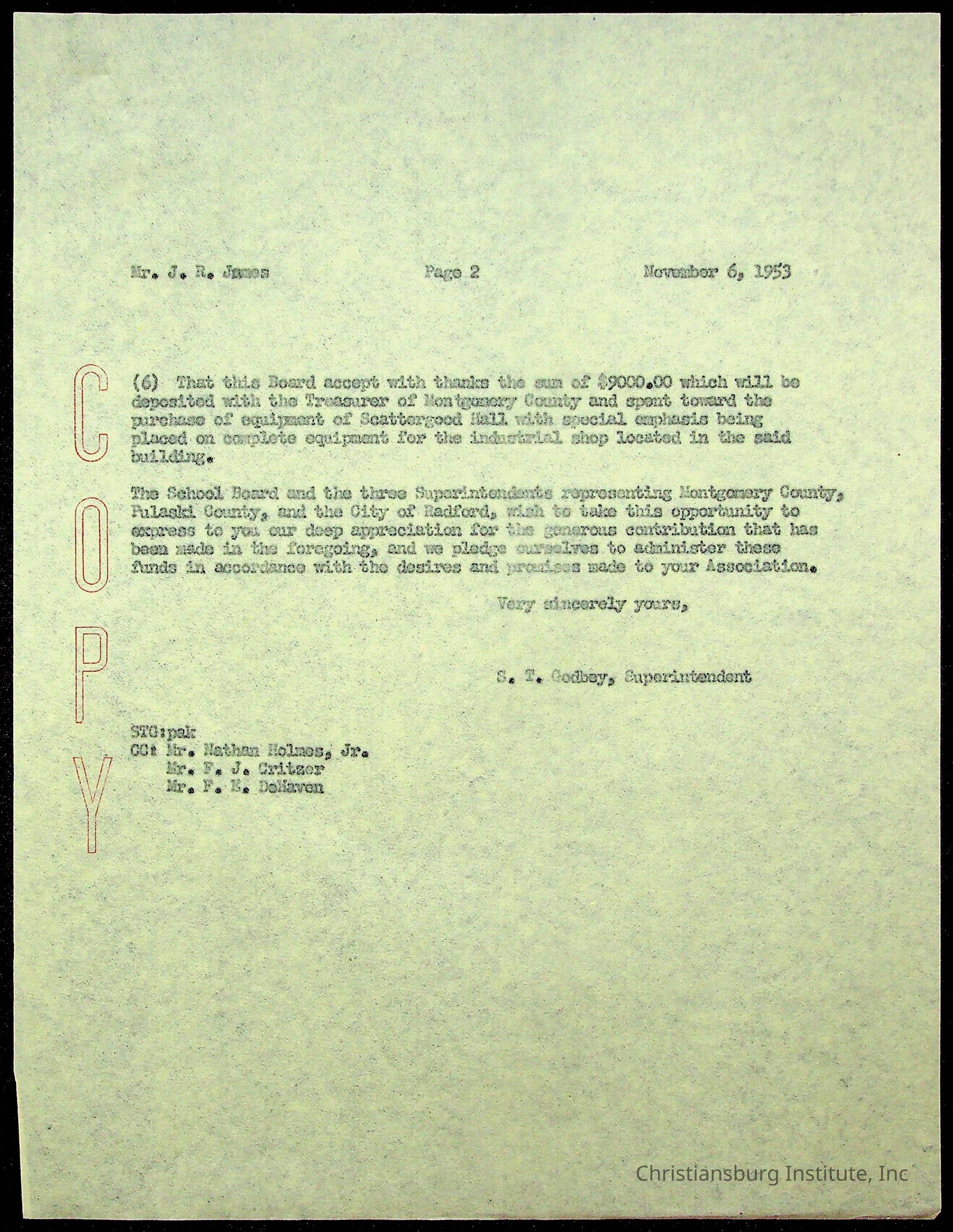 Copyright has been assigned to Christiansburg Institute Museum & Archives by Montgomery County Public Schools. For permission to publish materials created by the donor, contact CIMA@christiansburginstitute.com. Materials not created by Christiansburg Industrial Institute may still be under copyright.