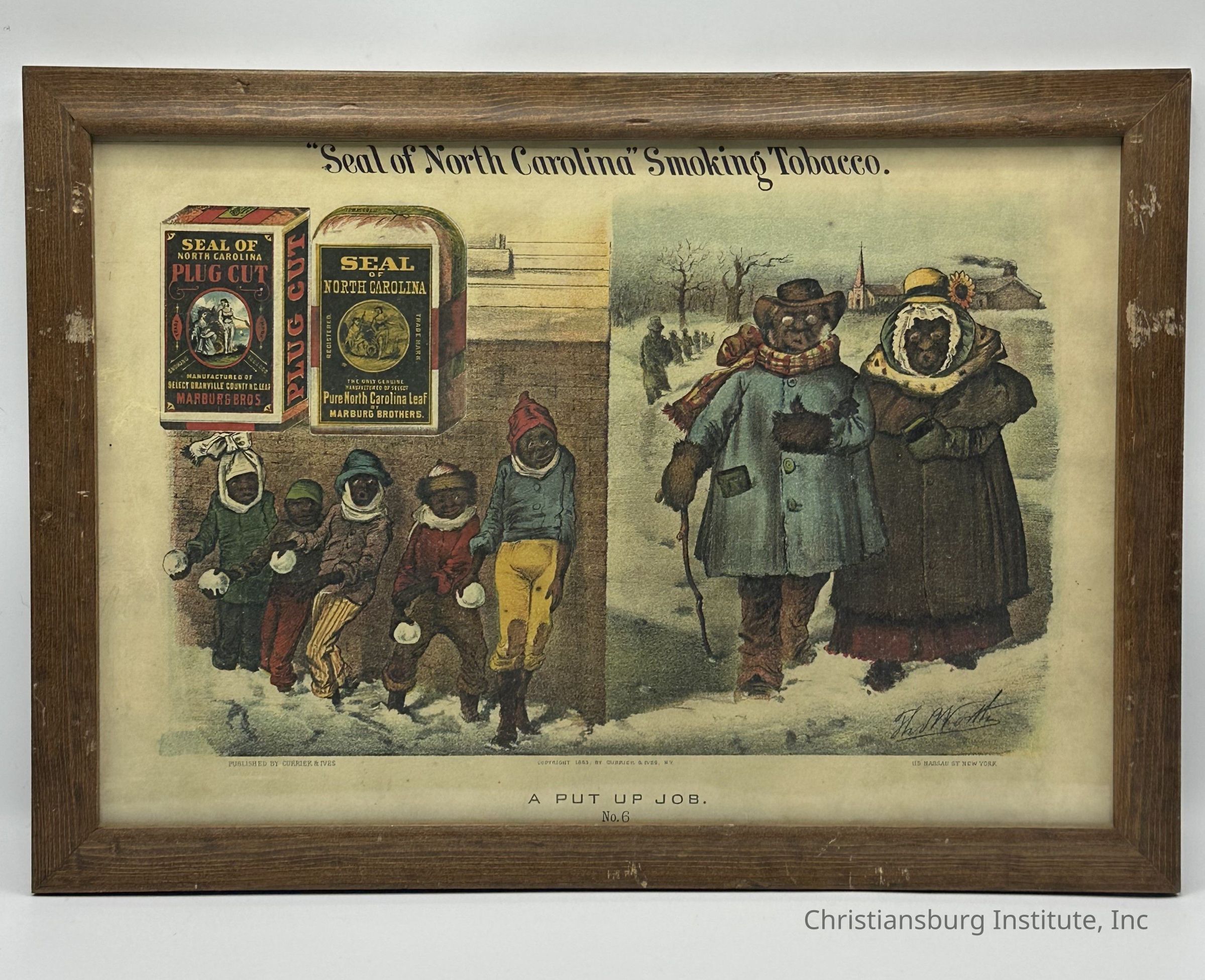 A print titled 'Seal of North Carolina Smoking Tobacco' an advertisement for Seal of North Carolina tobacco published by Currier & Ives in the year 1883.Artwork Details