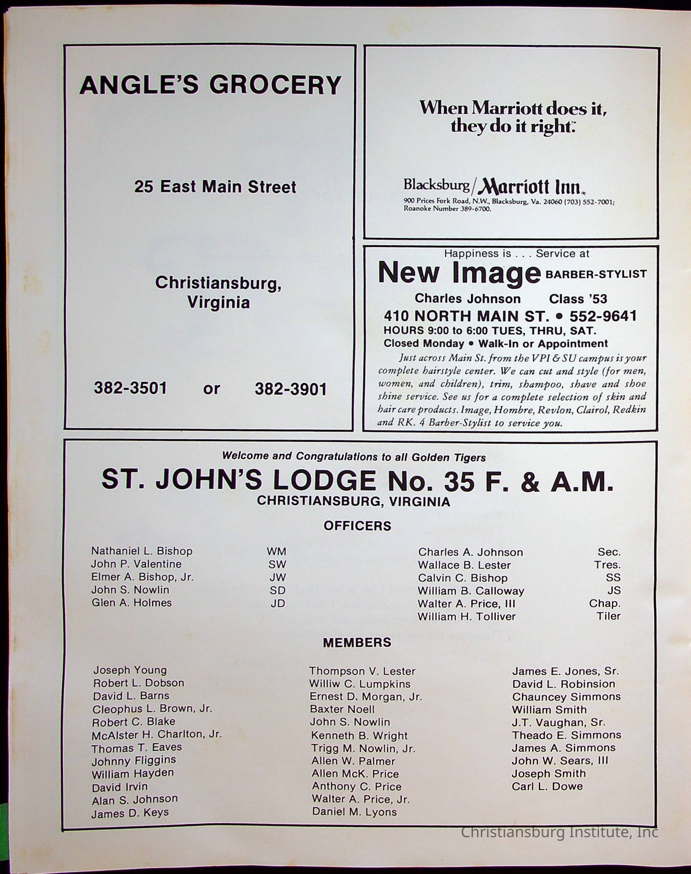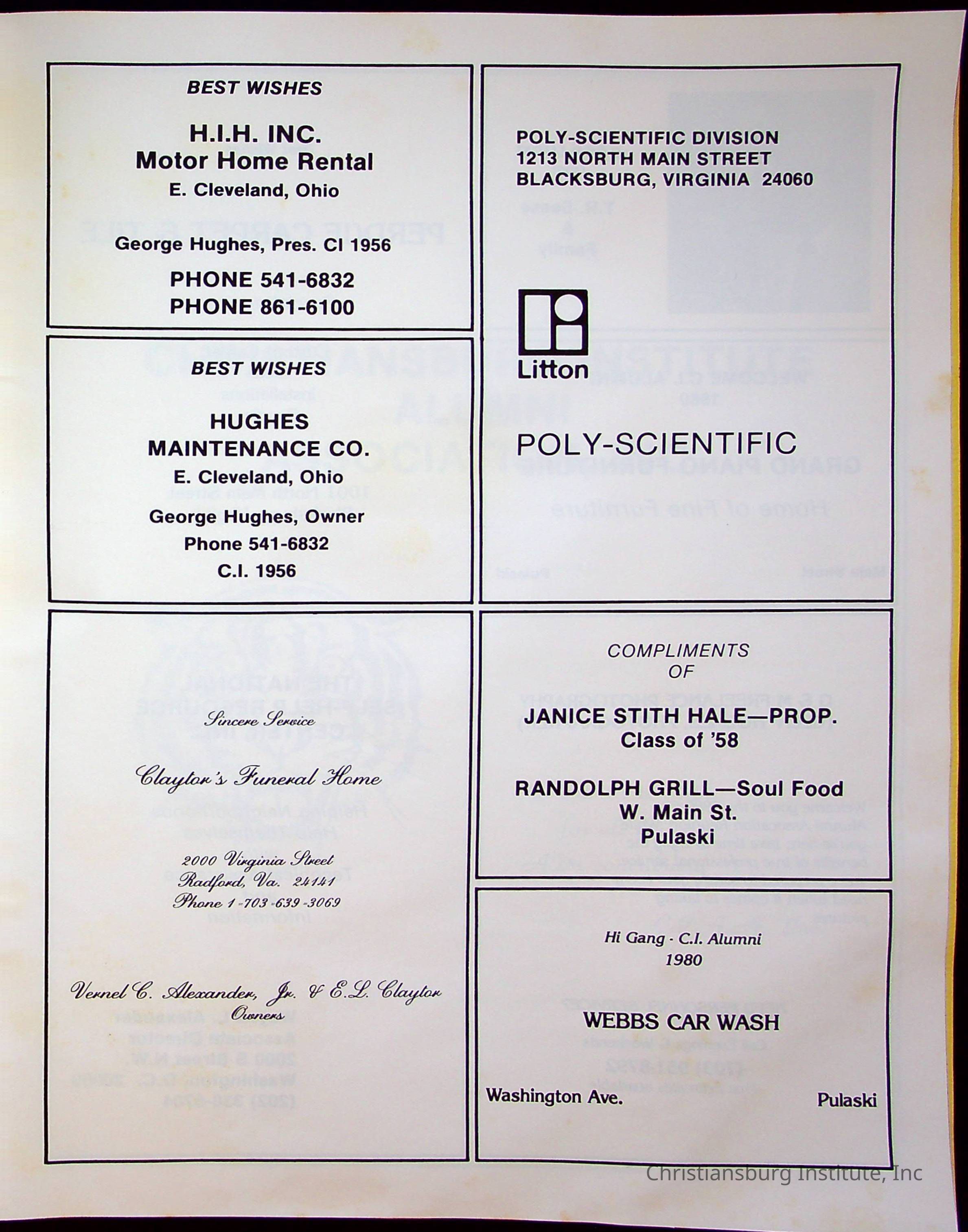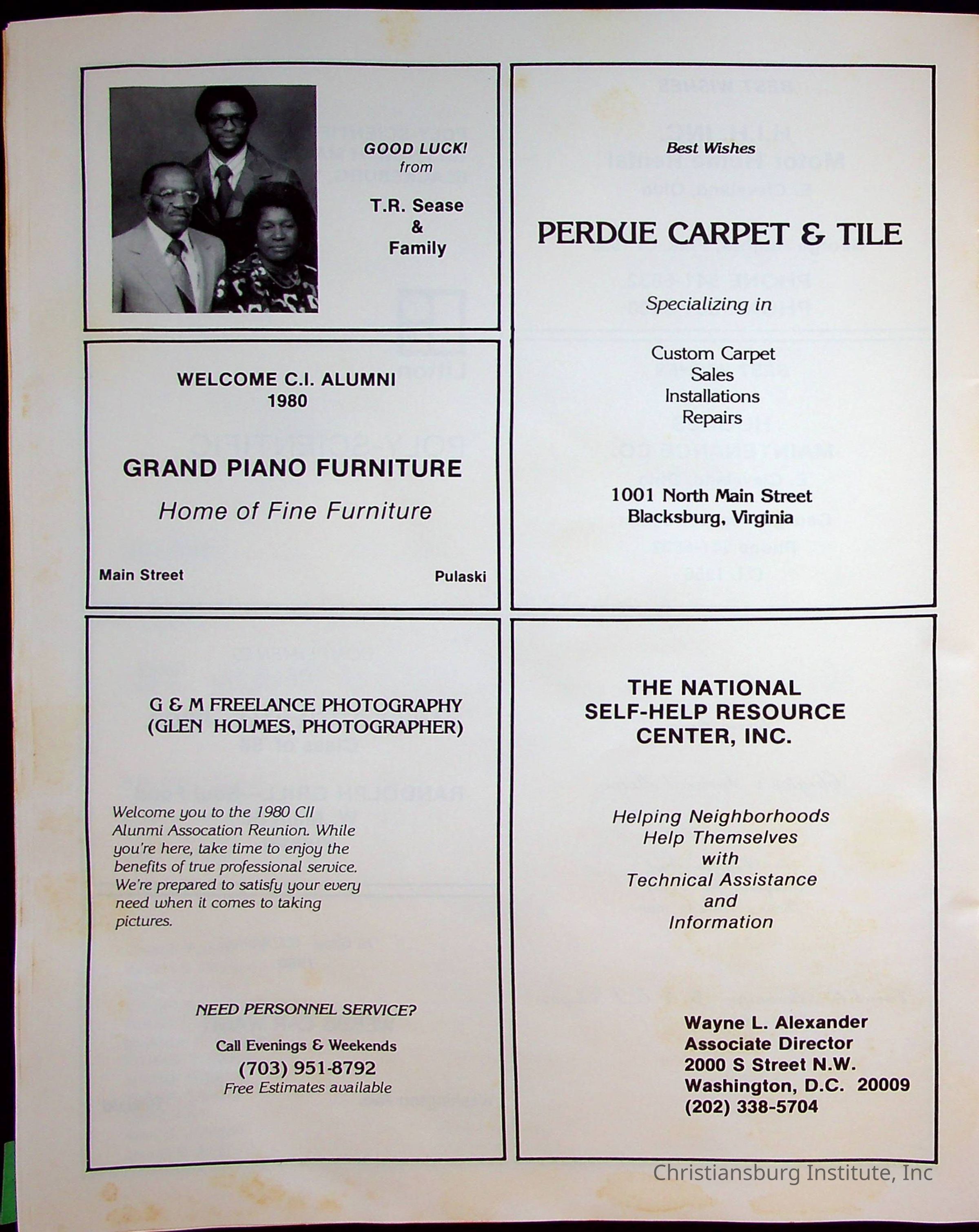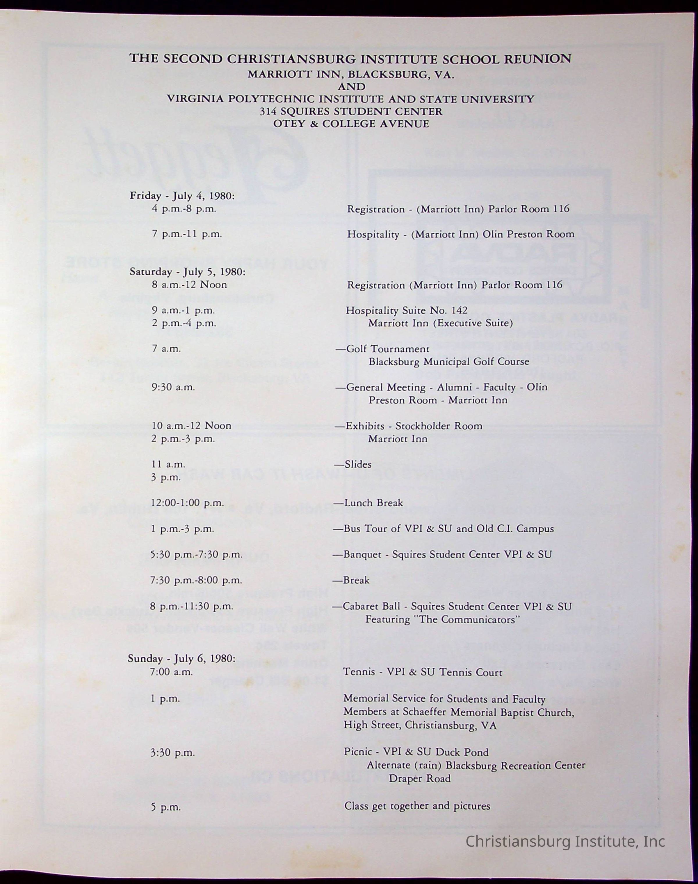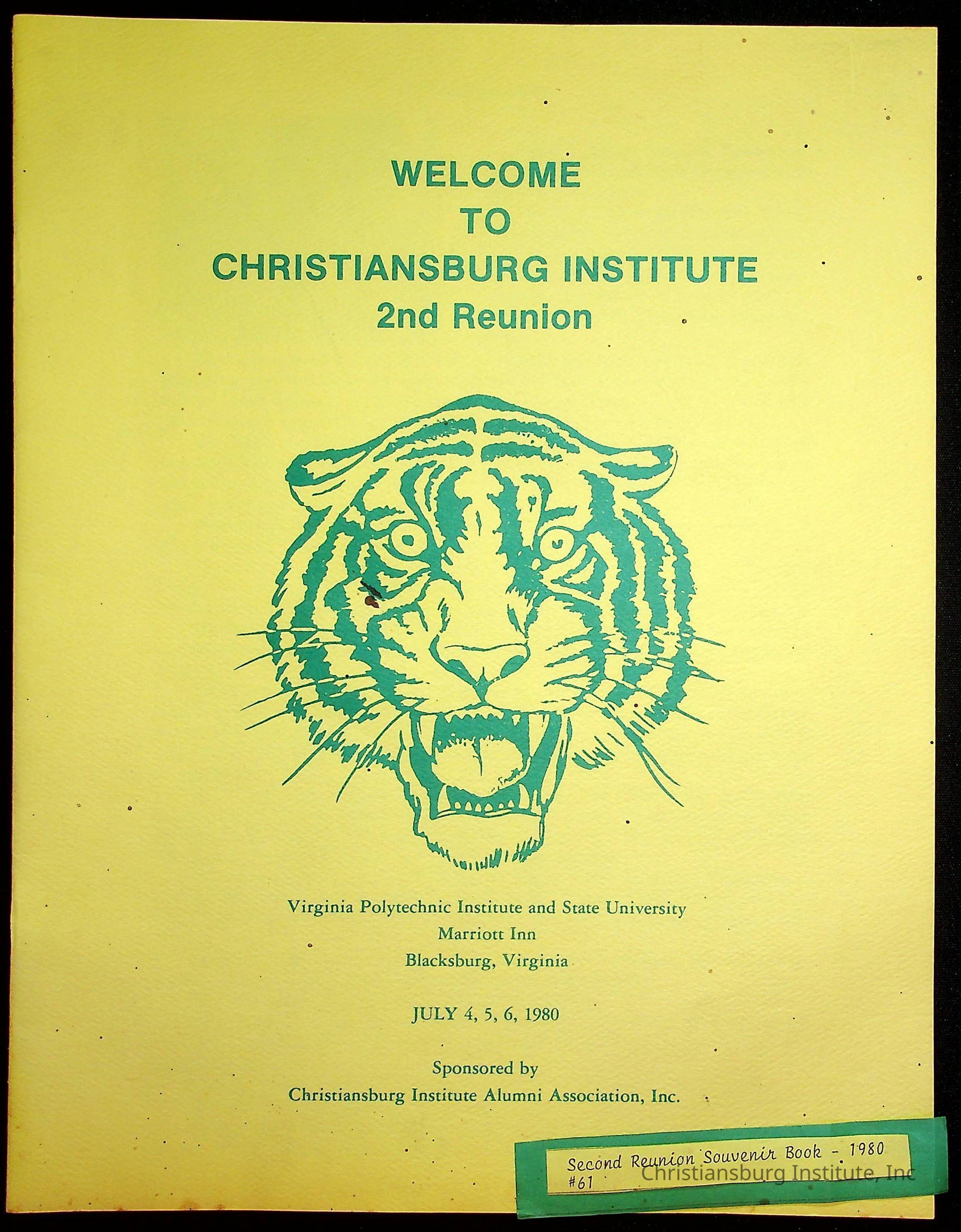 The official program booklet for the second Christiansburg Institute reunion on July 4th-6th 1980 that took place at the Marriott Inn in Blacksburg, Virginia.Collection