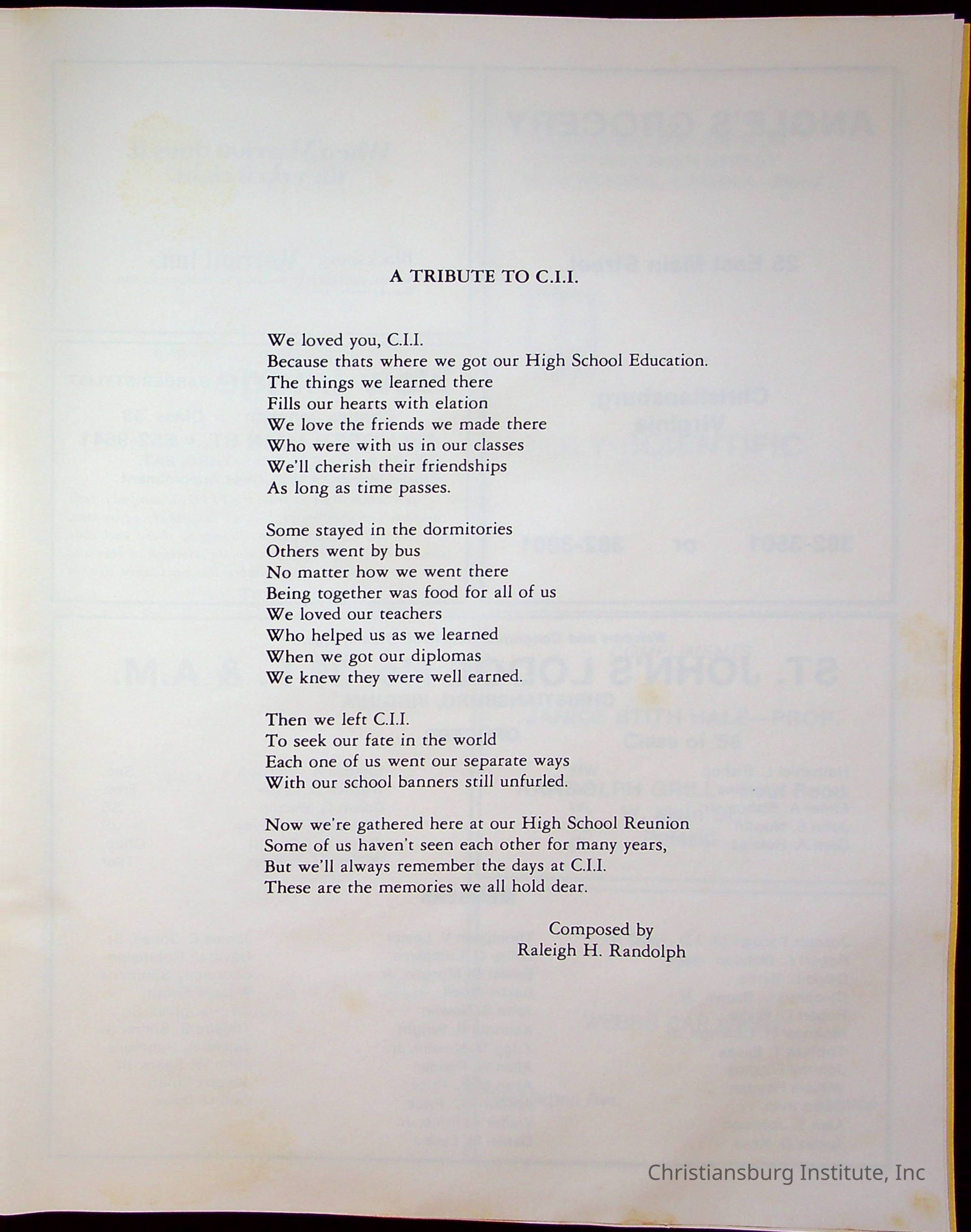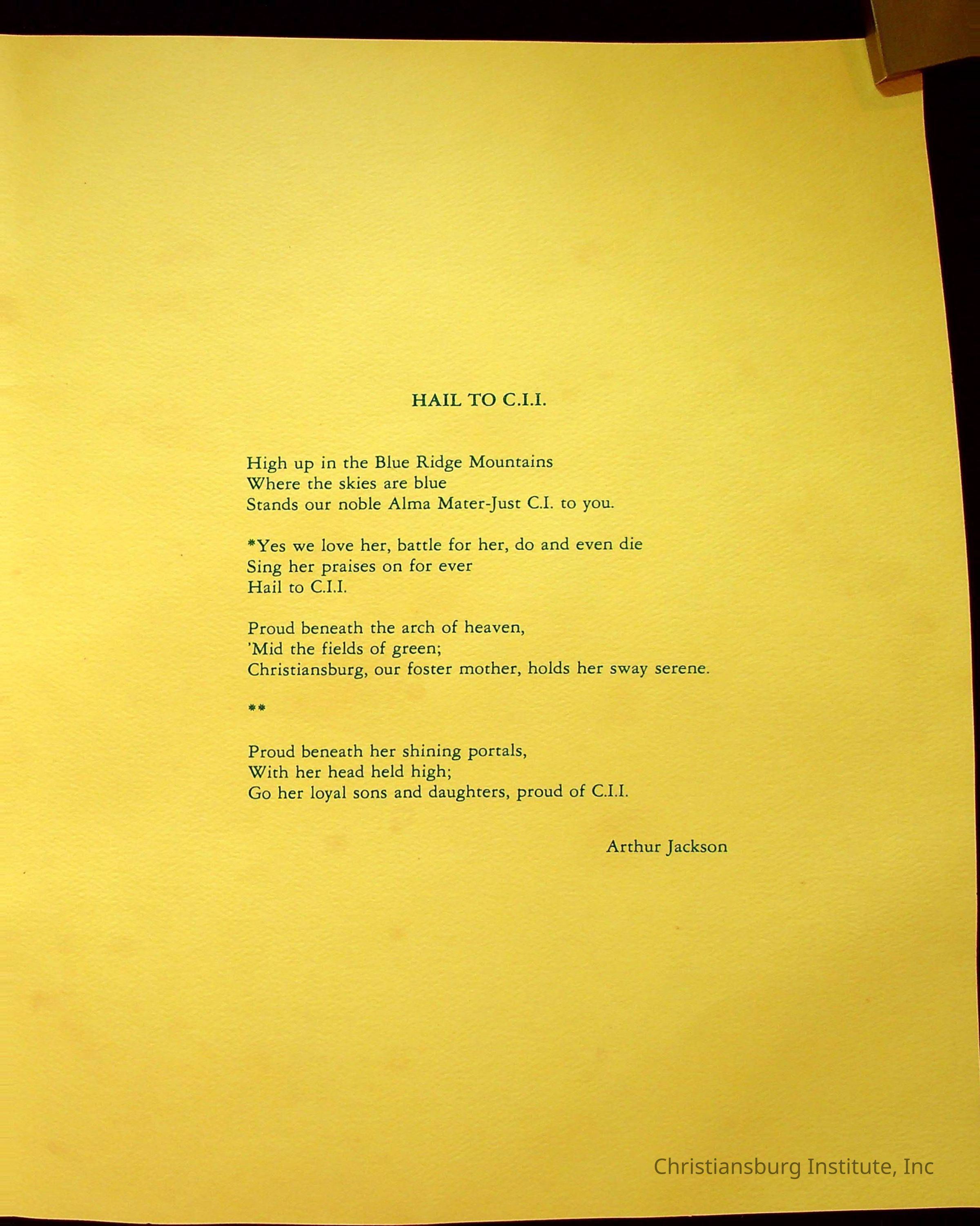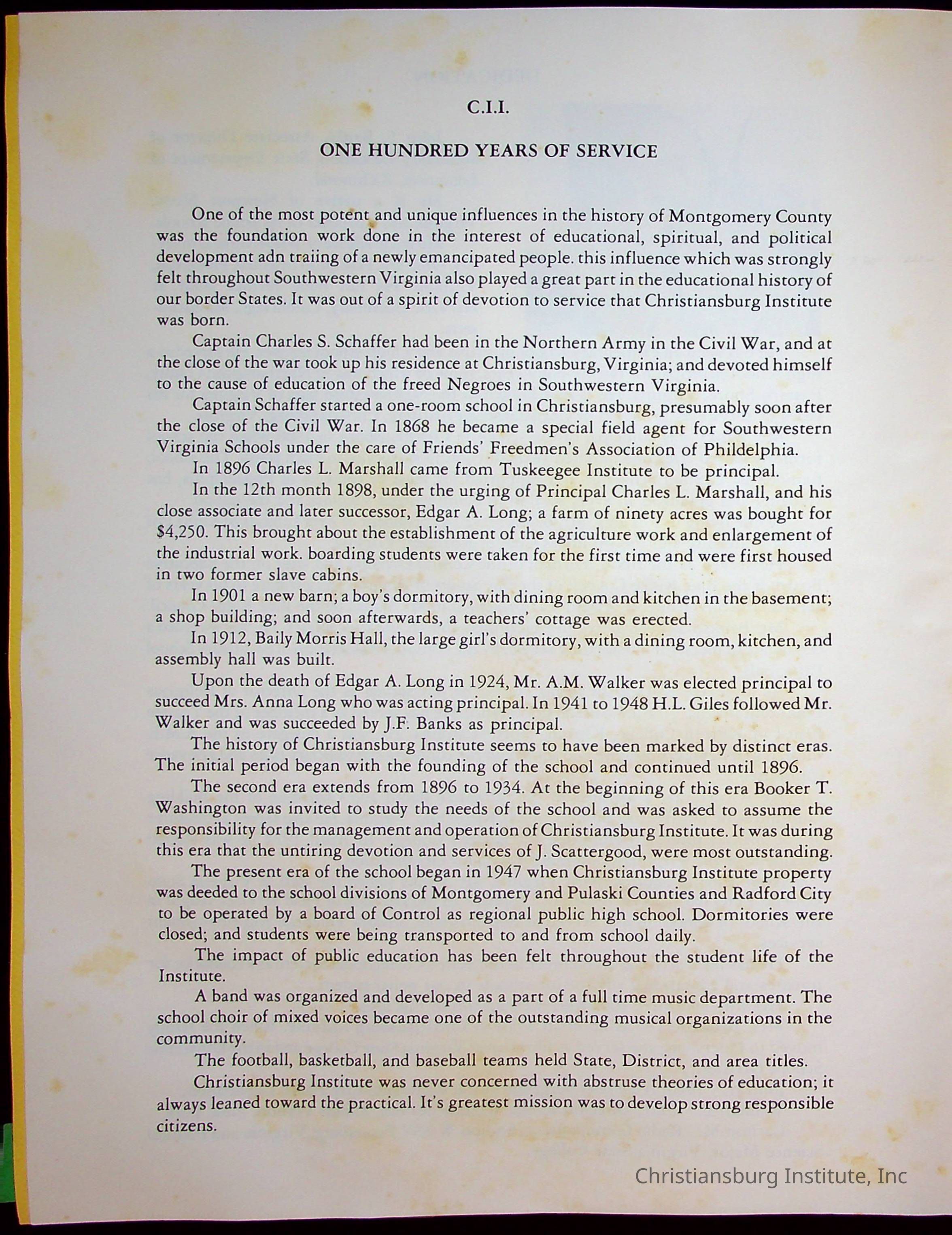 Copyright has been assigned to Christiansburg Institute Museum & Archives. For permission to publish materials created by the donor, contact CIMA@christiansburginstitute.com. Materials not created by Christiansburg Institute Museum and Archives may still be under copyright.