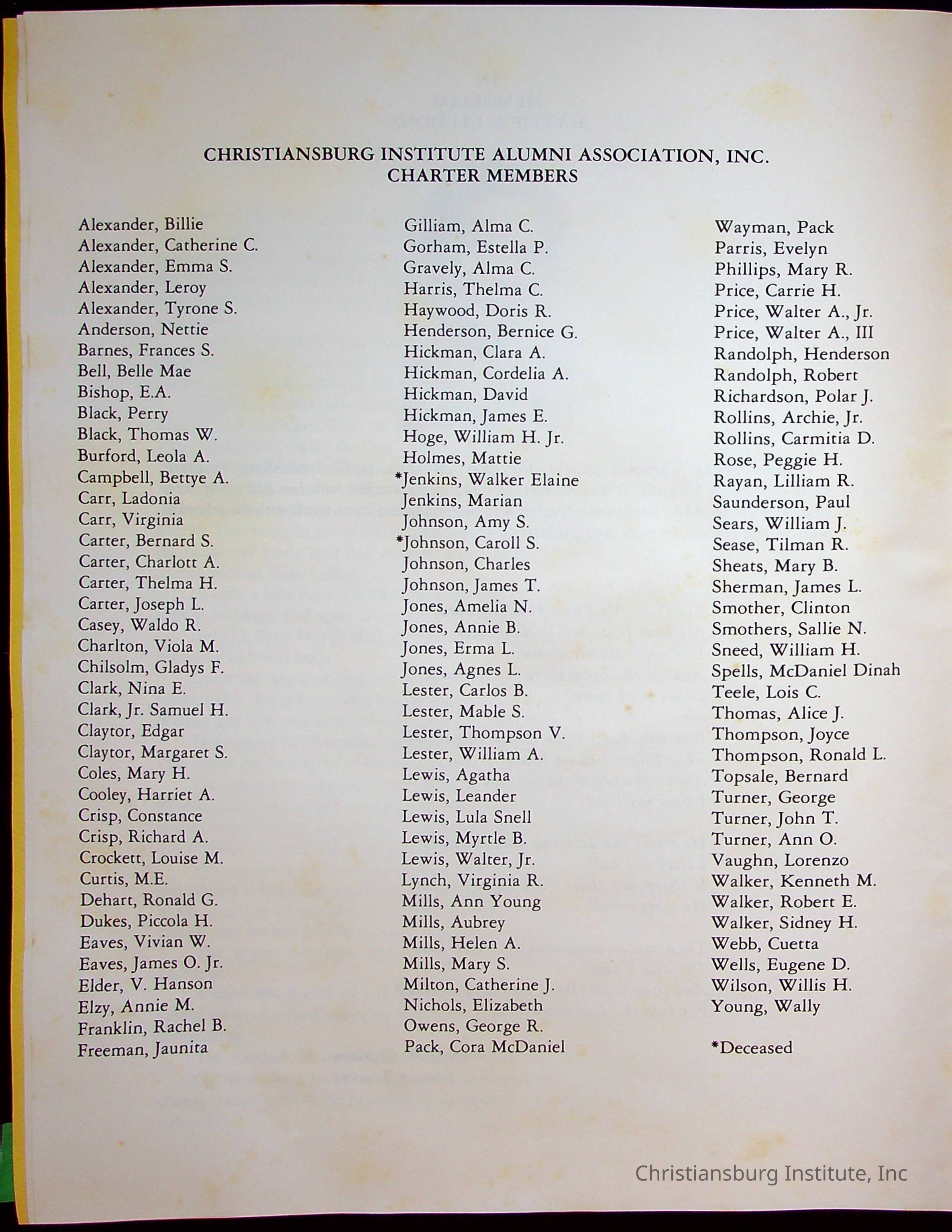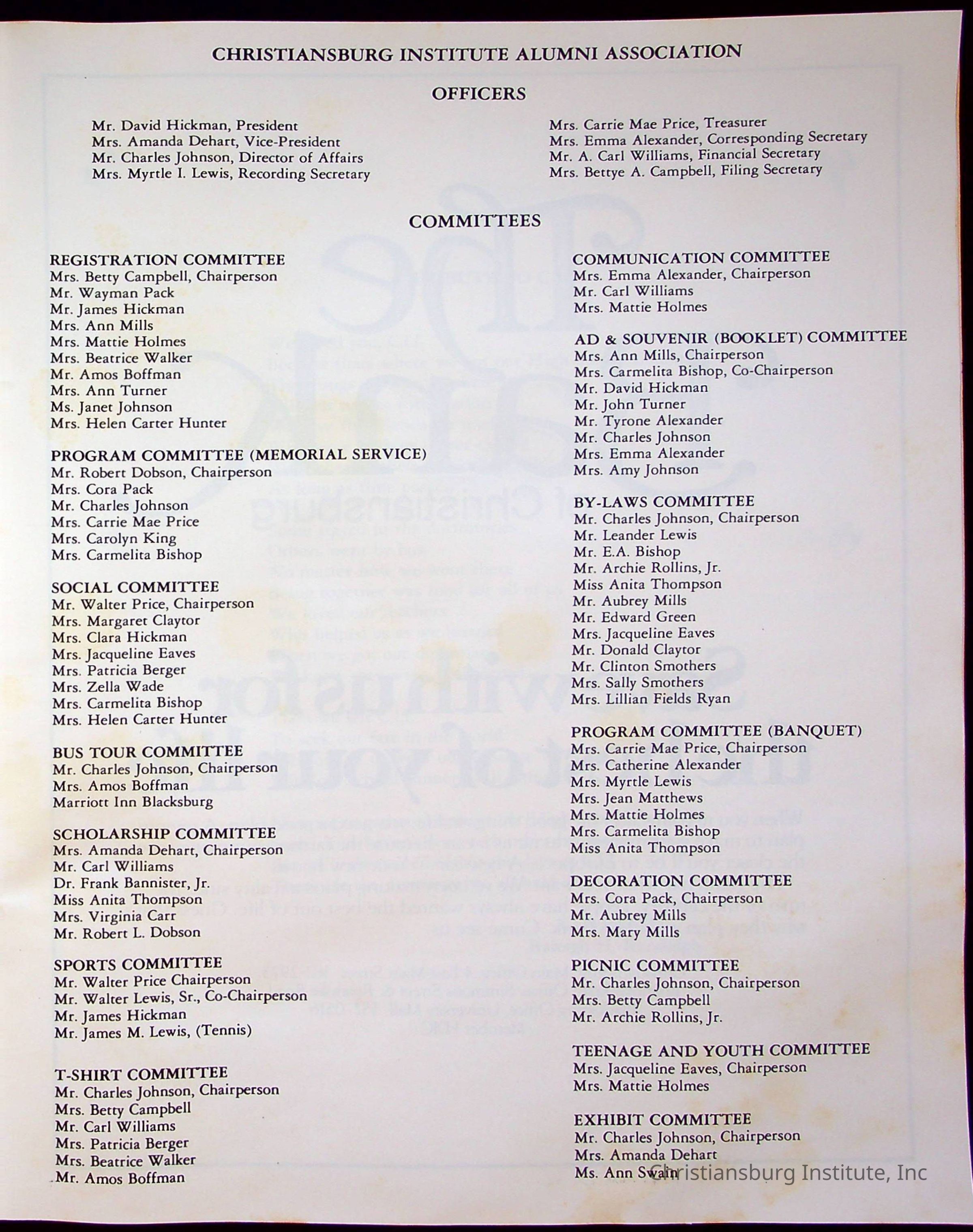 Christiansburg Institute Alumni Association CollectionPublication Details