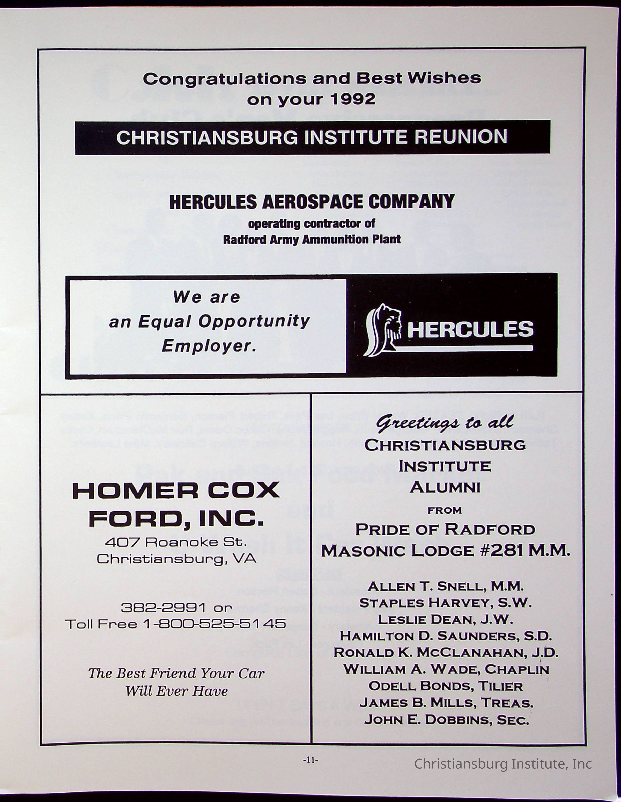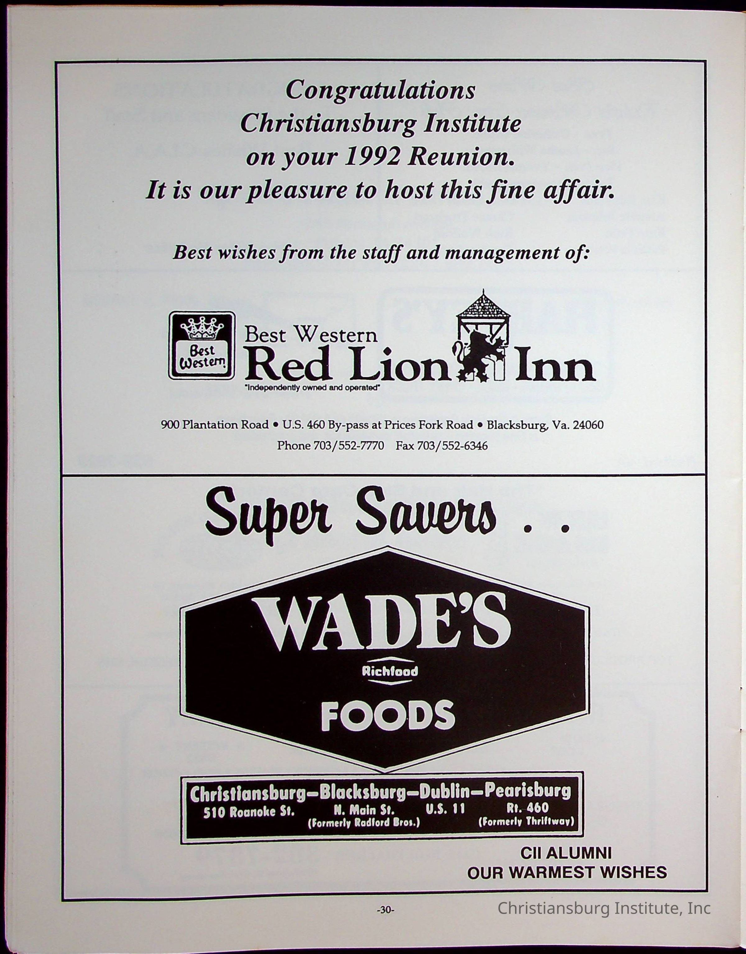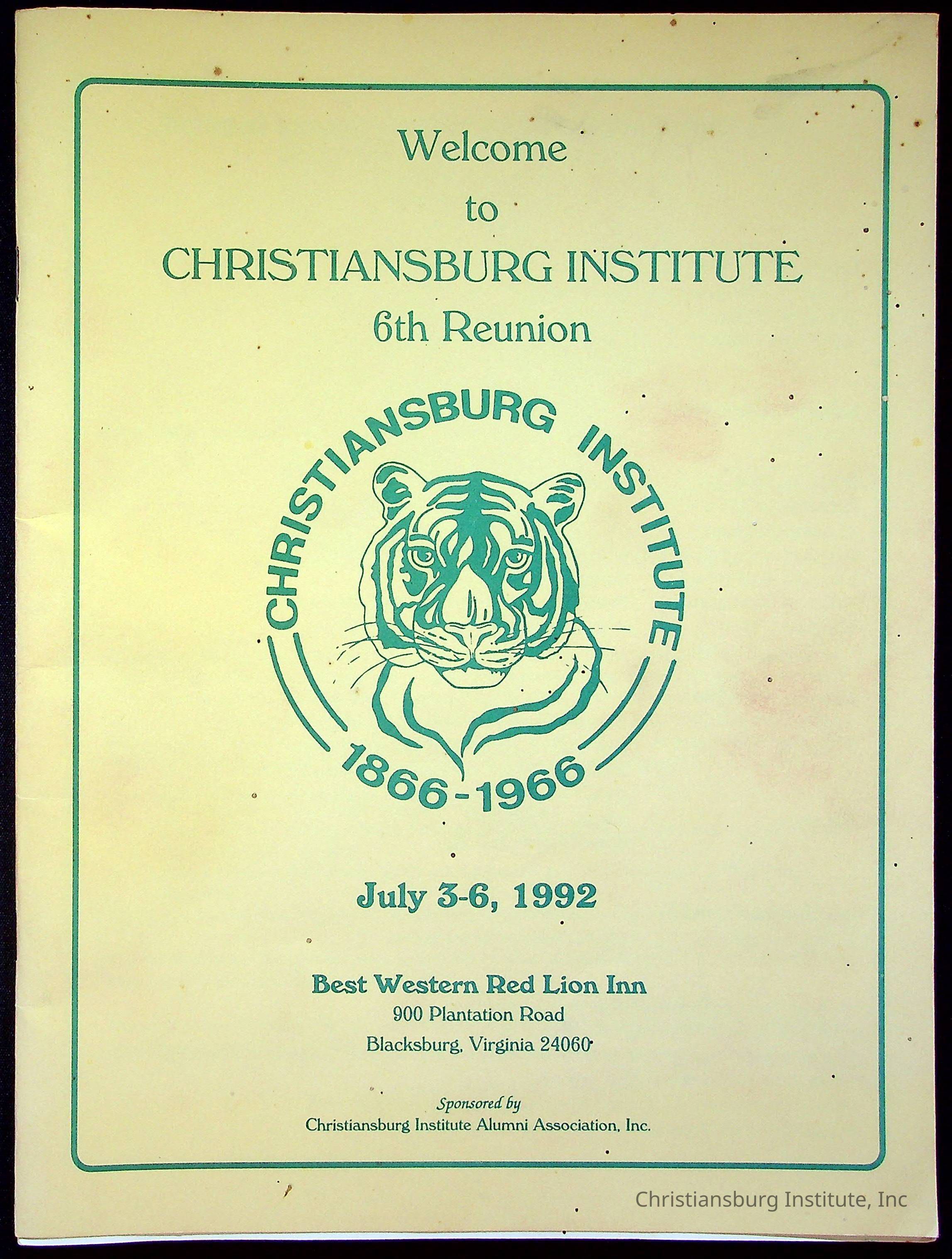 The official program booklet for the sixth Christiansburg Institute reunion on July 3rd-6th 1992 that took place at the Best Western Red Lion Inn in Blacksburg, Virginia.Collection