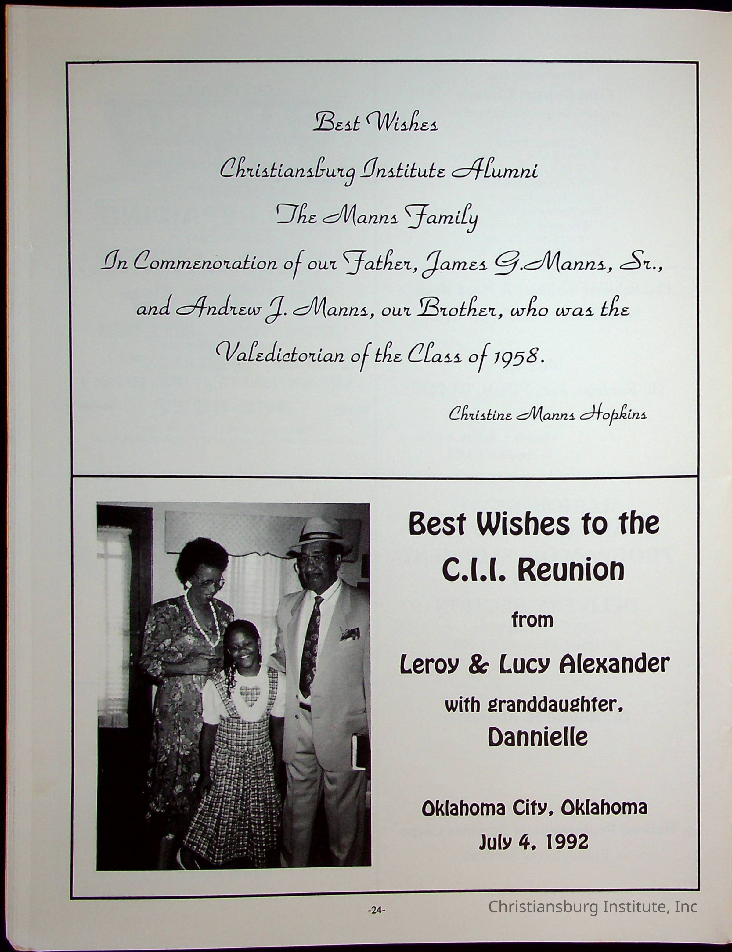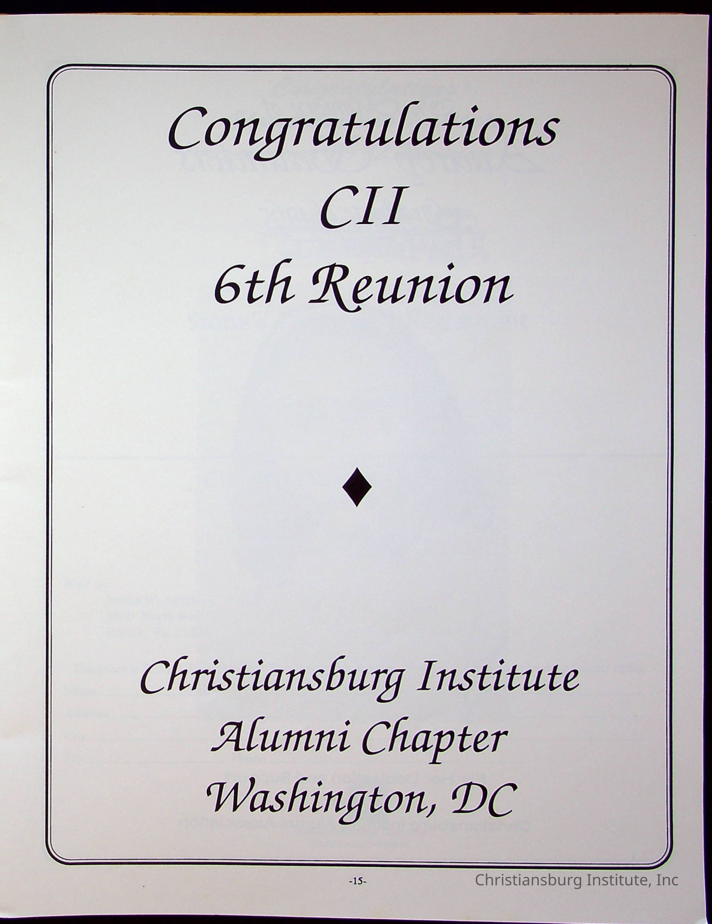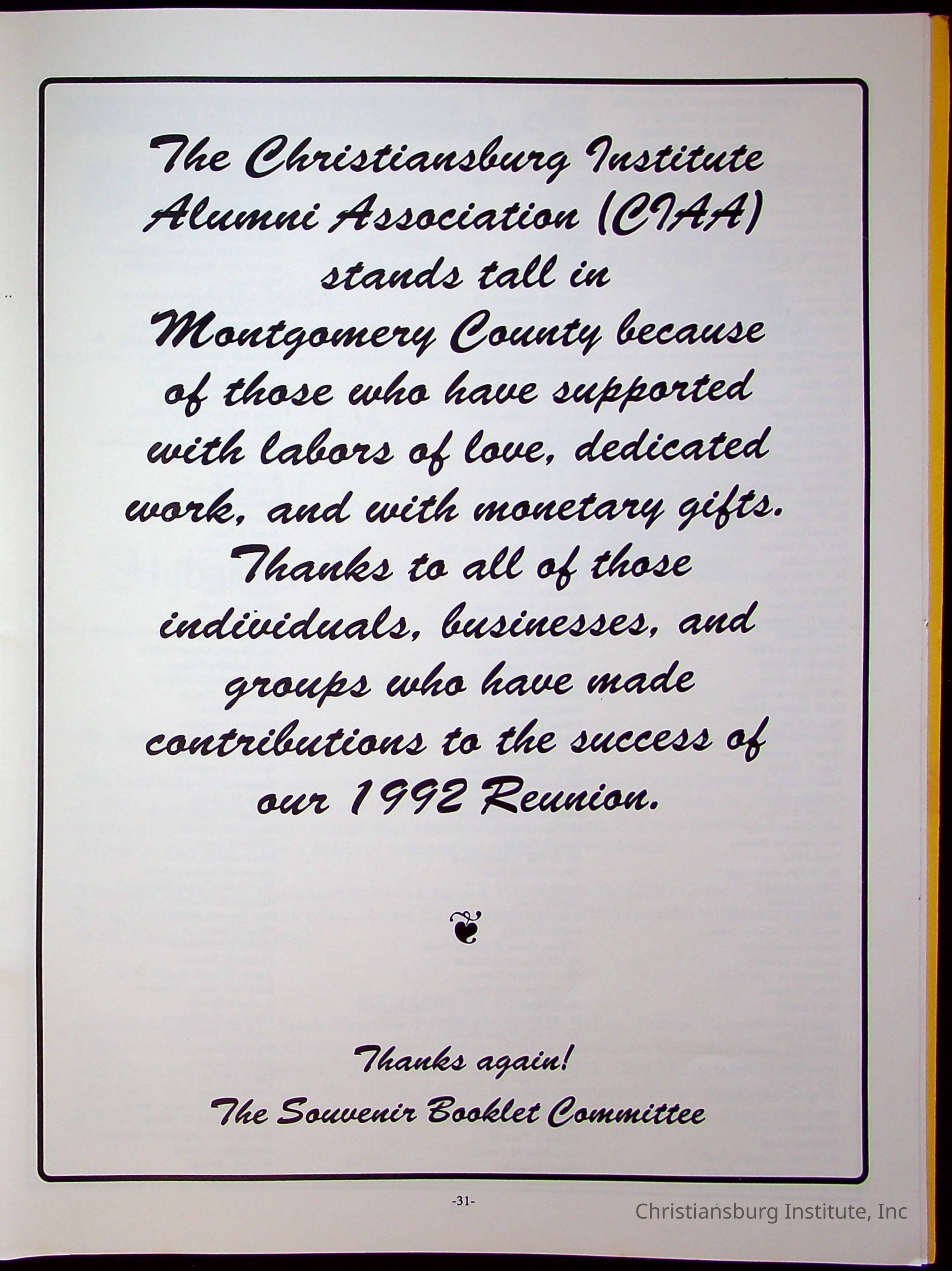 Sixth Reunion Booklet Christiansburg Institute, 1992Description