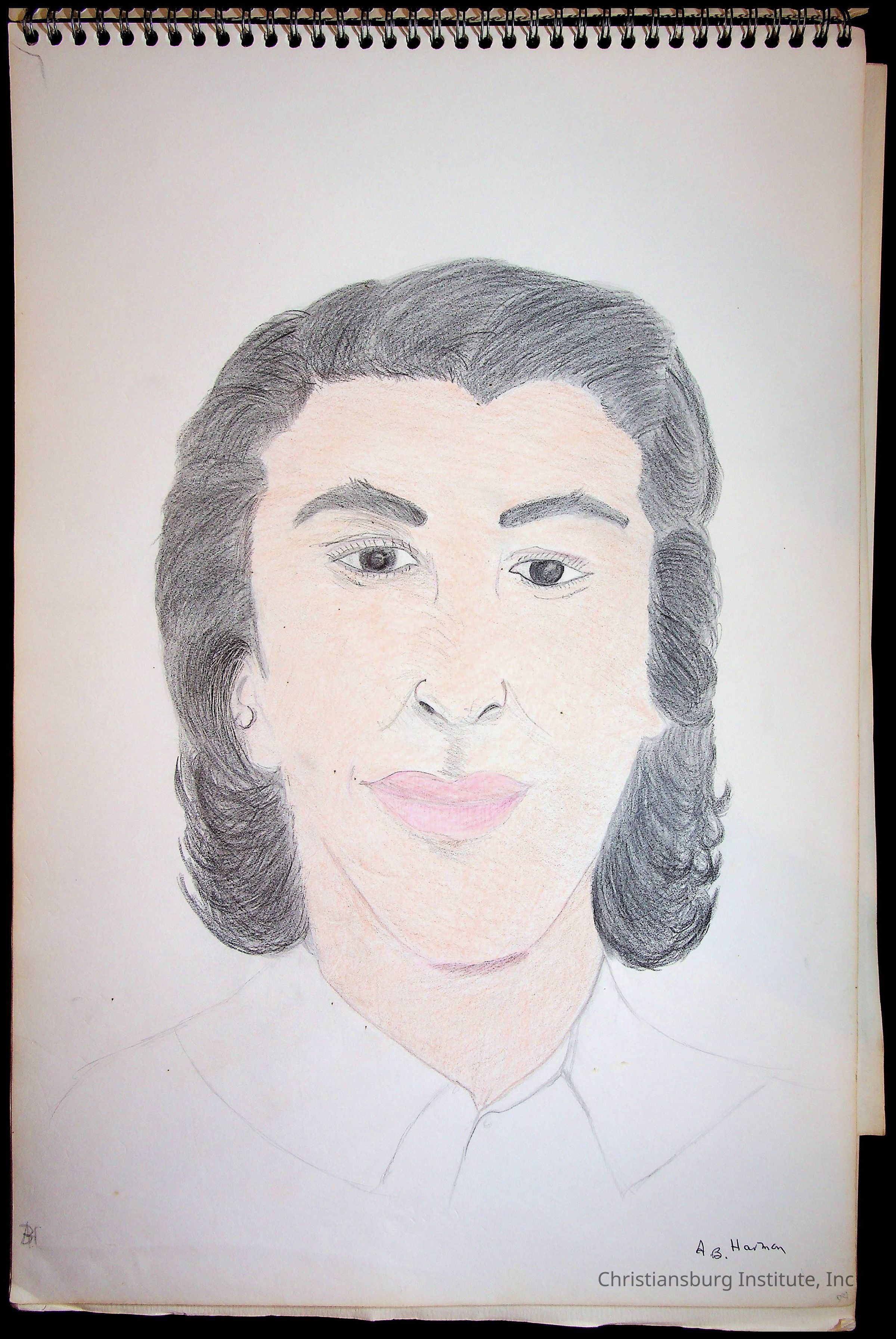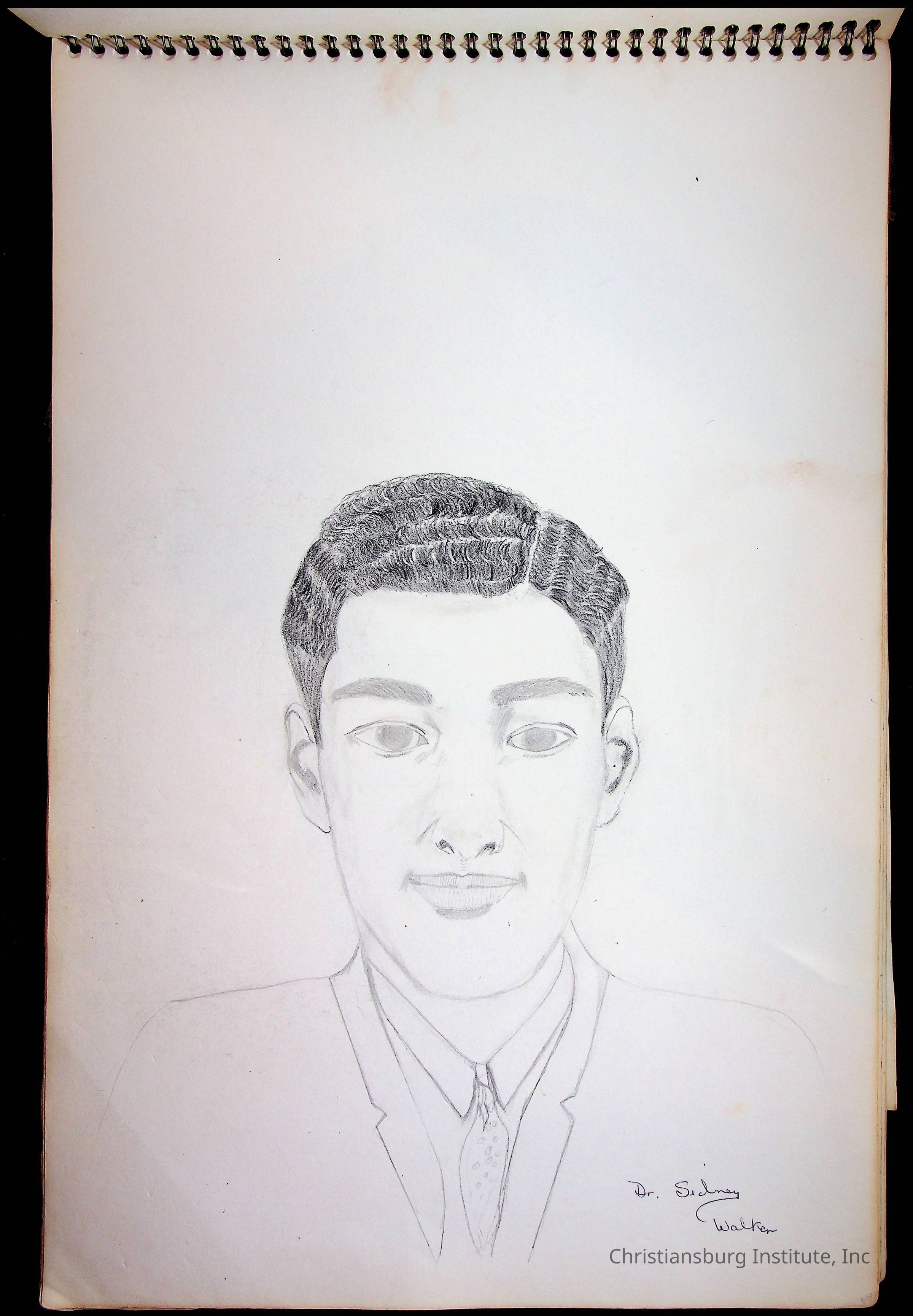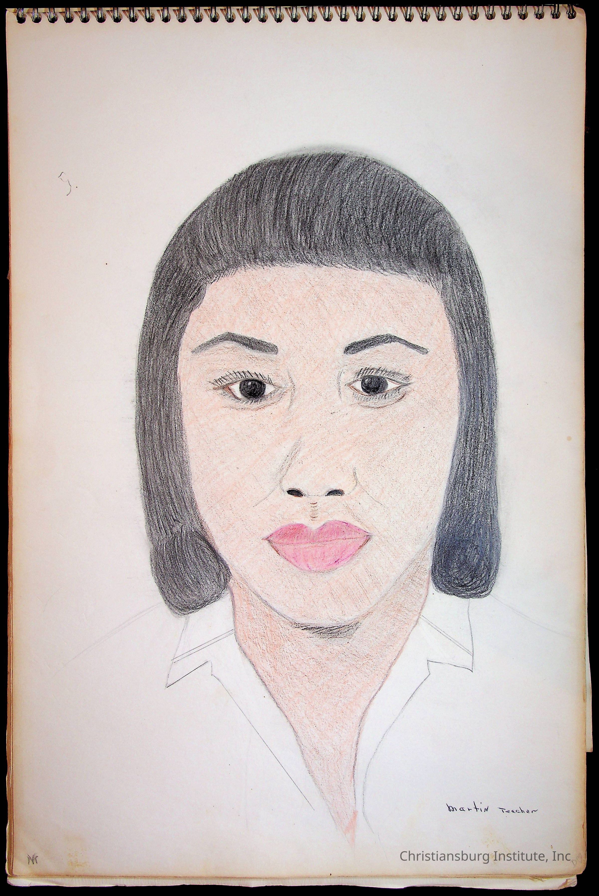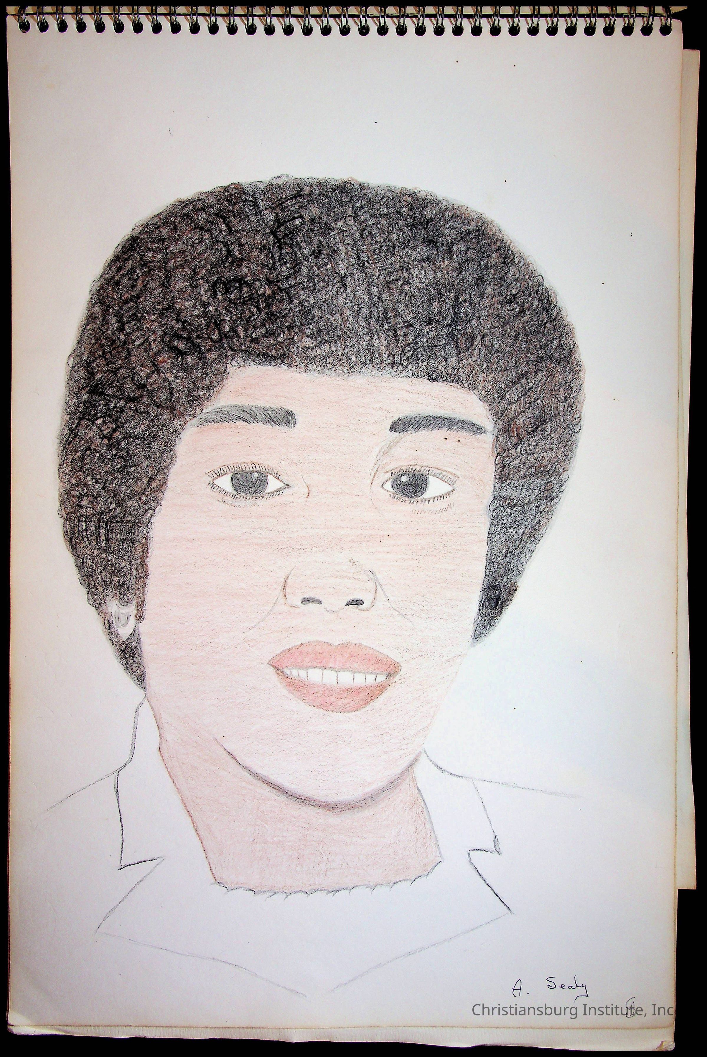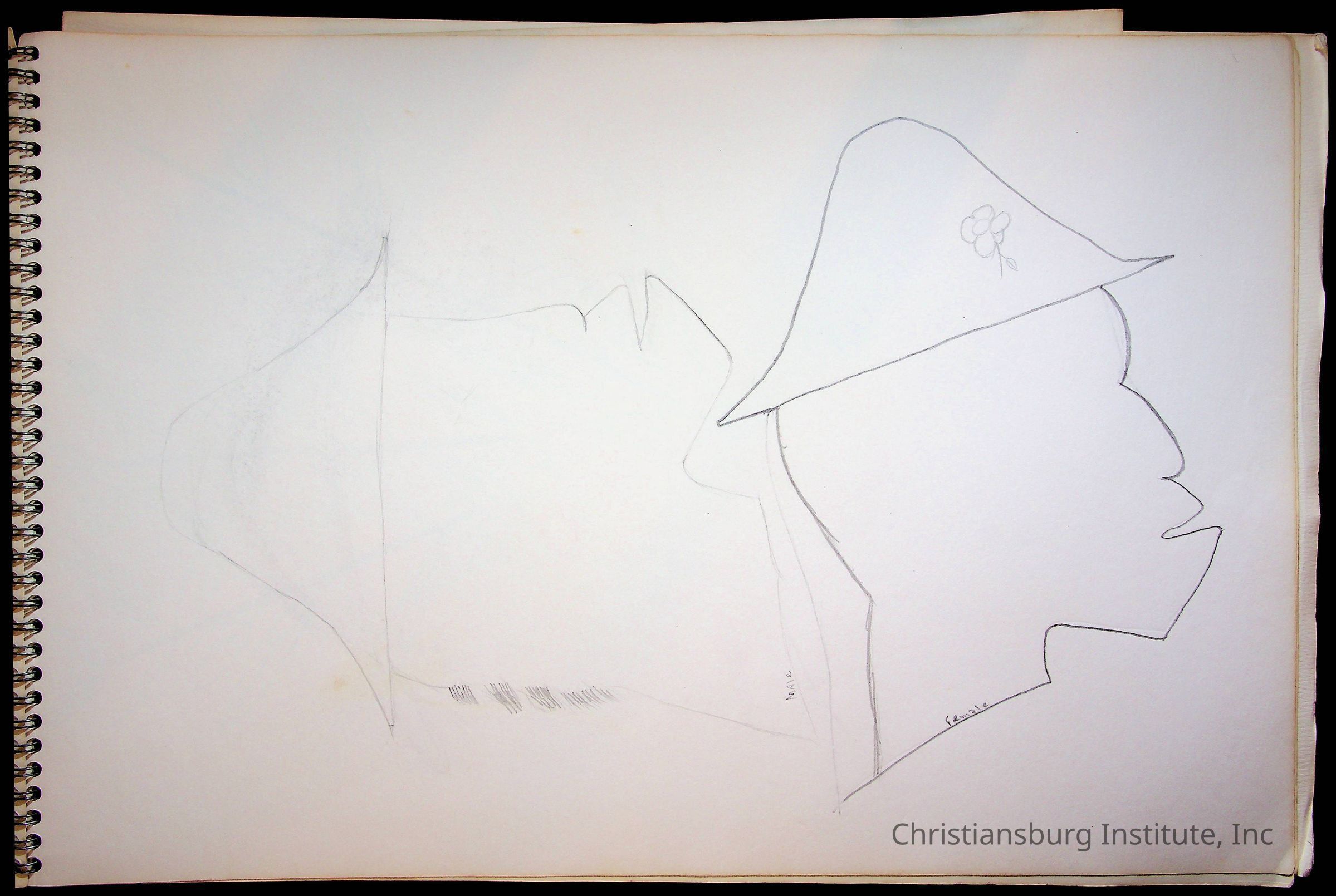 A sketchbook filled with sketches of various Christiansburg Industrial Institute graduates drawn by Amanda DeHart, undated.