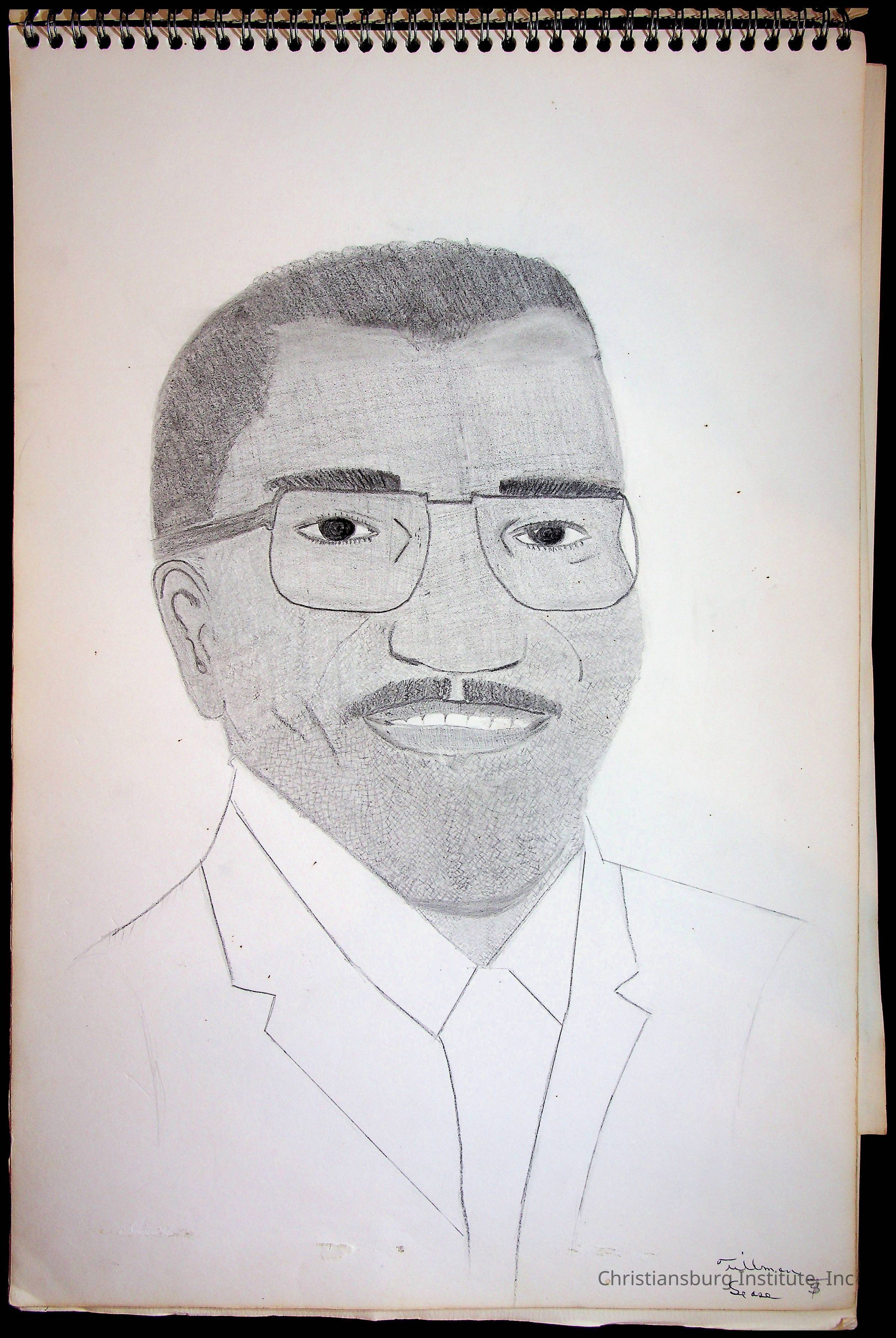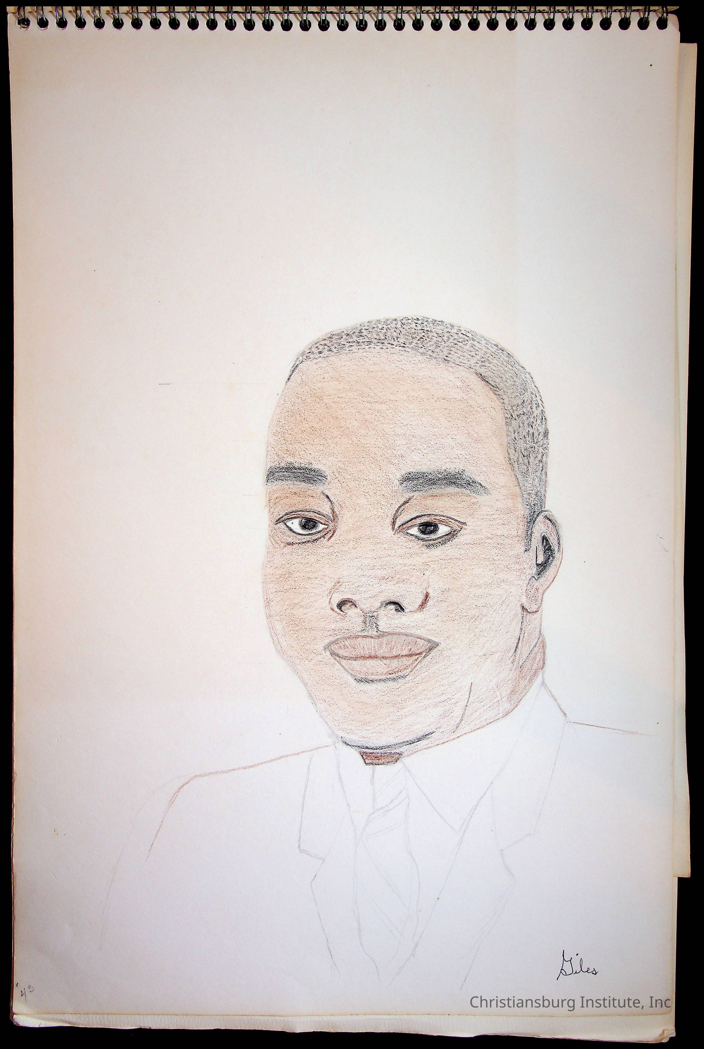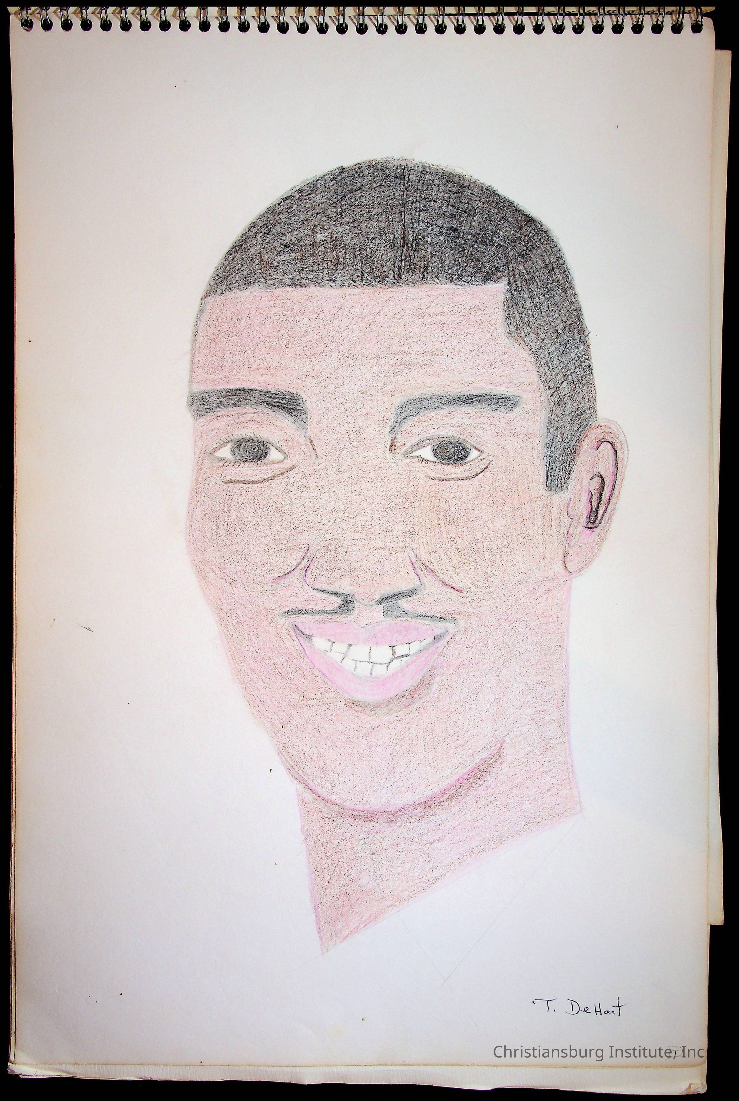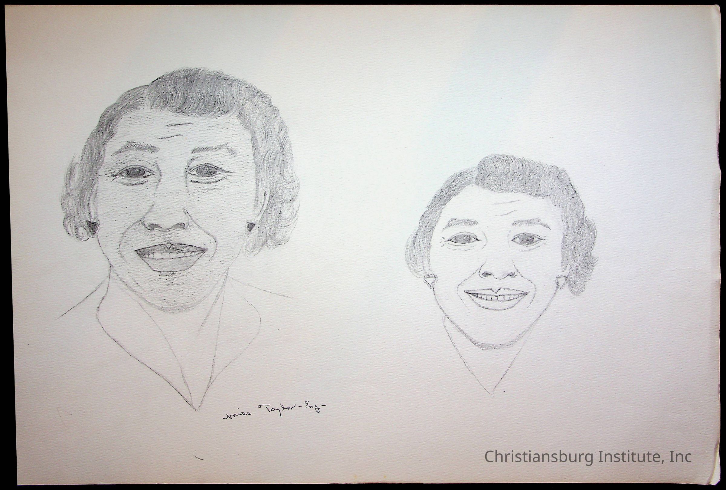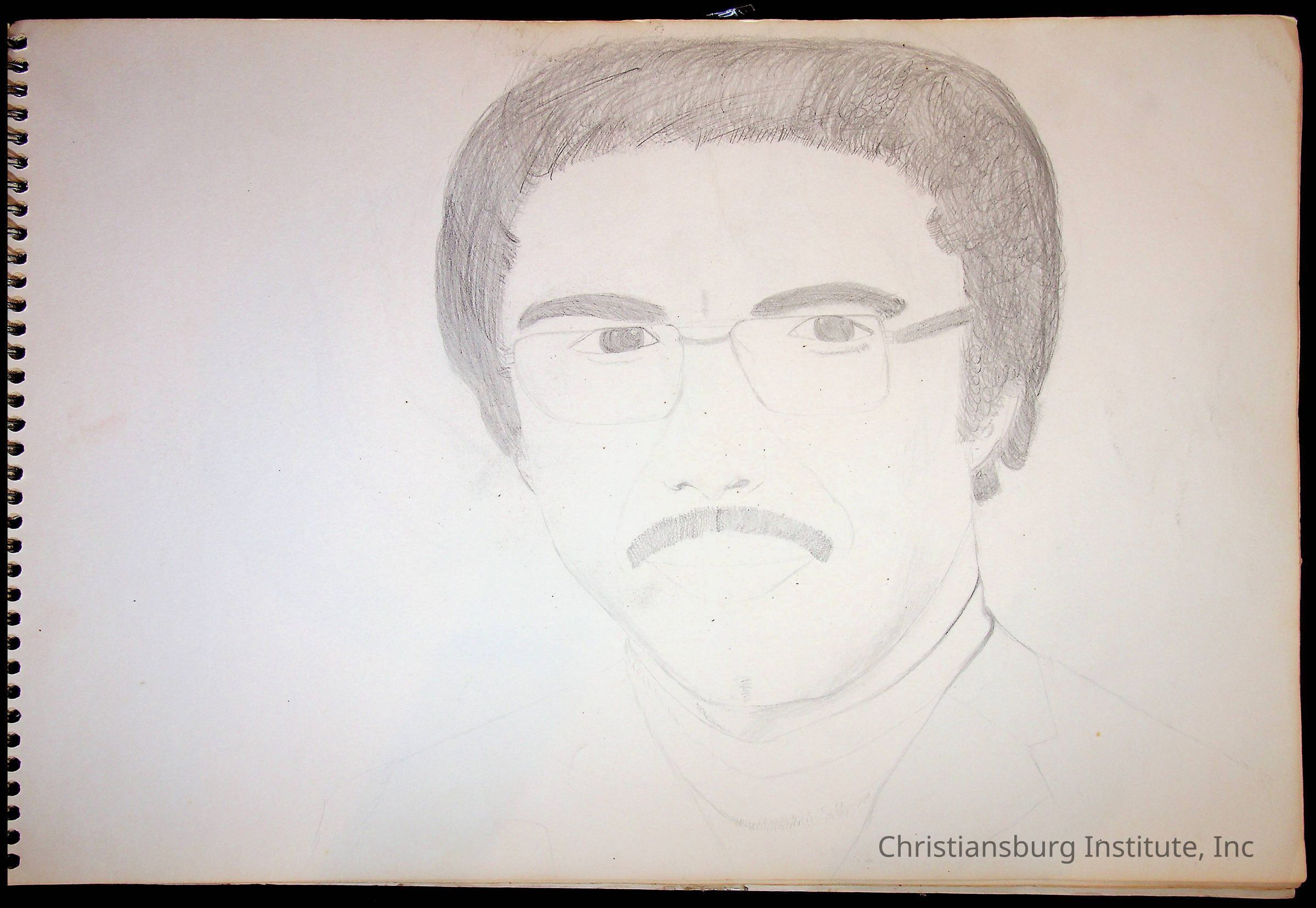 A sketchbook filled with sketches of various Christiansburg Industrial Institute graduates drawn by Amanda DeHart, undated.