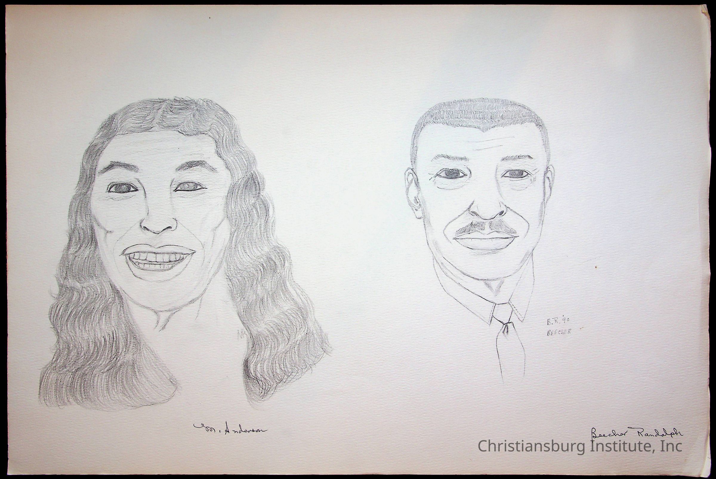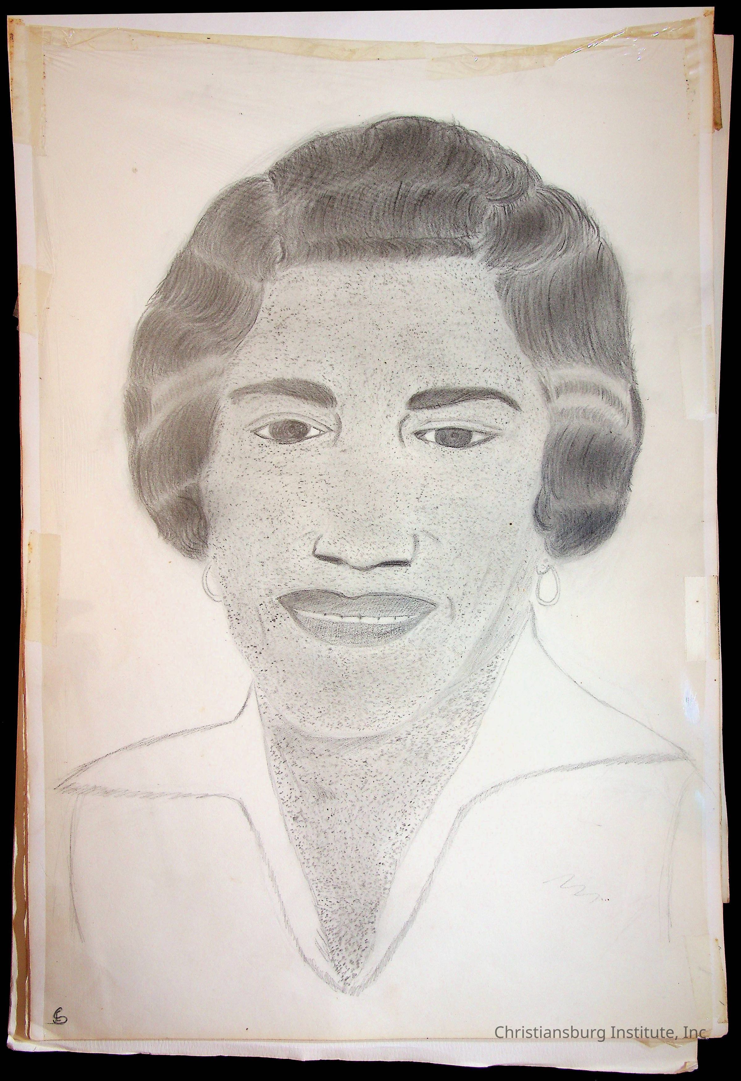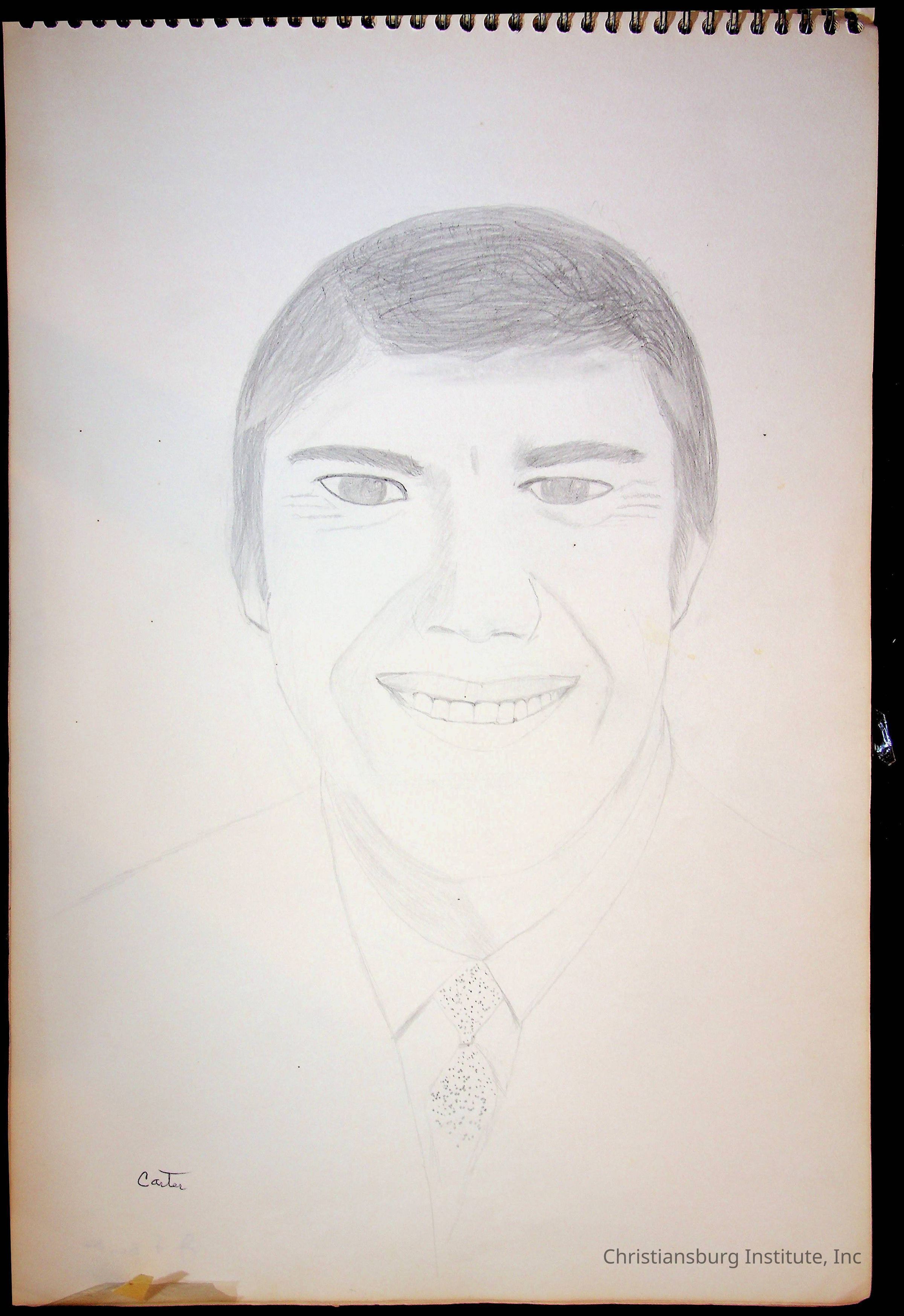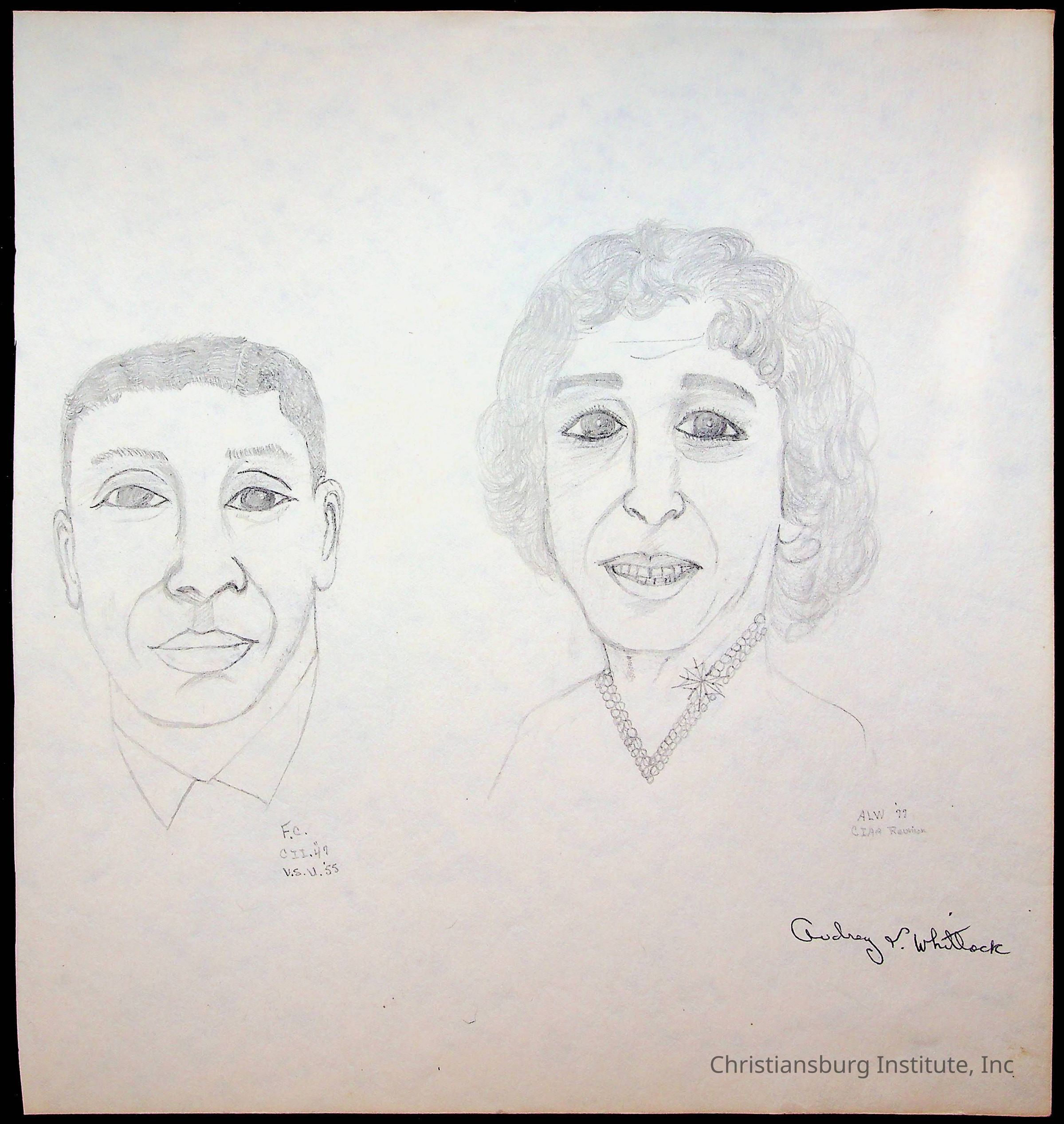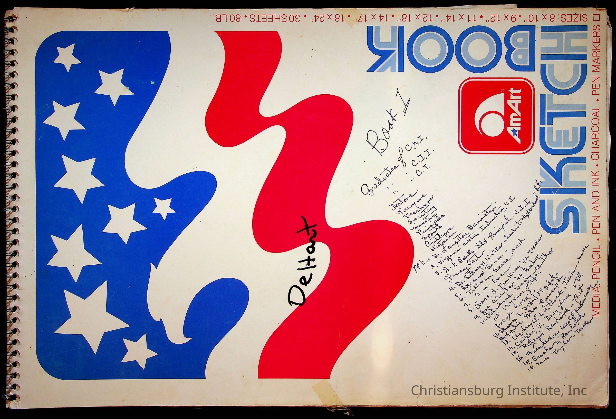 A sketchbook filled with sketches of various Christiansburg Industrial Institute graduates drawn by Amanda DeHart, undated.