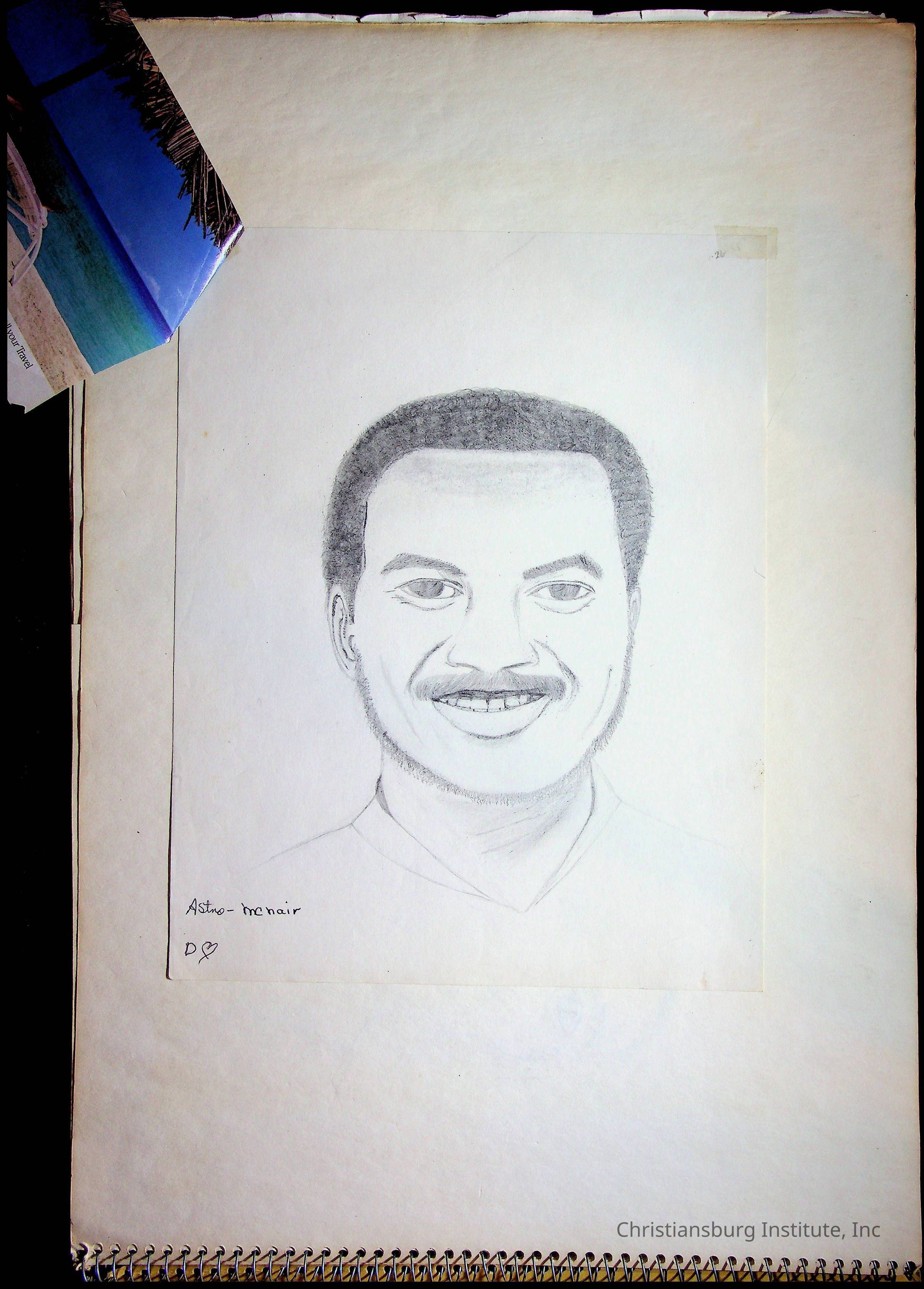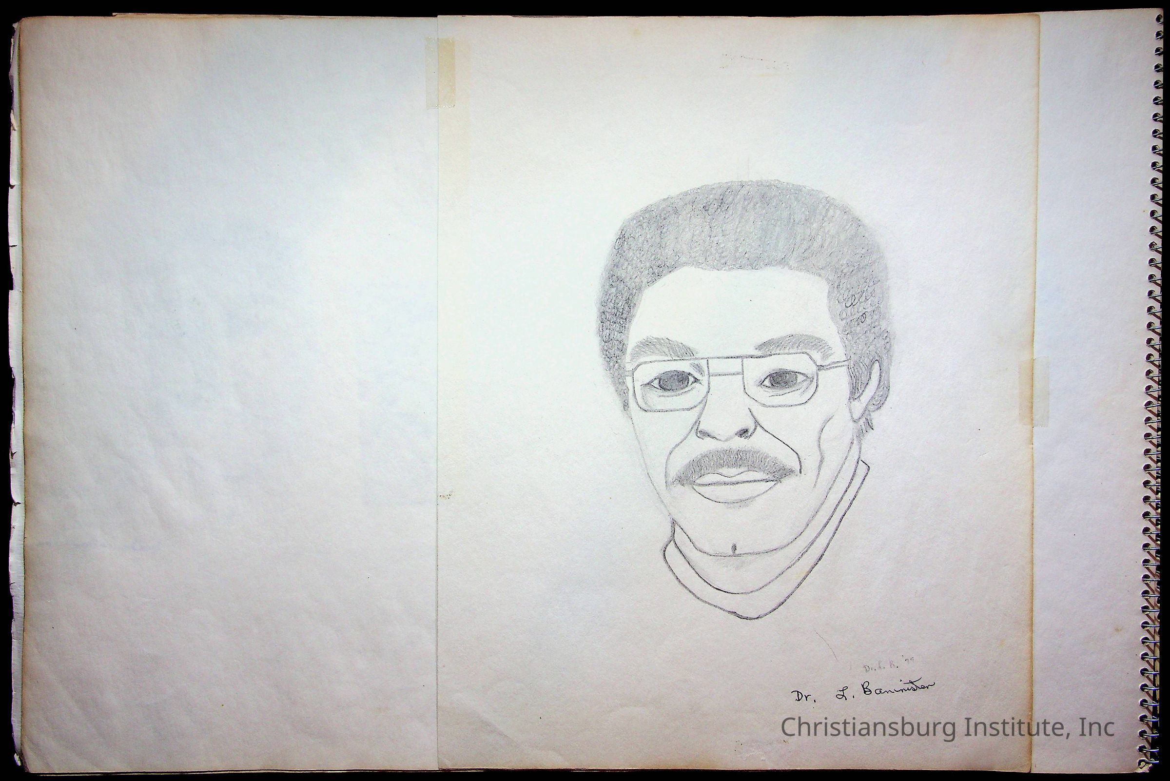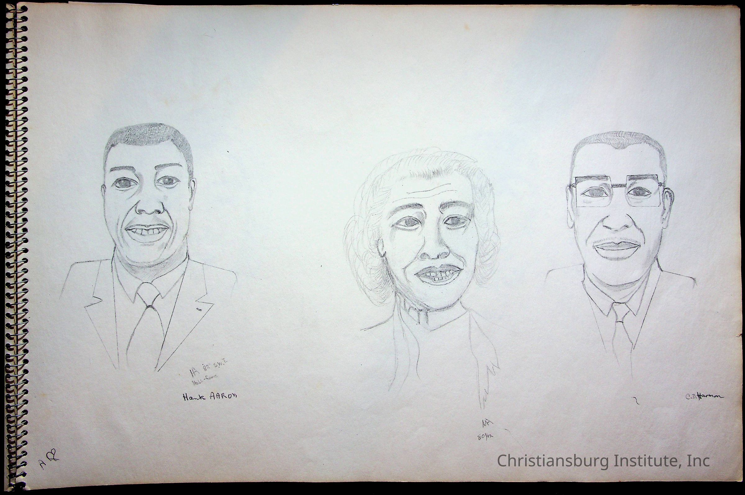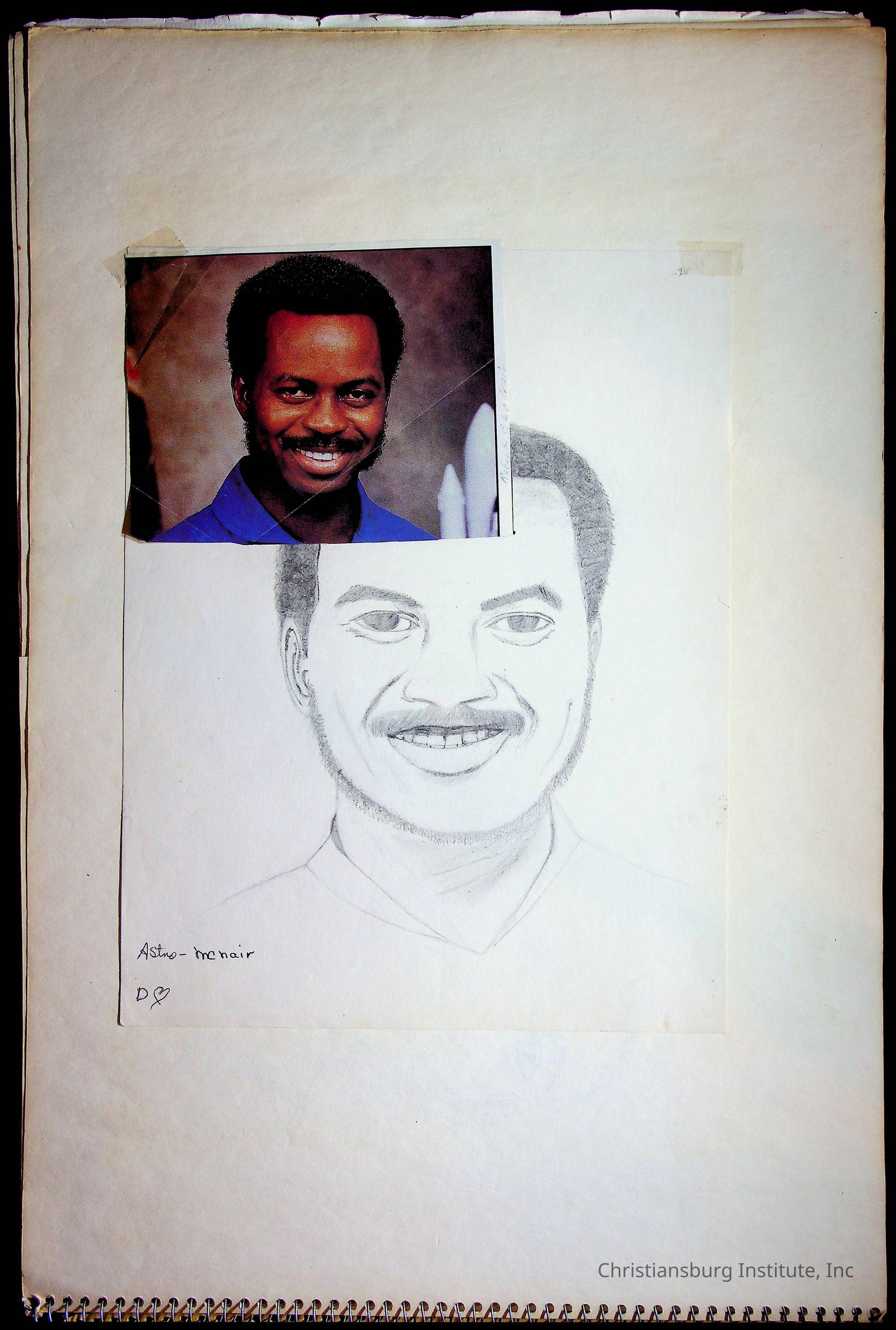 A sketchbook filled with mixed media of different people, including sketches and photographs drawn and compiled by Amanda DeHart, undated.Collection