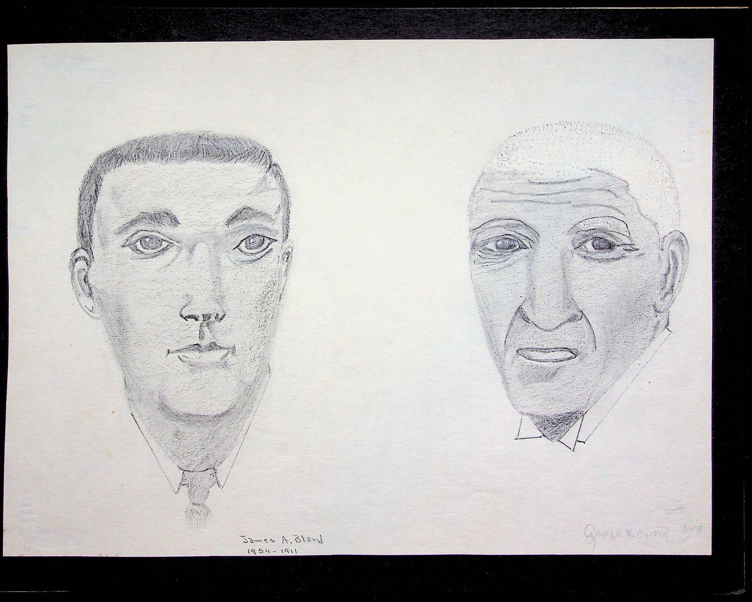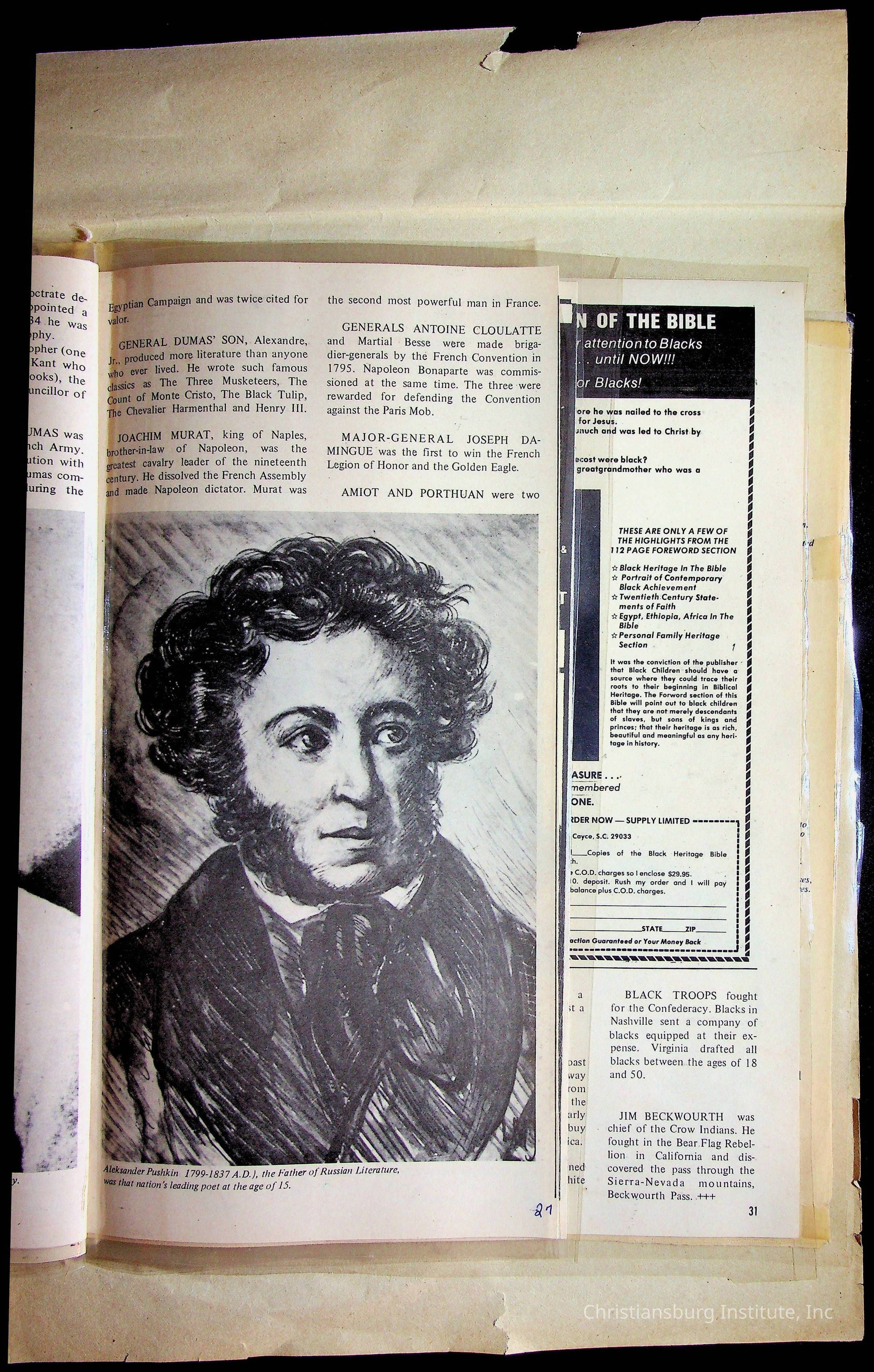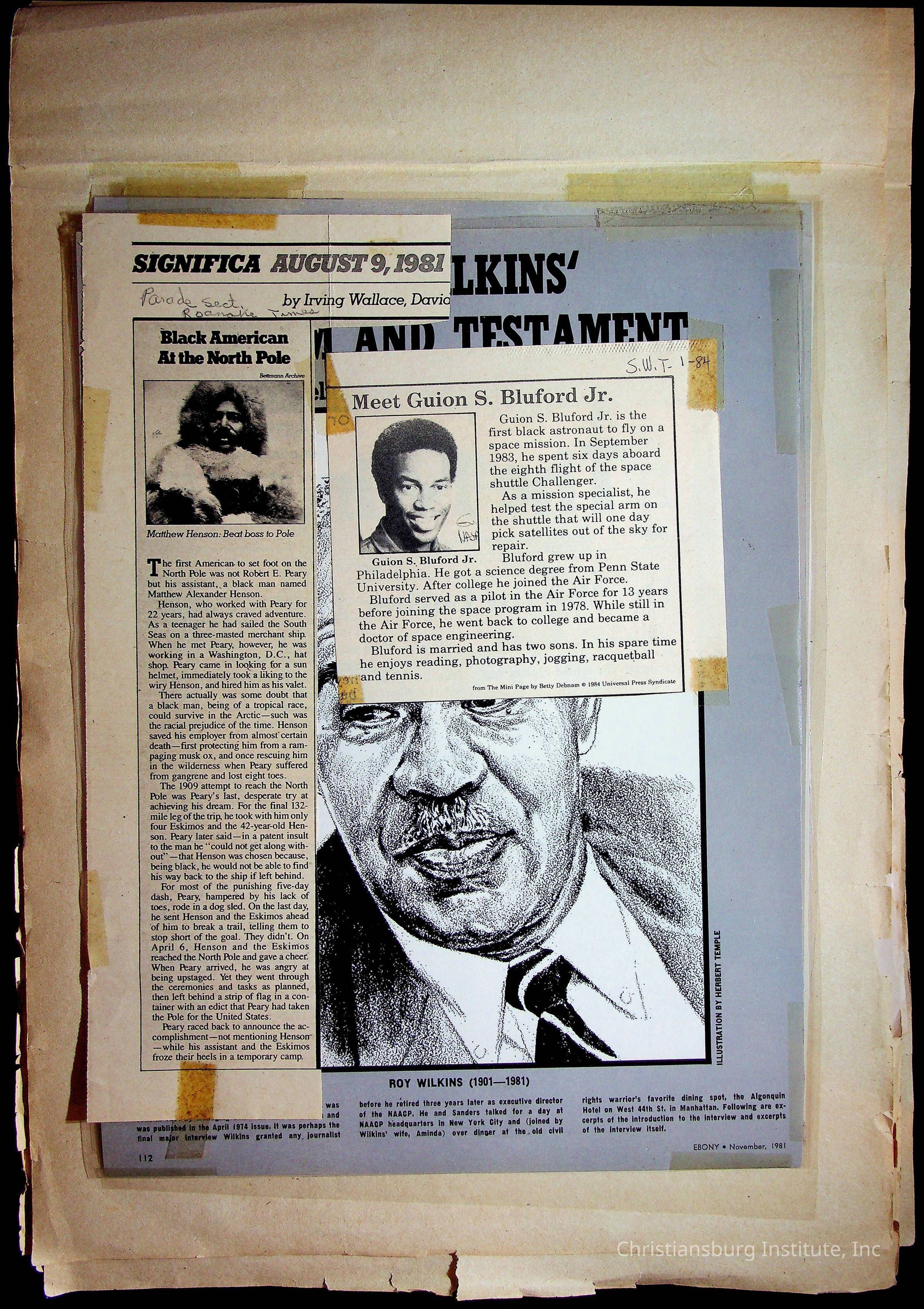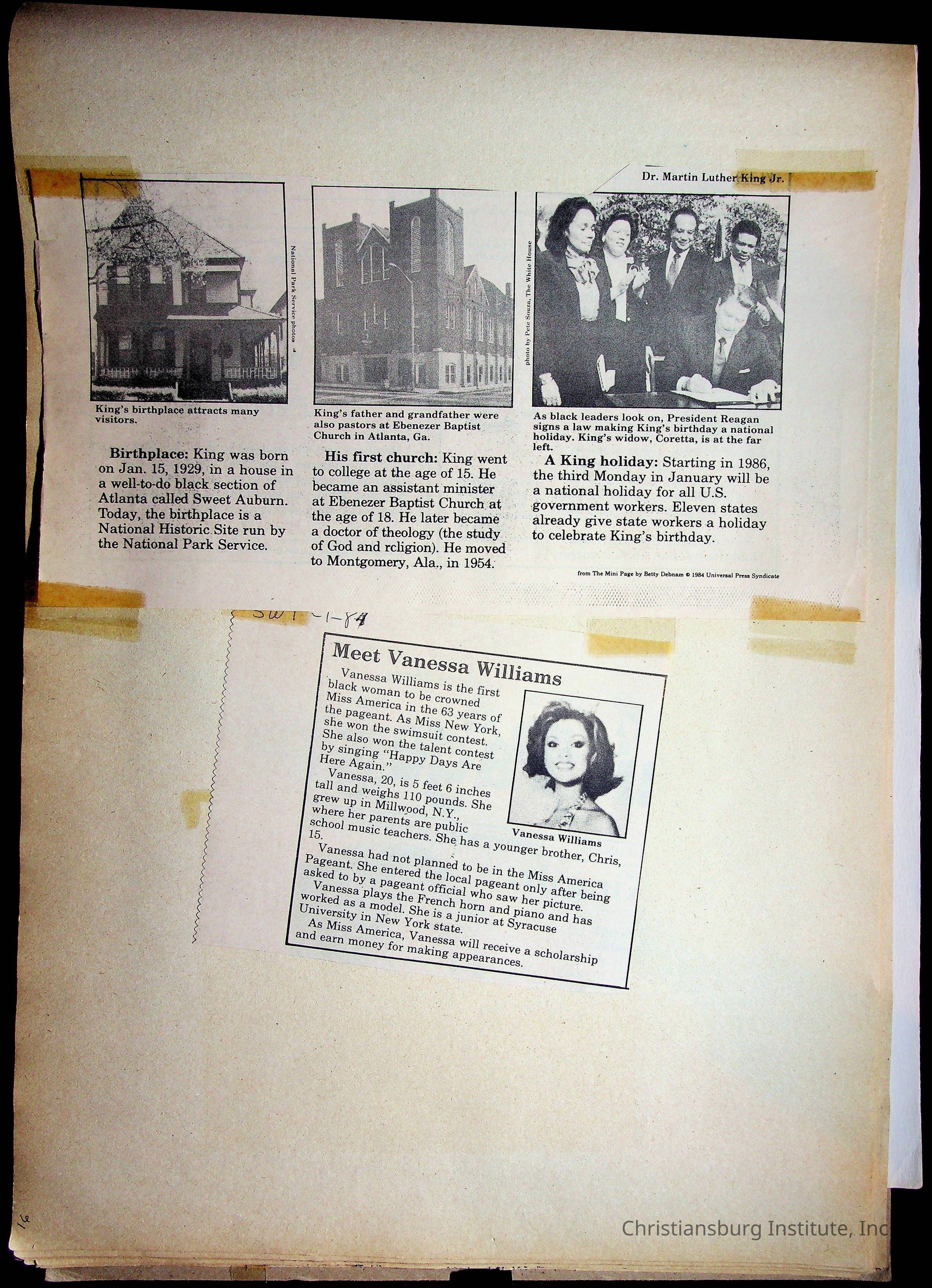 A sketchbook filled with mixed media about Black history, including sketches, photographs, and media clippings drawn and compiled by Amanda DeHart, undated.Collection