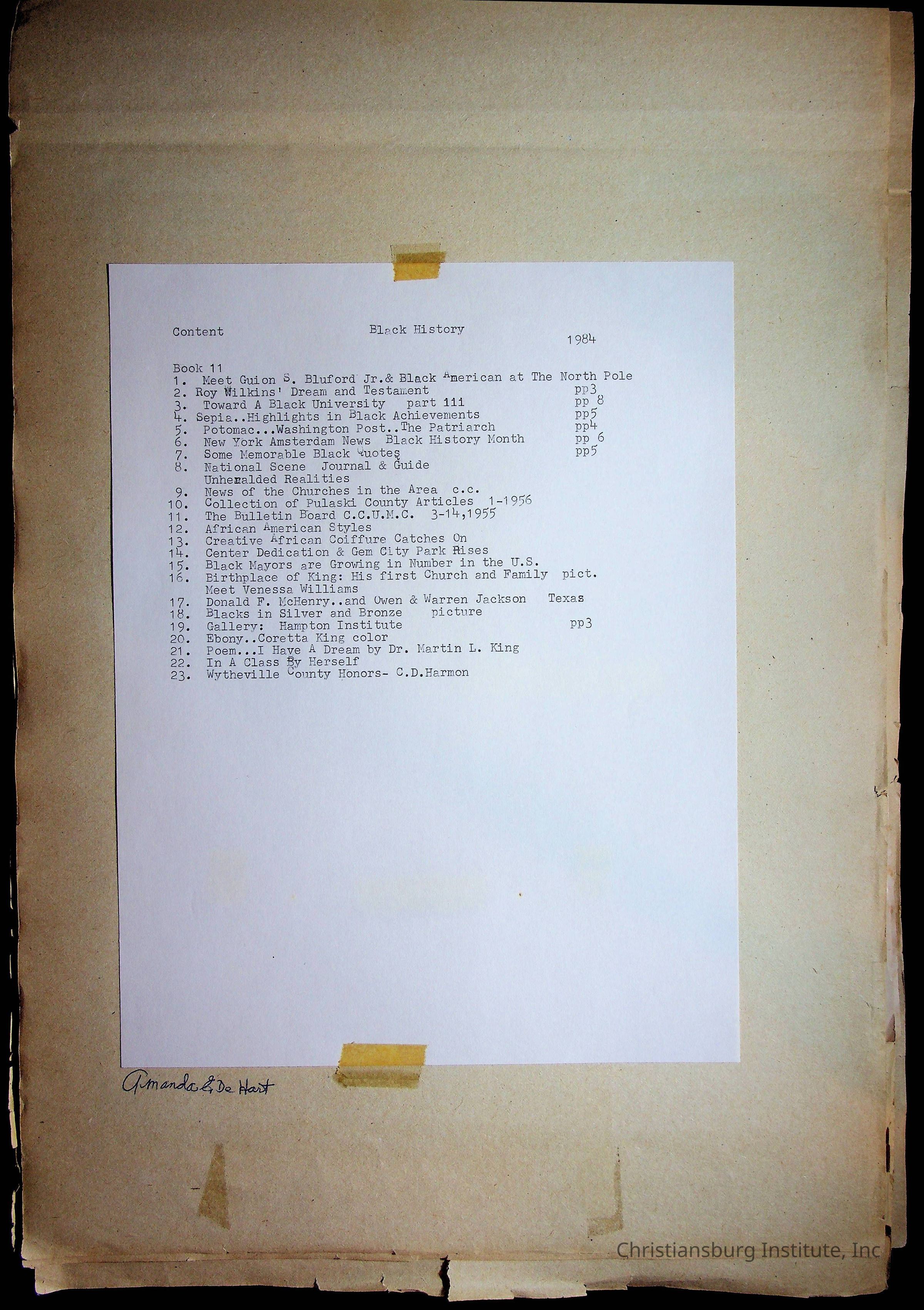 Copyright has been assigned to Christiansburg Institute Museum & Archives by Amanda DeHart. For permission to publish materials created by the donor, contact CIMA@christiansburginstitute.com. Materials not created by Amanda DeHart may still be under copyright.