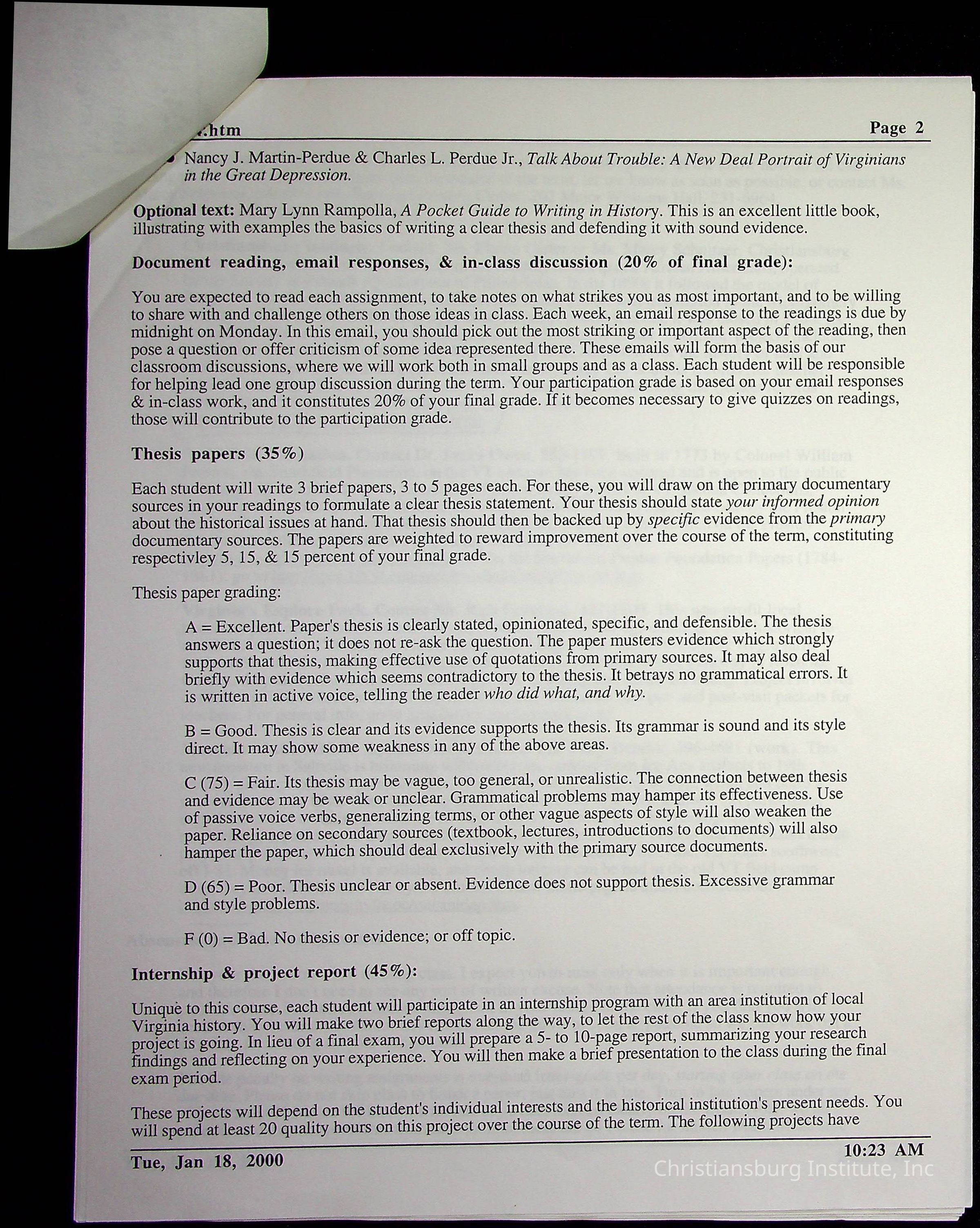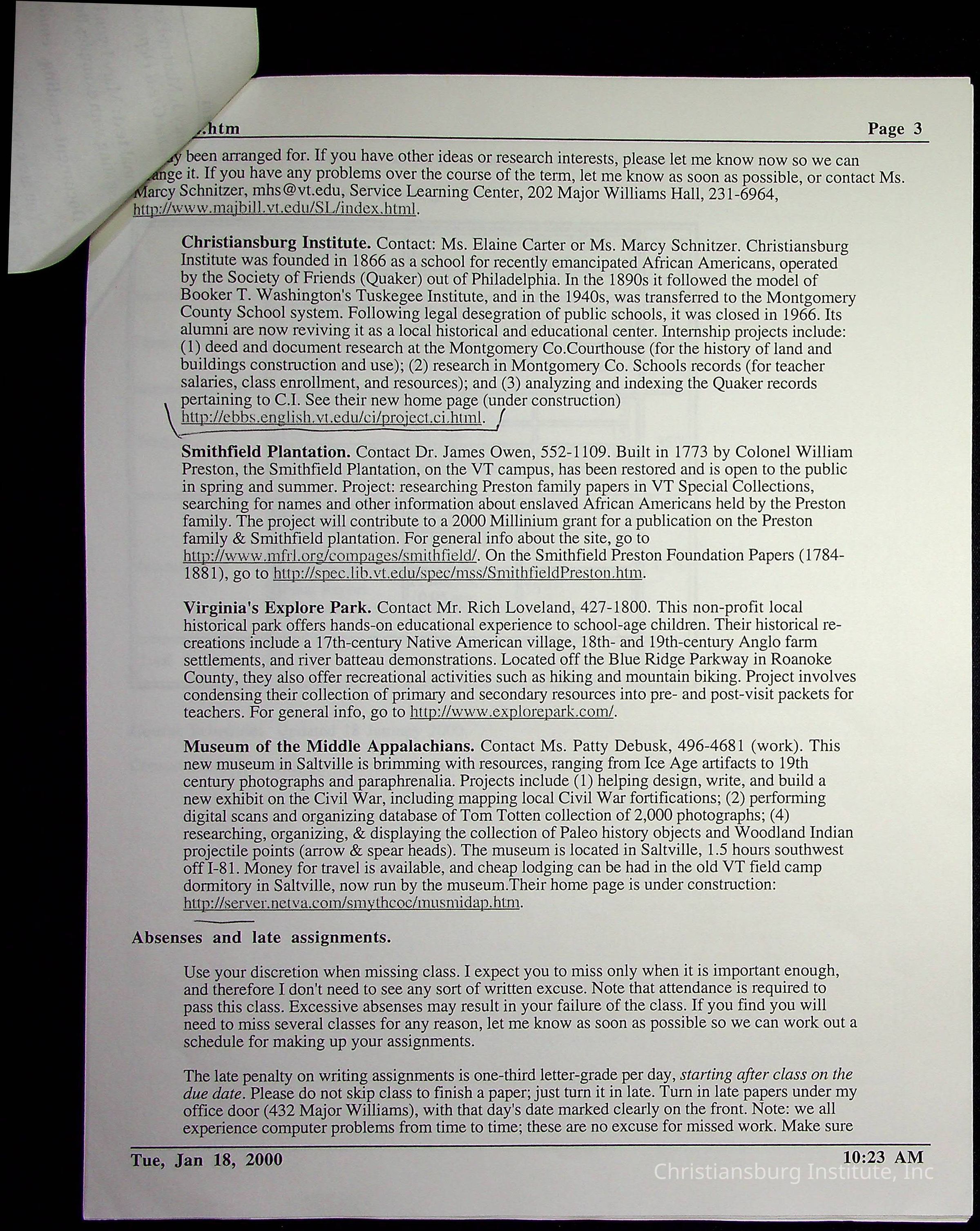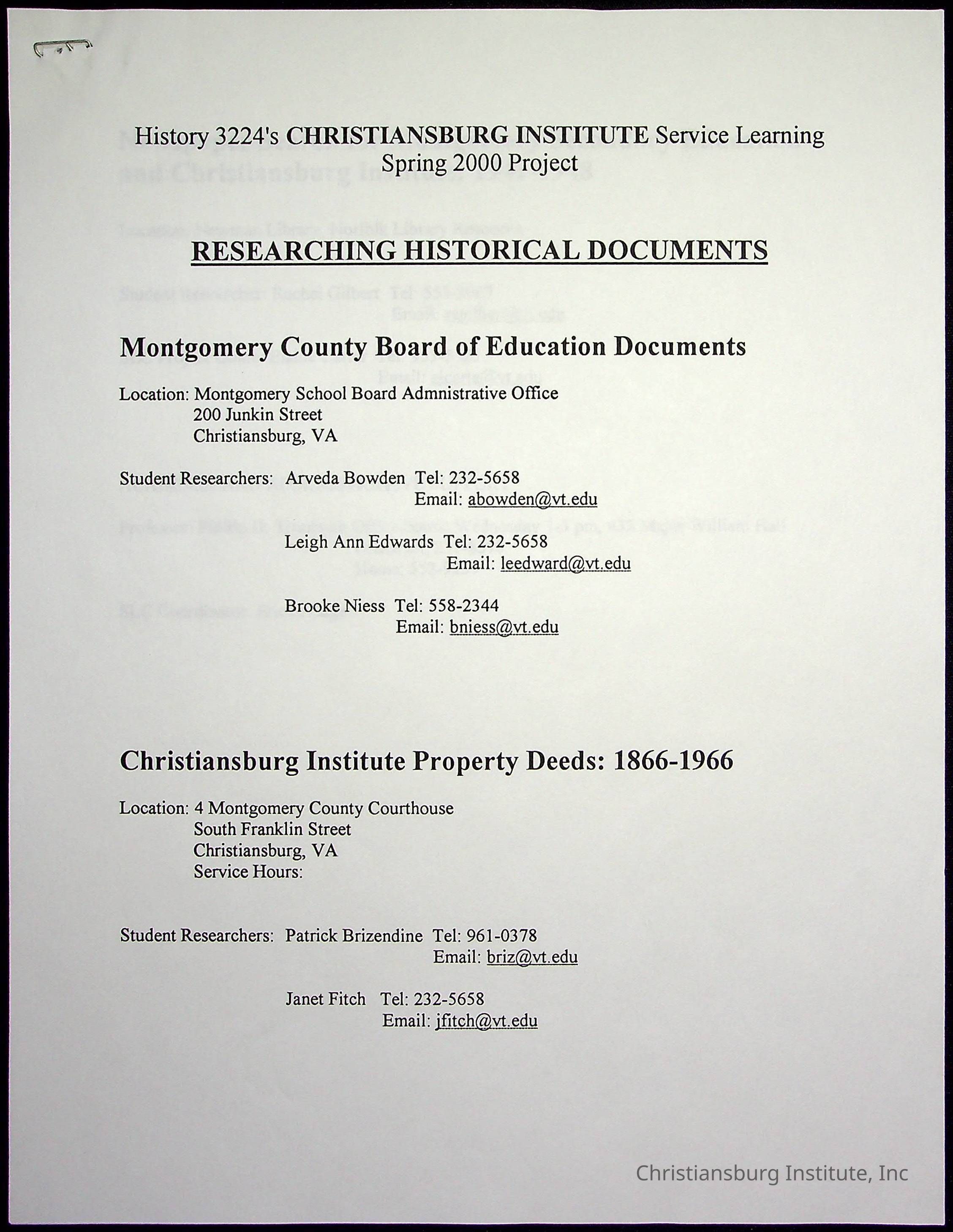 A collection of research materials for a history research project about Montgomery County Board of Education and CI Property Deeds from Spring semester of 2000. This project was overseen by professor Phillip D. Troutman and Elaine Dow Carter.Creator