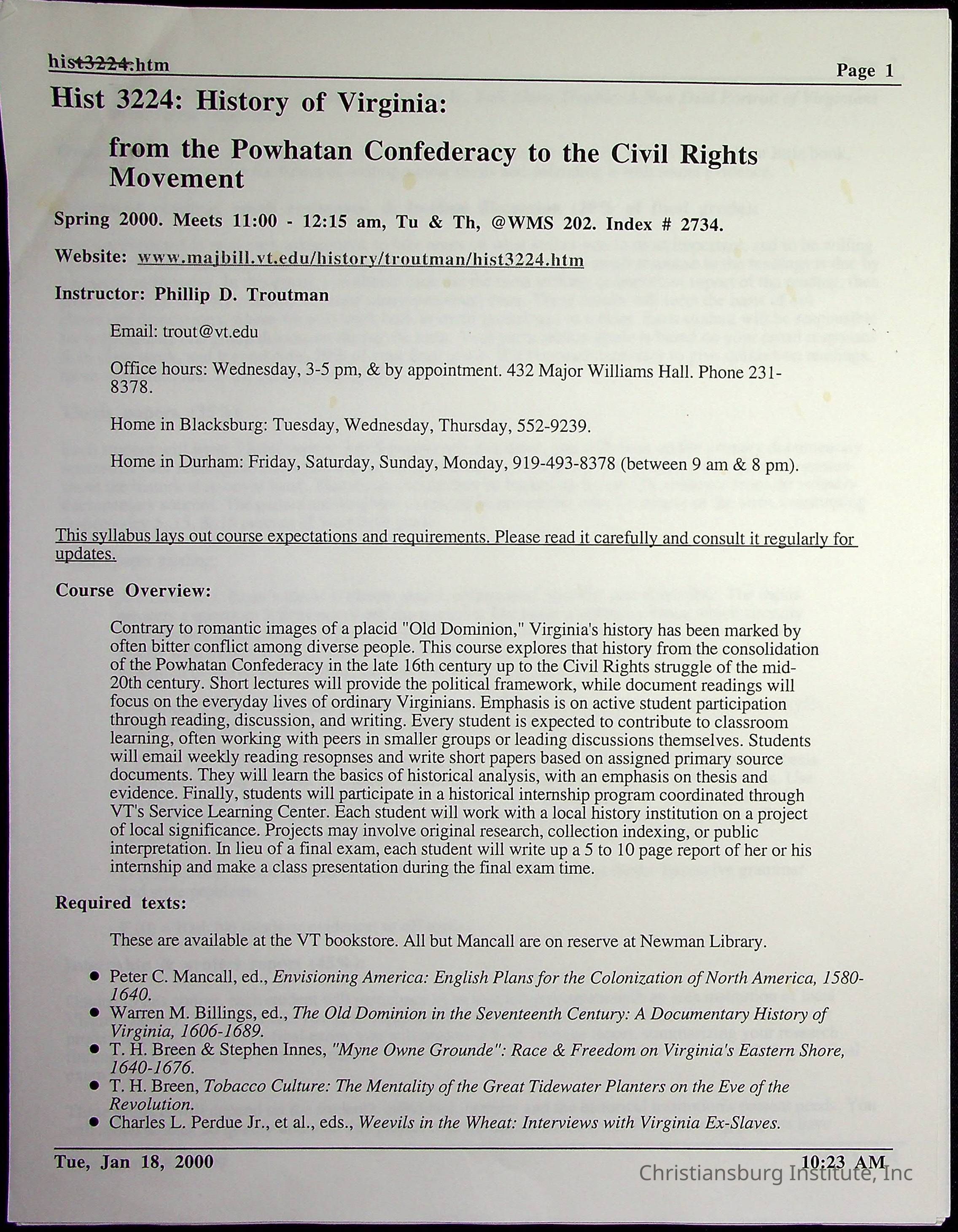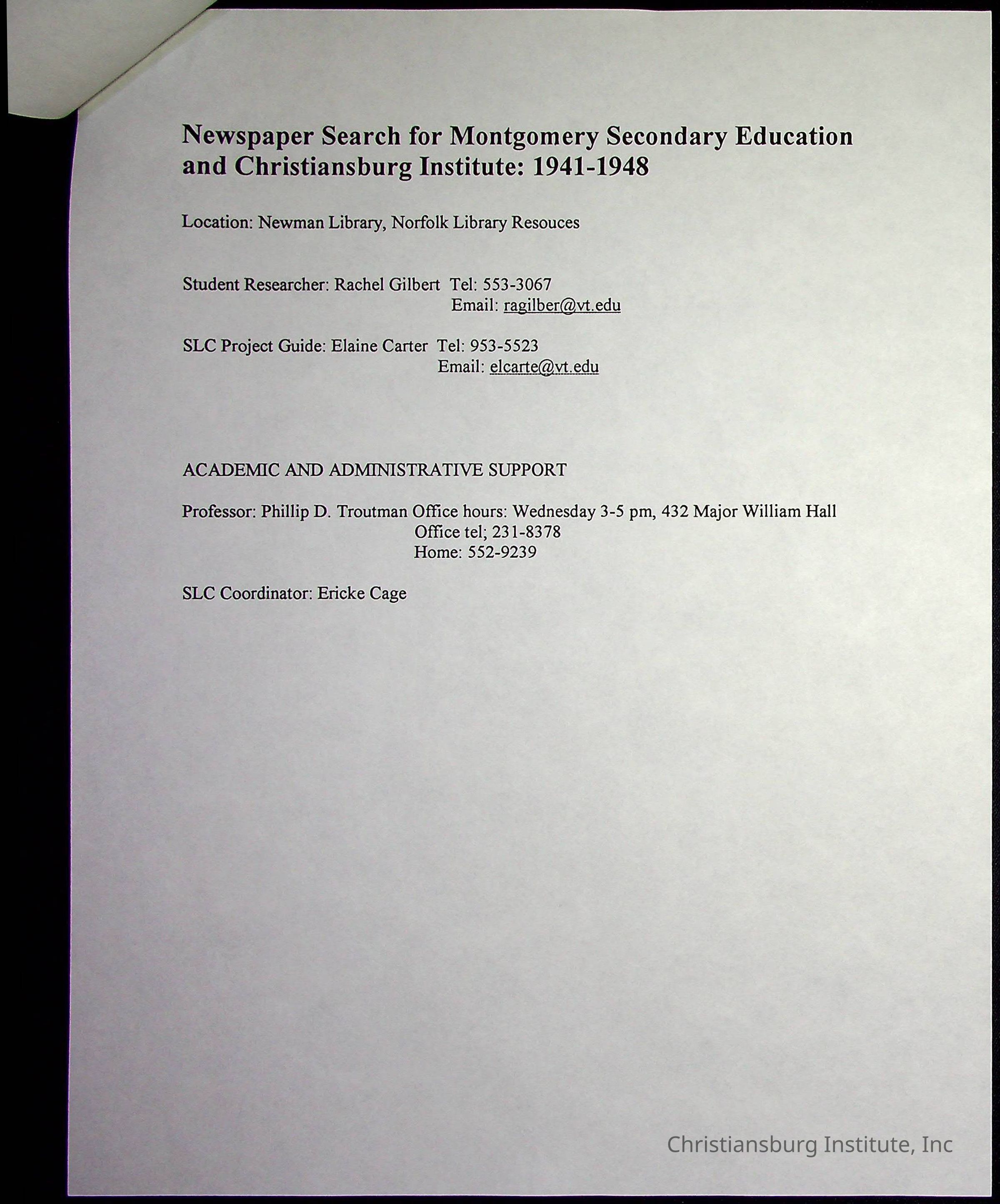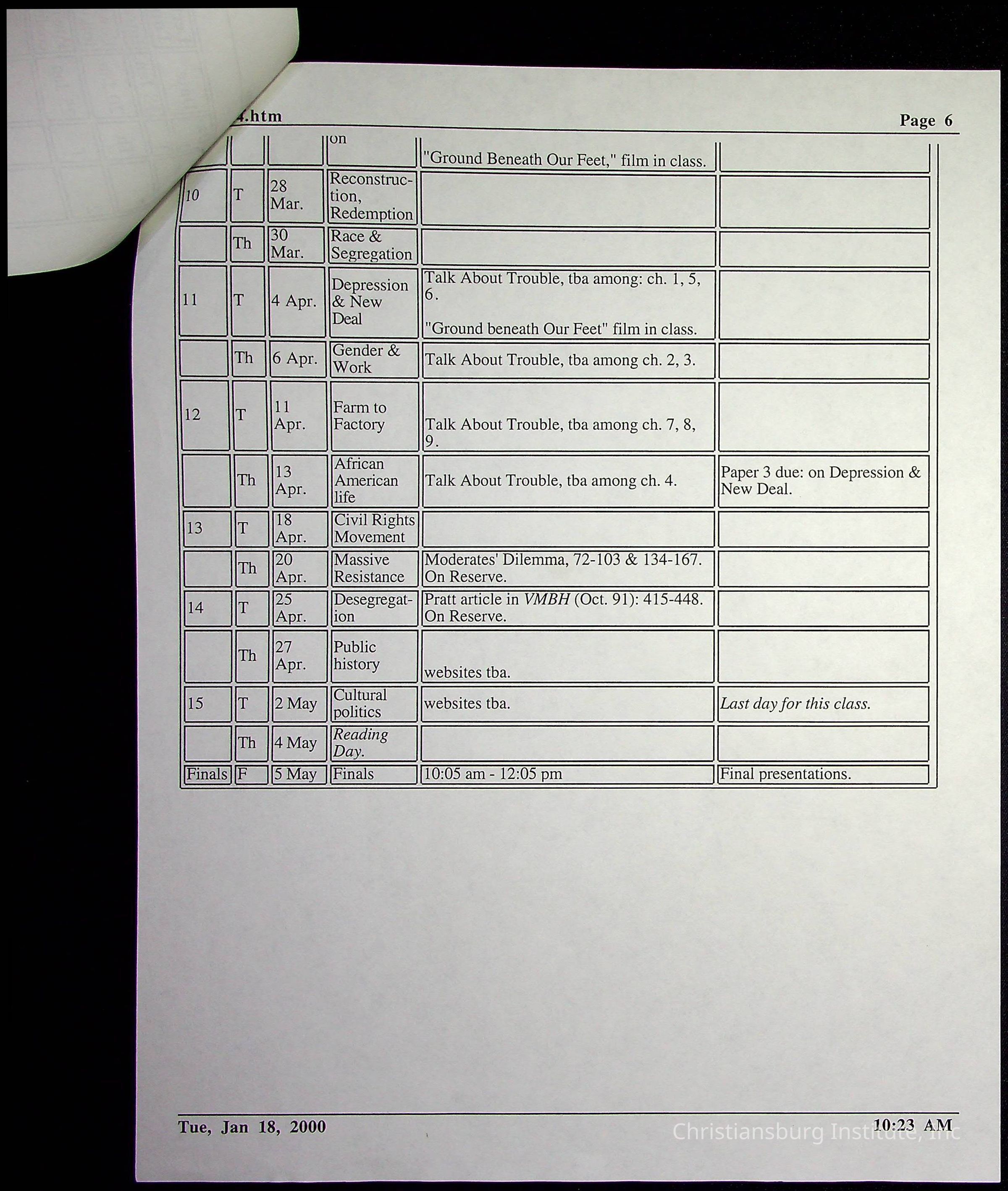 A collection of research materials for a history research project about Montgomery County Board of Education and CI Property Deeds from Spring semester of 2000. This project was overseen by professor Phillip D. Troutman and Elaine Dow Carter.Creator