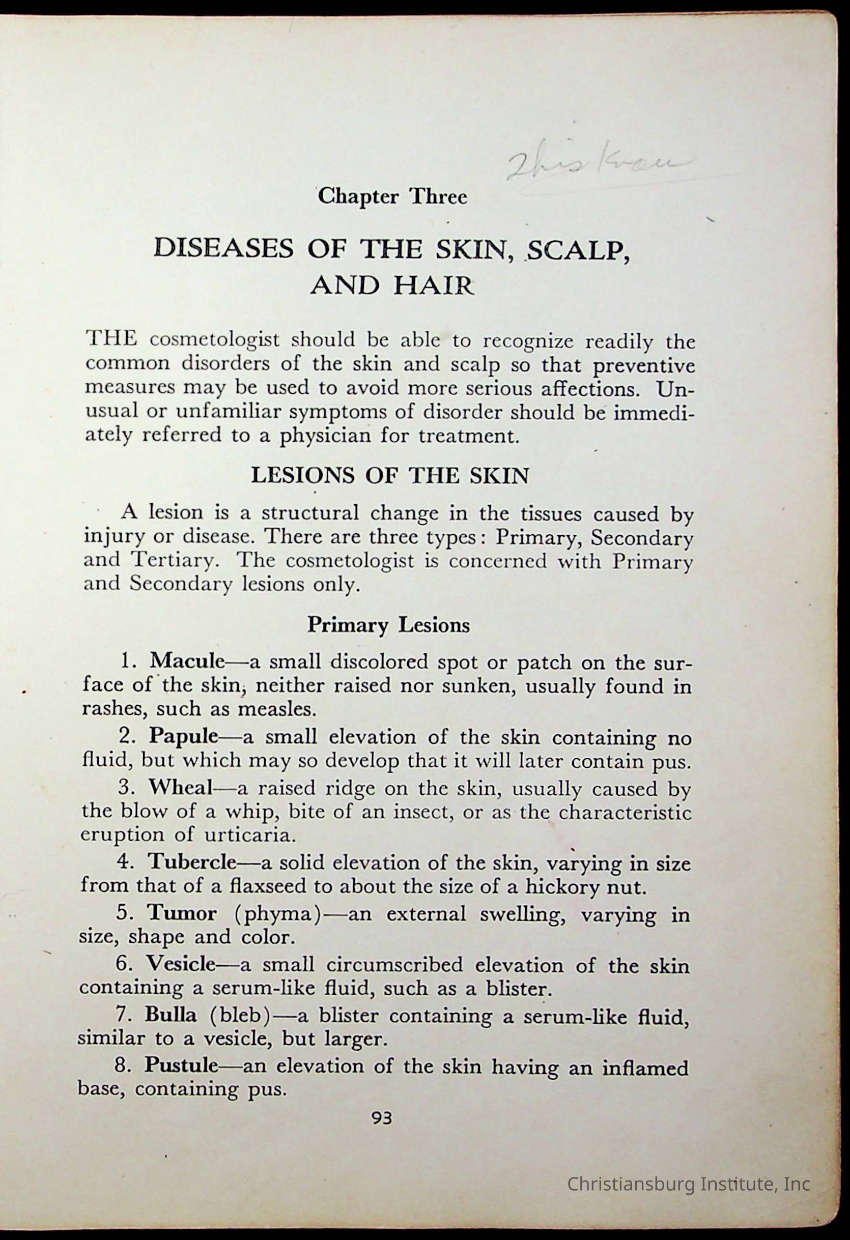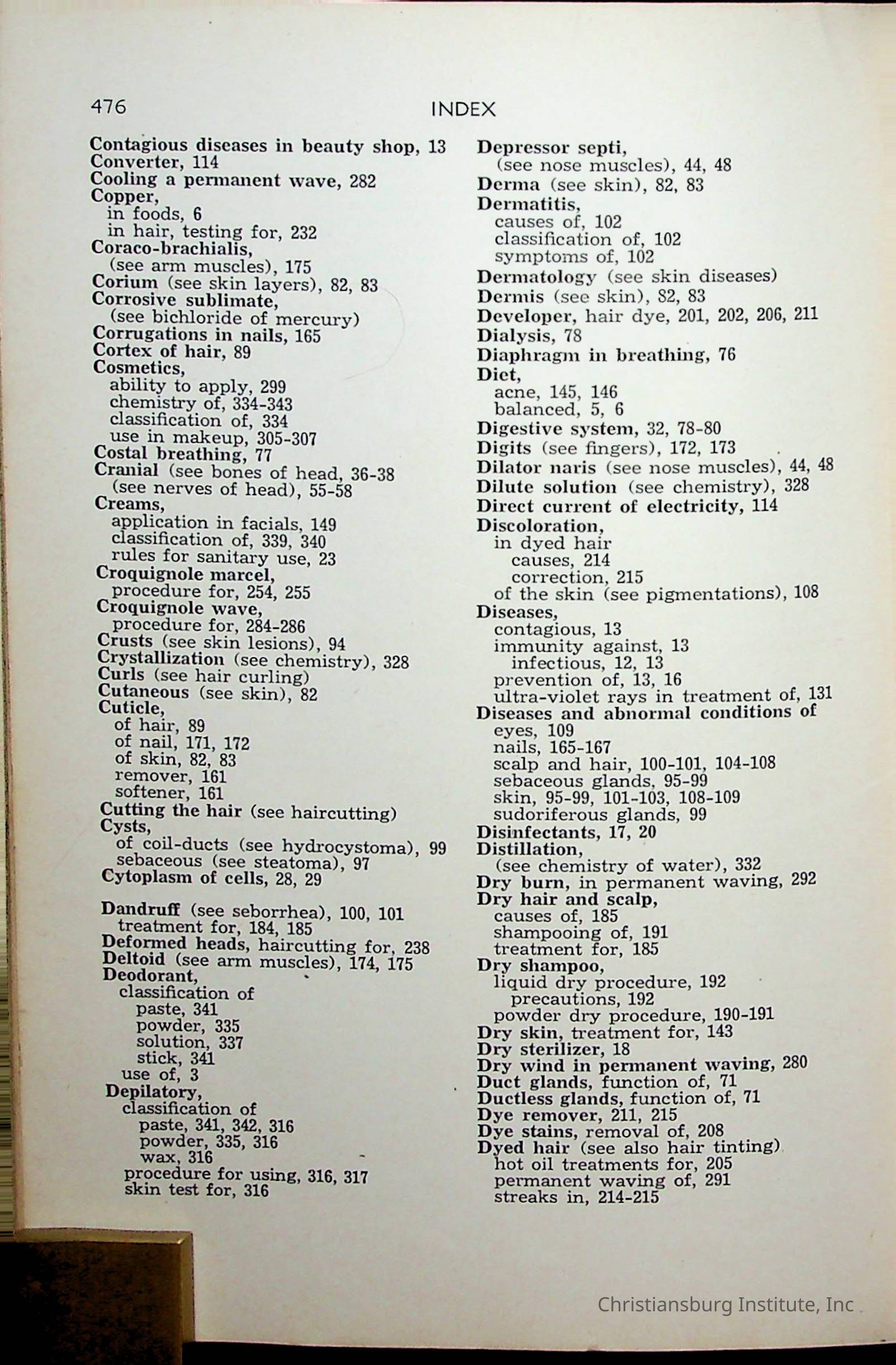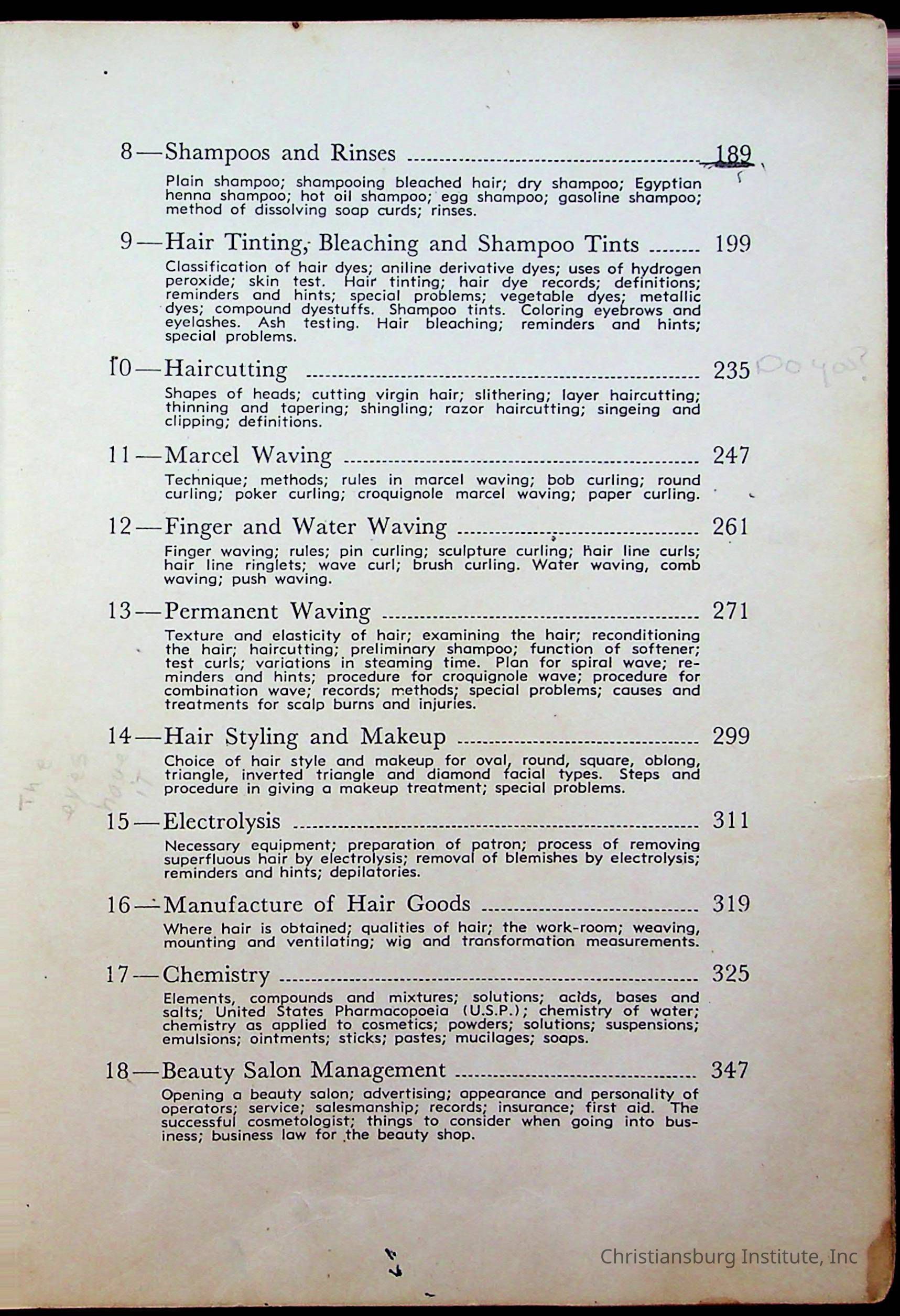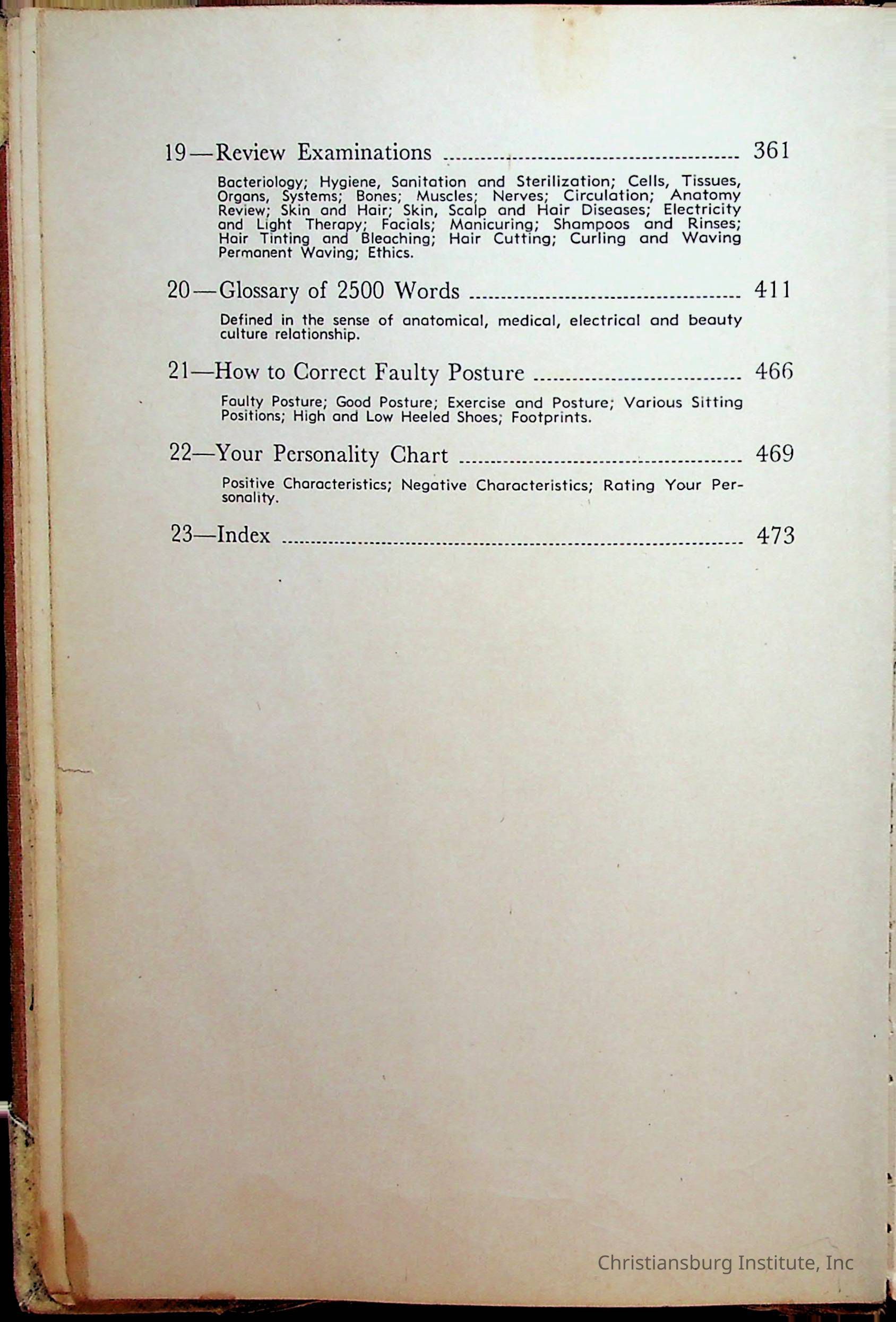 A revised version of the textbook titled, "Standard Textbook on Cosmetology" written by Constance V. Kibbe and published in the year 1942. This copy was owned by CII student, Amanda Edwin (later Amanda DeHart).Collection