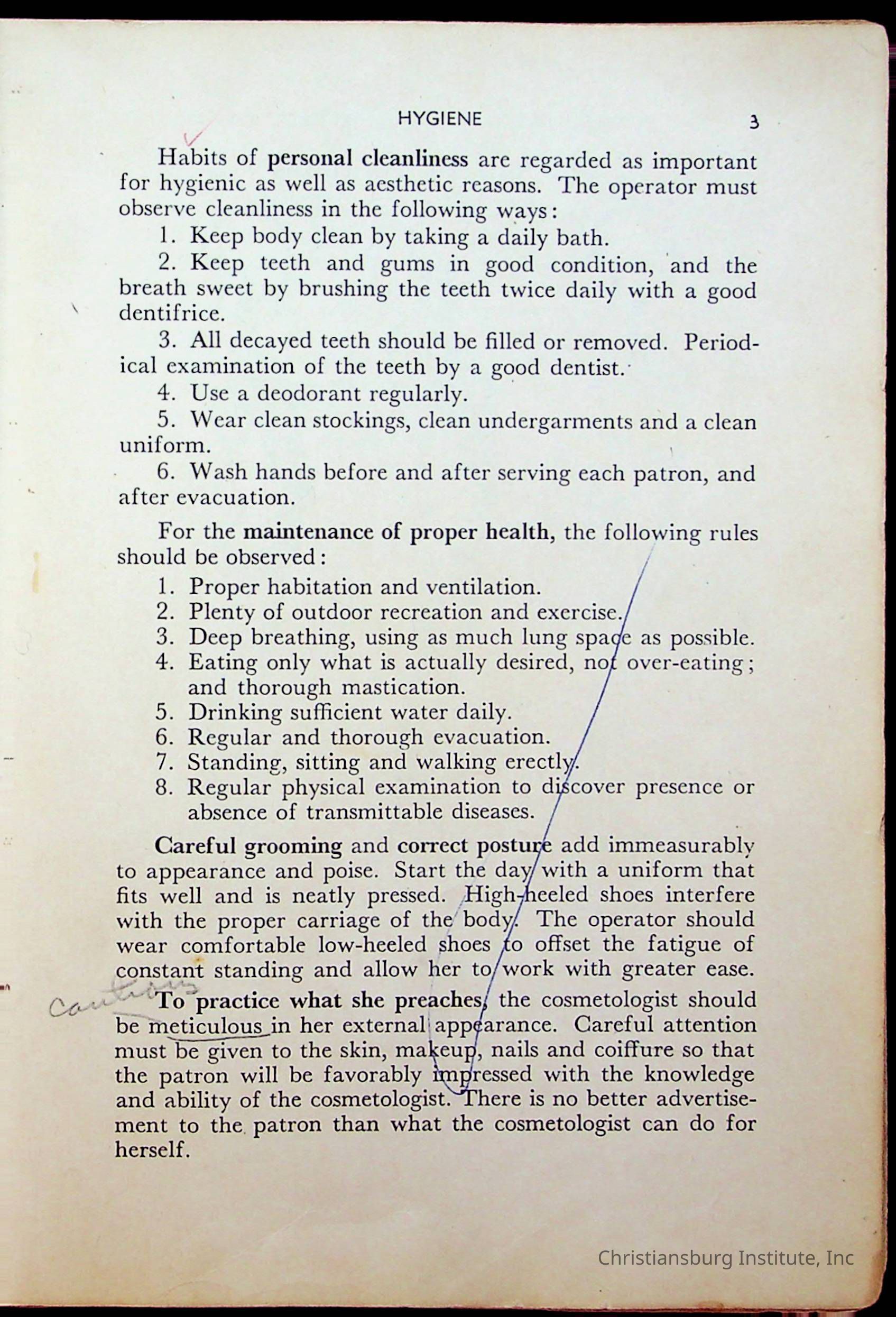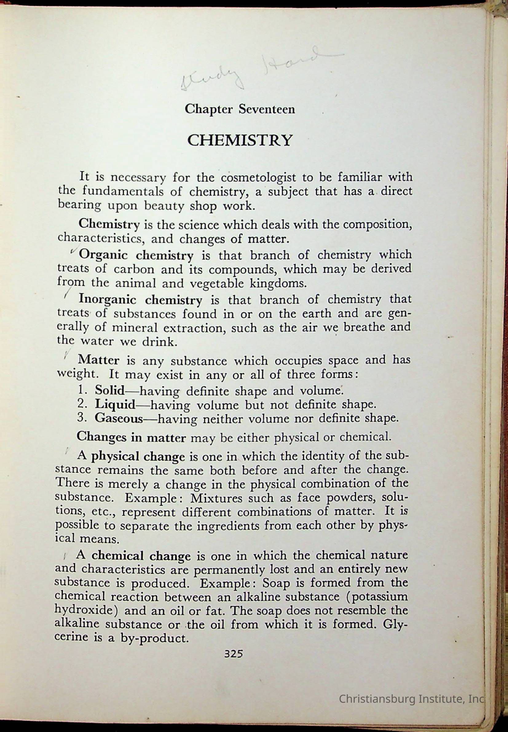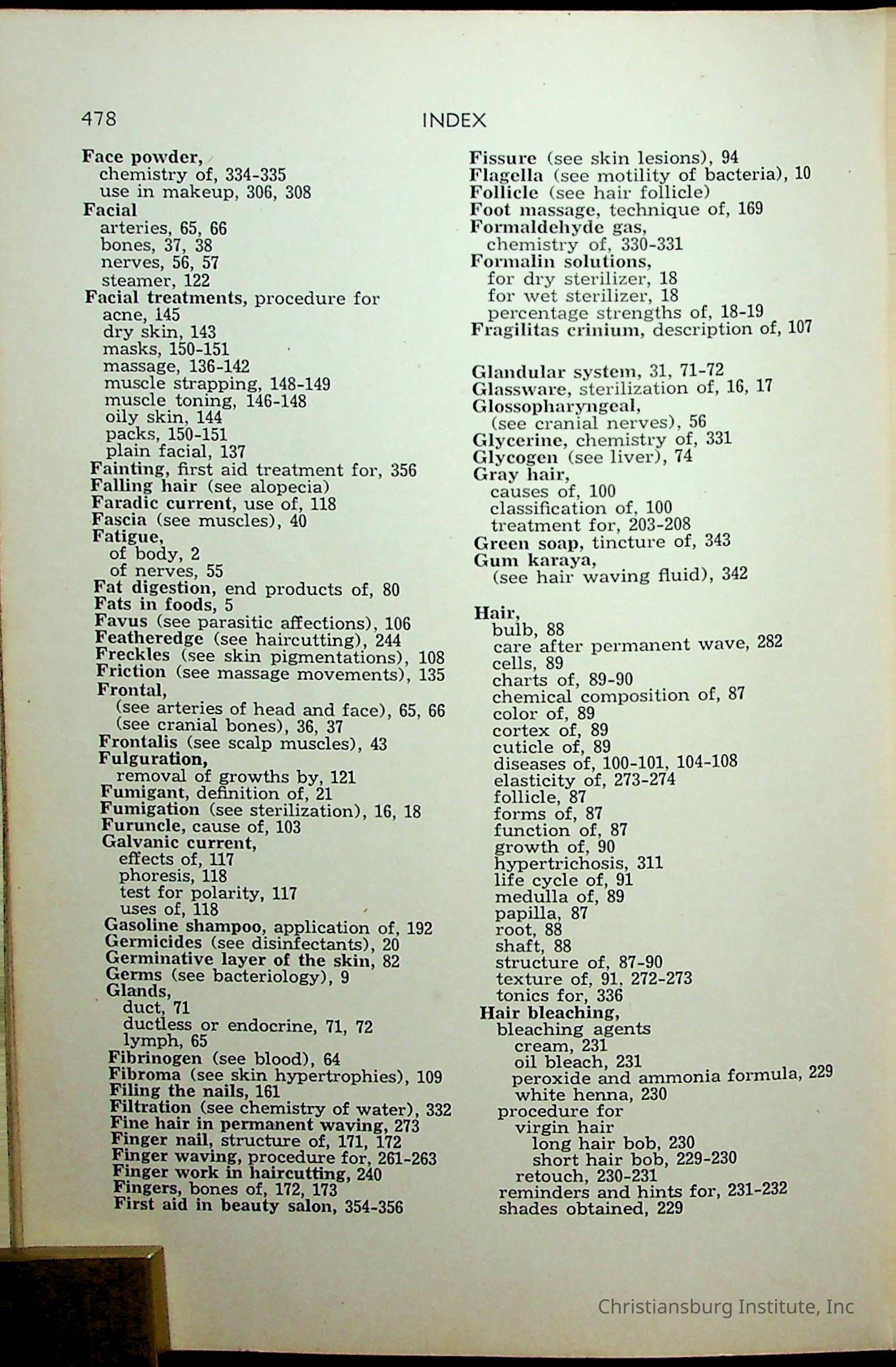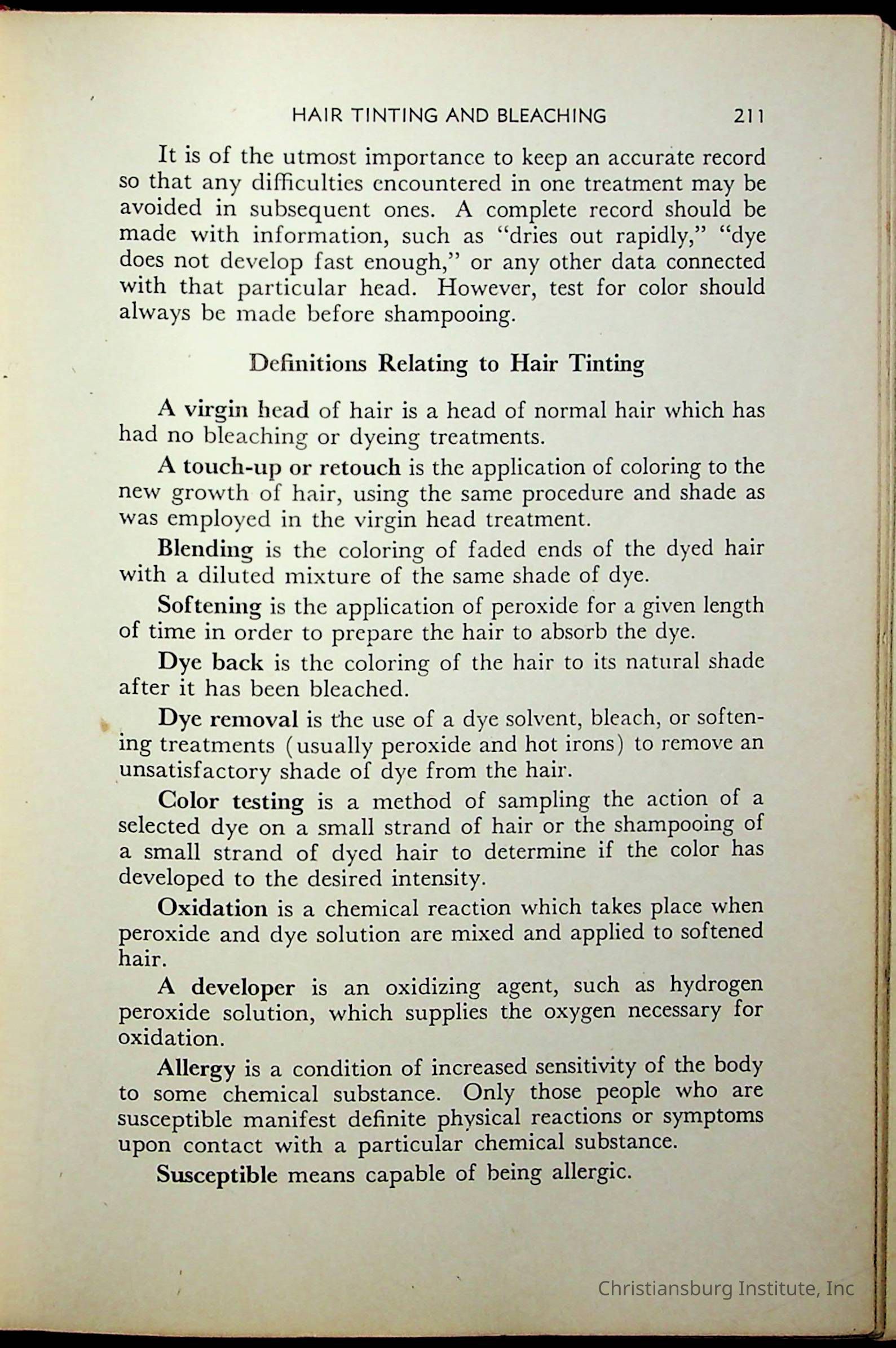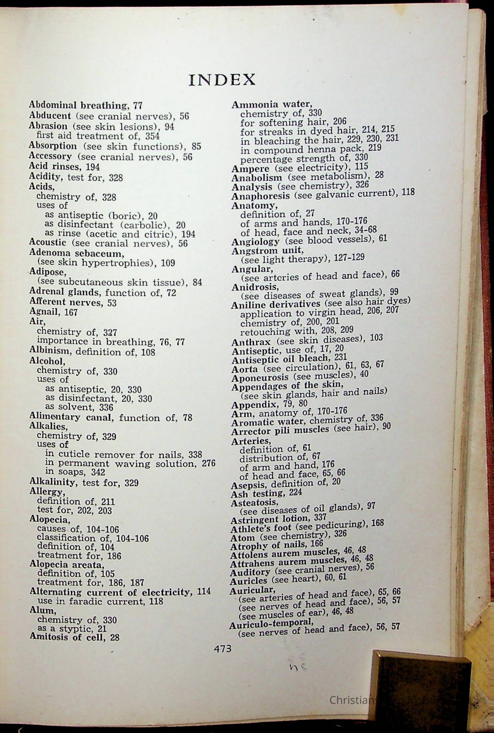A revised version of the textbook titled, "Standard Textbook on Cosmetology" written by Constance V. Kibbe and published in the year 1942. This copy was owned by CII student, Amanda Edwin (later Amanda DeHart).Collection