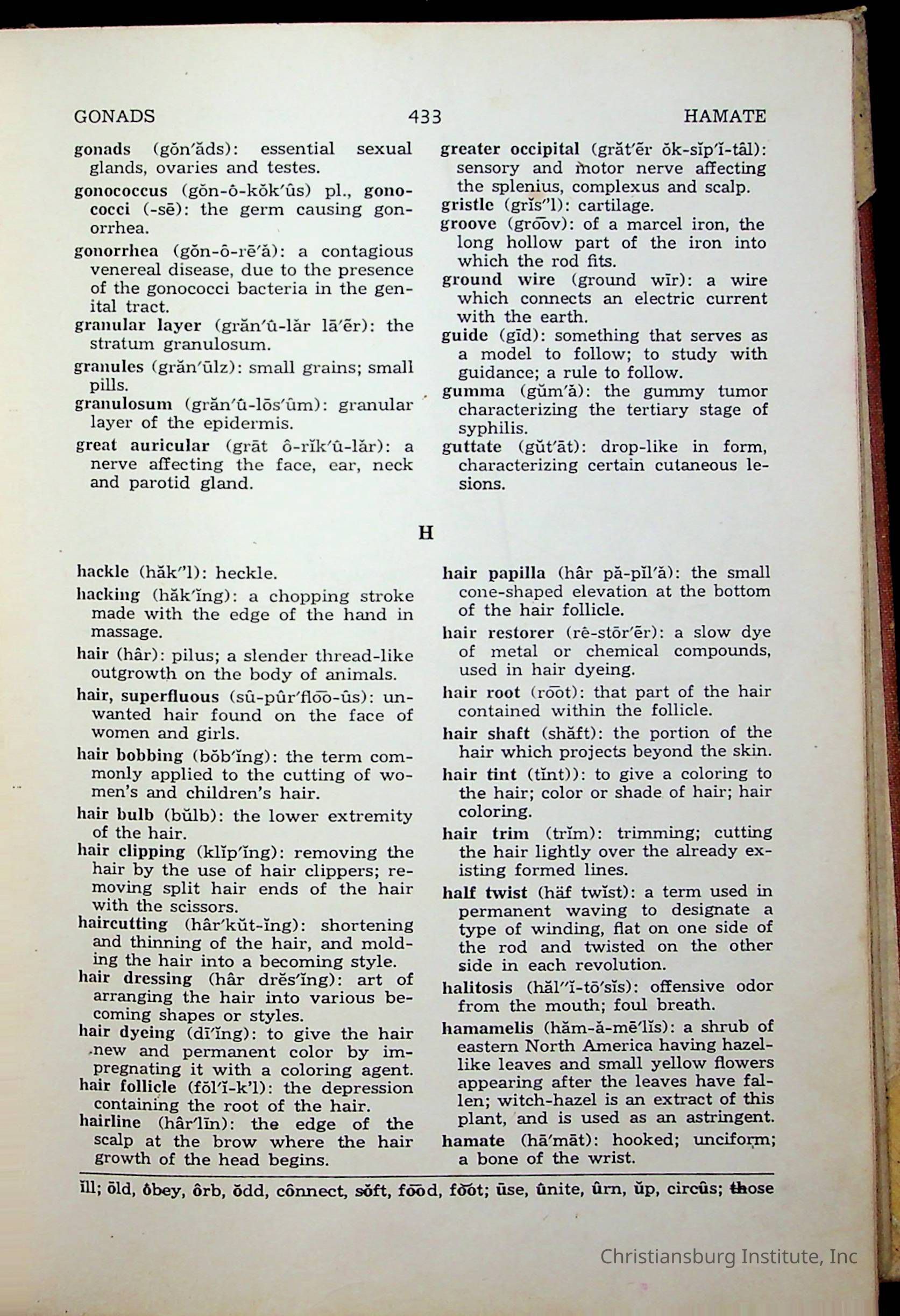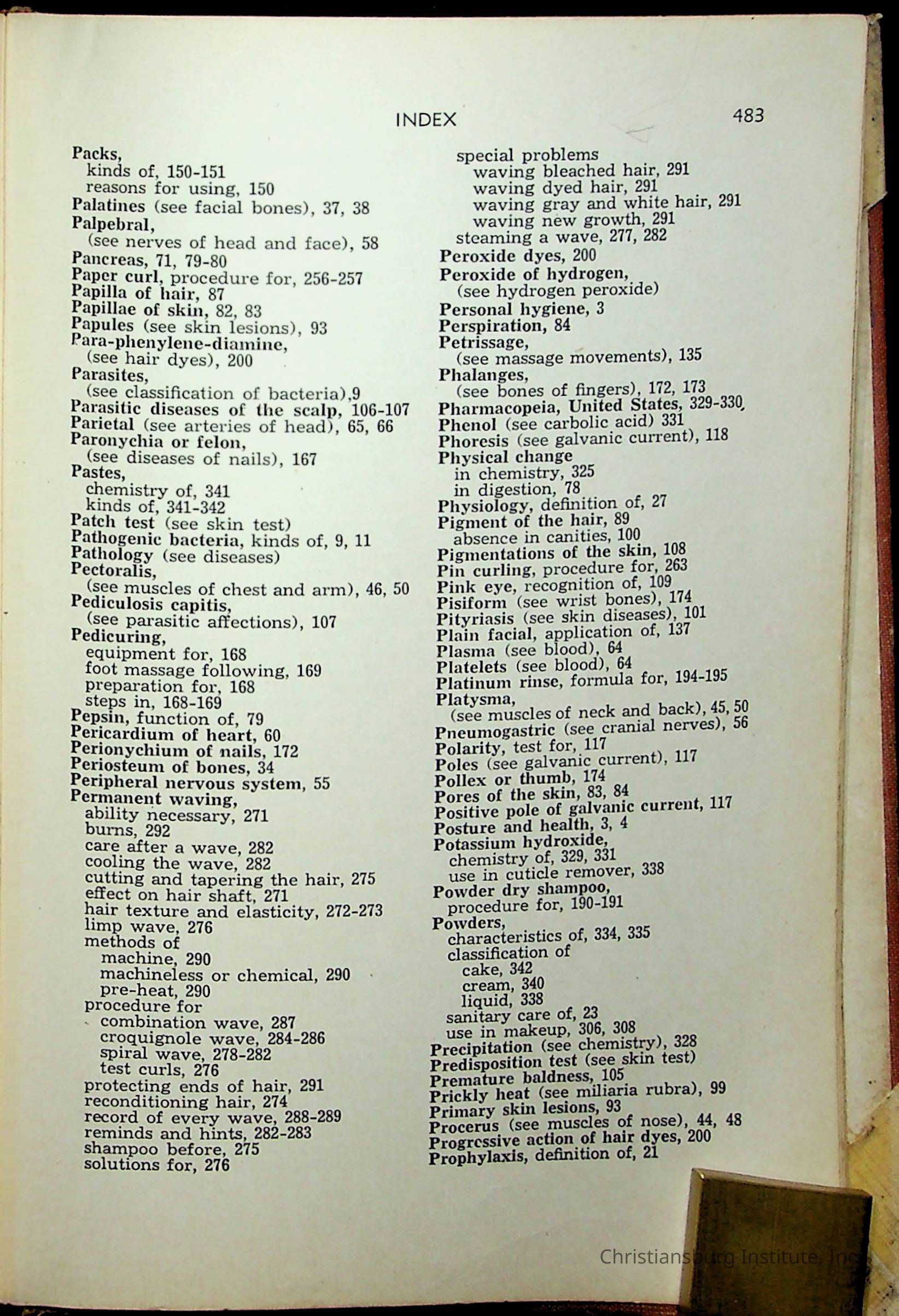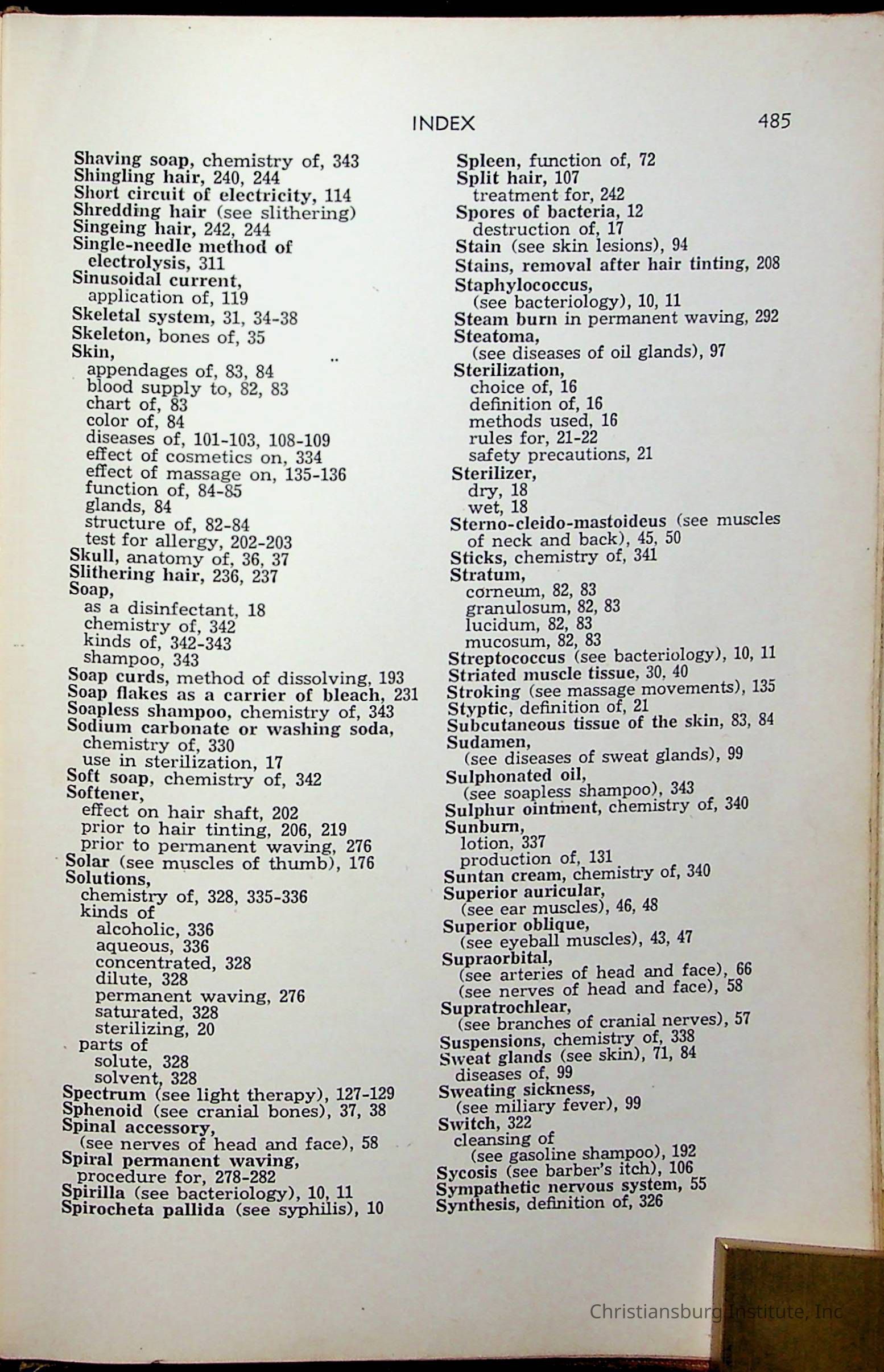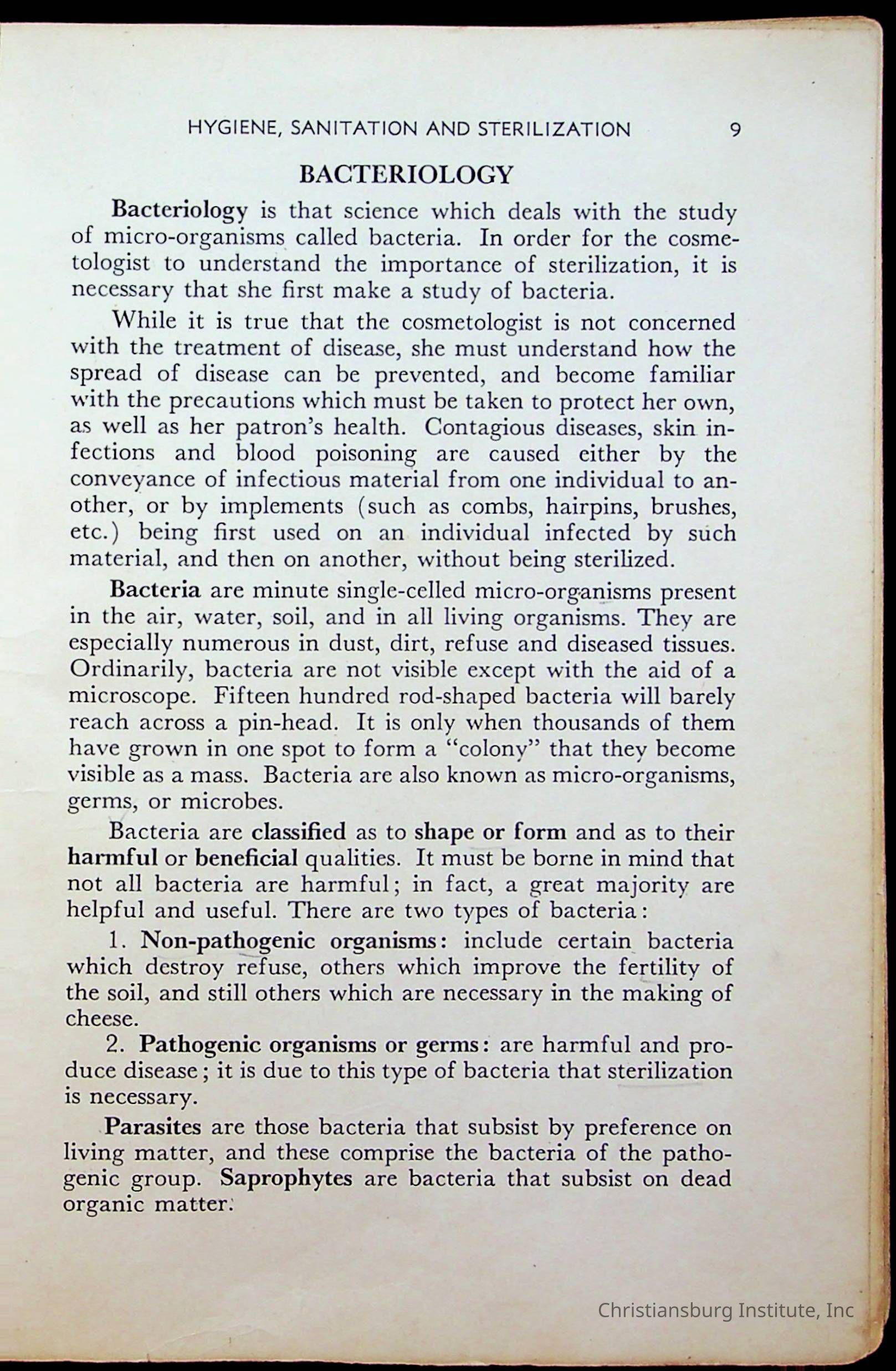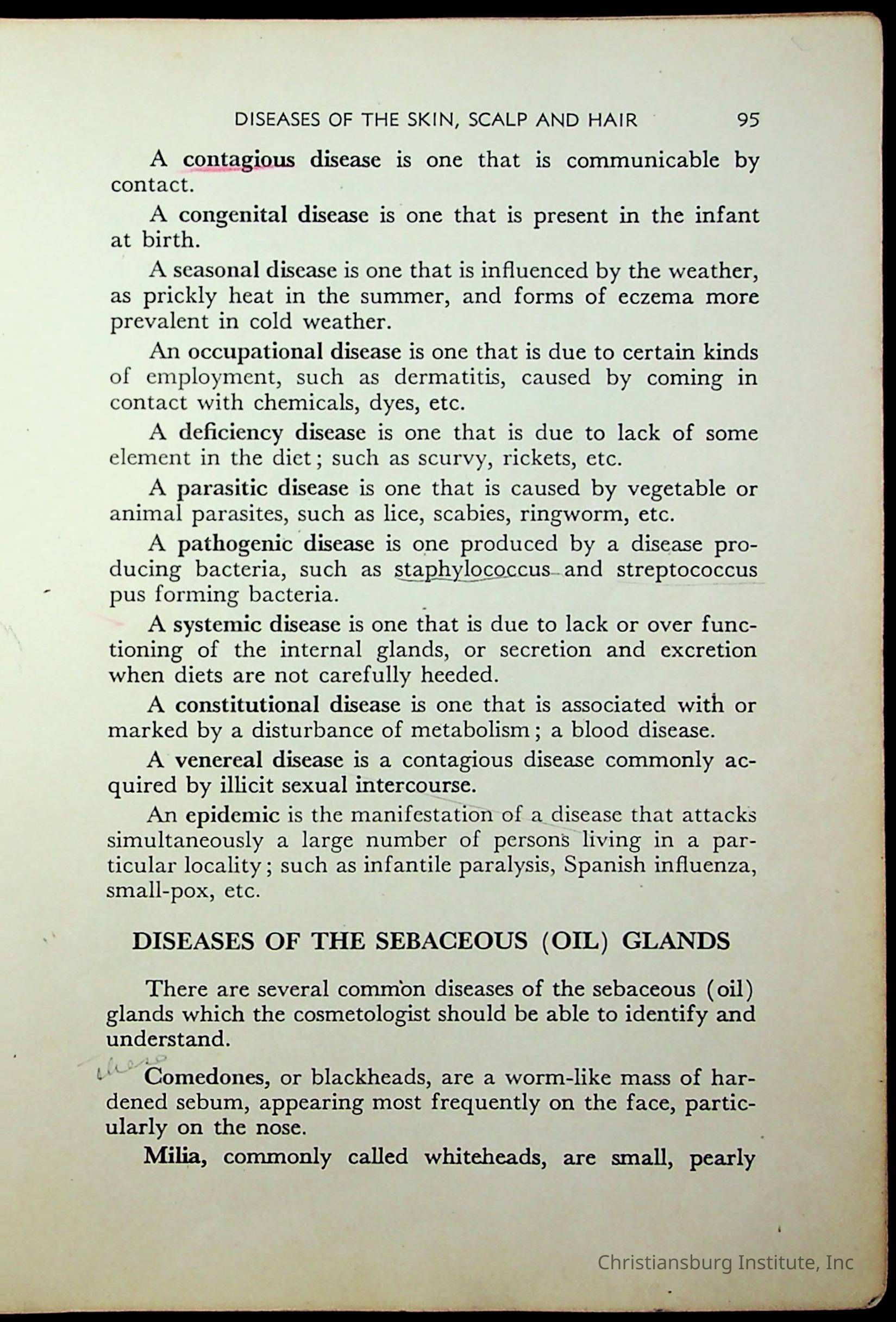 A revised version of the textbook titled, "Standard Textbook on Cosmetology" written by Constance V. Kibbe and published in the year 1942. This copy was owned by CII student, Amanda Edwin (later Amanda DeHart).Collection