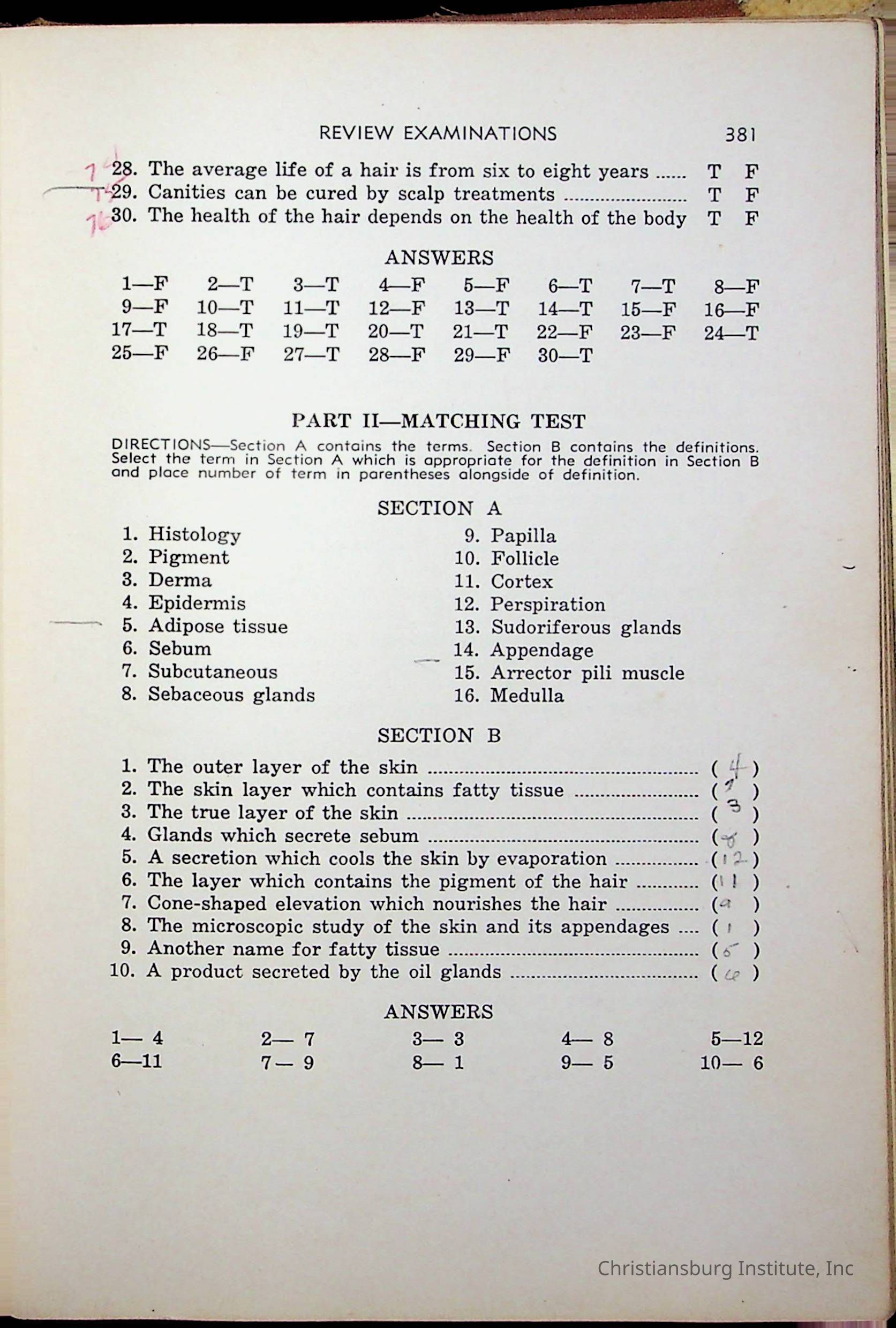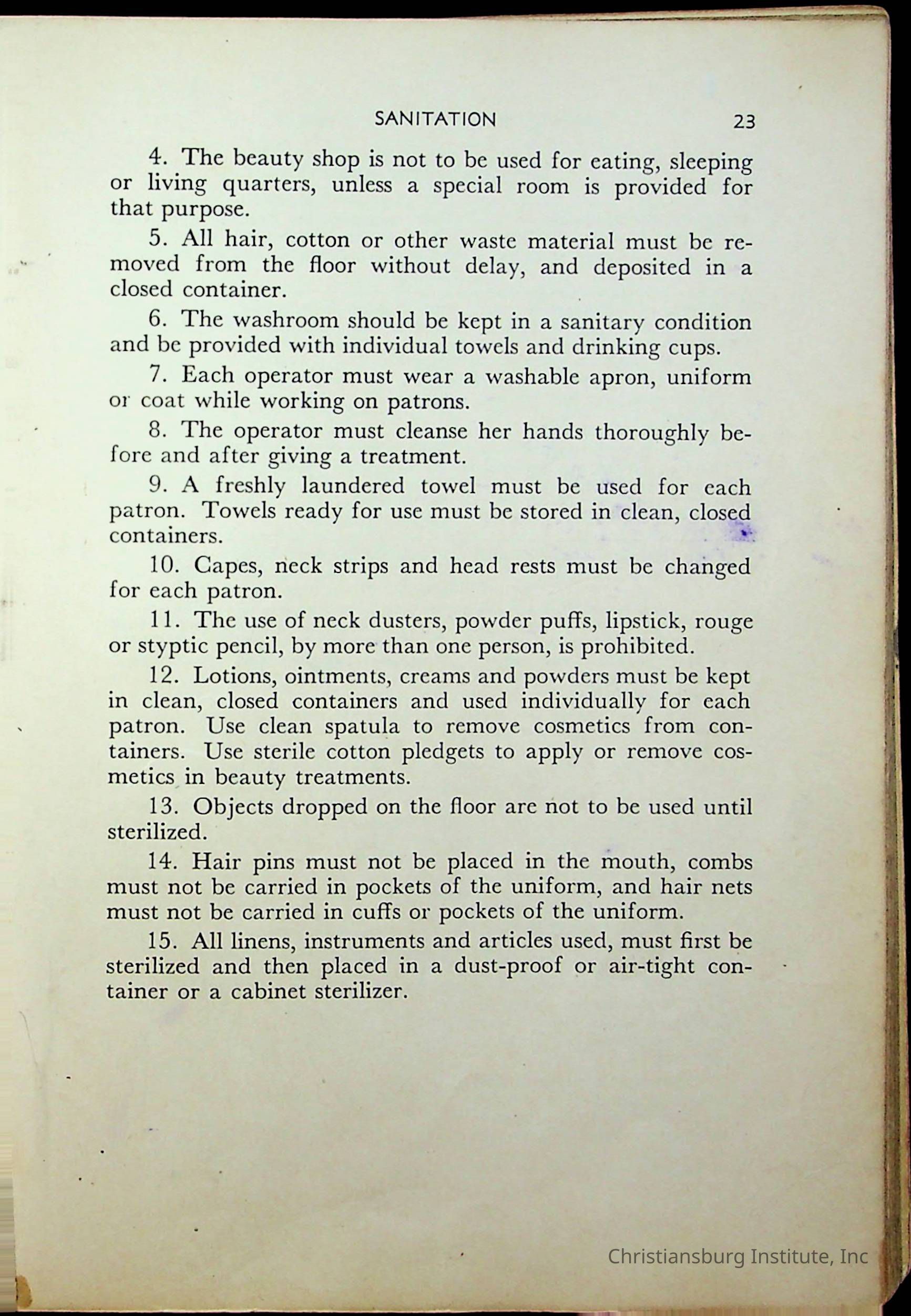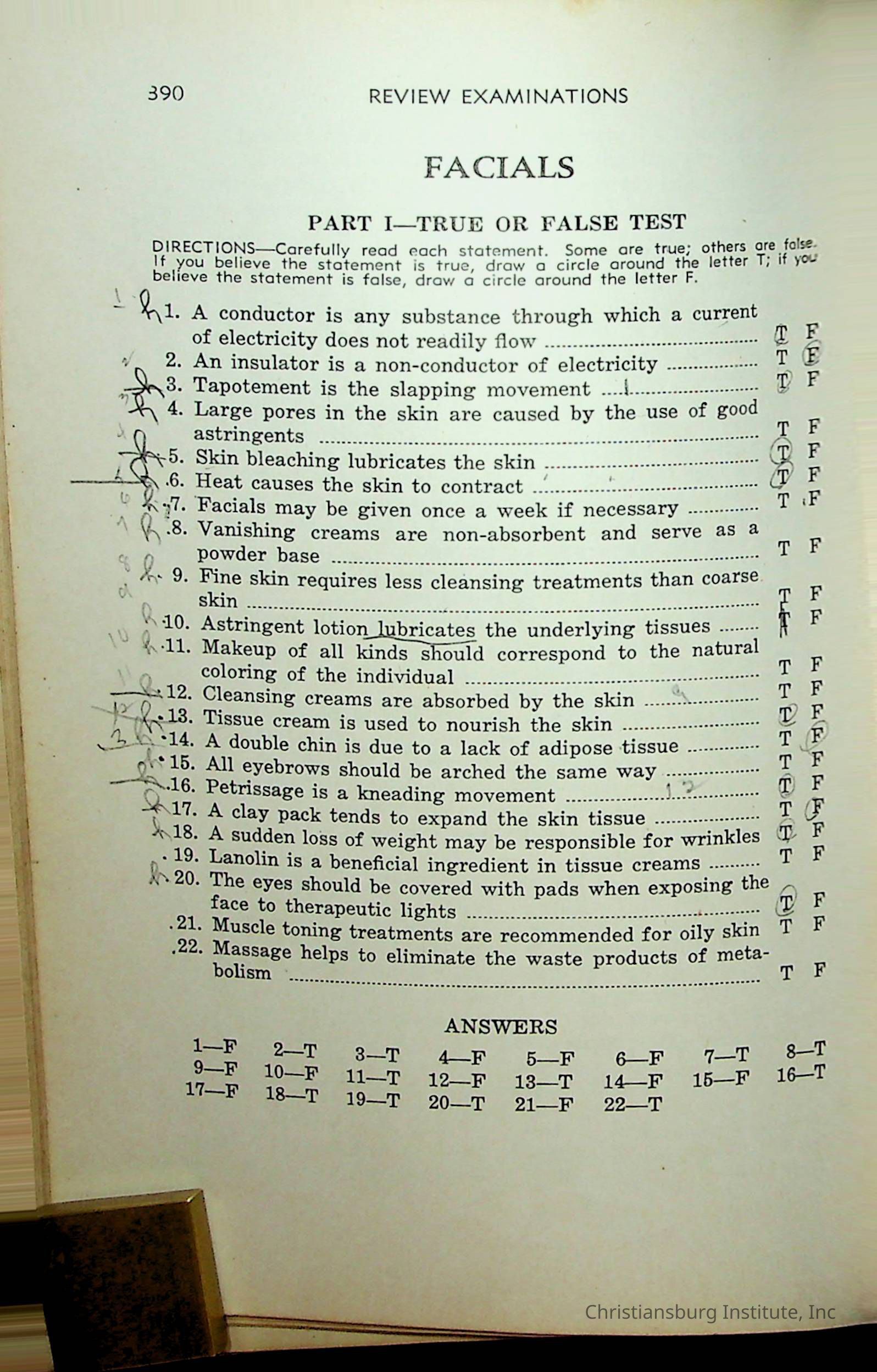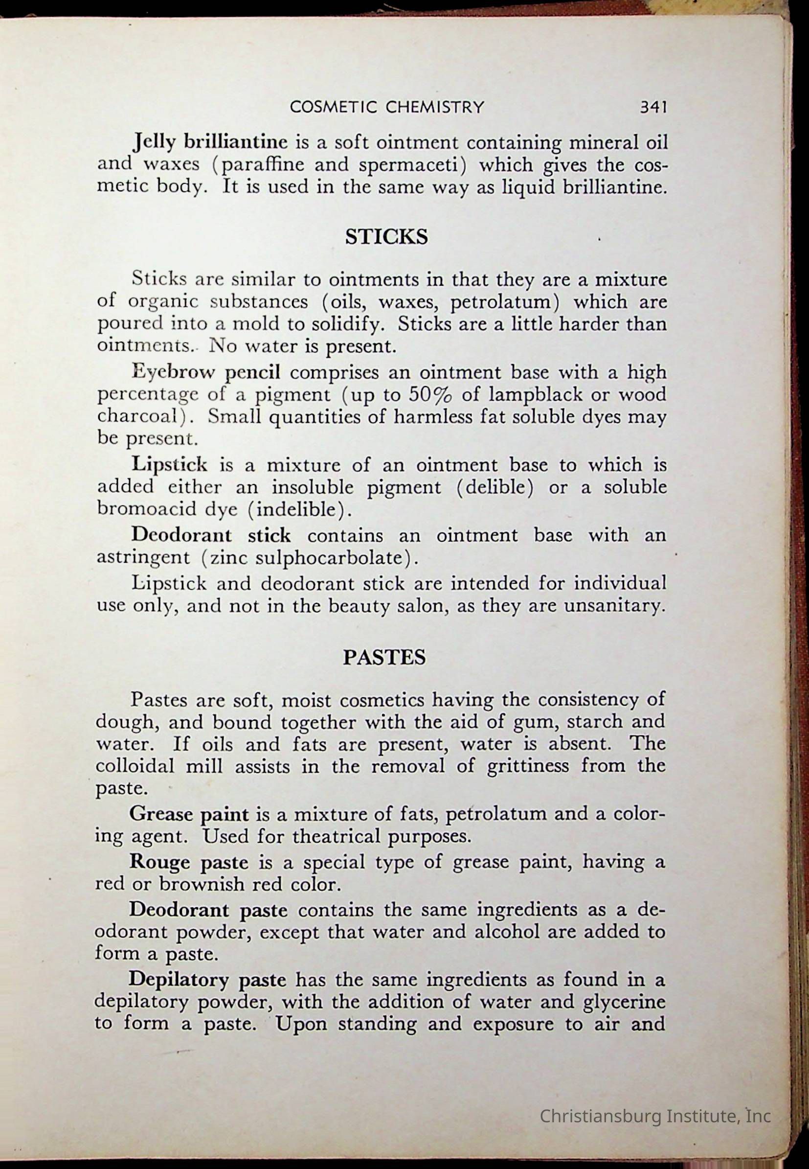 A revised version of the textbook titled, "Standard Textbook on Cosmetology" written by Constance V. Kibbe and published in the year 1942. This copy was owned by CII student, Amanda Edwin (later Amanda DeHart).Collection