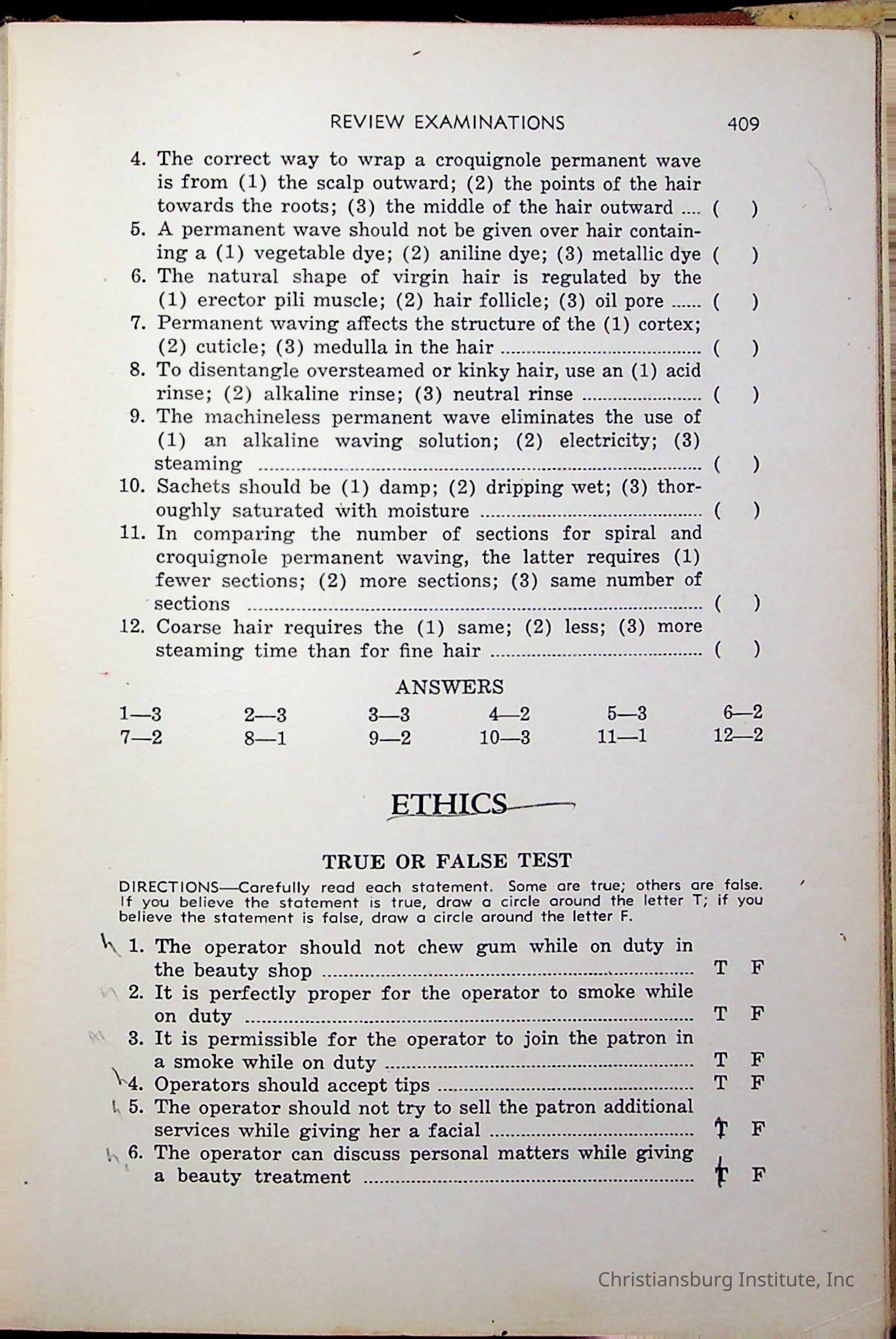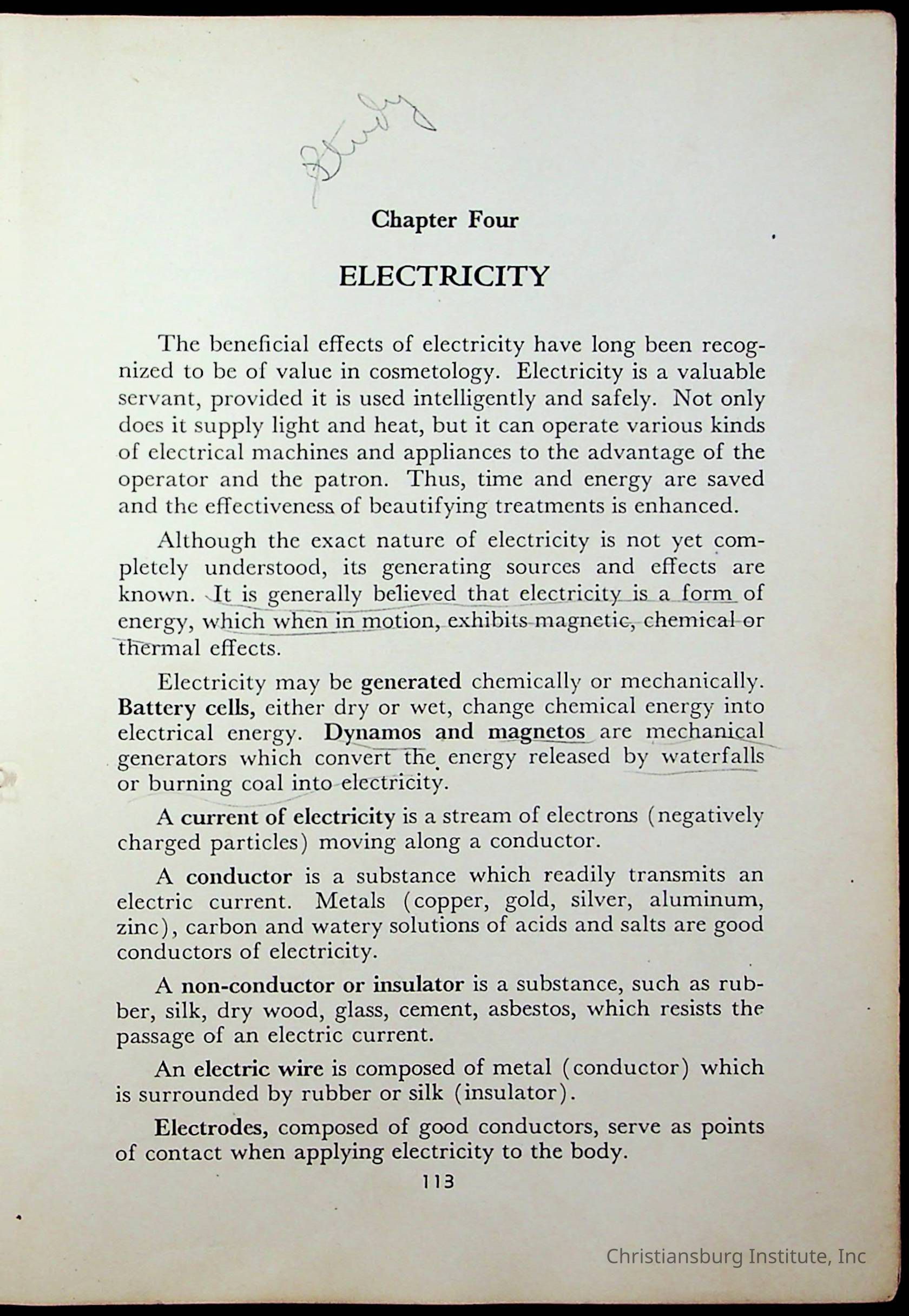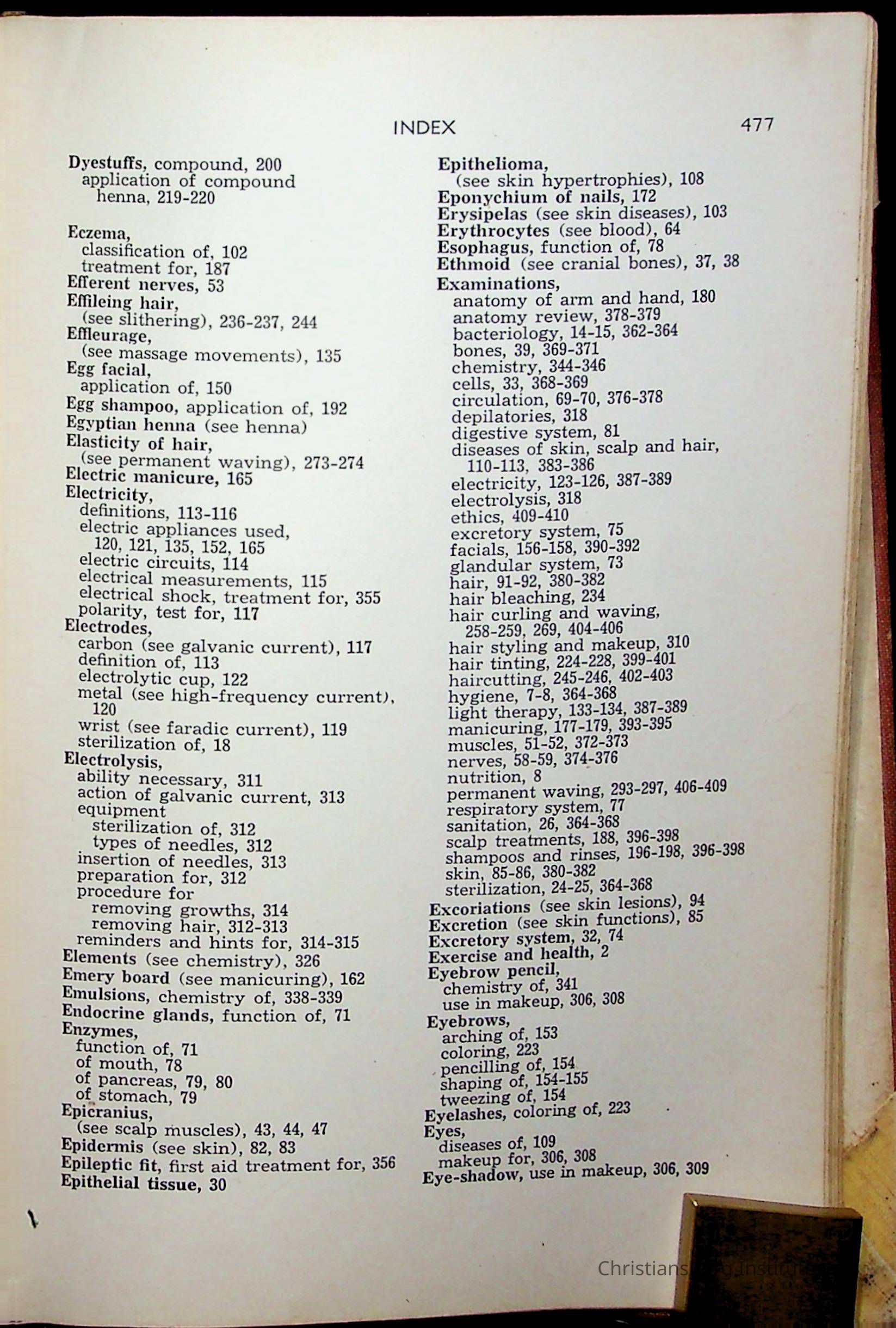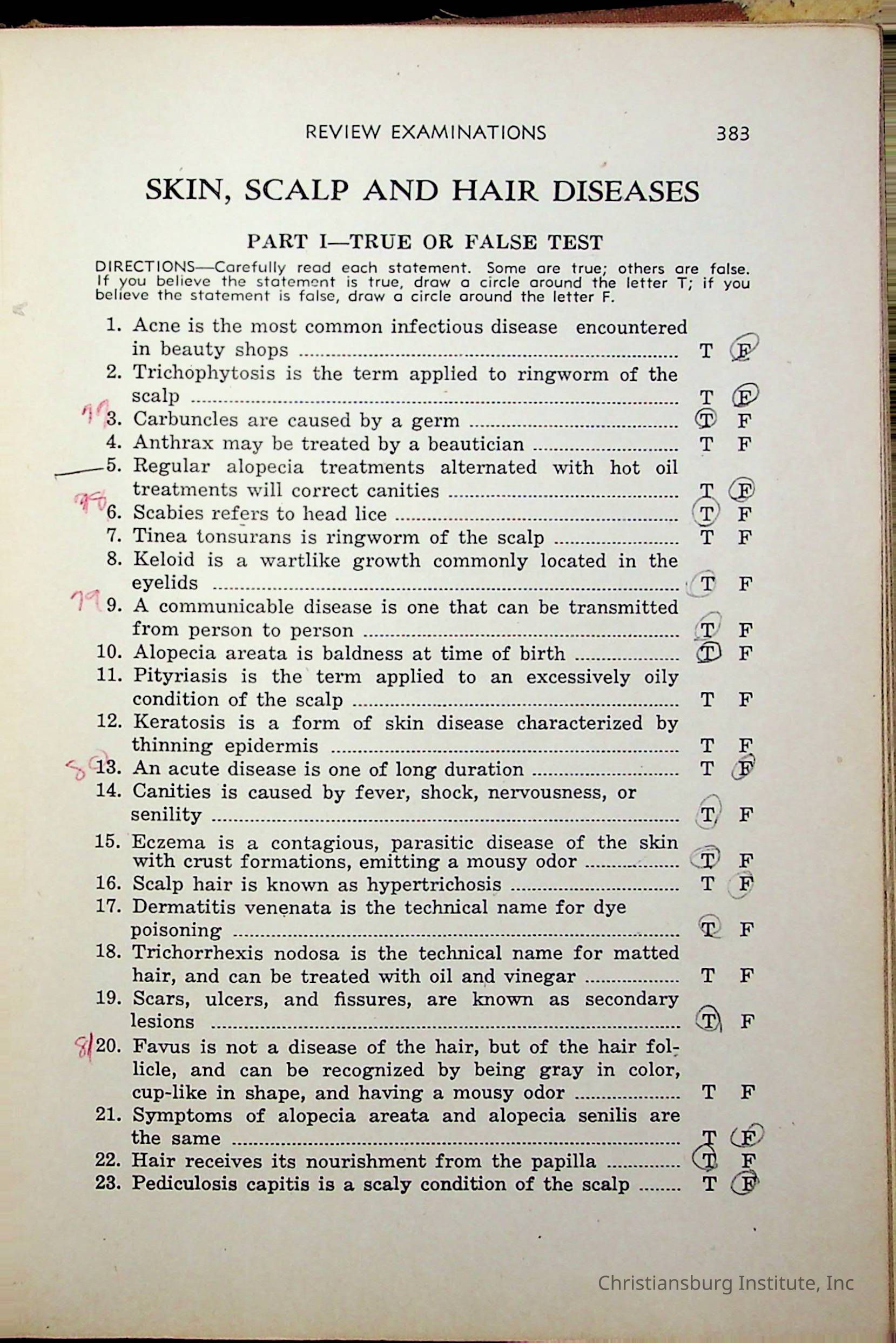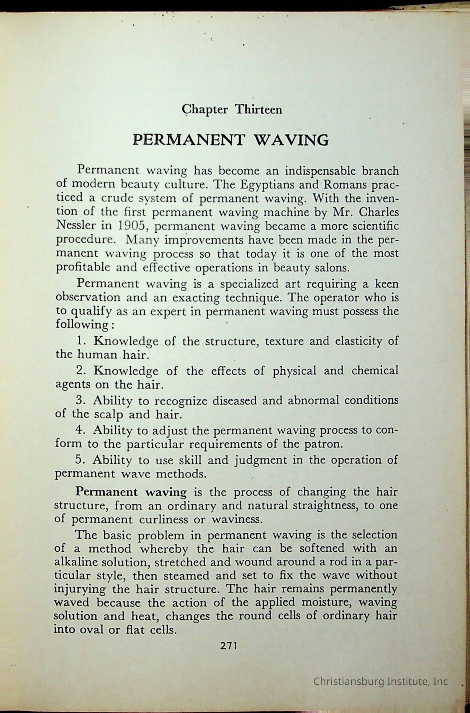 A revised version of the textbook titled, "Standard Textbook on Cosmetology" written by Constance V. Kibbe and published in the year 1942. This copy was owned by CII student, Amanda Edwin (later Amanda DeHart).Collection