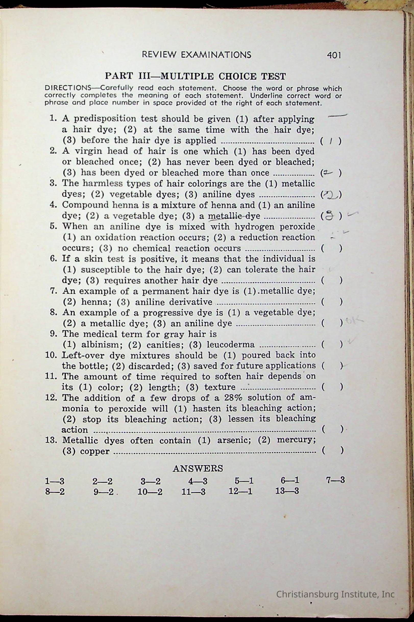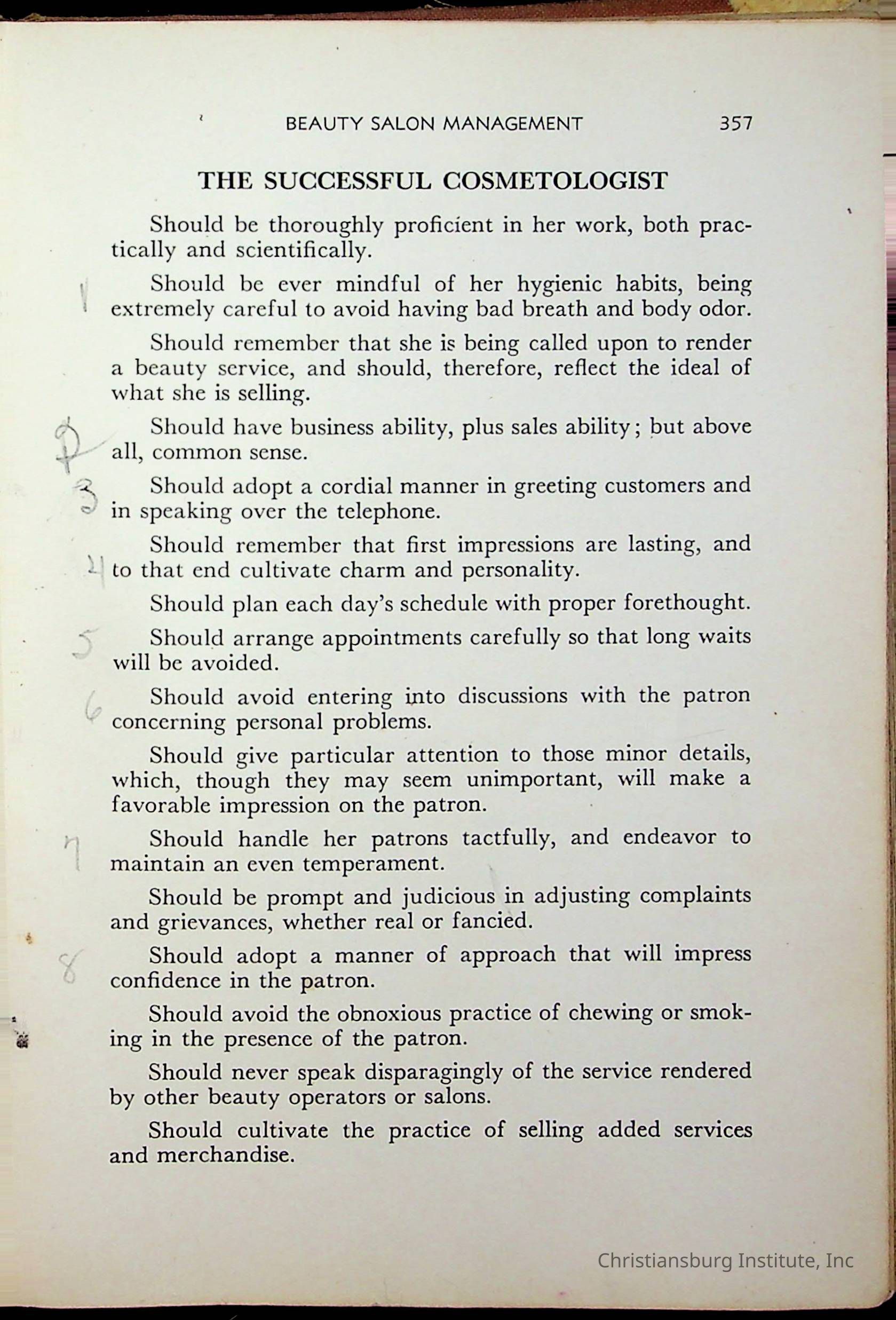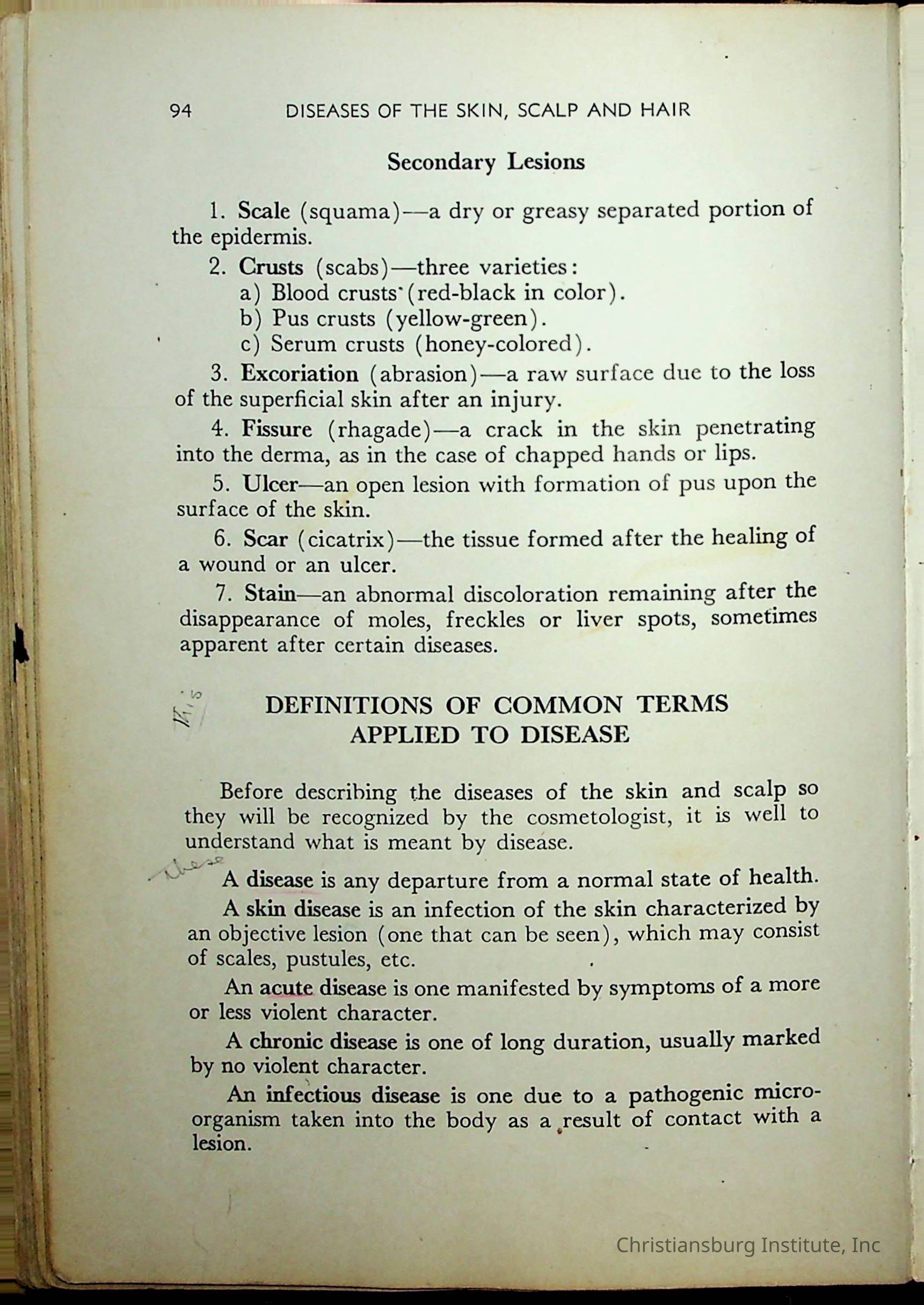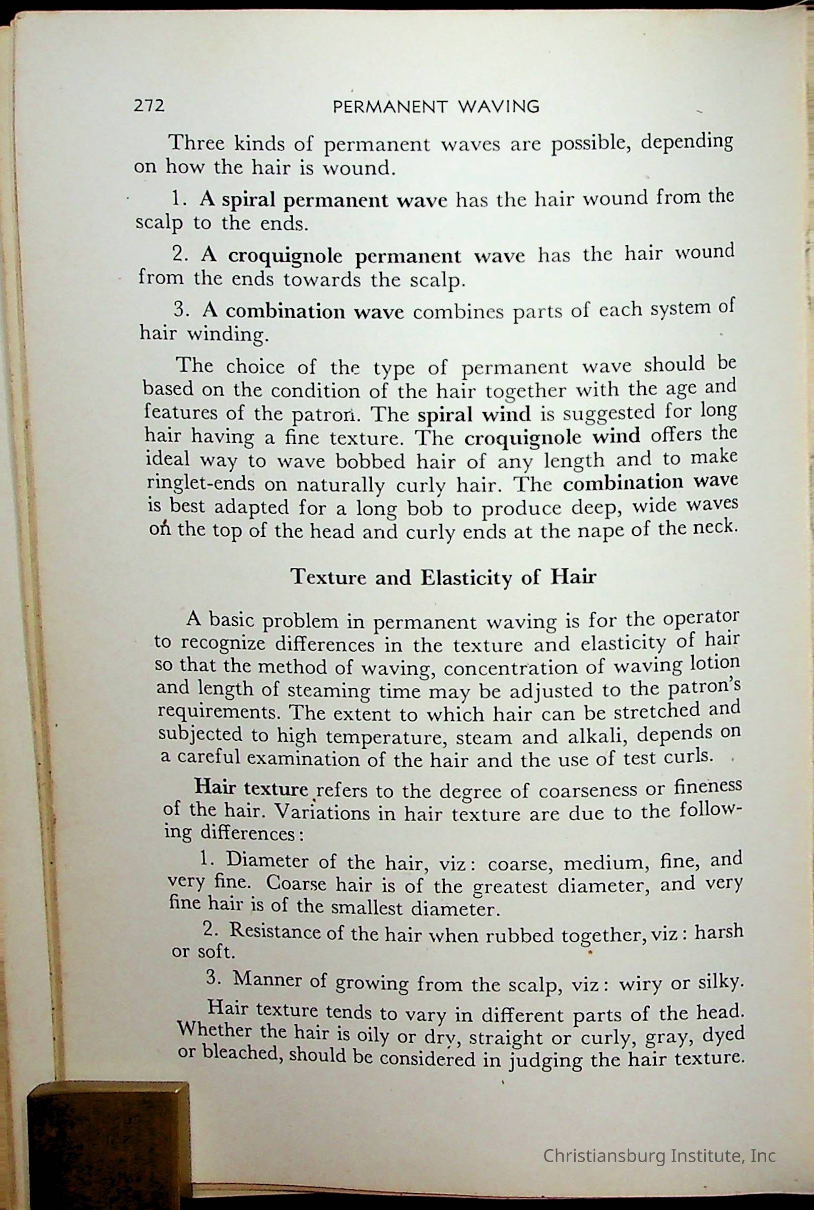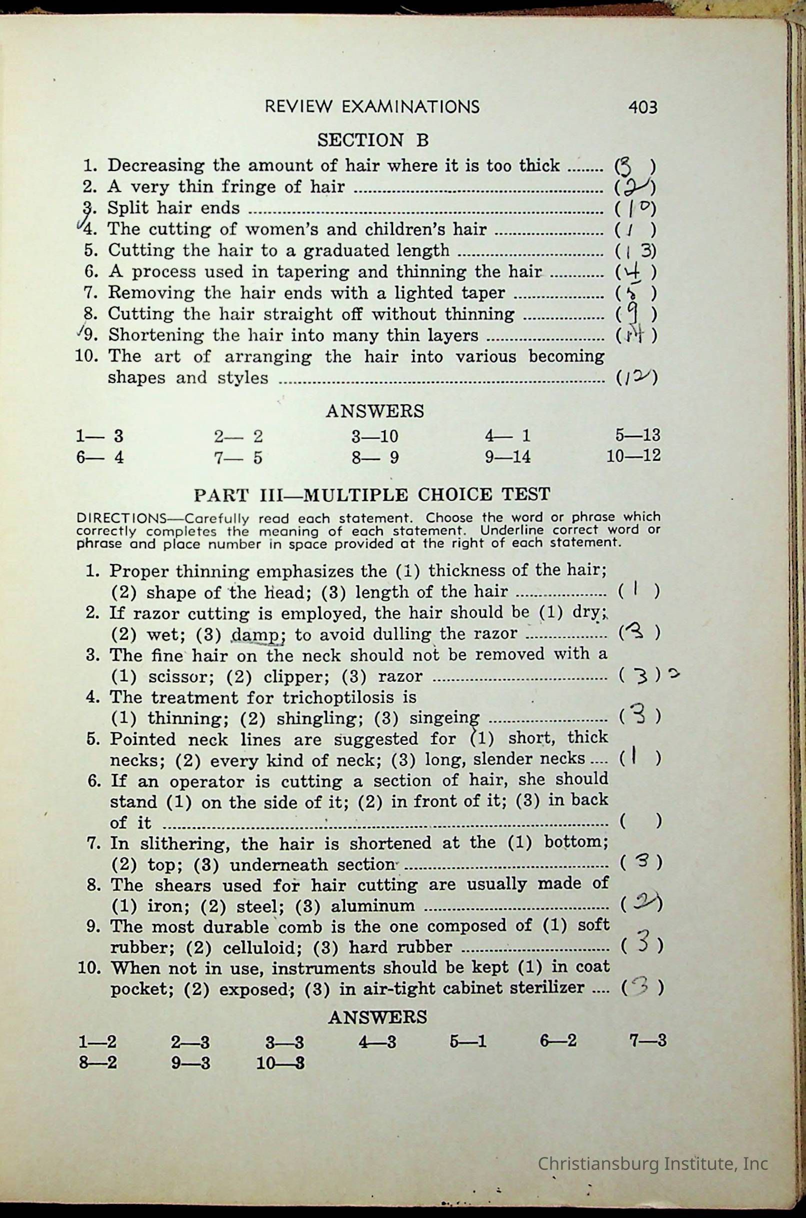 A revised version of the textbook titled, "Standard Textbook on Cosmetology" written by Constance V. Kibbe and published in the year 1942. This copy was owned by CII student, Amanda Edwin (later Amanda DeHart).Collection