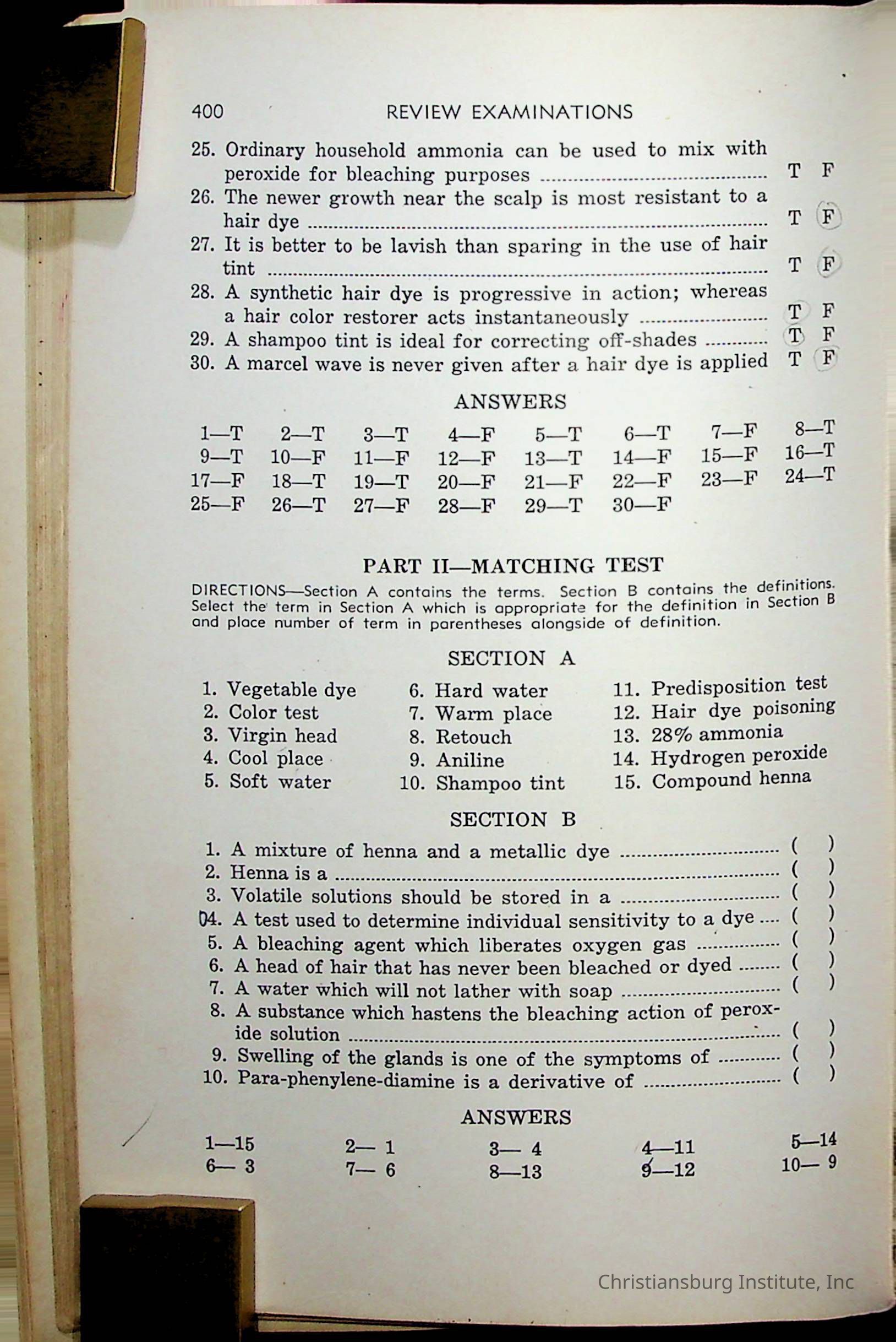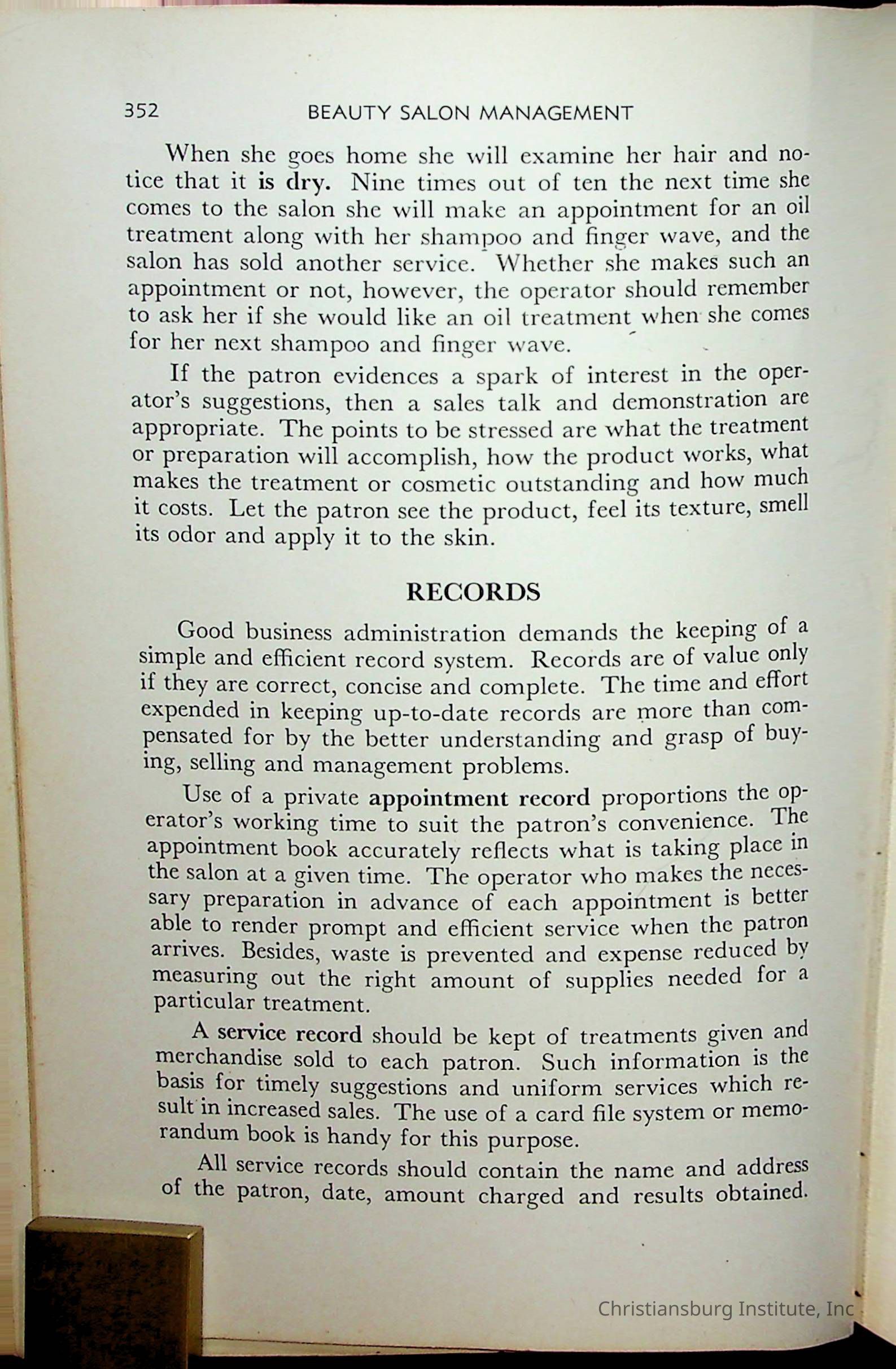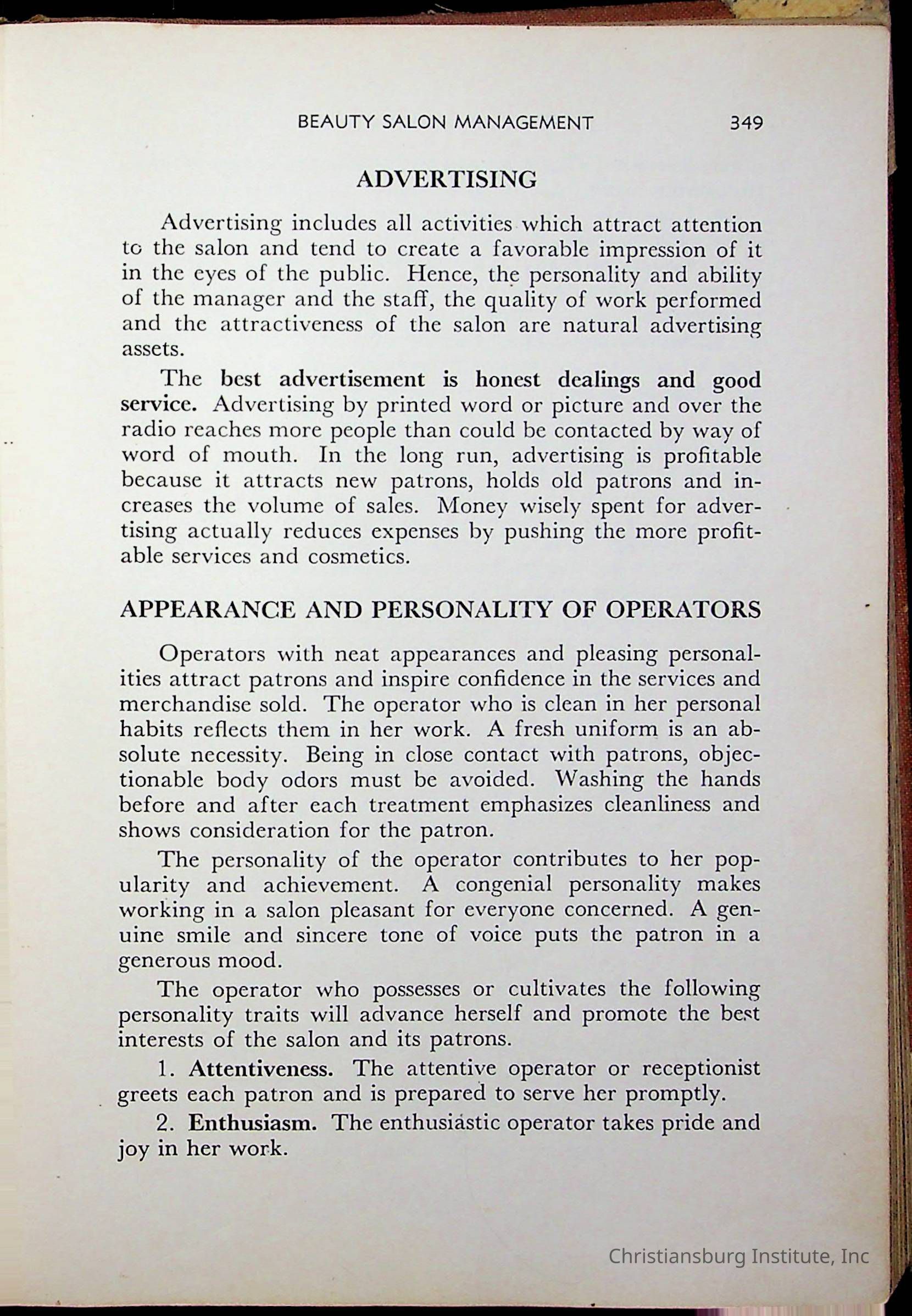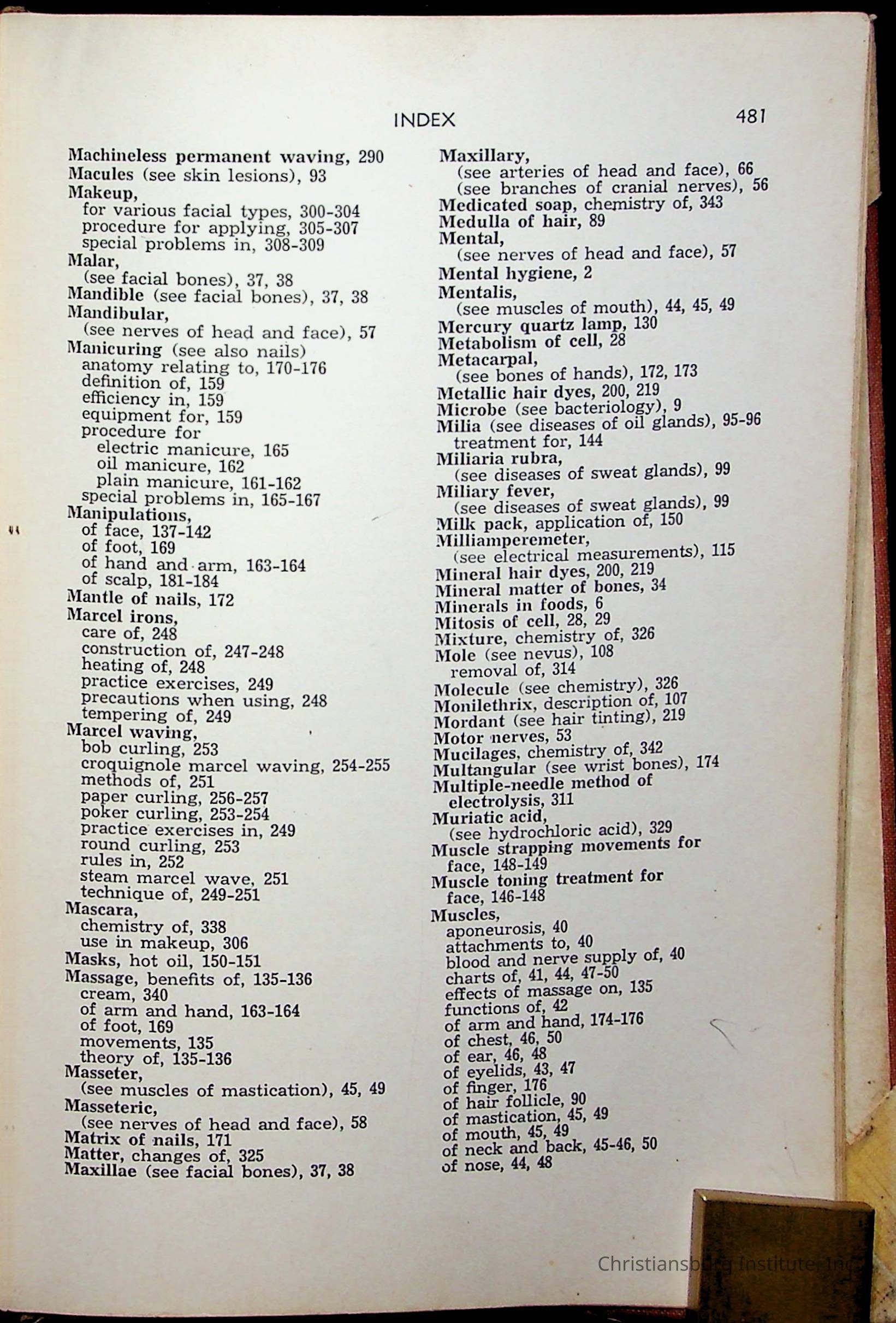 A revised version of the textbook titled, "Standard Textbook on Cosmetology" written by Constance V. Kibbe and published in the year 1942. This copy was owned by CII student, Amanda Edwin (later Amanda DeHart).Collection